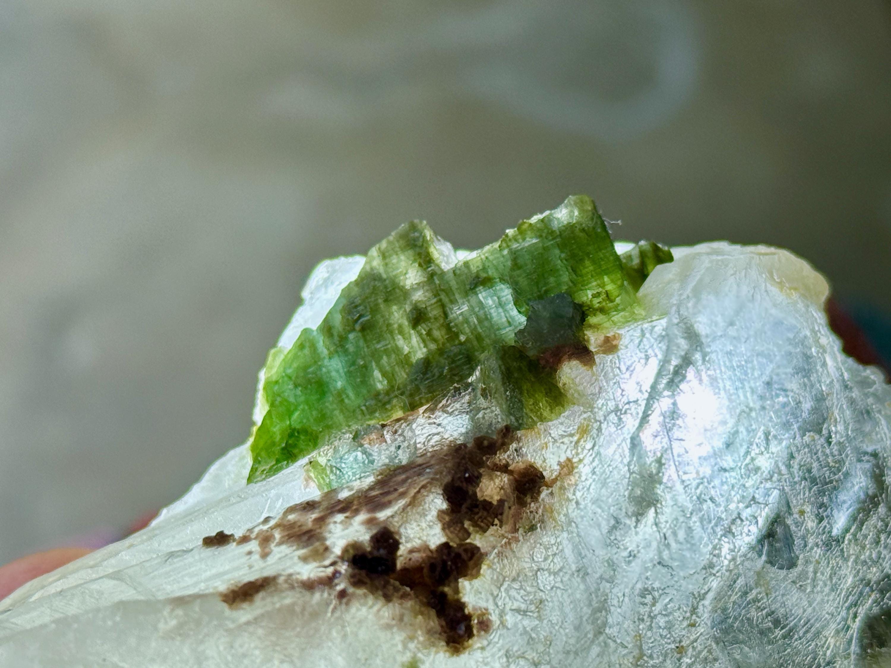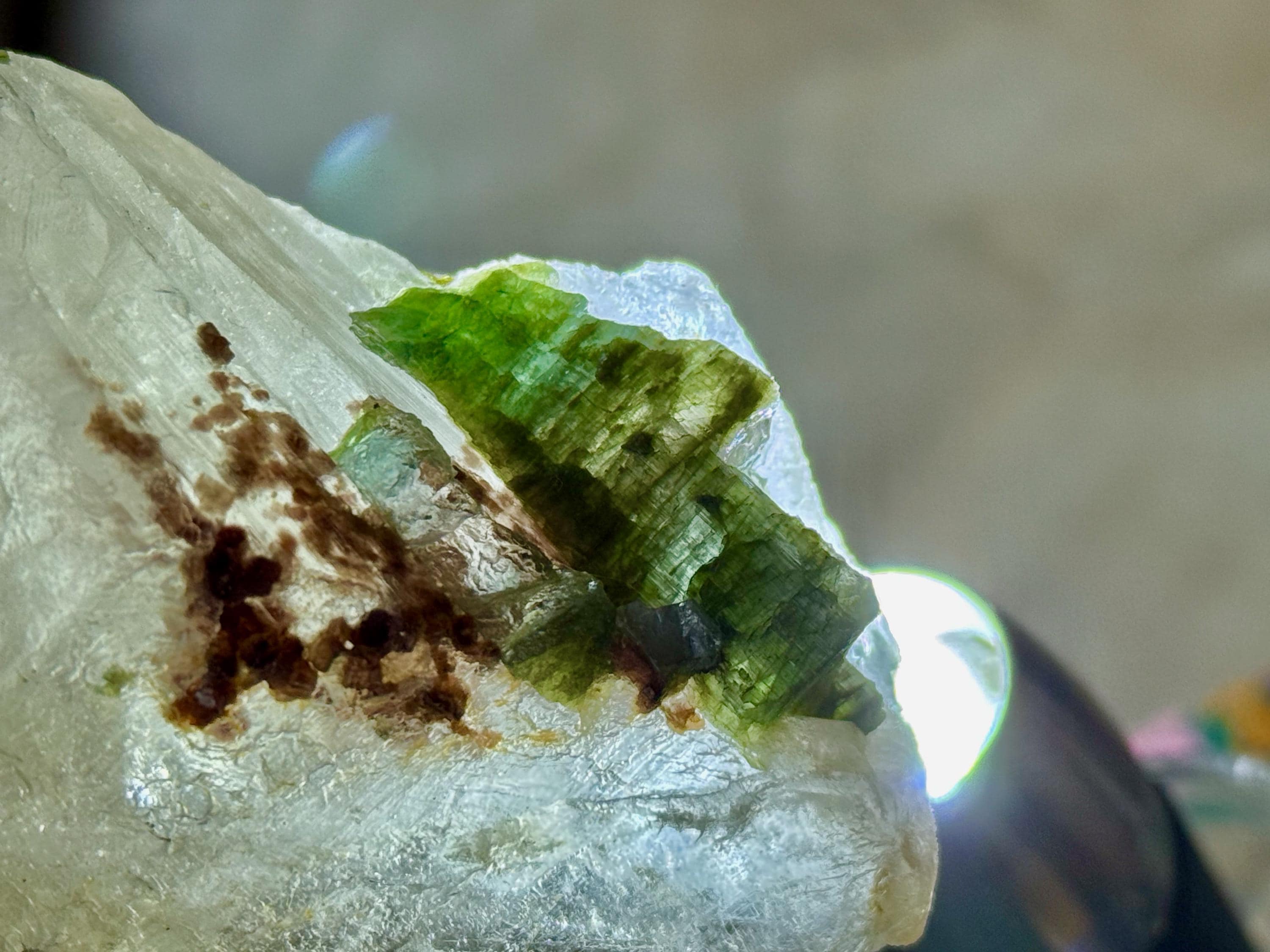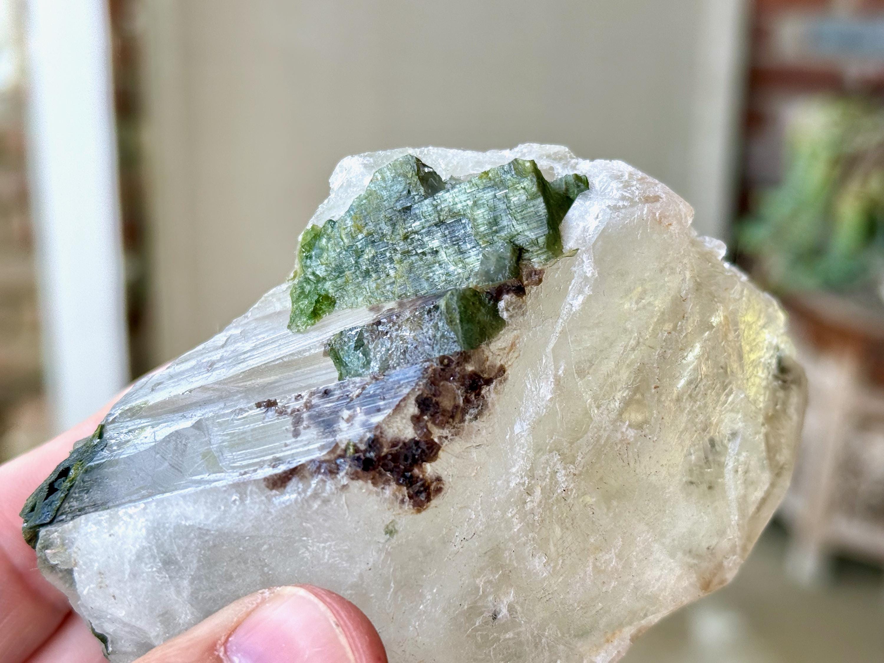 This natural Green Tourmaline Quartz comes from a recent find in Coronel Murta, Minas Gerais, Brazil. Green Tourmaline is a powerful Heart Healer that purifies and strengthens energy flow.