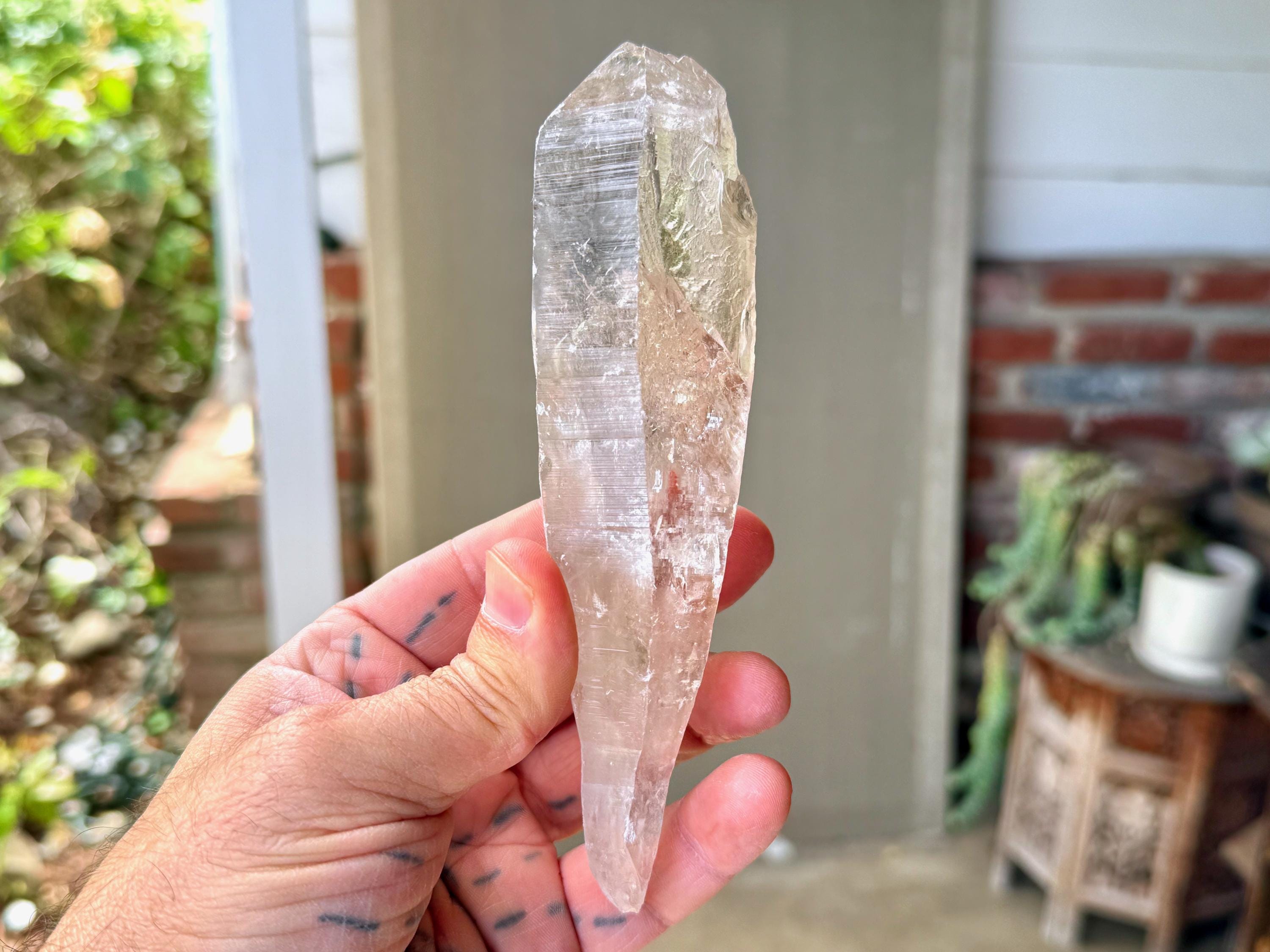 This Russian Lemurian (aka Sacred Scribe) Quartz comes from the original 1990's find in the Yuzhnyi Quarry, Astaf'evskoe Quartz Deposit, Chelyabinsk, Oblast, Russia. This crystal is part of a collection we acquired in 2026 from an Italian collector who had a parcel of these rare crystals in storage since the early 2000's.