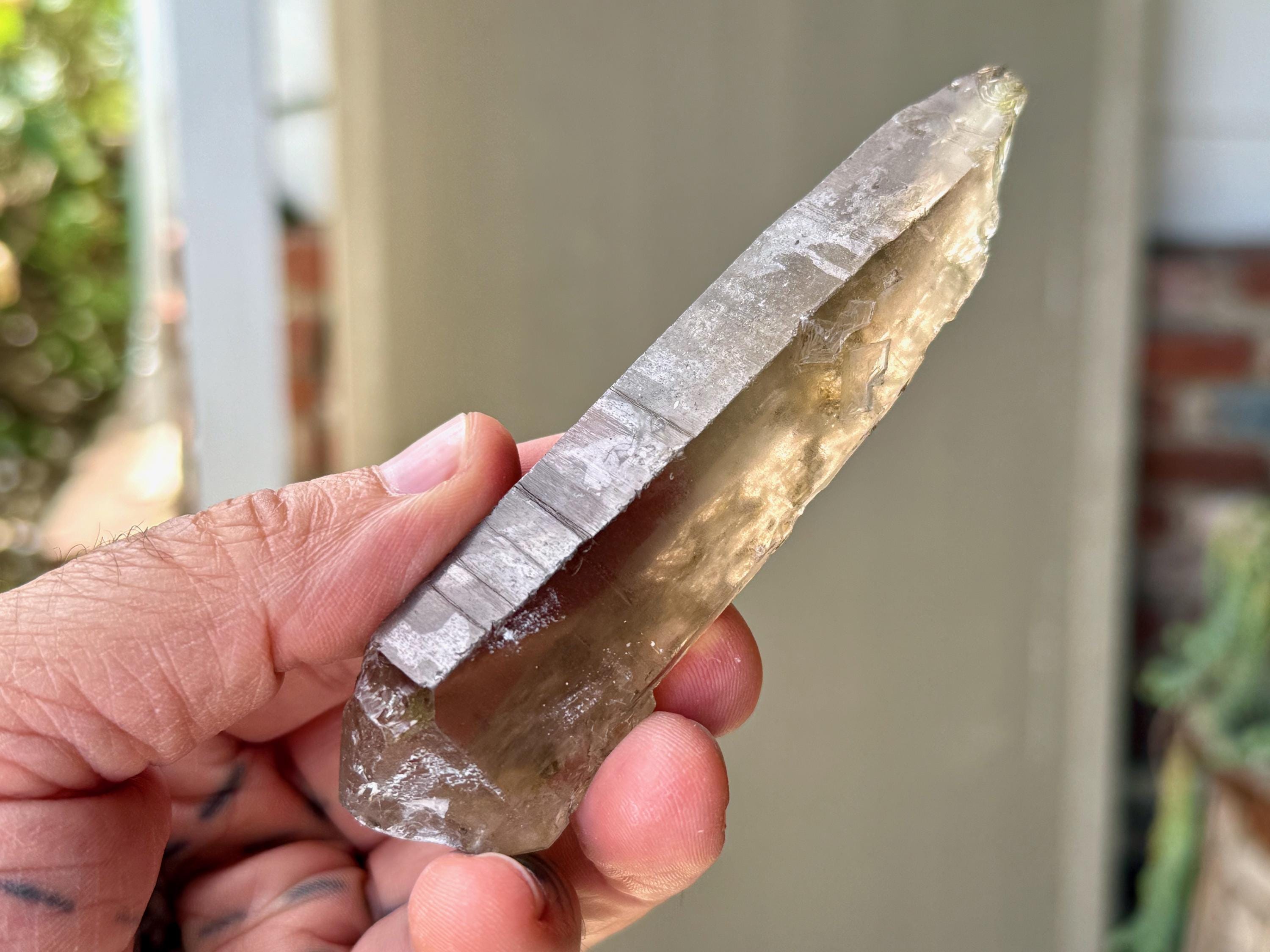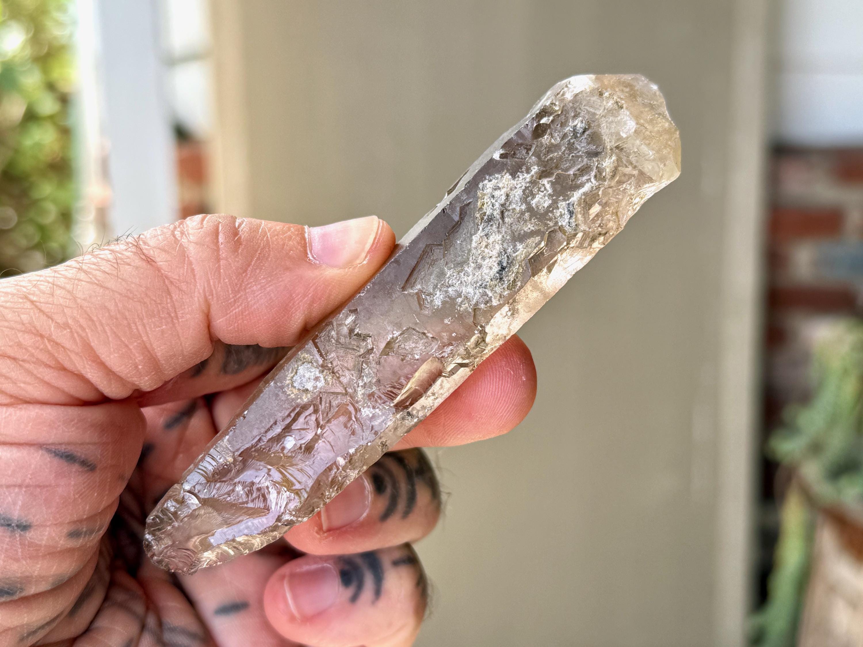 This Russian Lemurian (aka Sacred Scribe) Quartz comes from the original 1990's find in the Yuzhnyi Quarry, Astaf'evskoe Quartz Deposit, Chelyabinsk, Oblast, Russia. This crystal is part of a collection we acquired in 2026 from an Italian collector who had a parcel of these rare crystals in storage since the early 2000's.