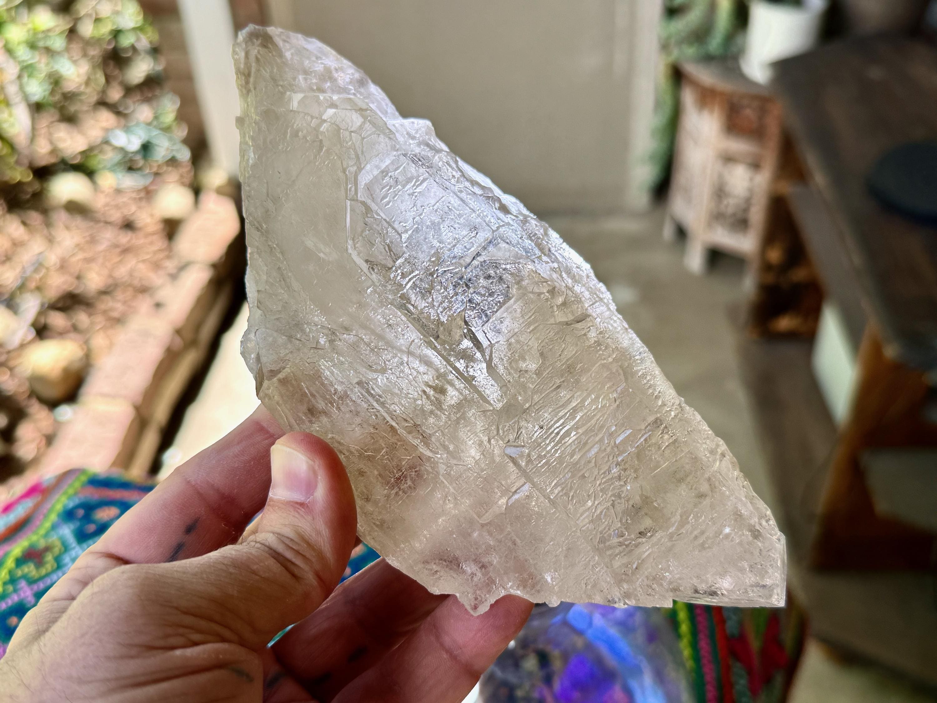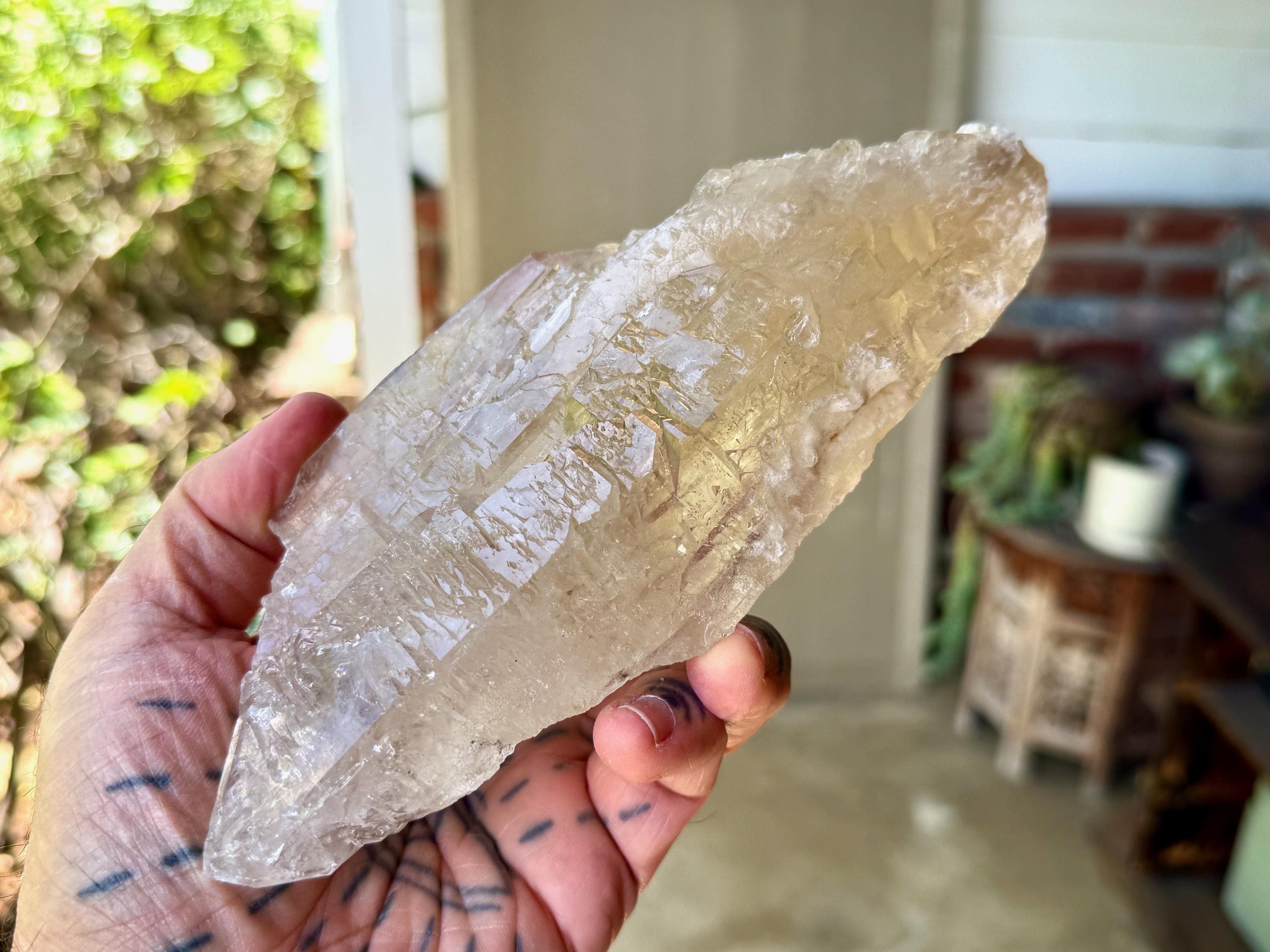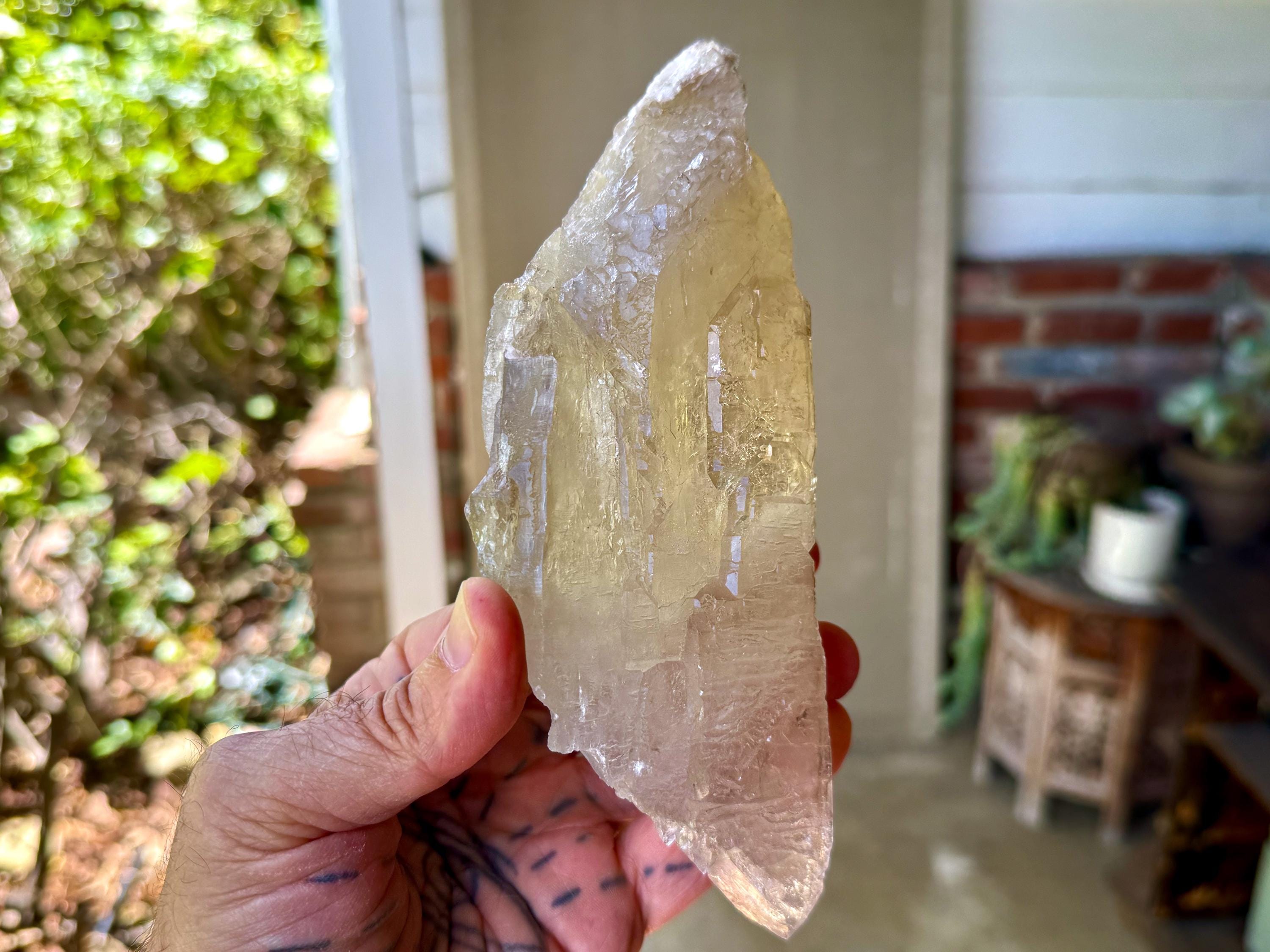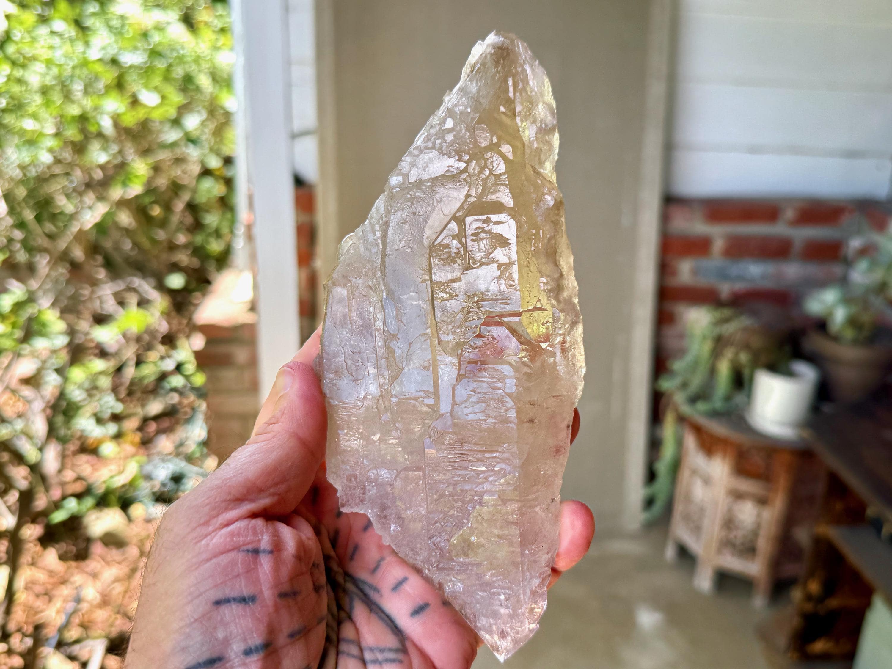 This crystal possess what is known as a "galactic key" formation, having broken off a larger crystal at some point hundreds of millions of years ago in the Earth, due to shifting tectonic plates, and that managed to fully heal itself on its back and sides (see more on this formation below).
