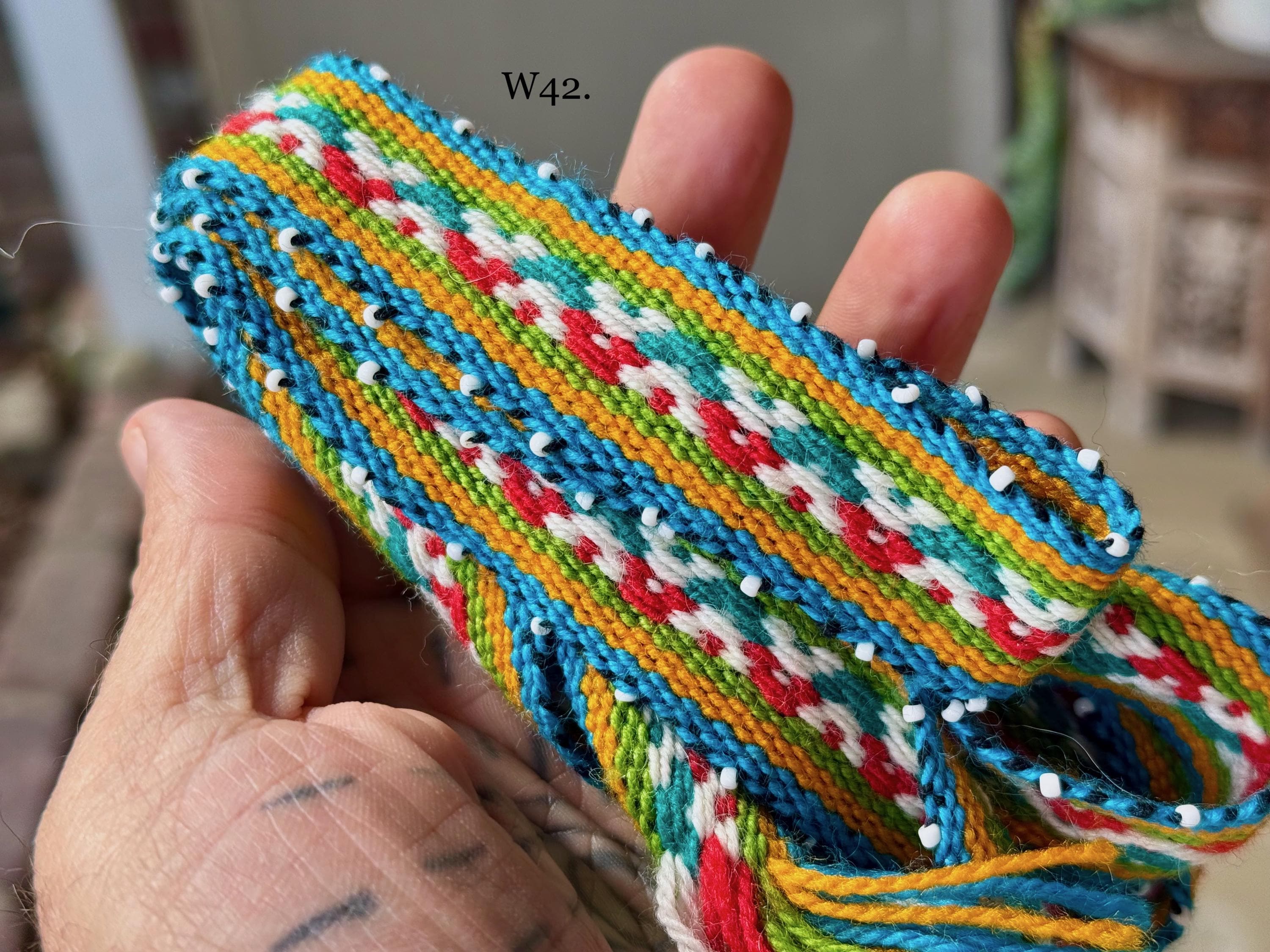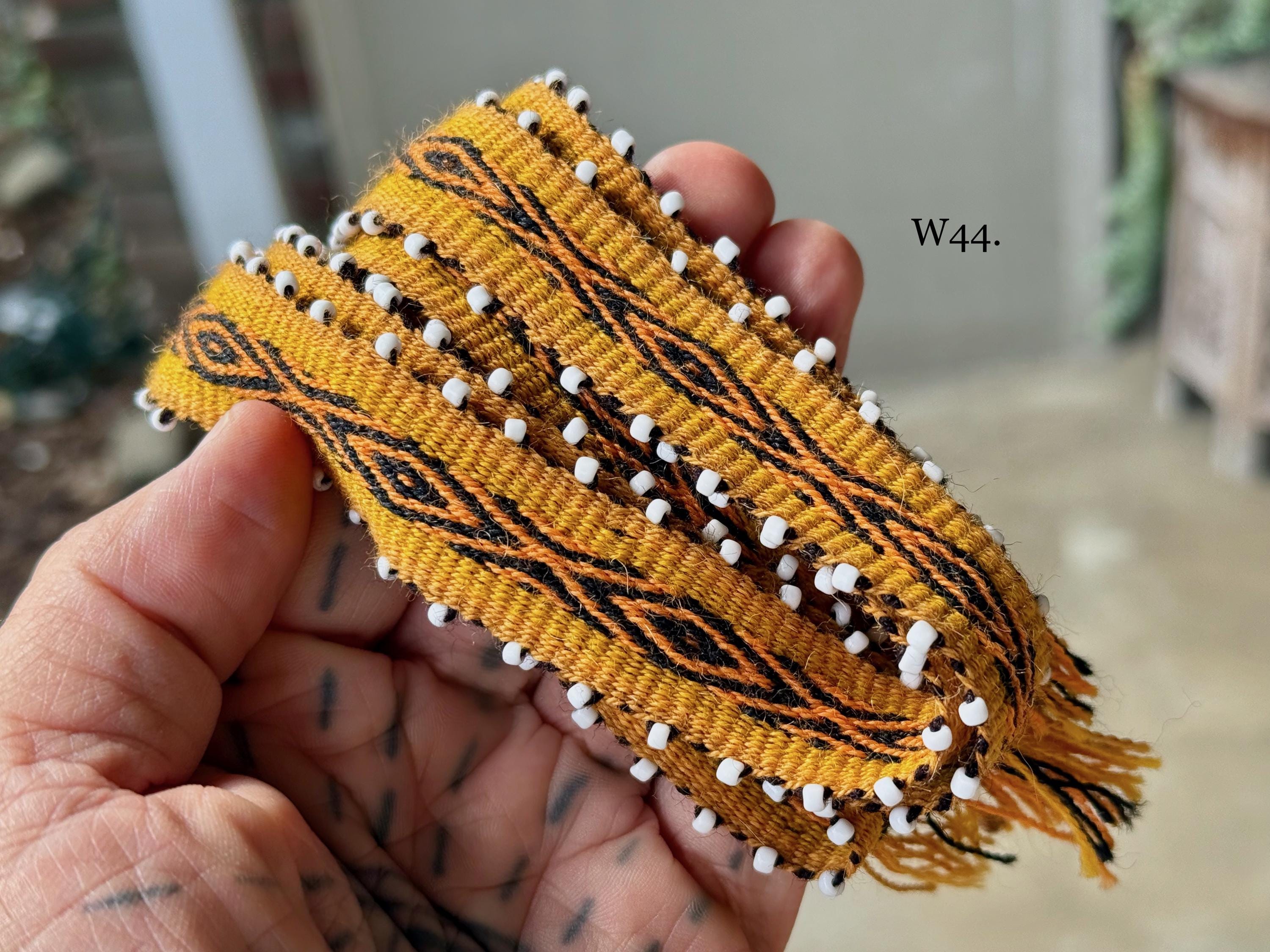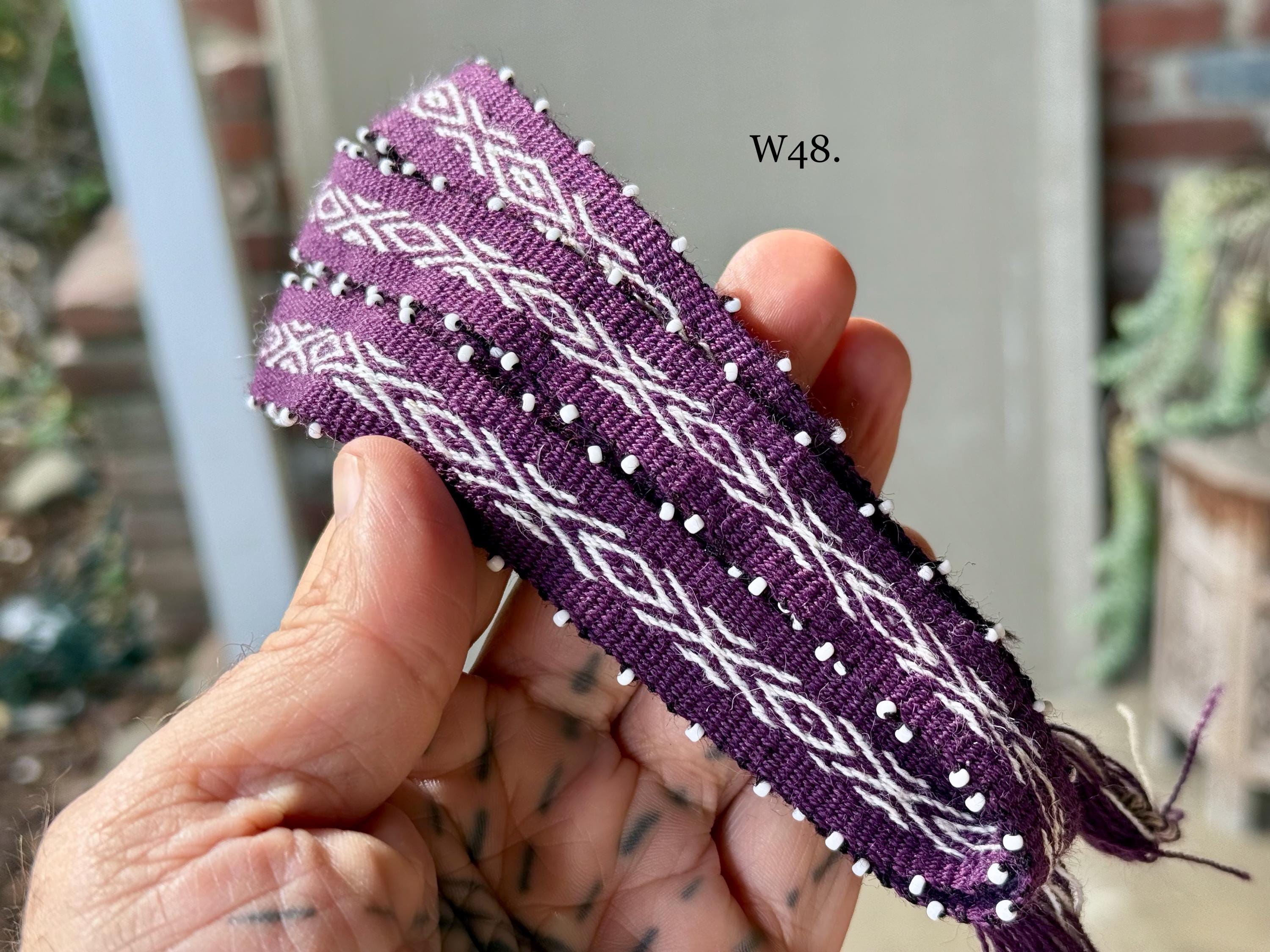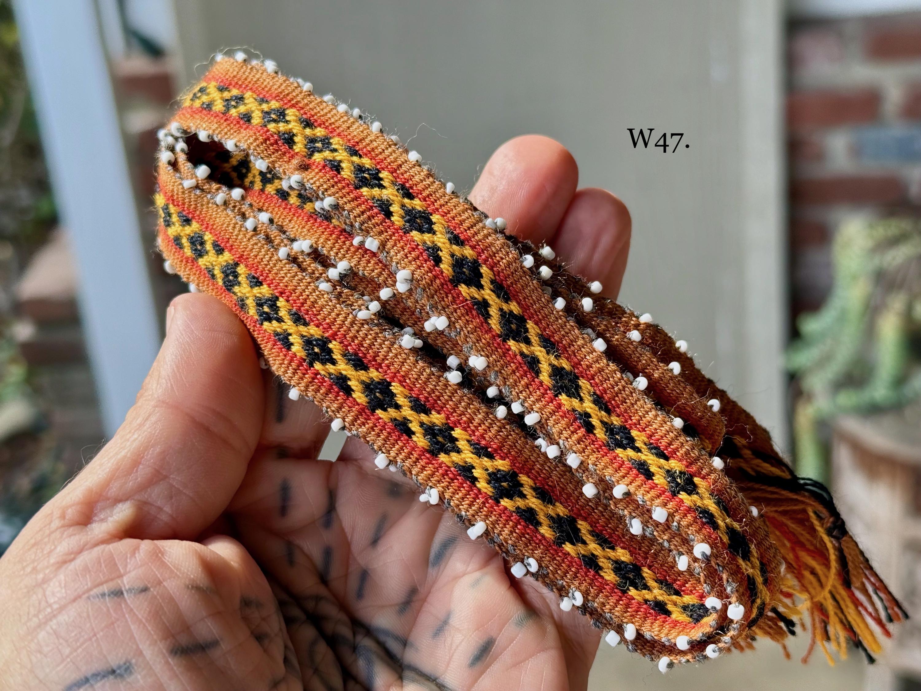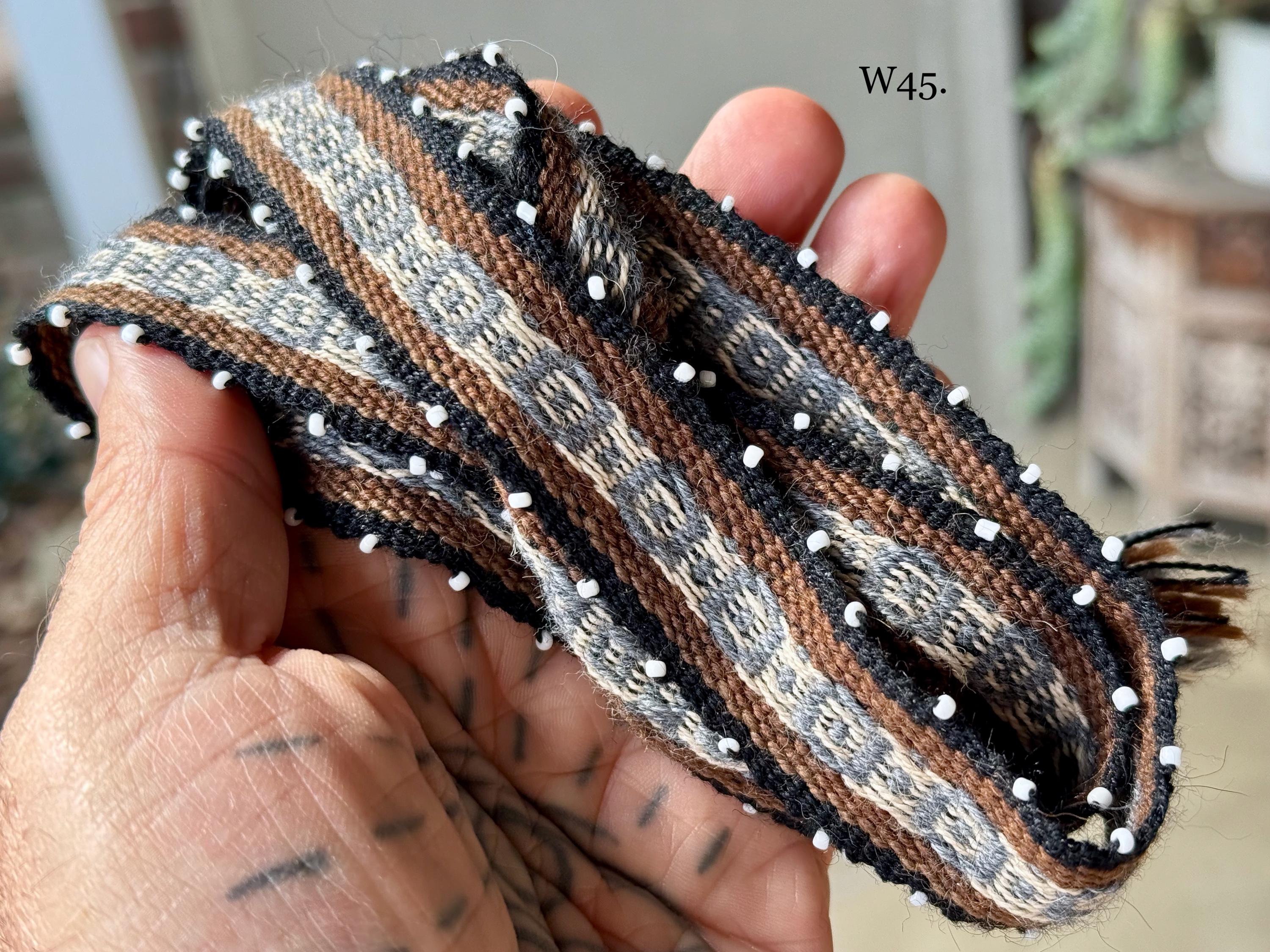 Watanas are wool ties/cords with tiny white beads, or "pini," that represent the stars. Traditionally, Watanas can be used to wrap your Mesa, or bundle a Despacho offering. These Watanas are of high-grade quality, wider and longer than standard Watanas, allowing them to be used as hat bands, bracelets for good luck and protection, or as hair ties, belts, adornments, etc. They can also be used on an altar or mesa to wrap herb bundles or other types of offerings.