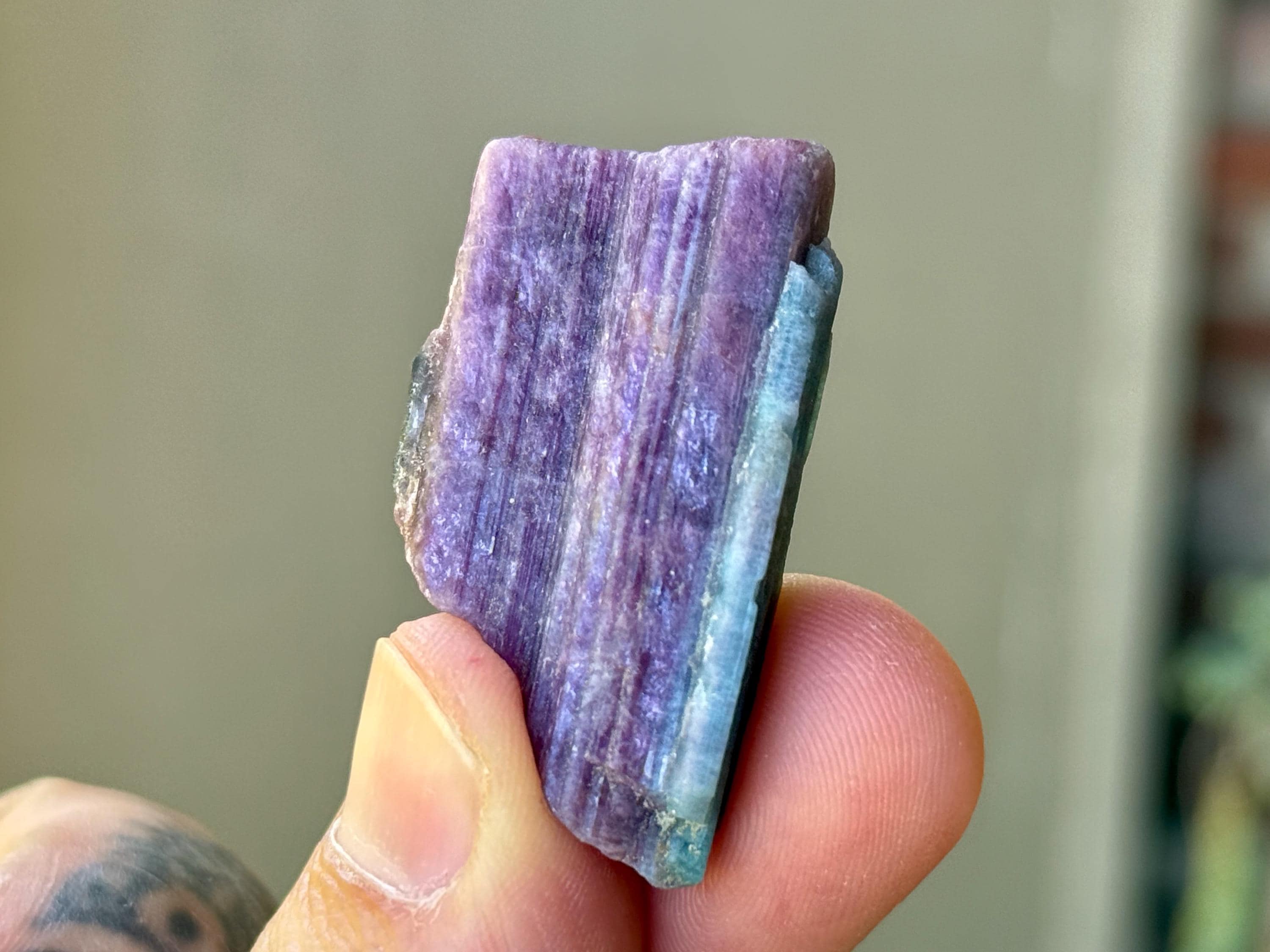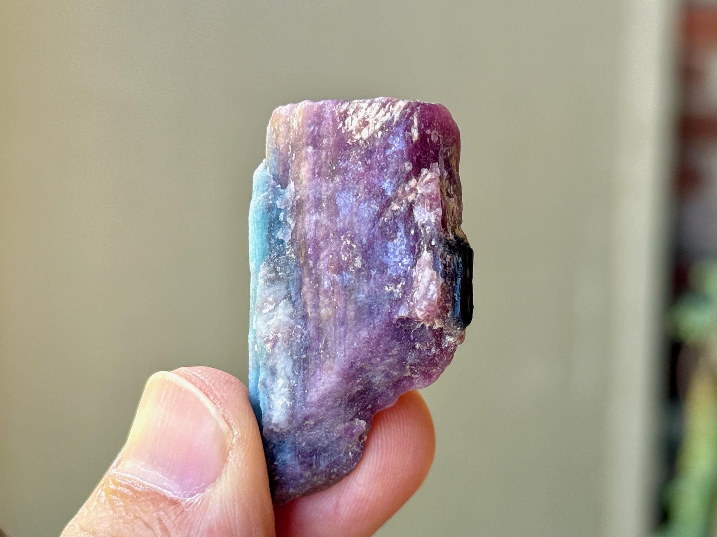 Purple Tourmaline is among the rarest color of Tourmaline, and carries a powerful energy that correlates to the Third Eye and Crown Chakras, working to enhance psychic abilities and facilitate connection with angelic beings. However it is also known to provide a gentle, but powerful, centering energy, as well as help to heal wounds of the heart.