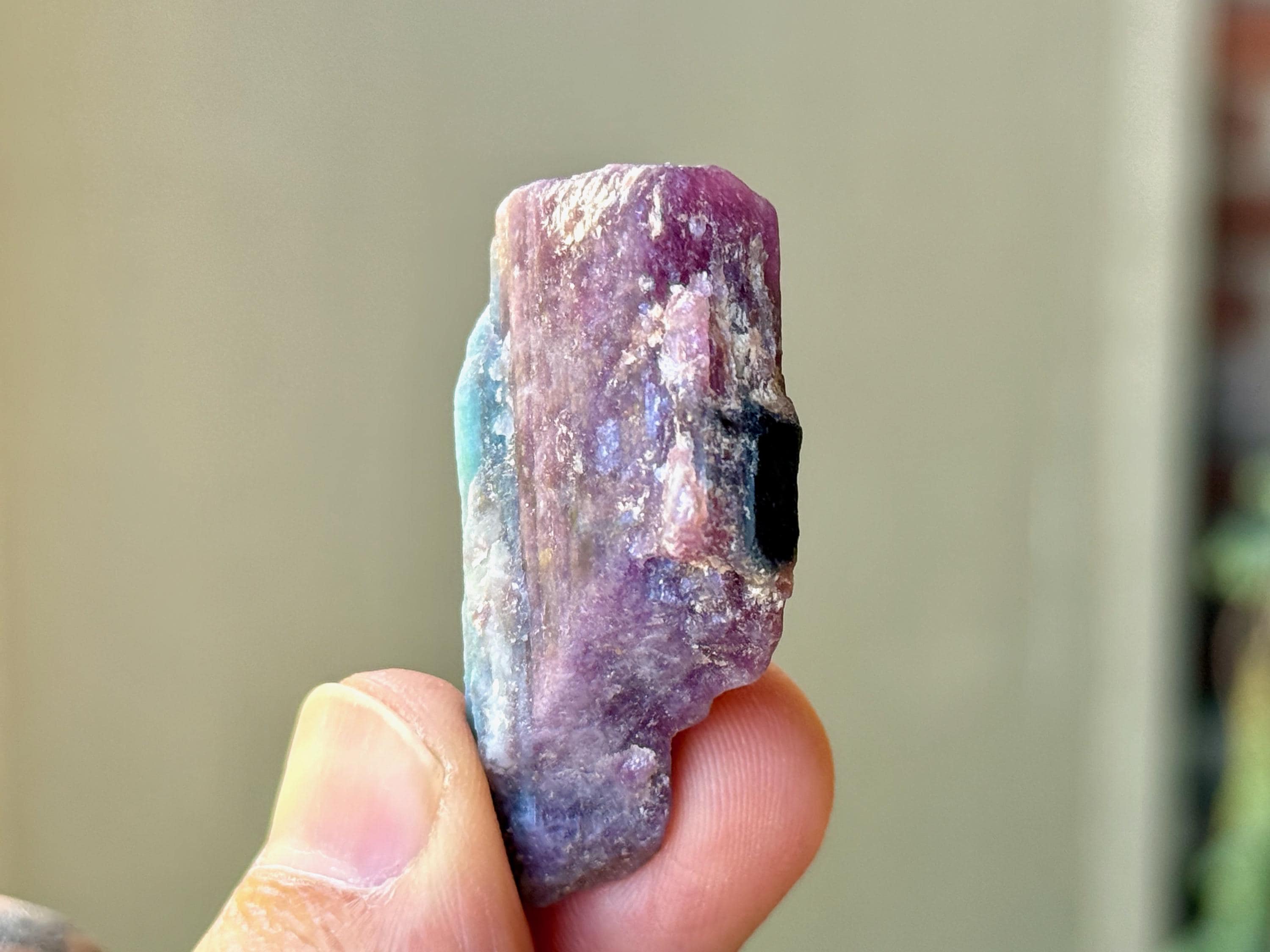 Vibrant colors to this beautiful Paraiba Tourmaline, with a dark pinkish-purple "core" and a portion of blue "skin" on the exterior.