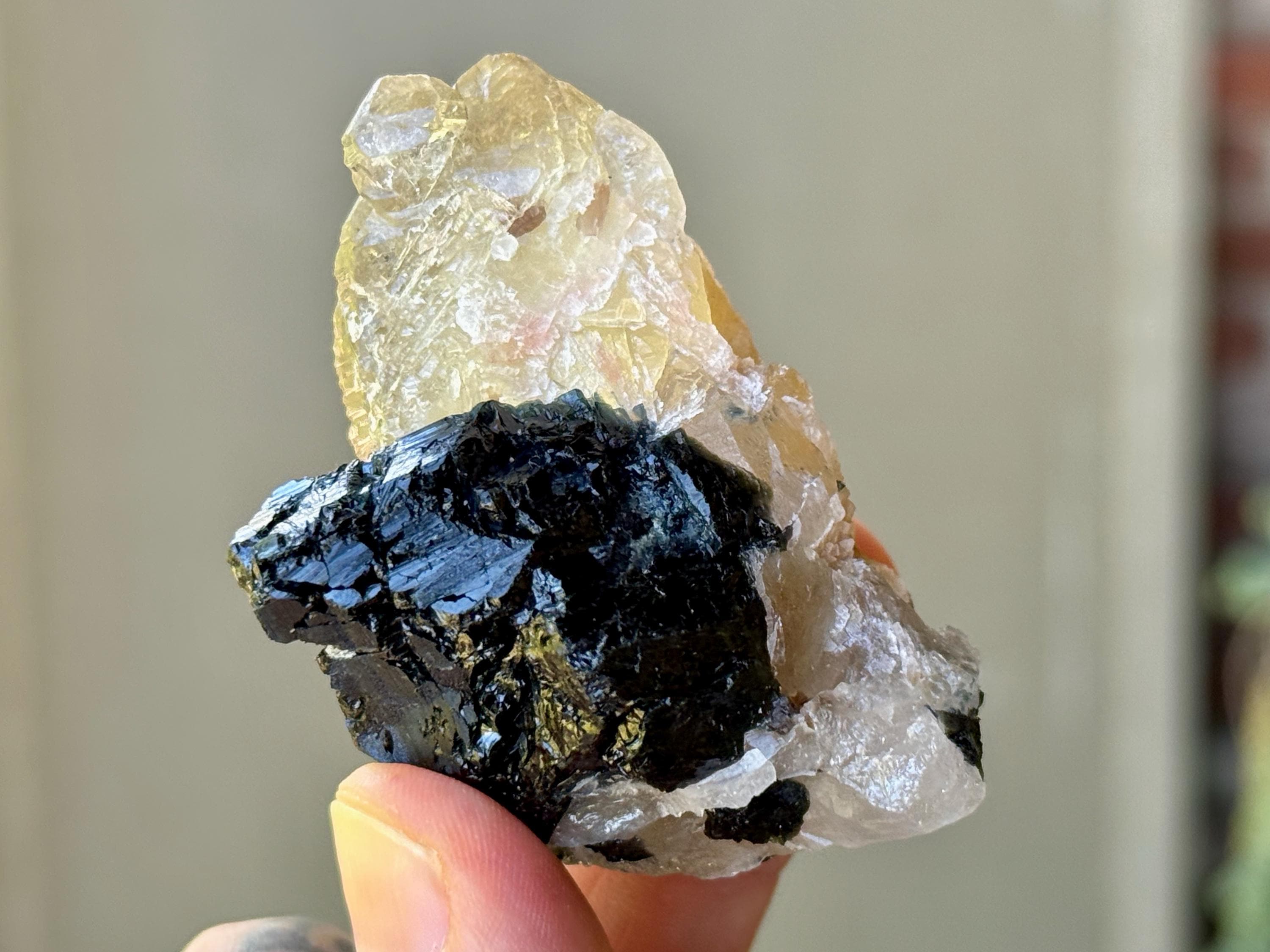 This natural Citrine with Blue Tourmaline inclusions comes from a recent find in Coronel Murta, Minas Gerais, Brazil.