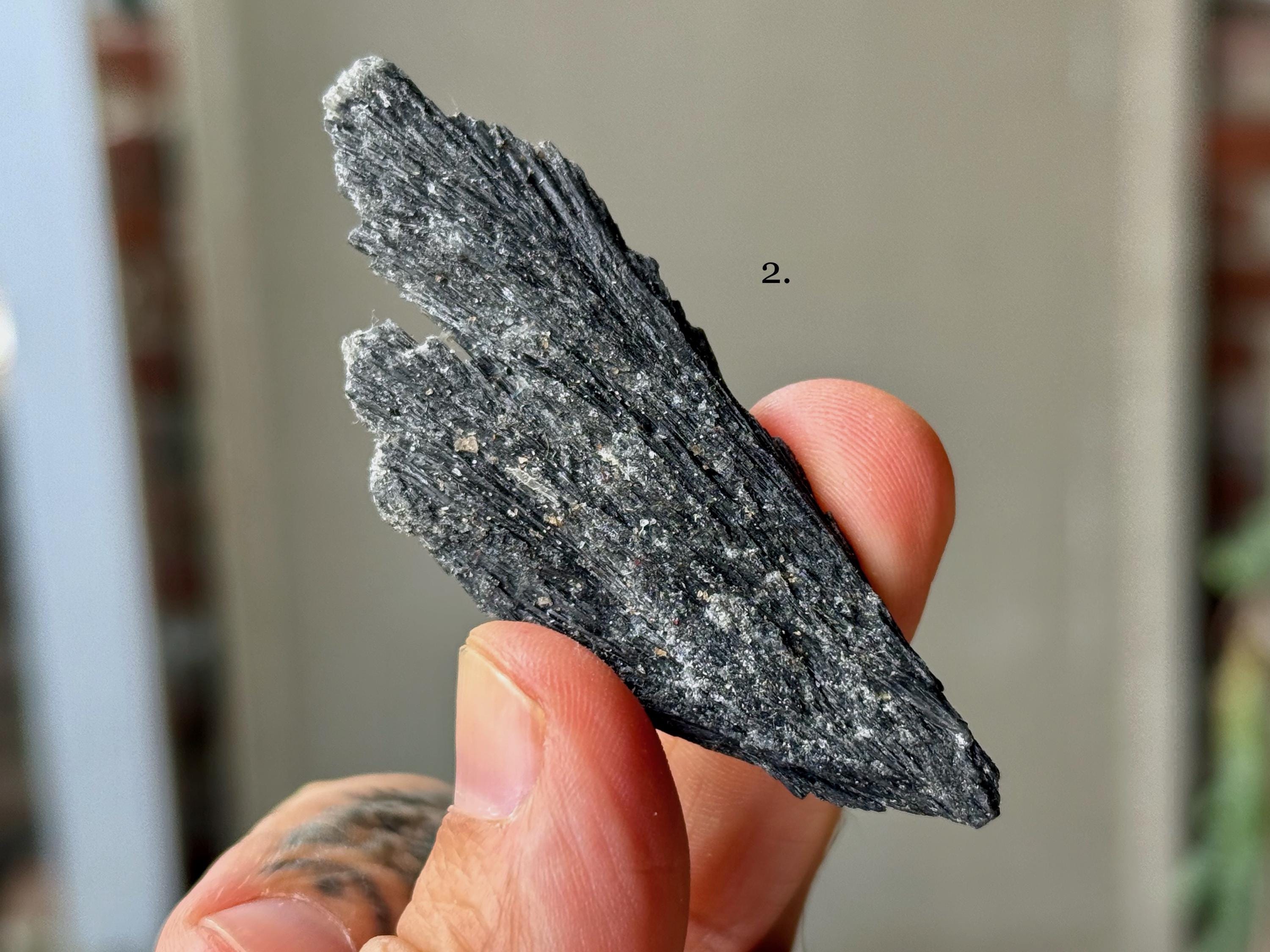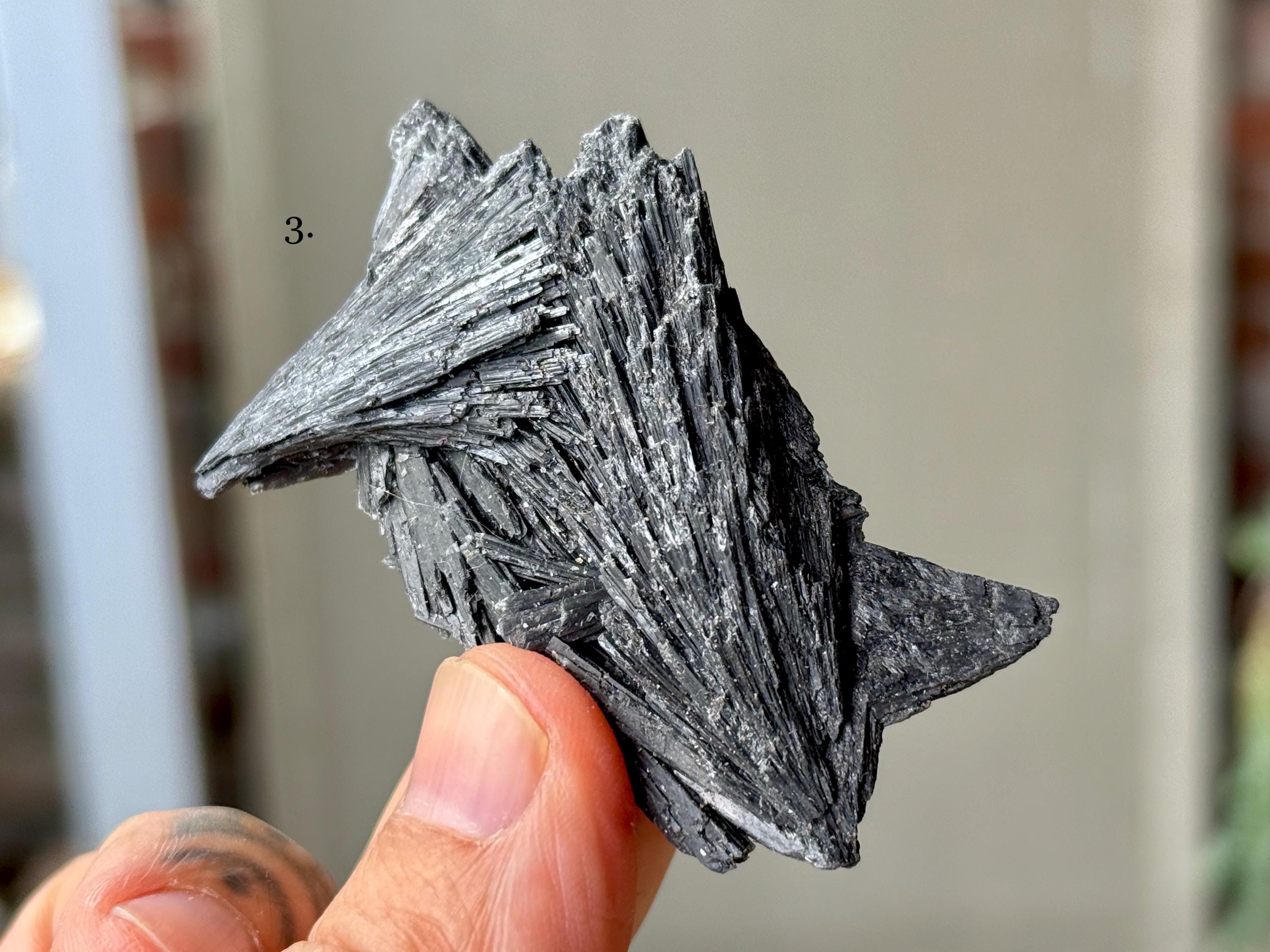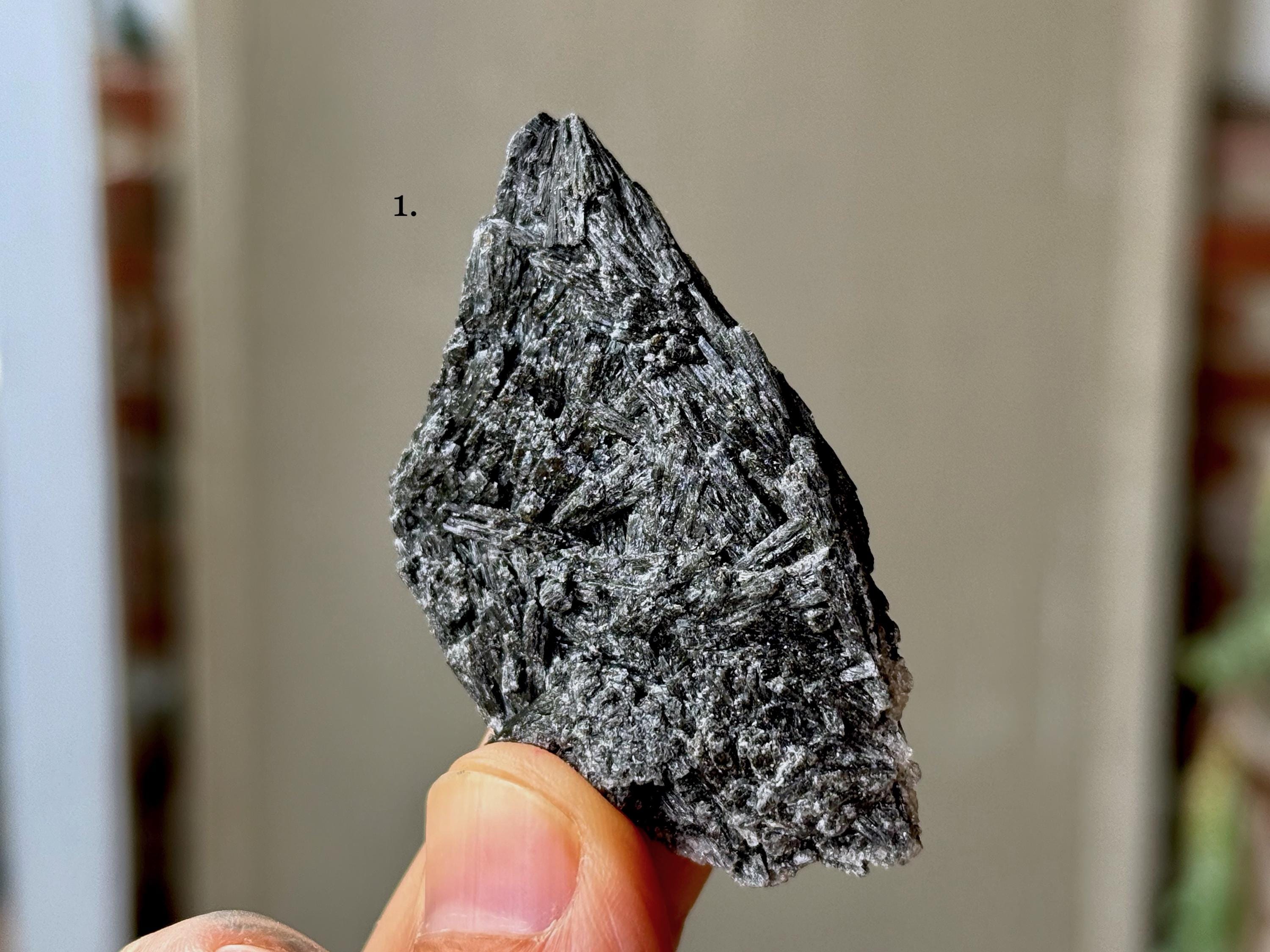 These natural Black Kyanite crystals come from a recent find in Minas Gerais, Brazil. Each selection is numbered, simply select the one(s) you'd like from the dropdown.