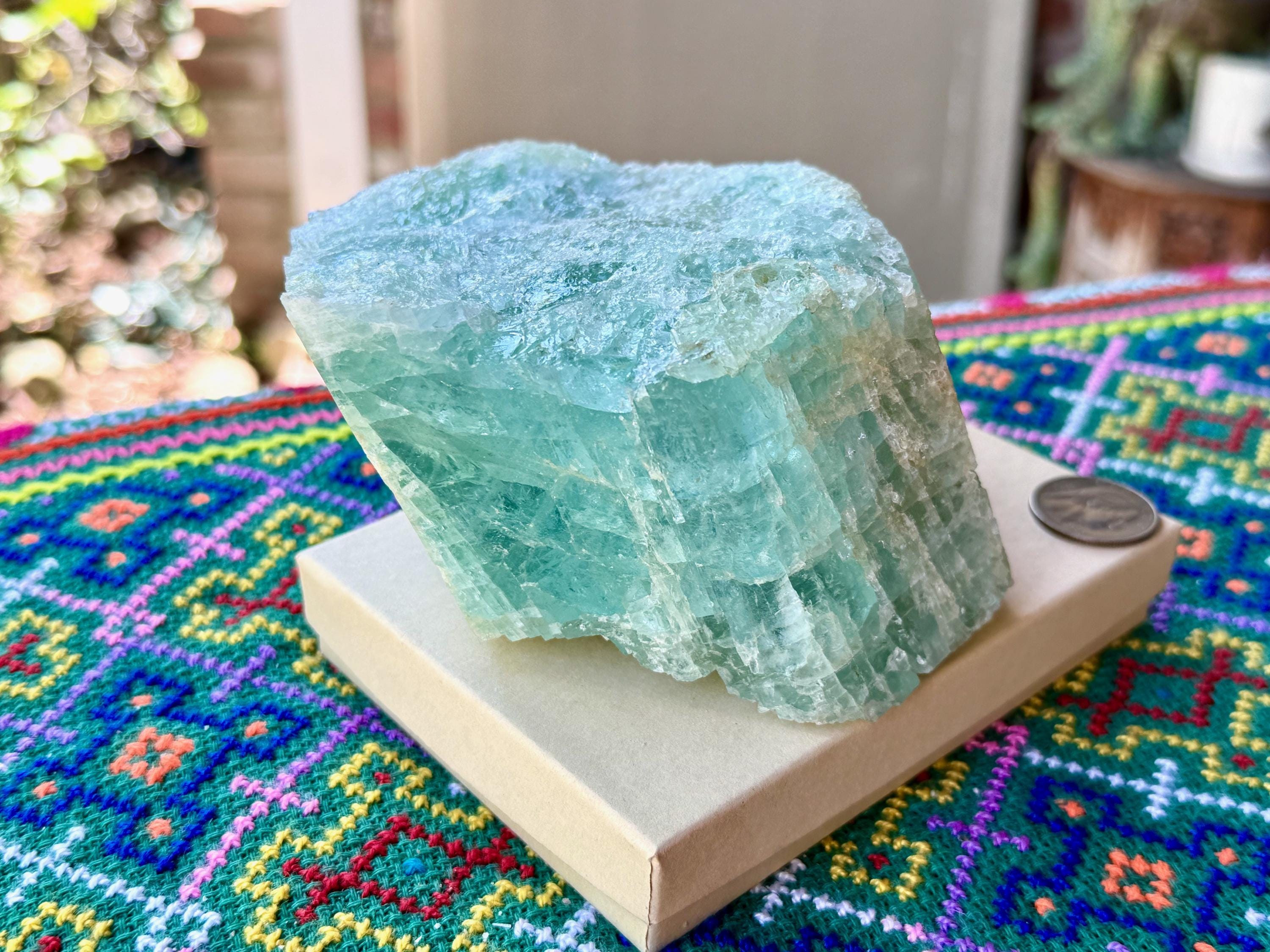 Aquamarine is the blue mineral in the Beryl family and is a powerful crystal for aiding in self-expression and emotional cleansing.