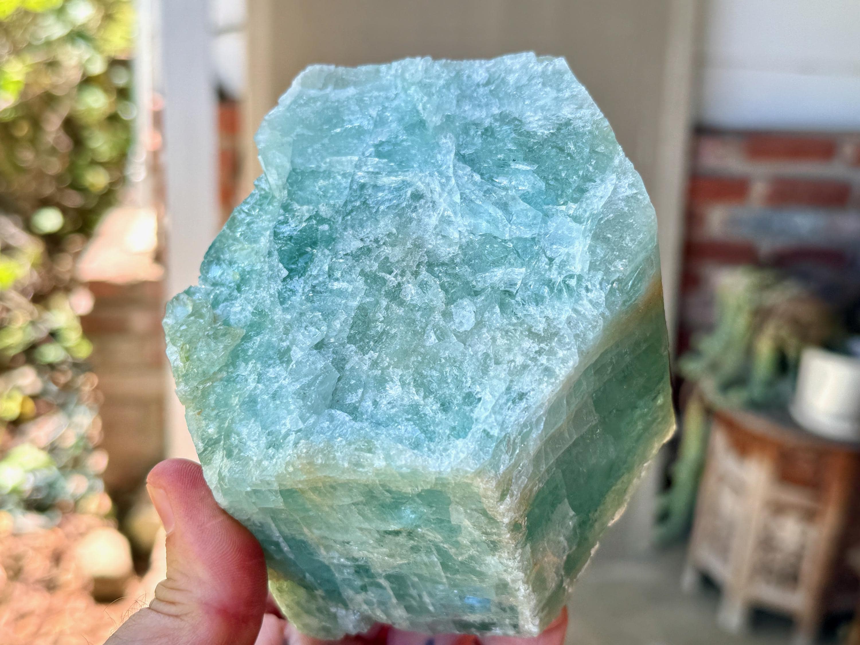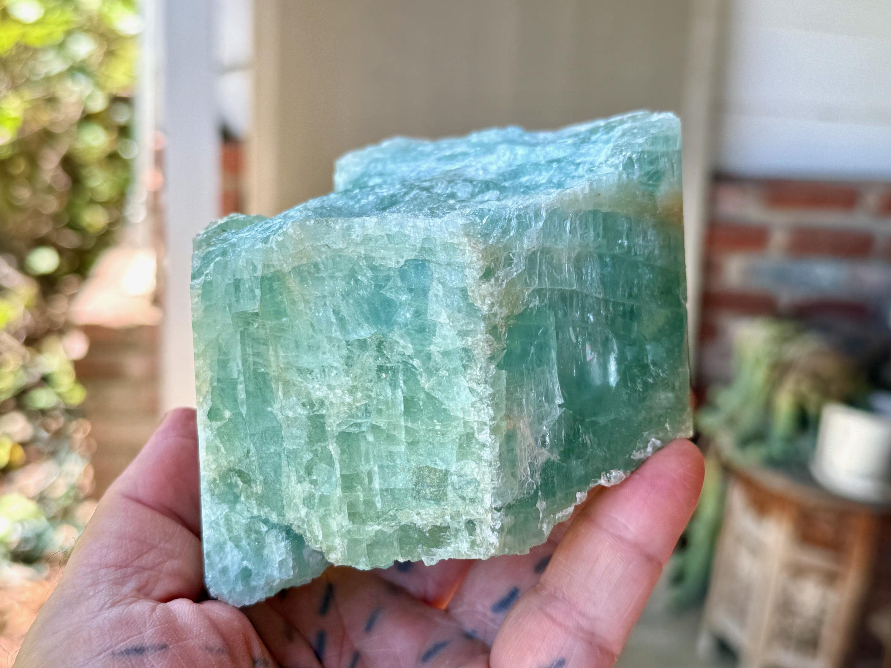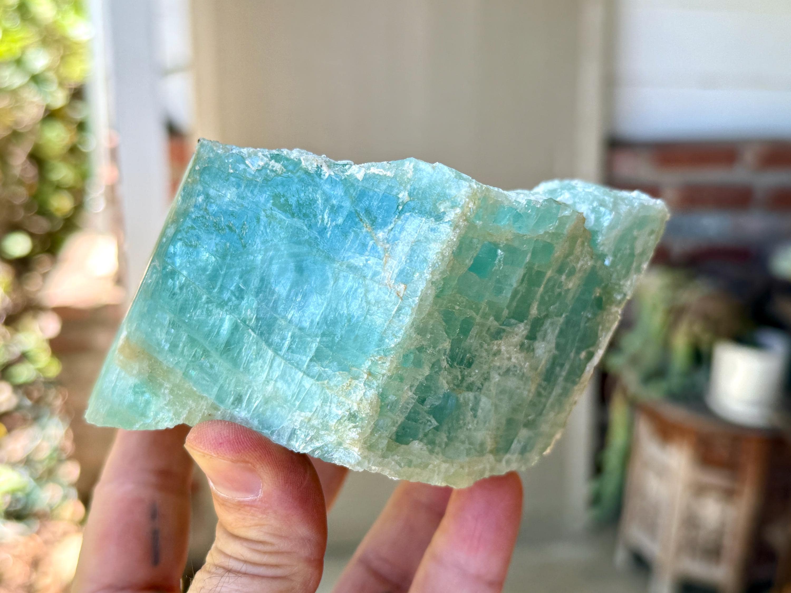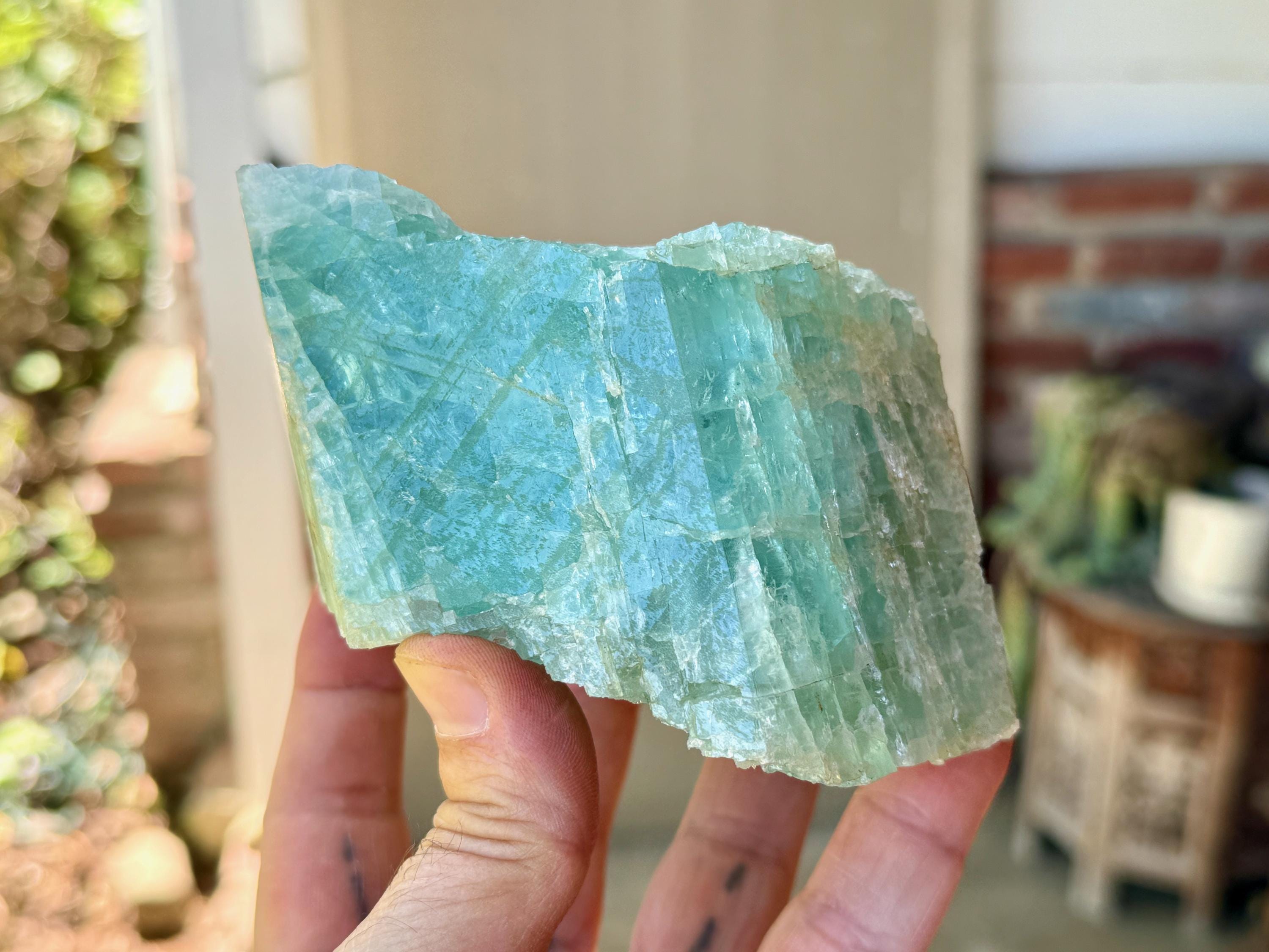 When backlit, as in Photos 1, 4-5, we can see just how well this piece passes light, and also we can see some more of the green hues pop a bit more.