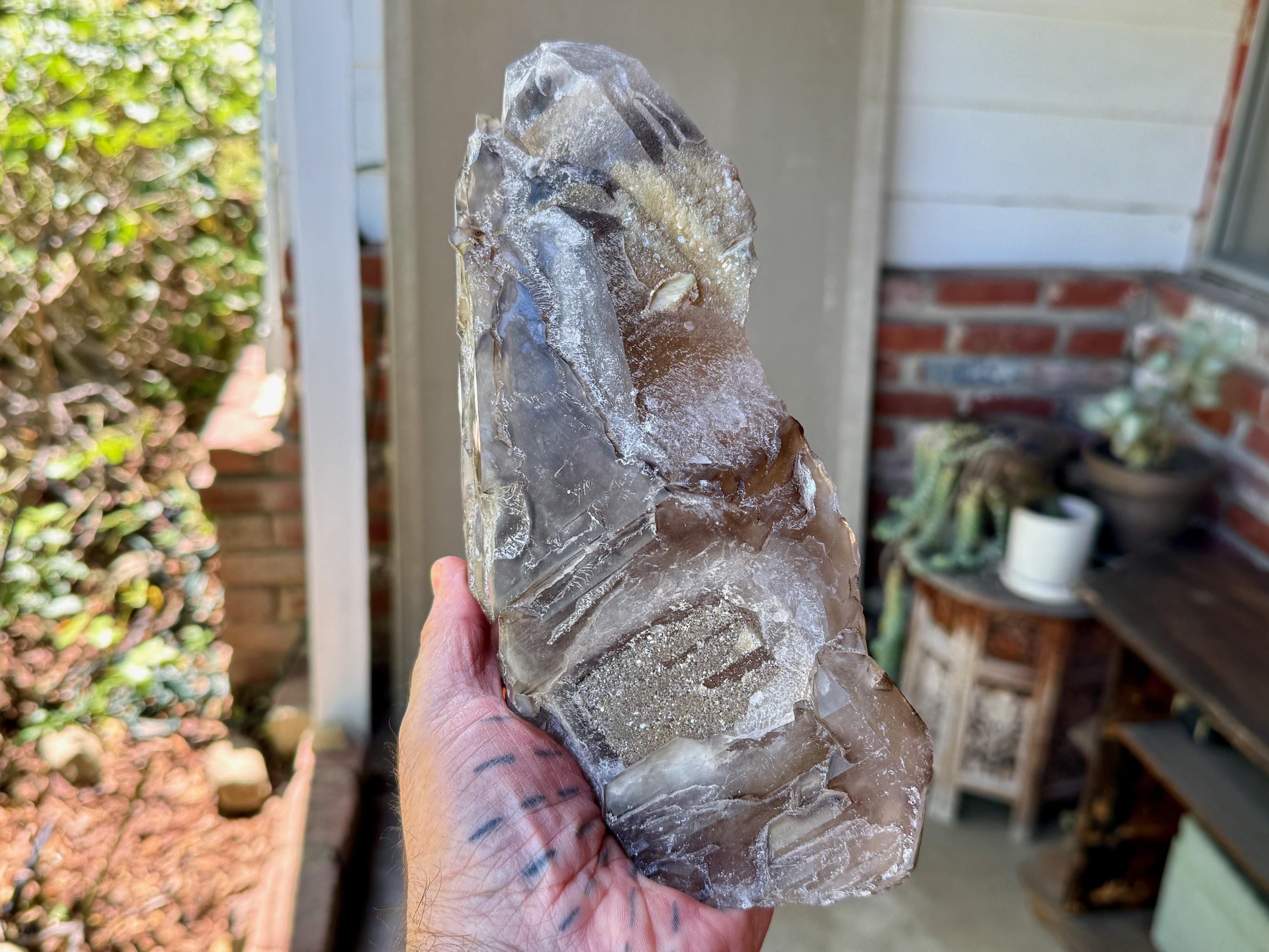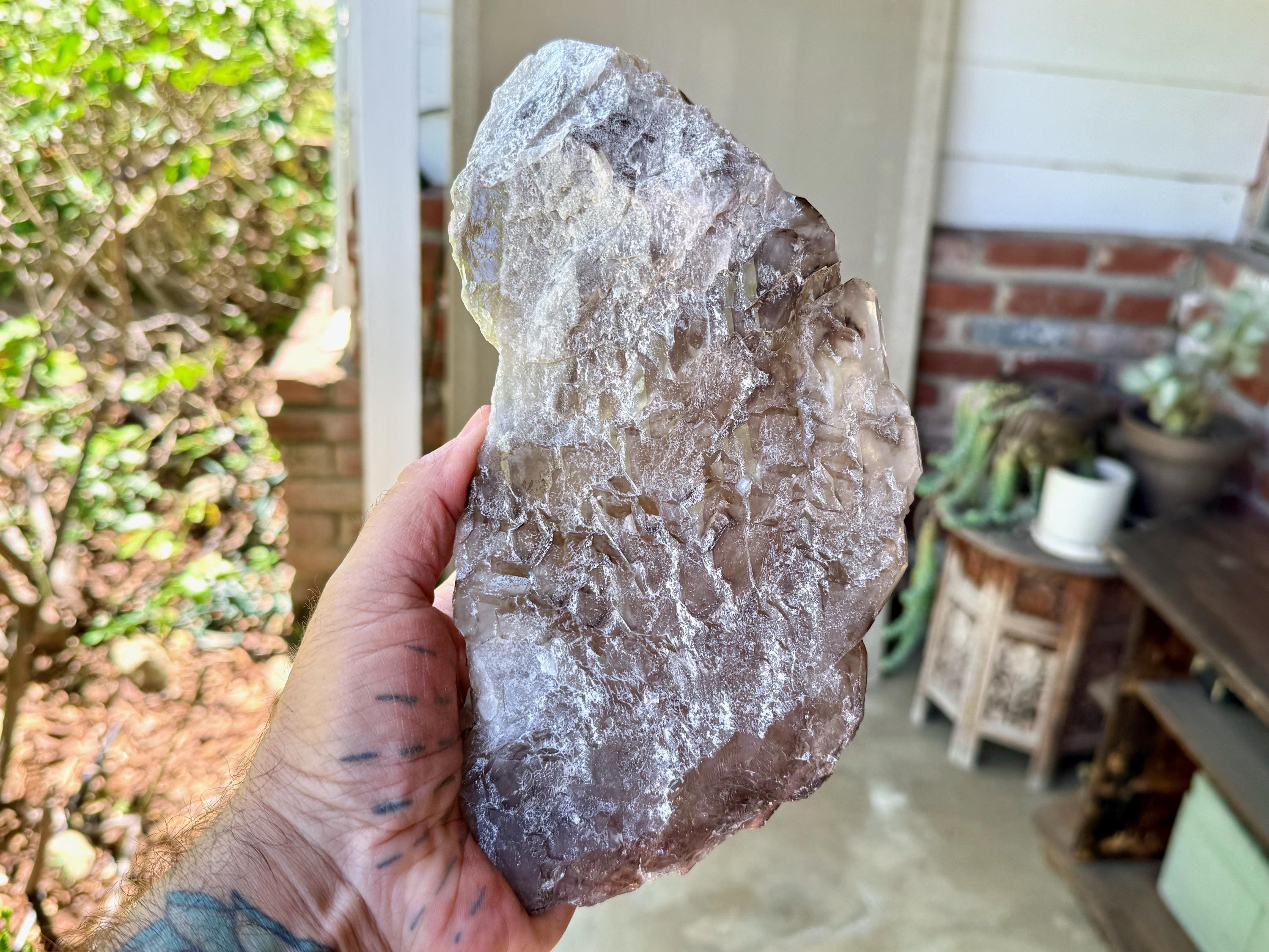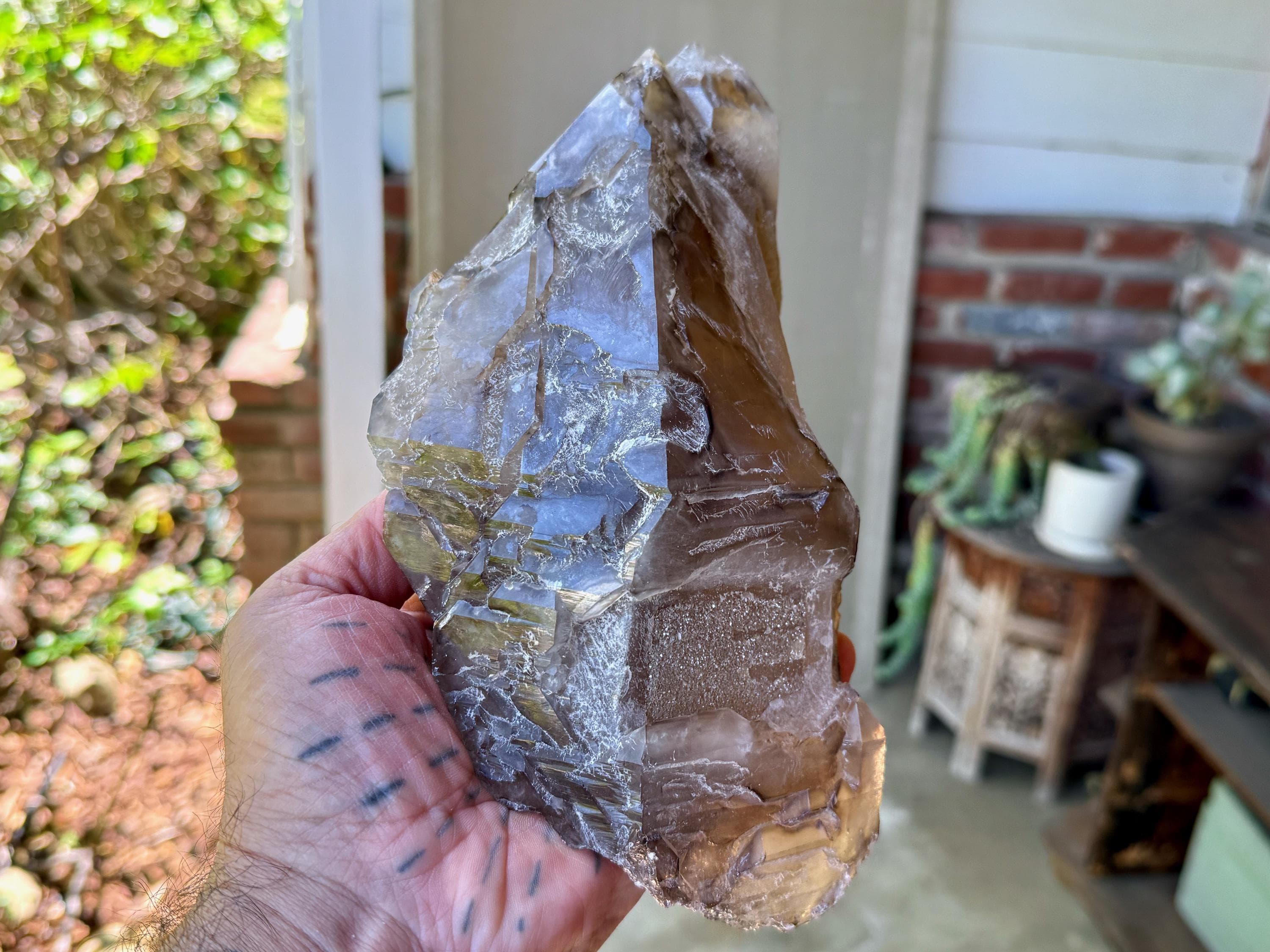 A giant Elestial Smoky Quartz with gorgeous luster, rich smoky hues and marvelous "jacare" textures throughout its body!