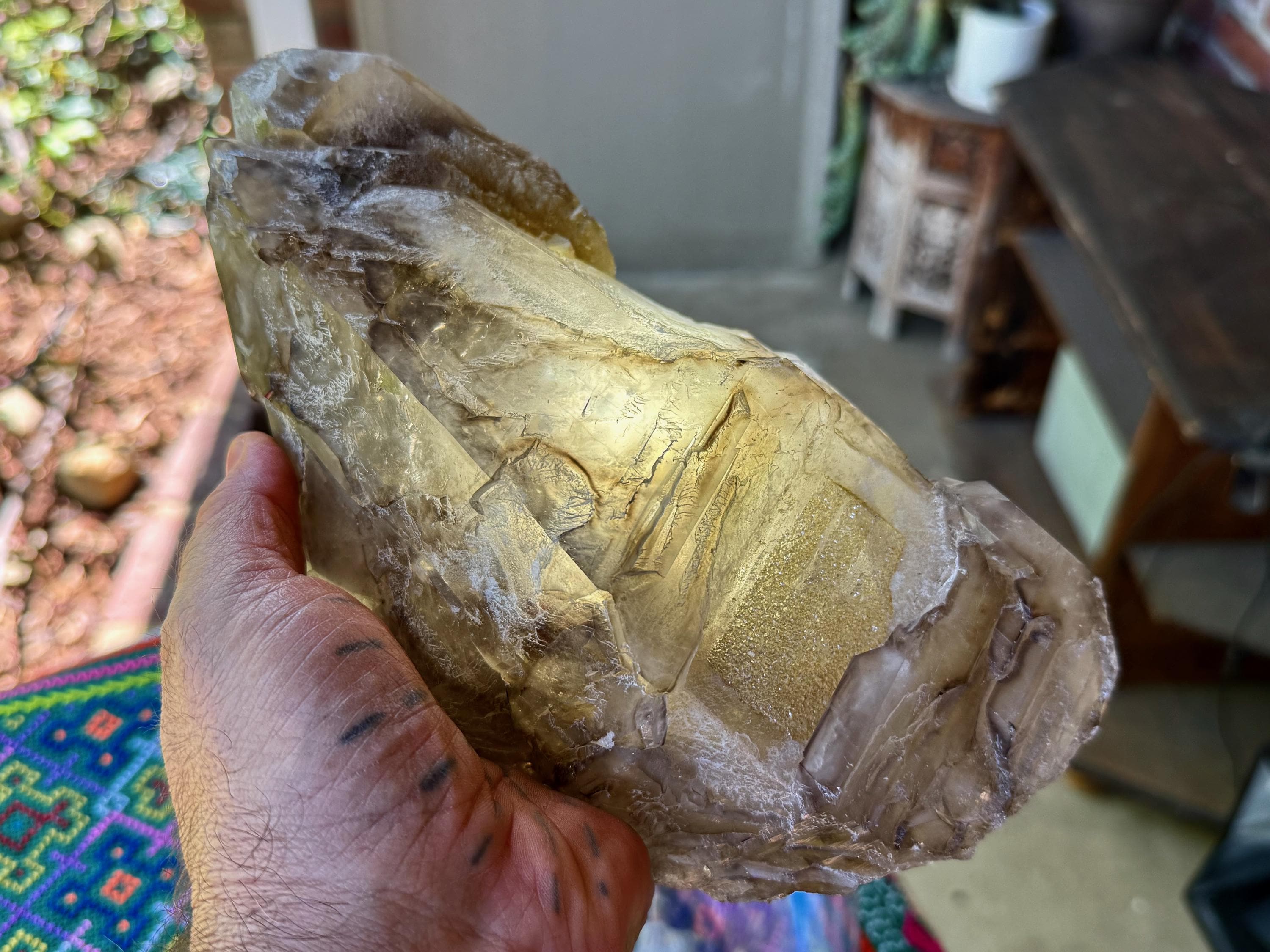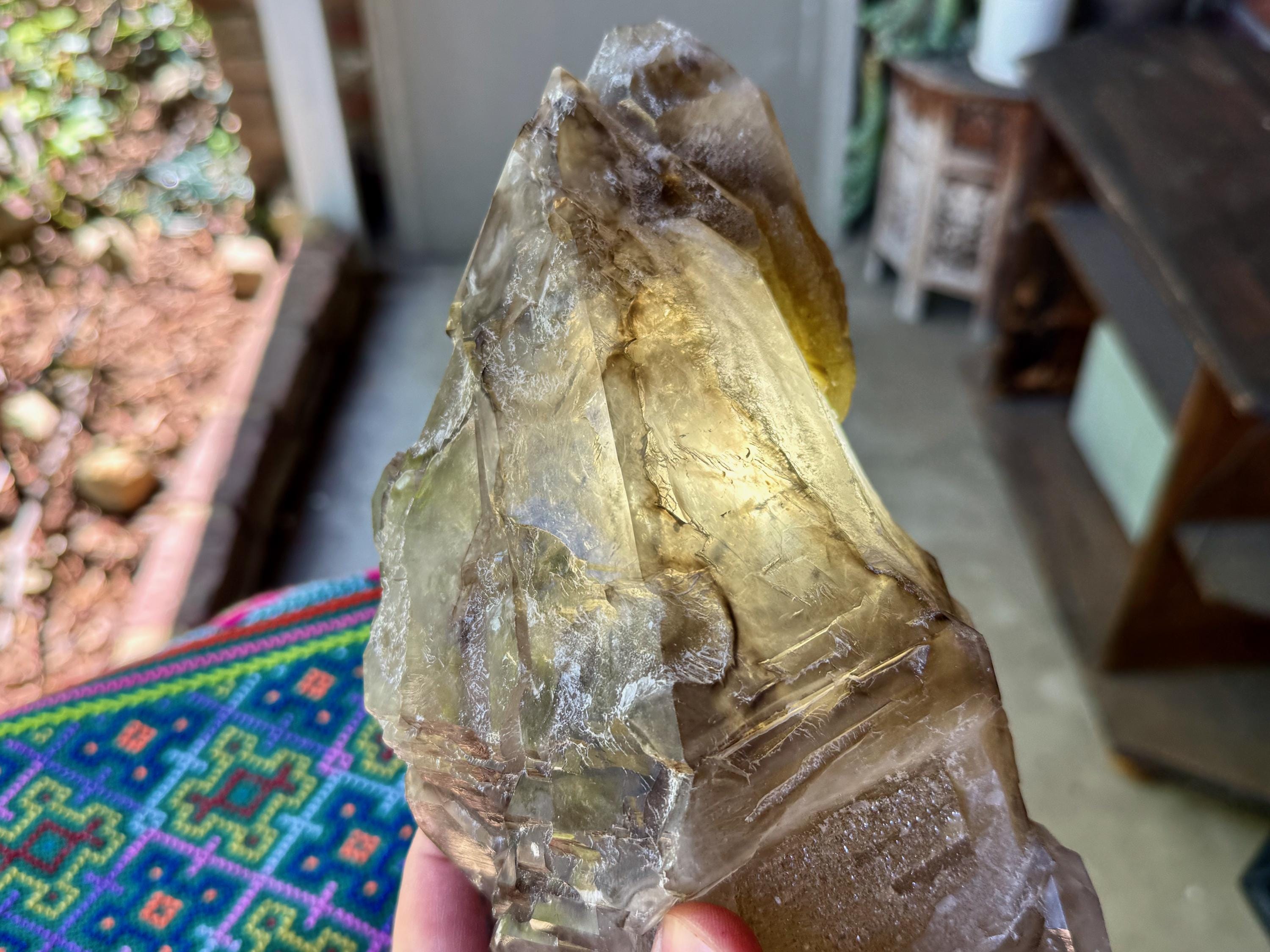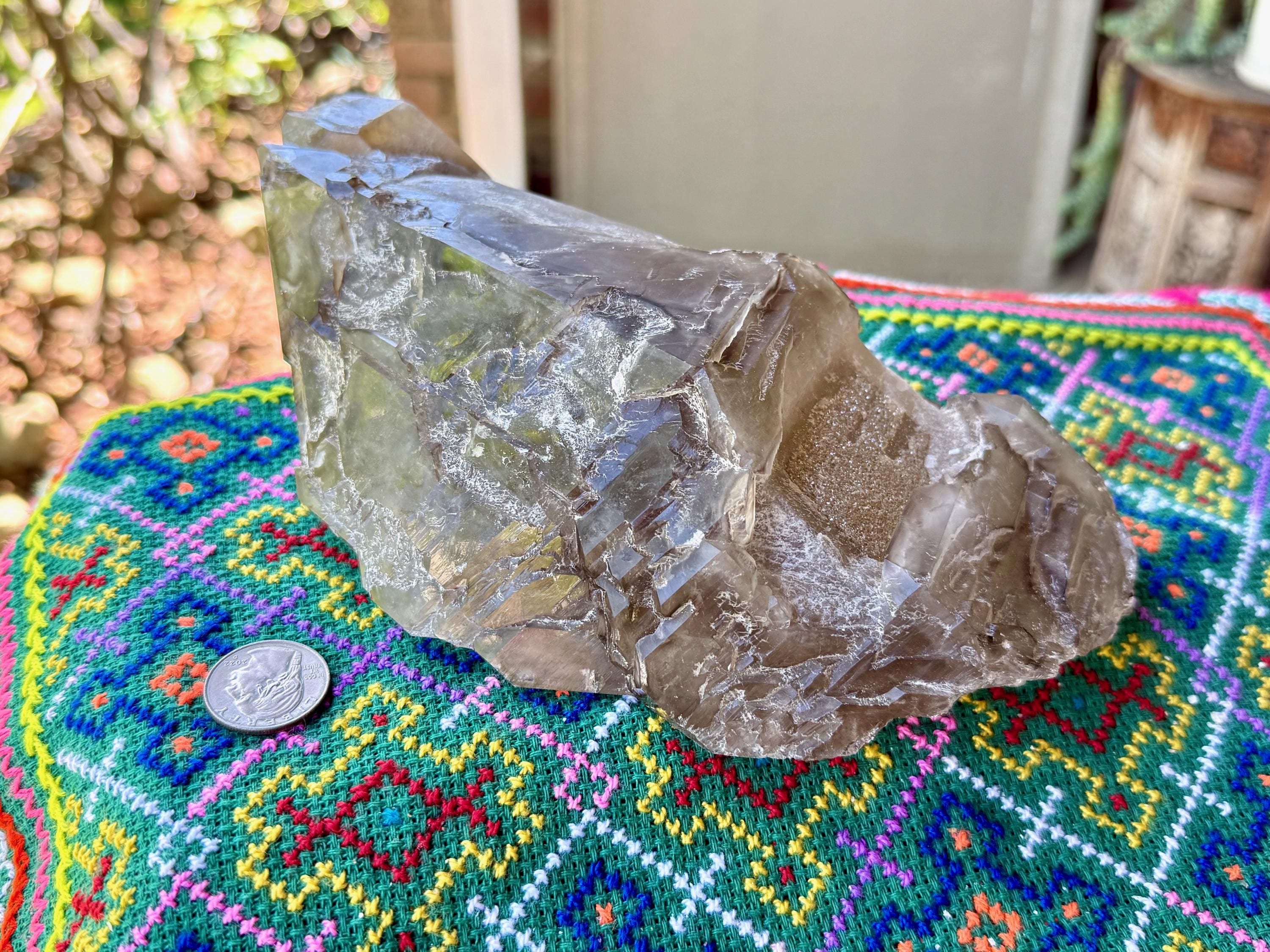 This crystal is FULLY terminated all around, making this a "Galactic Key" formation. This indicates that the crystal separated from a much larger crystal, at some point while still in the Earth — due to shifting tectonic activity —and over the course of millions of years, managed to heal itself. Crystals with this formation tend to have remarkable healing energies.