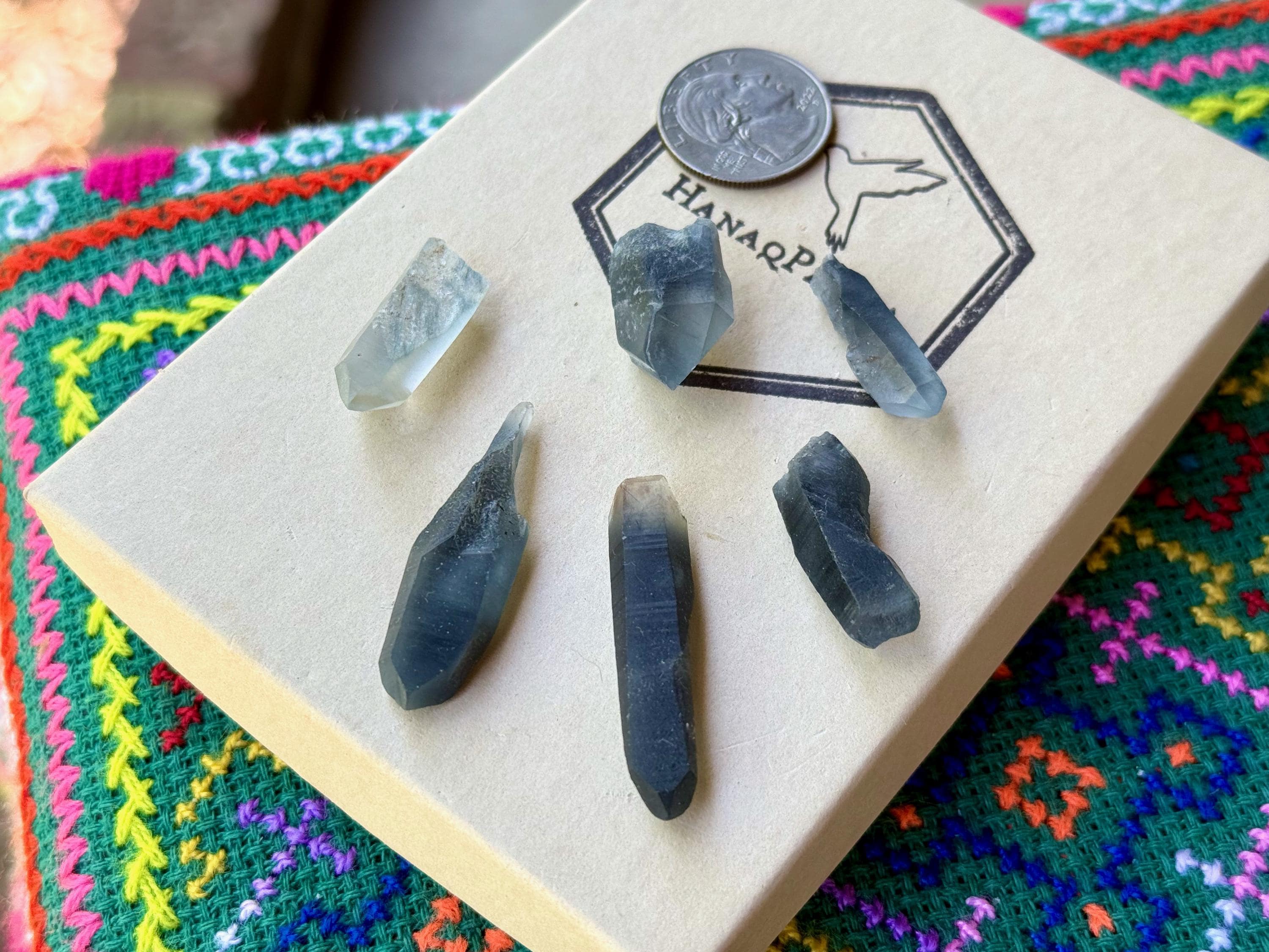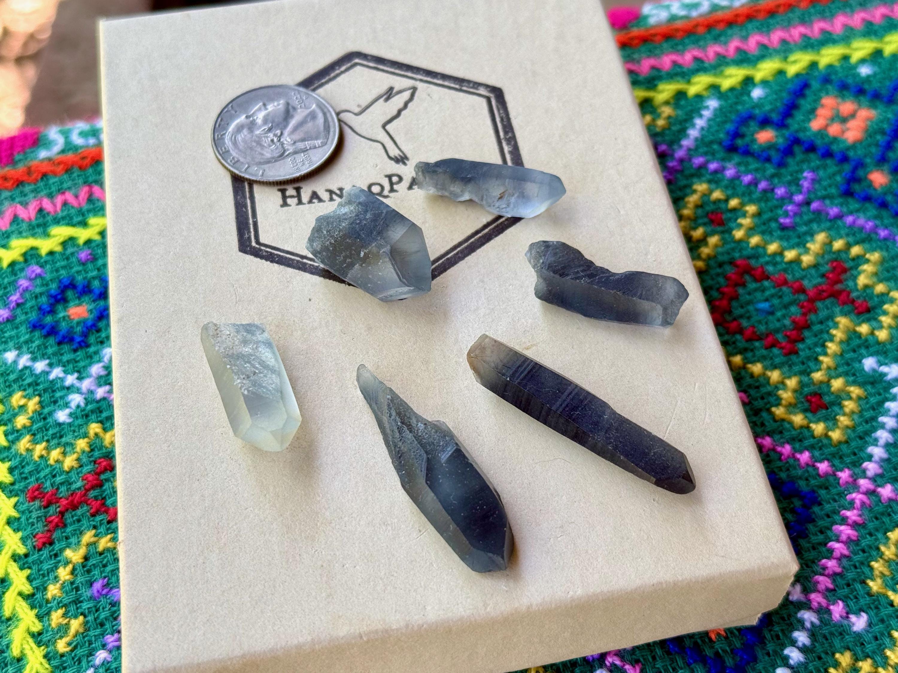 These crystals may be ideal for use in crystal grids, jewelry, etc. (note the Quarter in the photo for size reference and the measurements below).