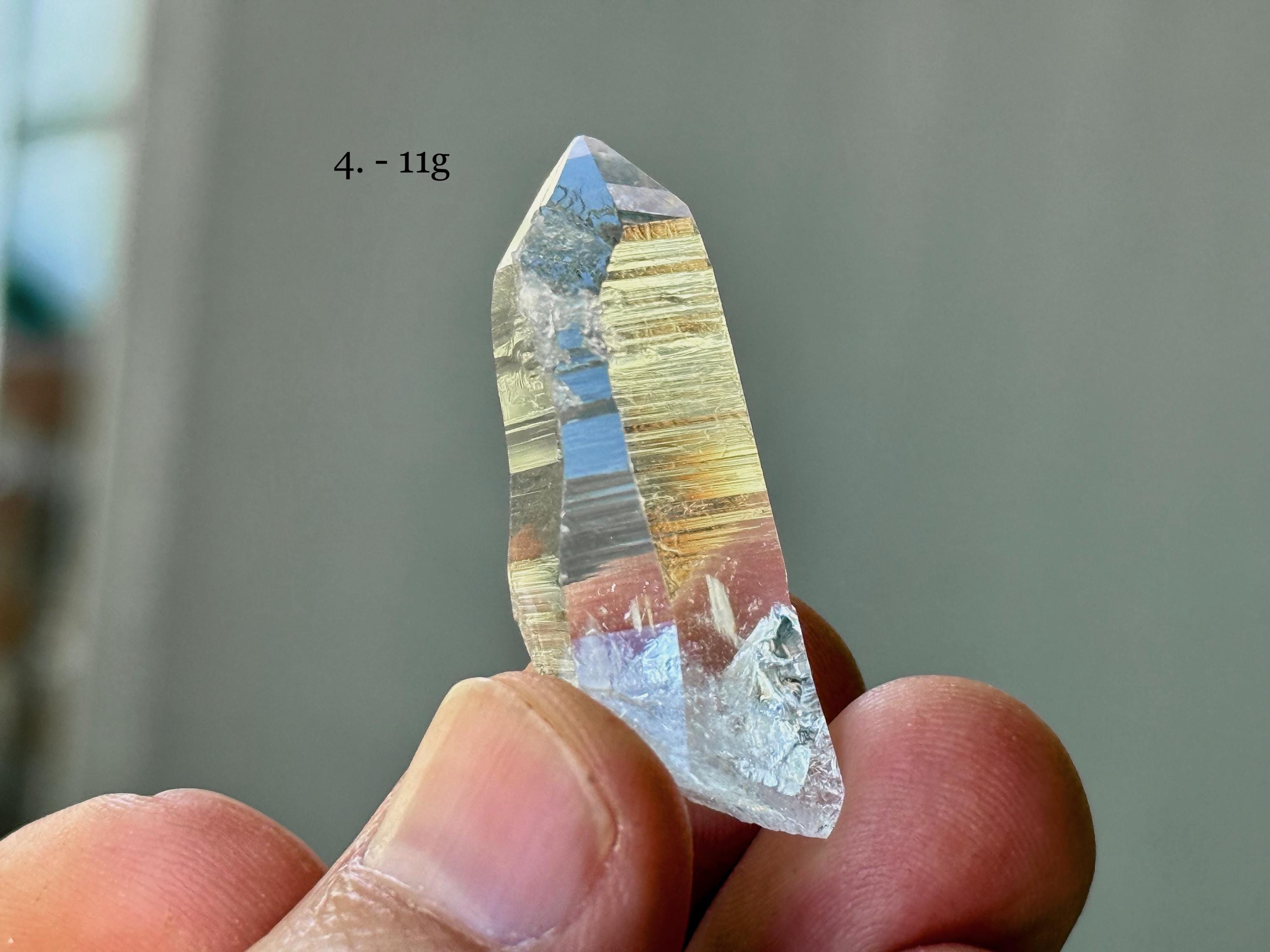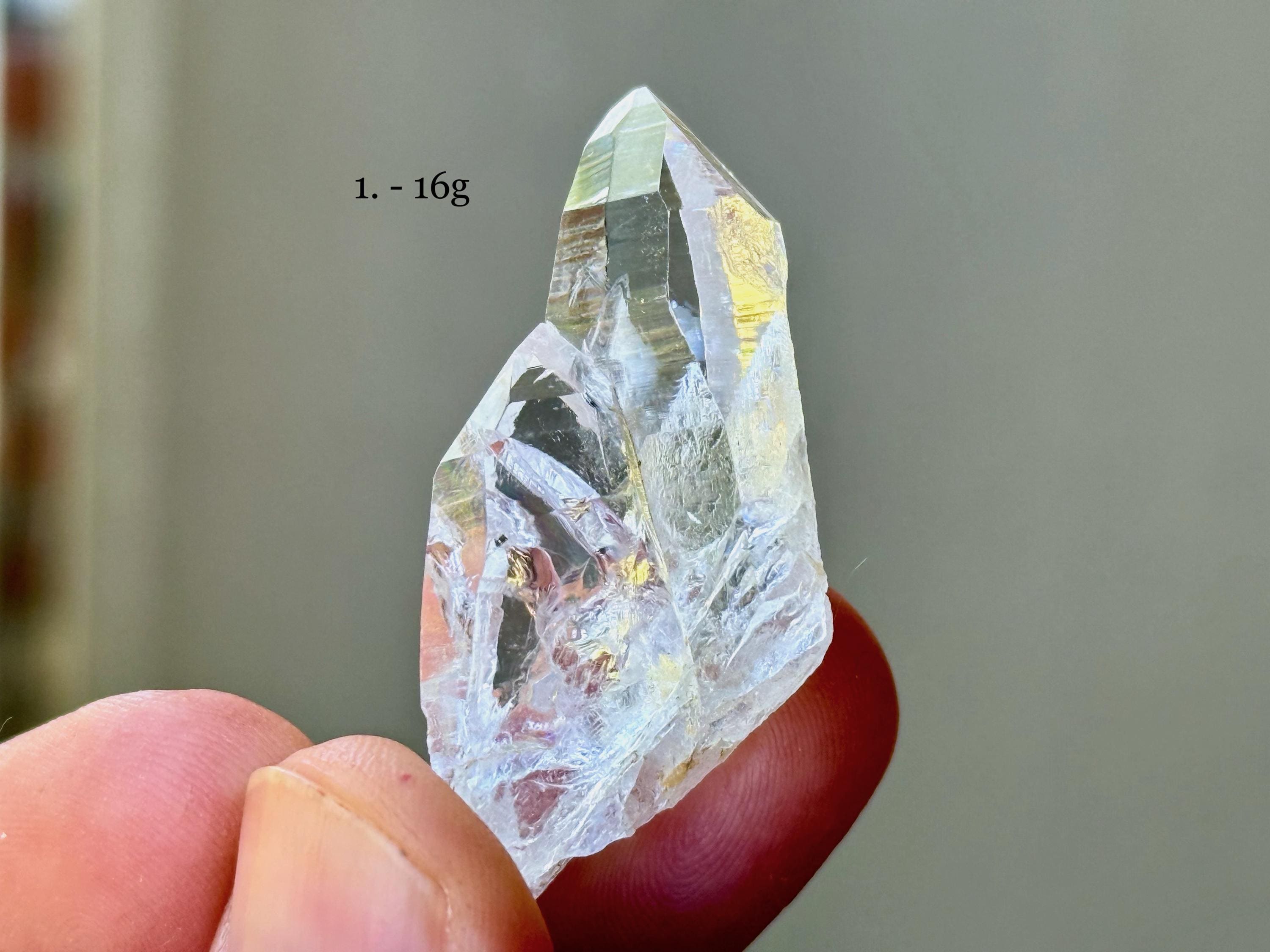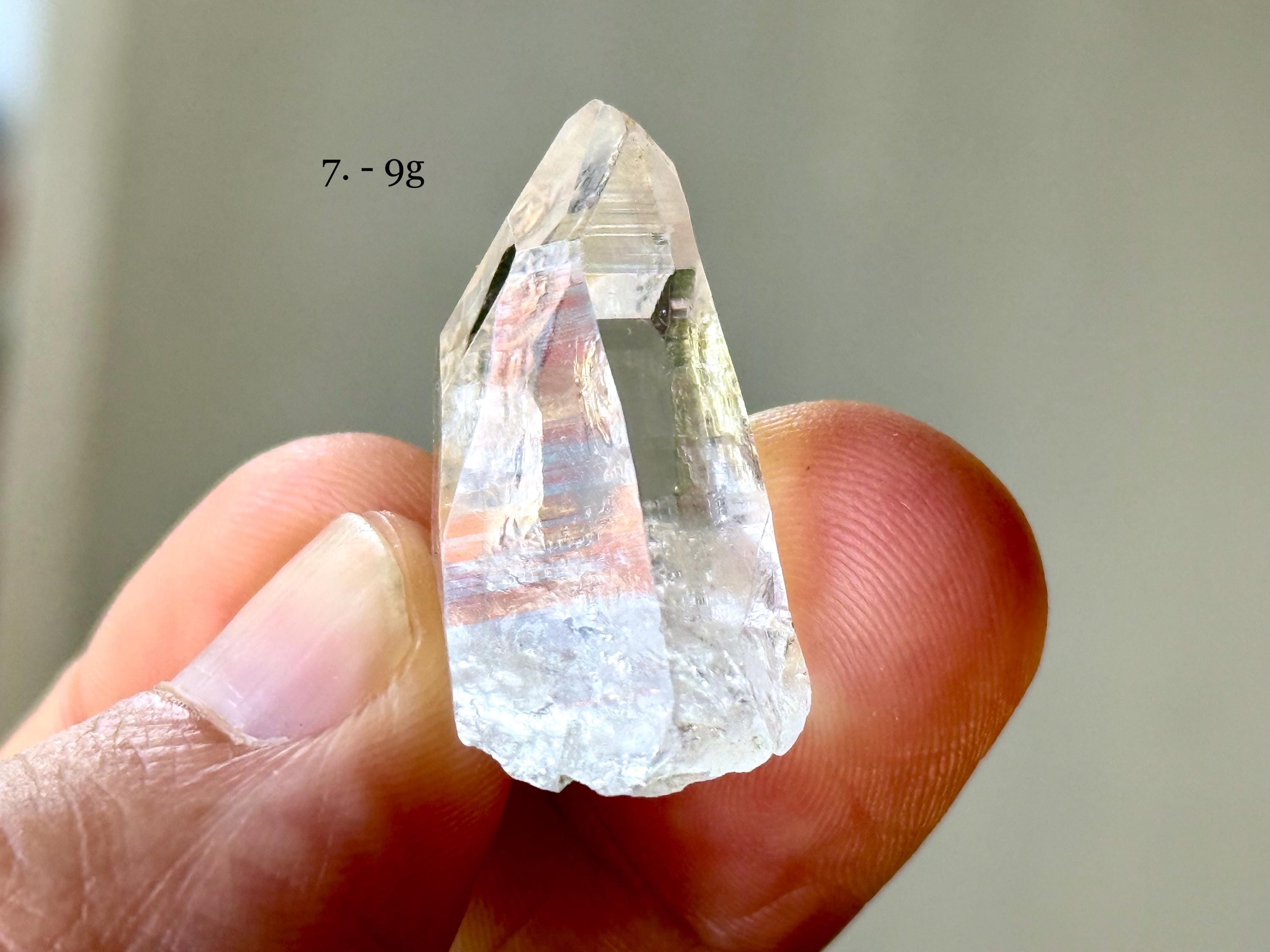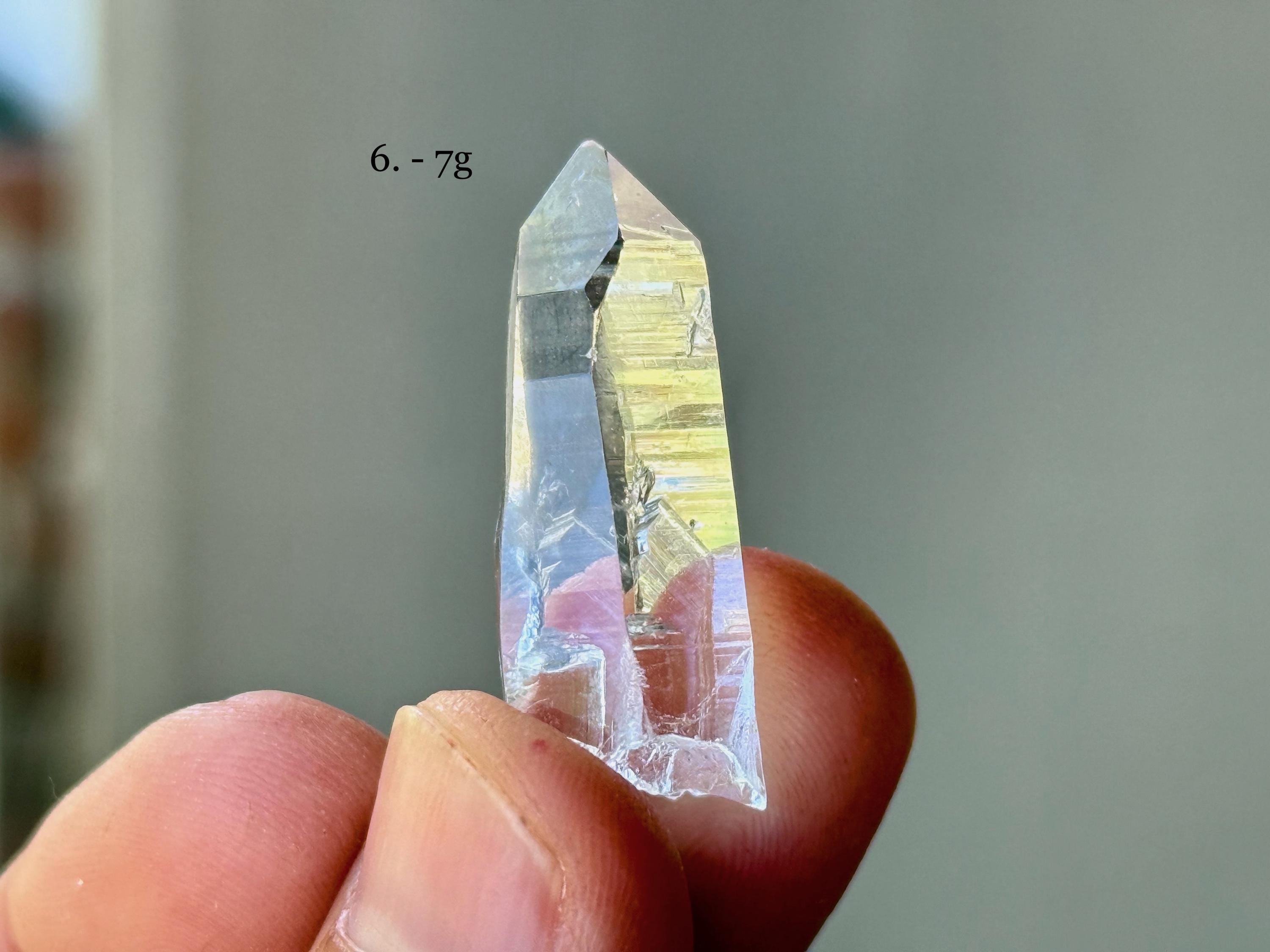 *Please note these crystals are clear and colorless. Any yellow hues in the photos are due to the natural sunlight and surrounding environment reflecting off the crystal surfaces.