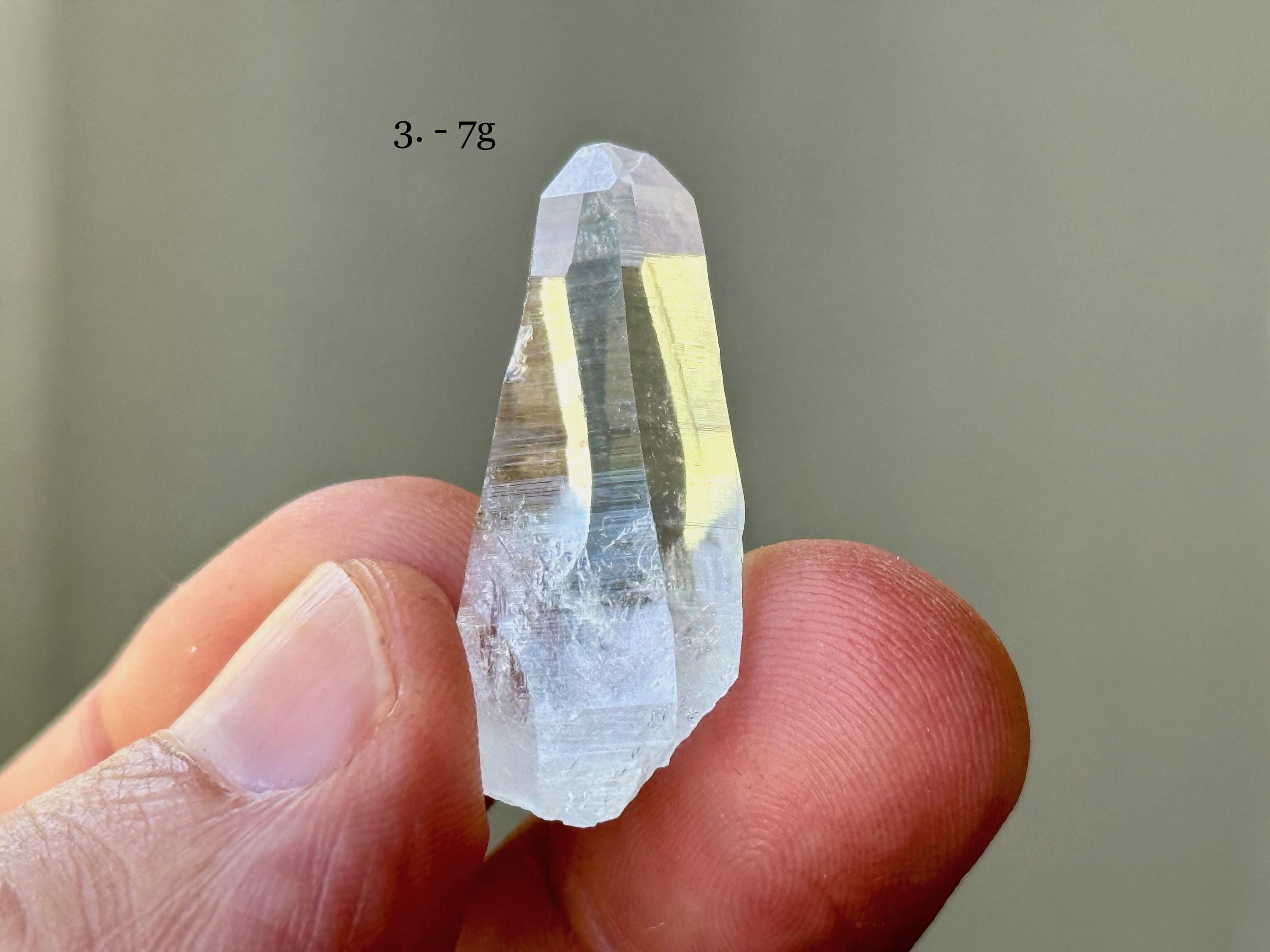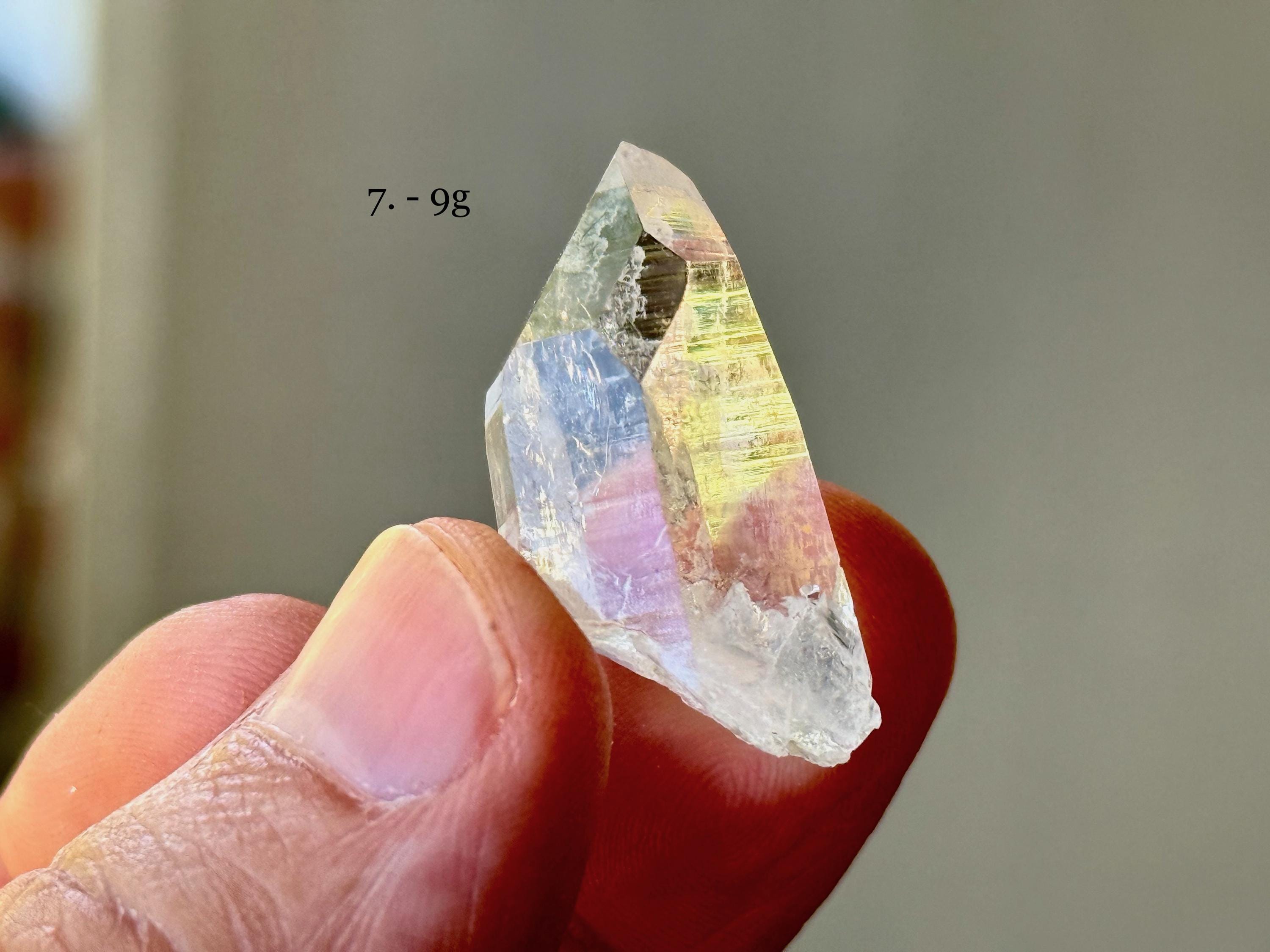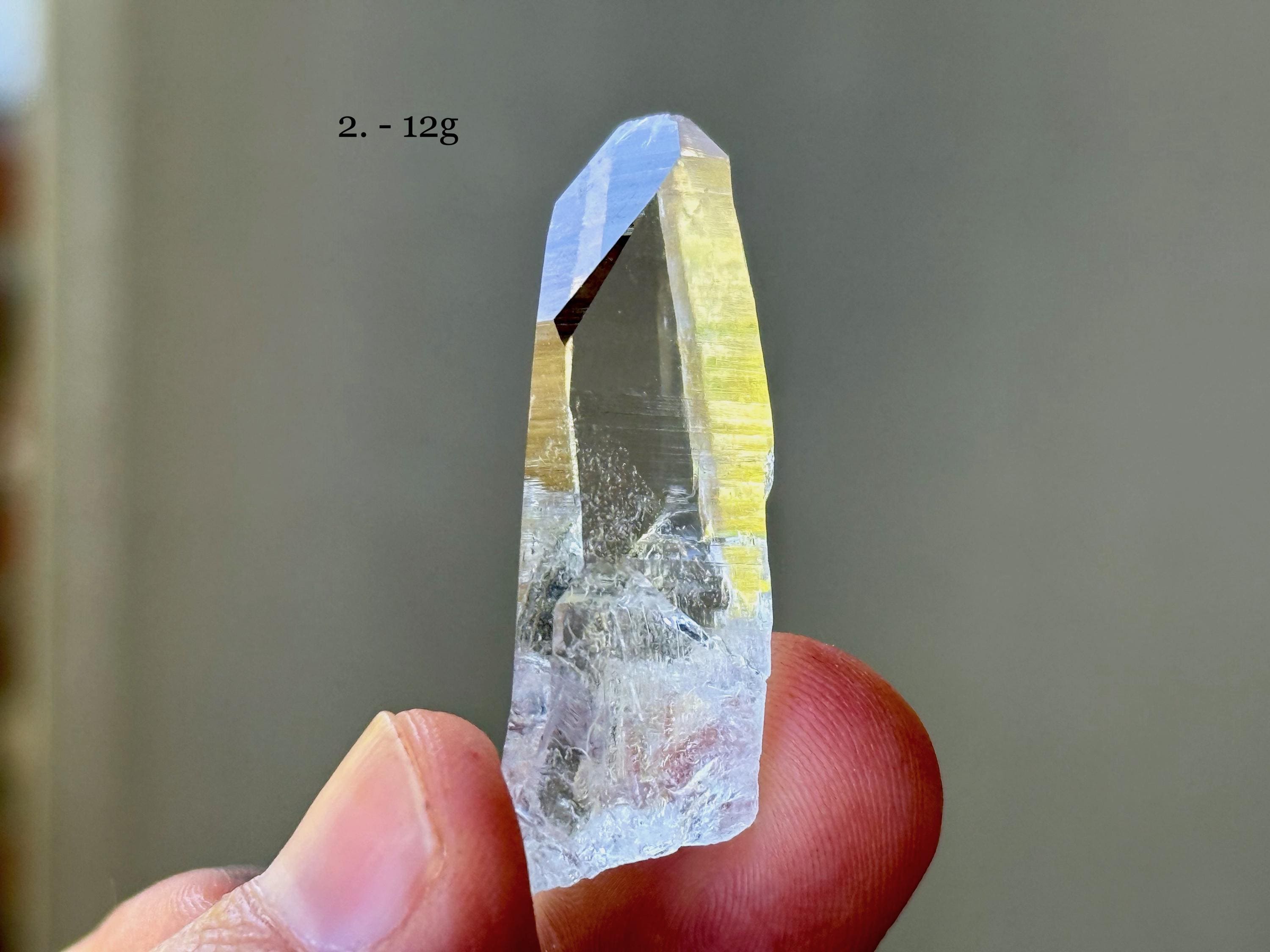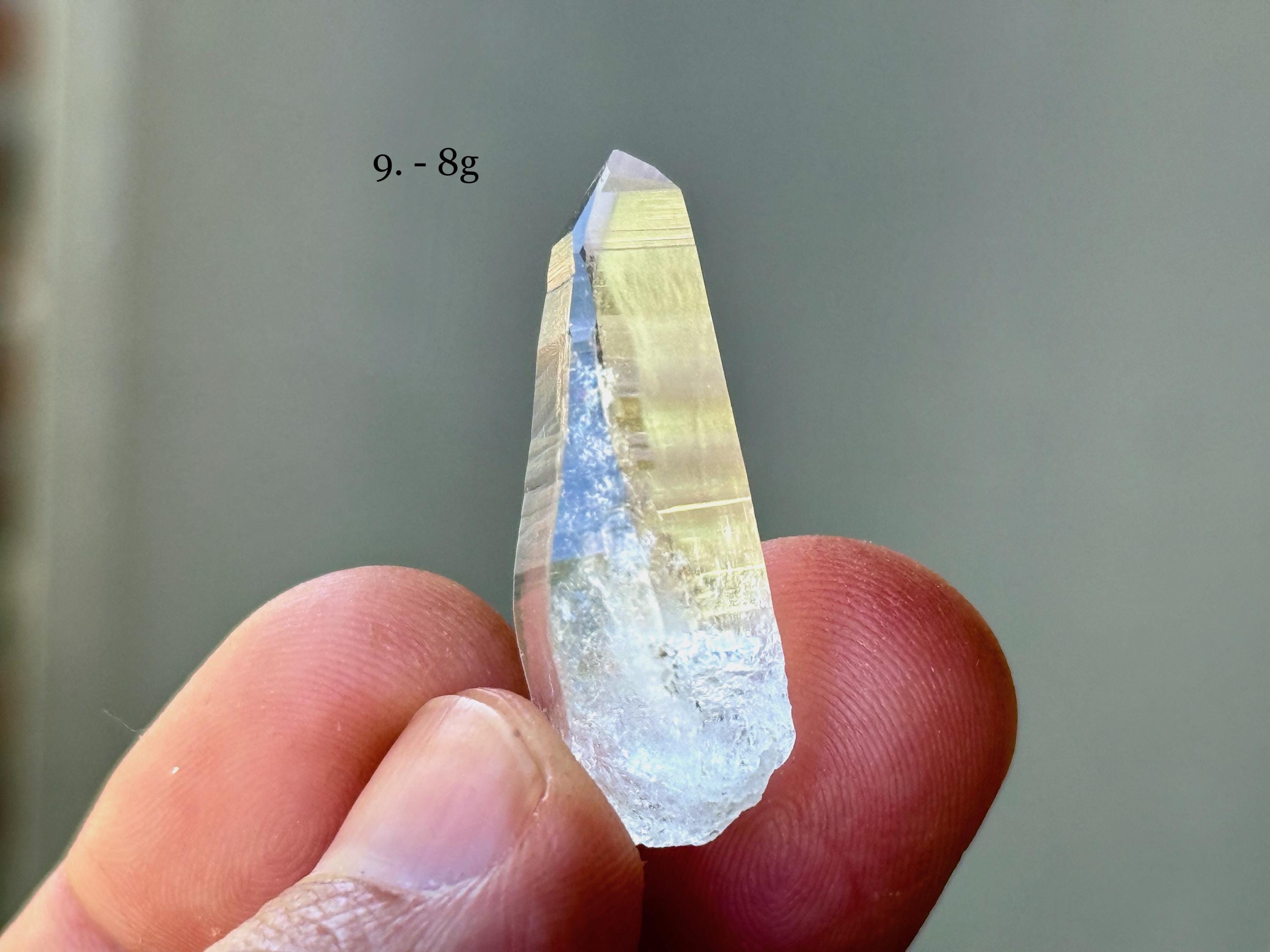 *Please note these crystals are clear and colorless. Any yellow hues in the photos are due to the natural sunlight and surrounding environment reflecting off the crystal surfaces.
