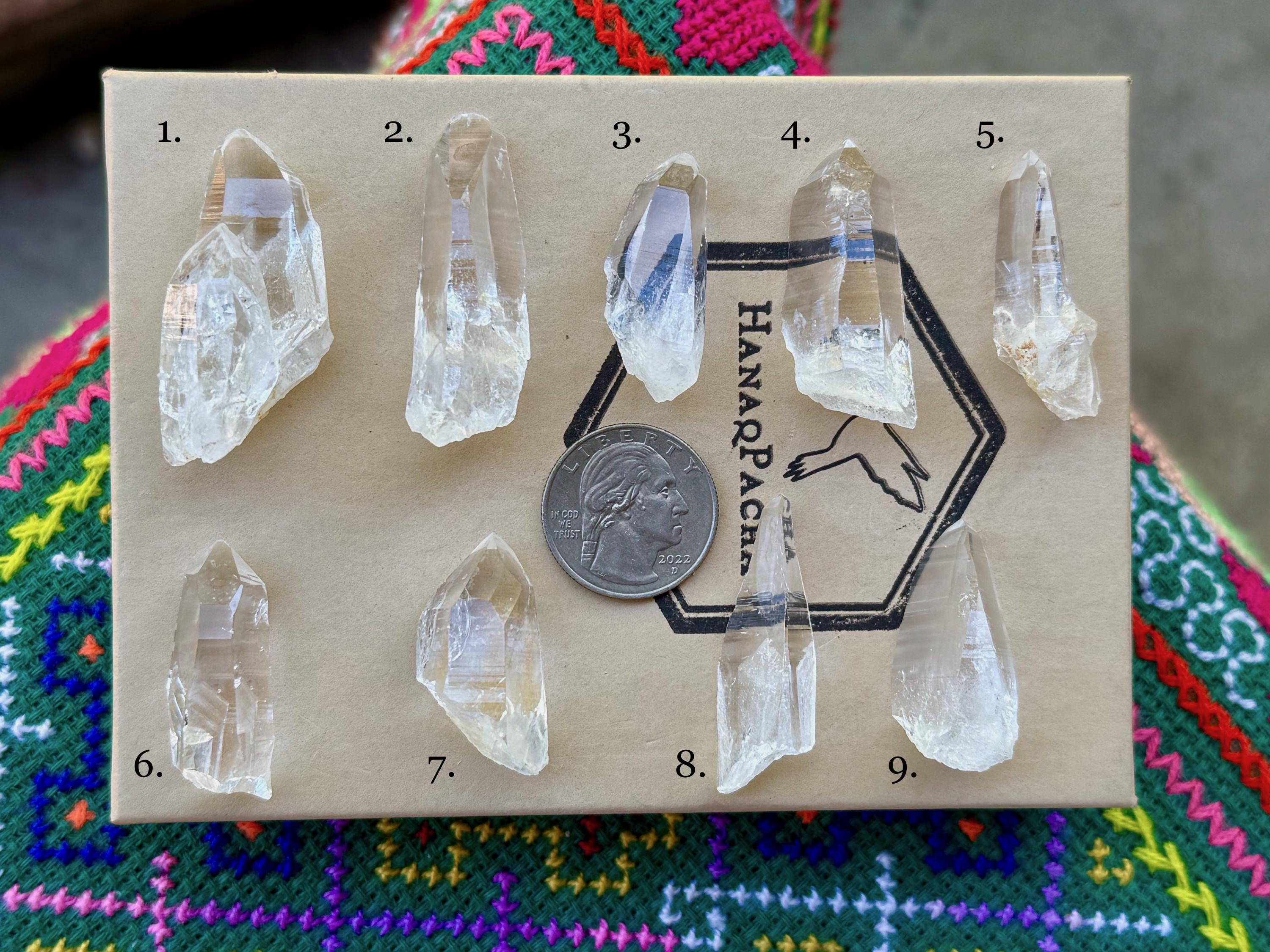 These natural Peñas Blancas Lemurian Quartz crystals come from a 2019 find in the Peñas Blancas Mine, Boyaca, Colombia. Each selection is numbered, simply select the one(s) you'd like from the dropdown.