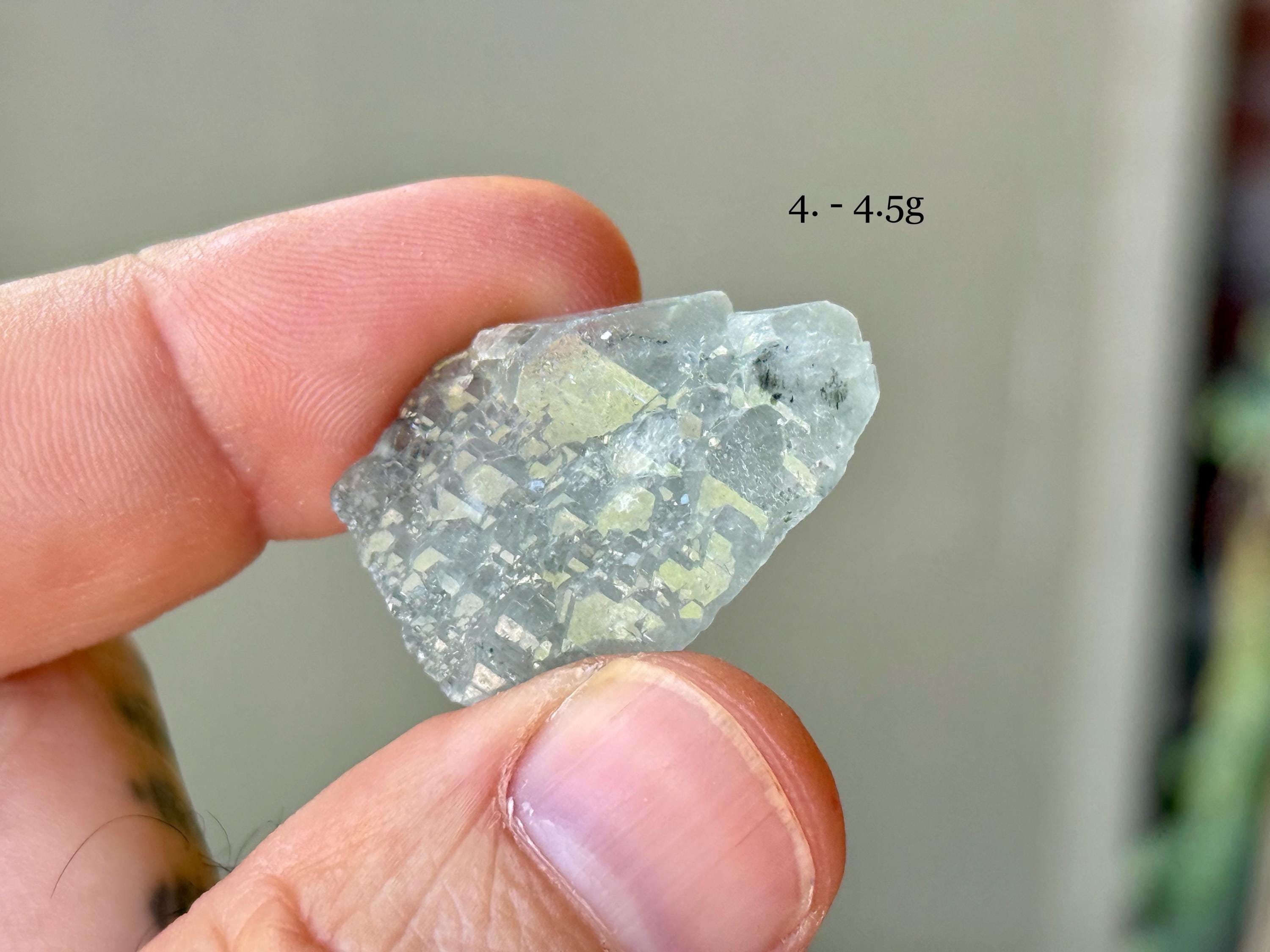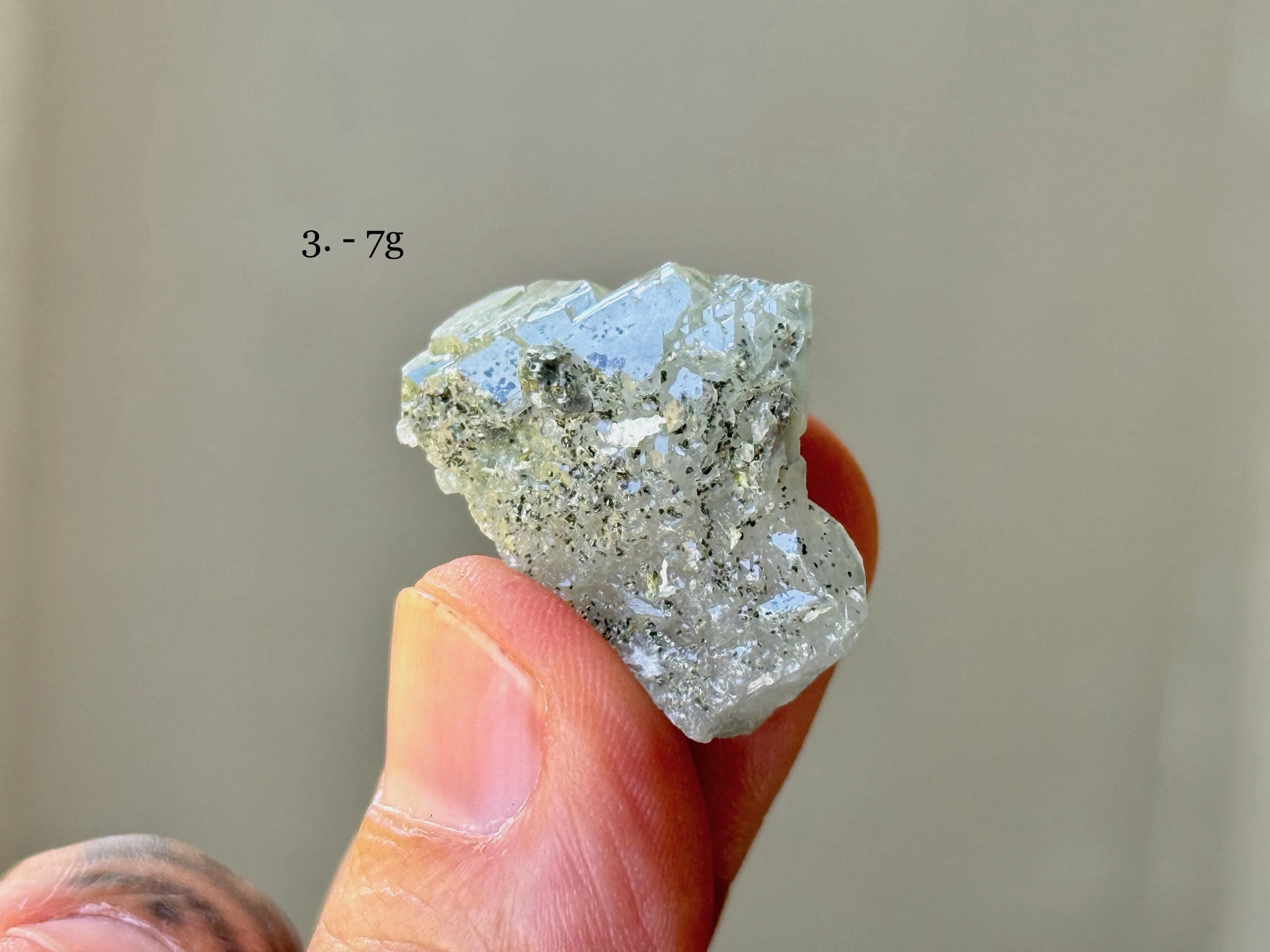 Each crystal is between 1" - 1.5" (2.5 cm - 4 cm) tall and weighs between 4g - 12g.