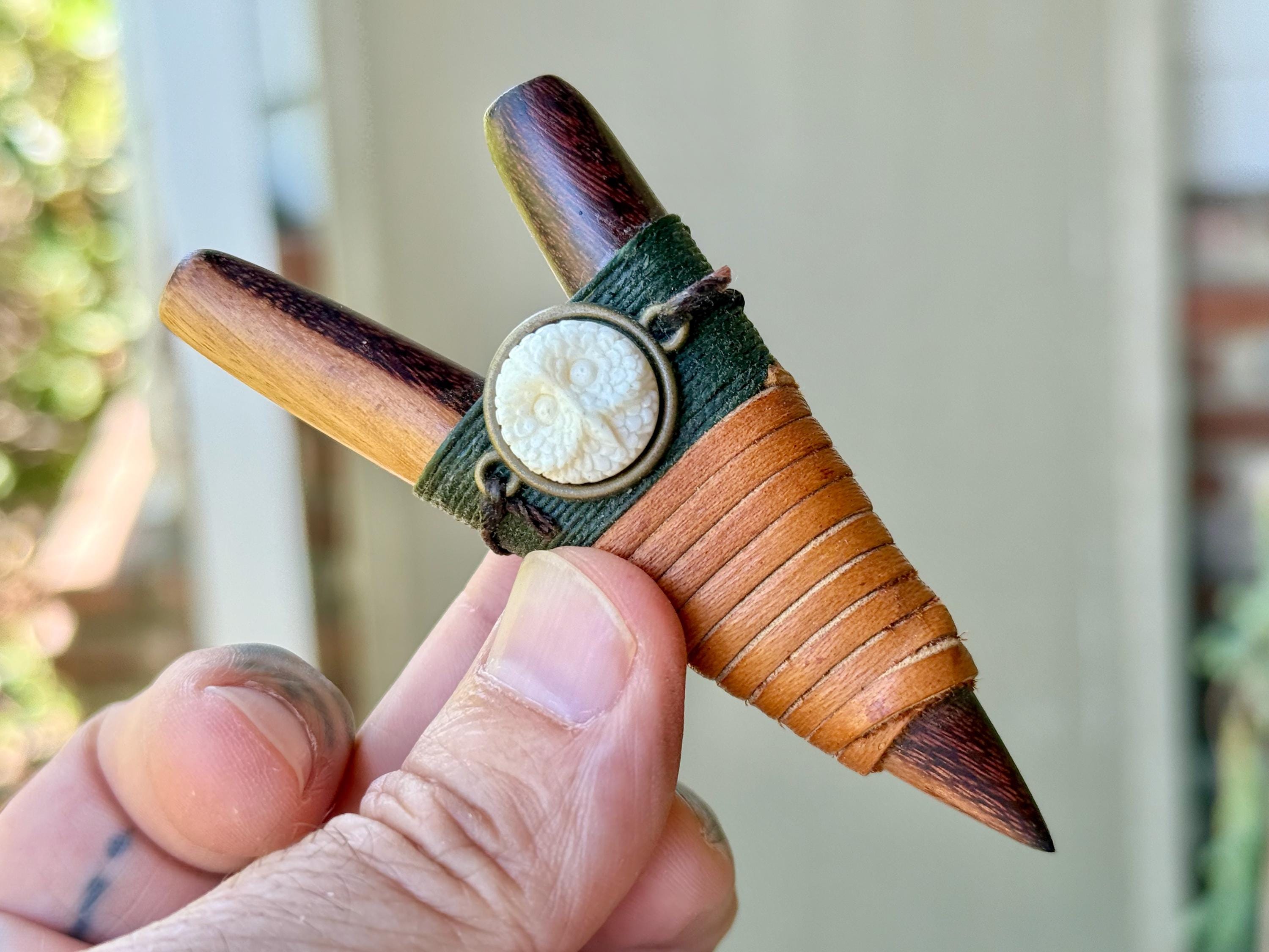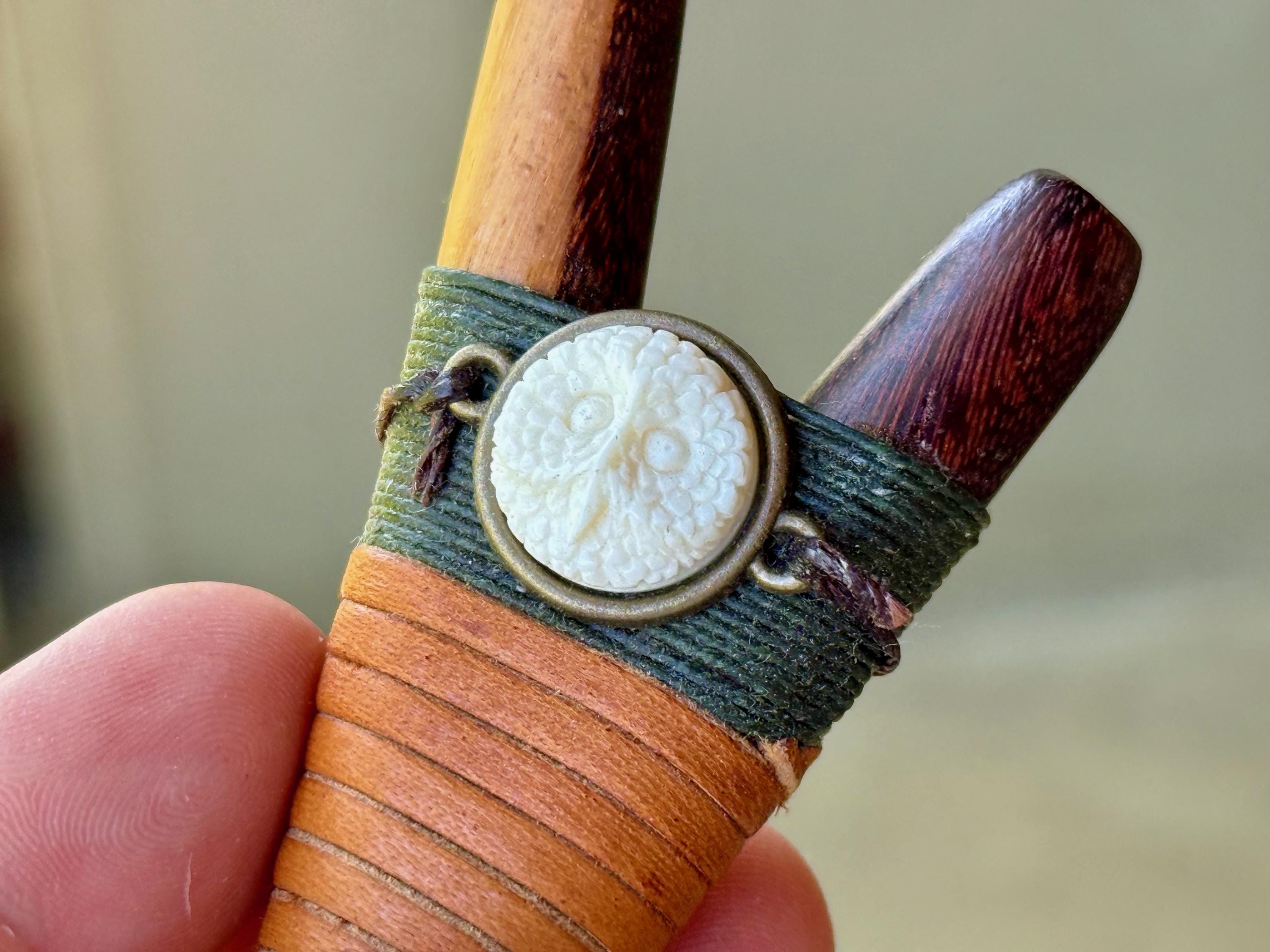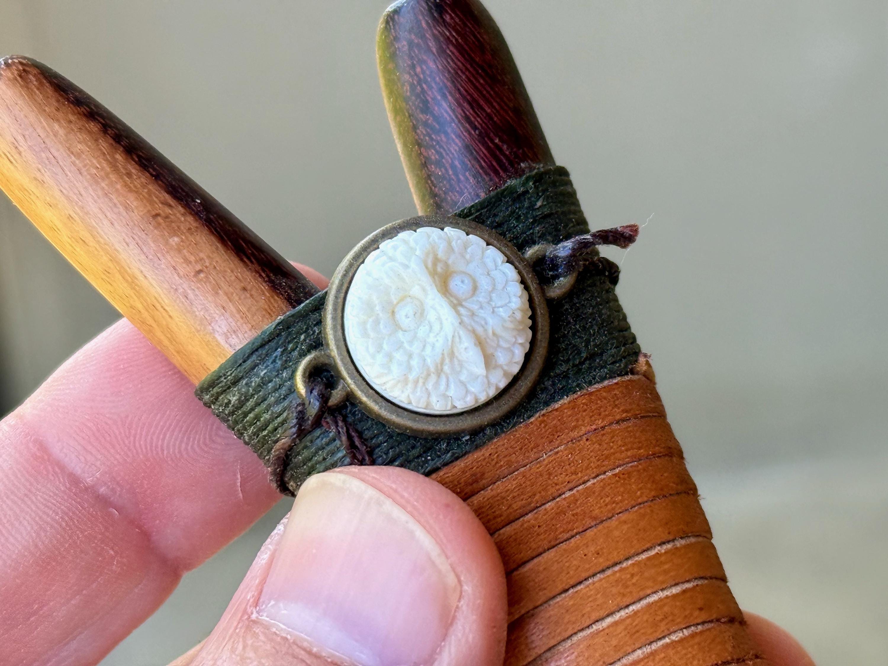 Additional ornamentation: Carved B*ne (Bovine) Owl cabochon