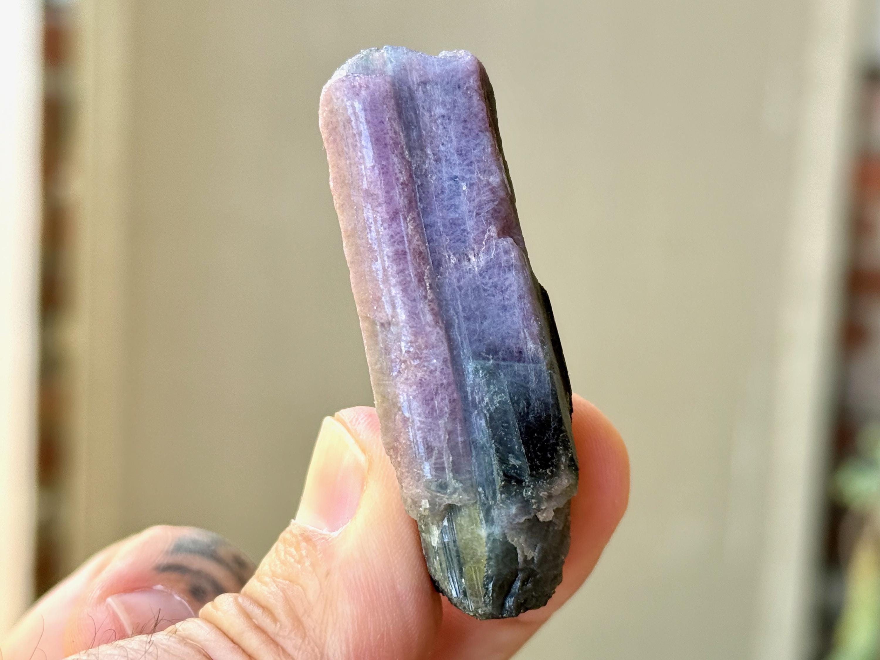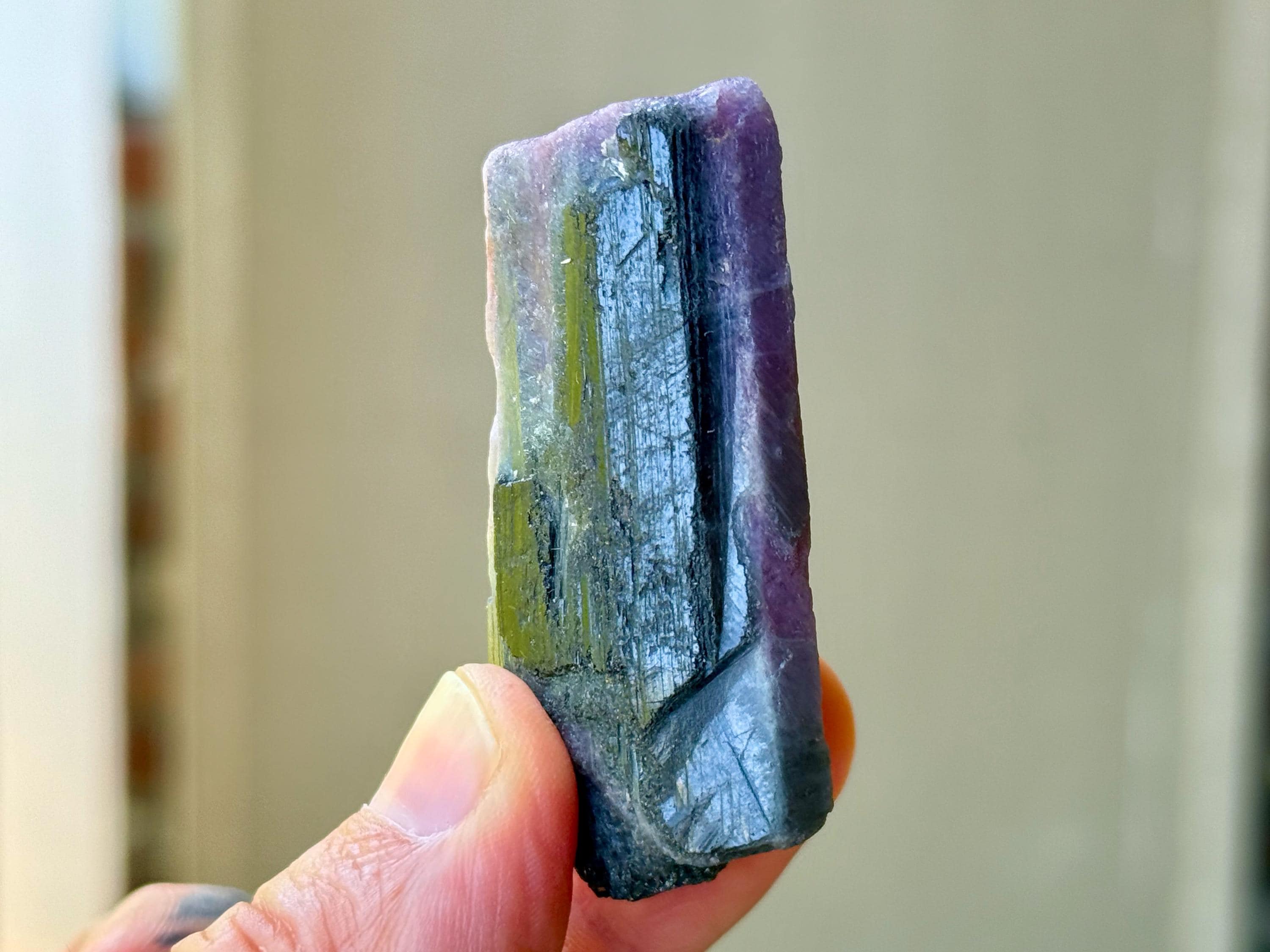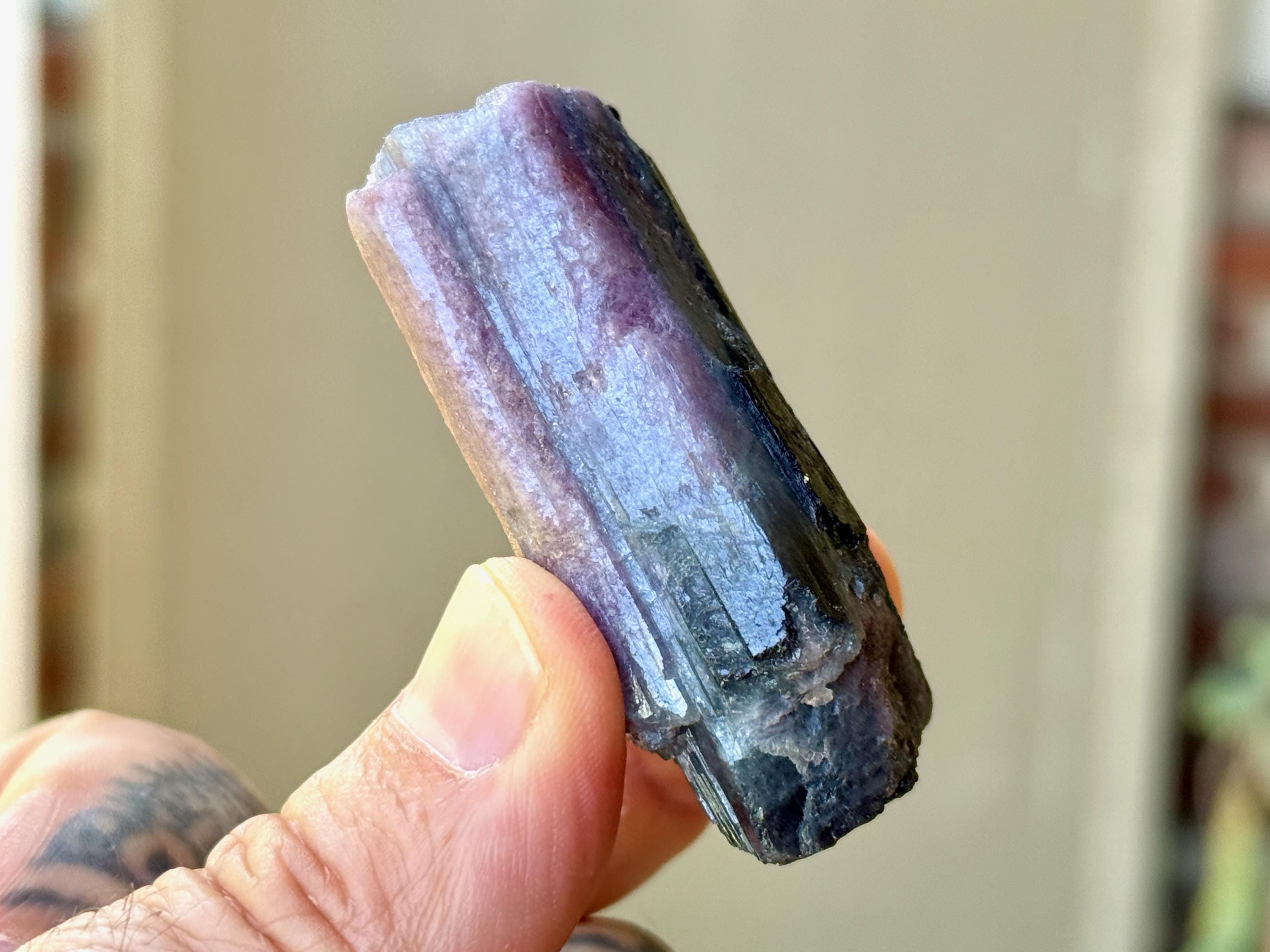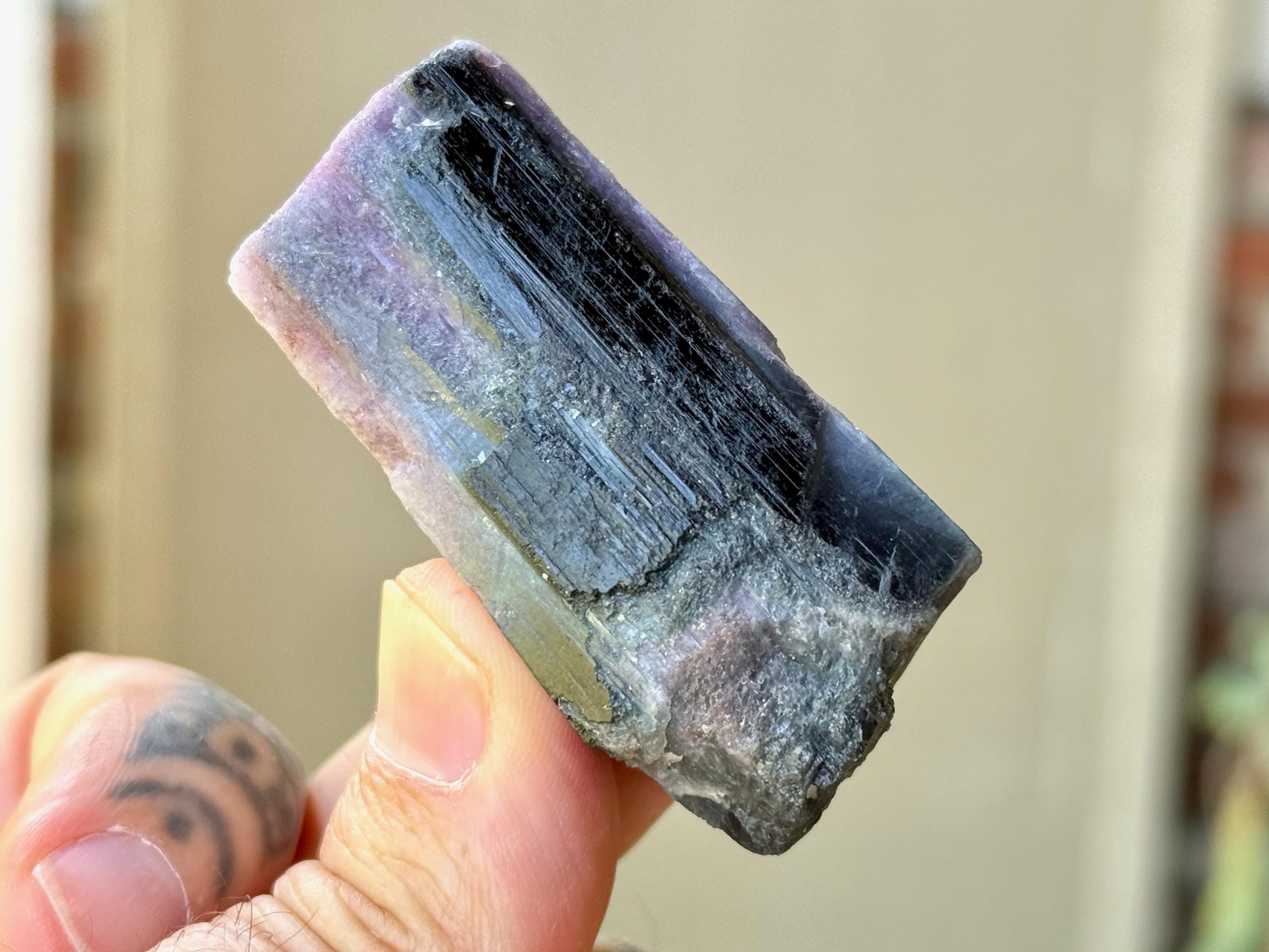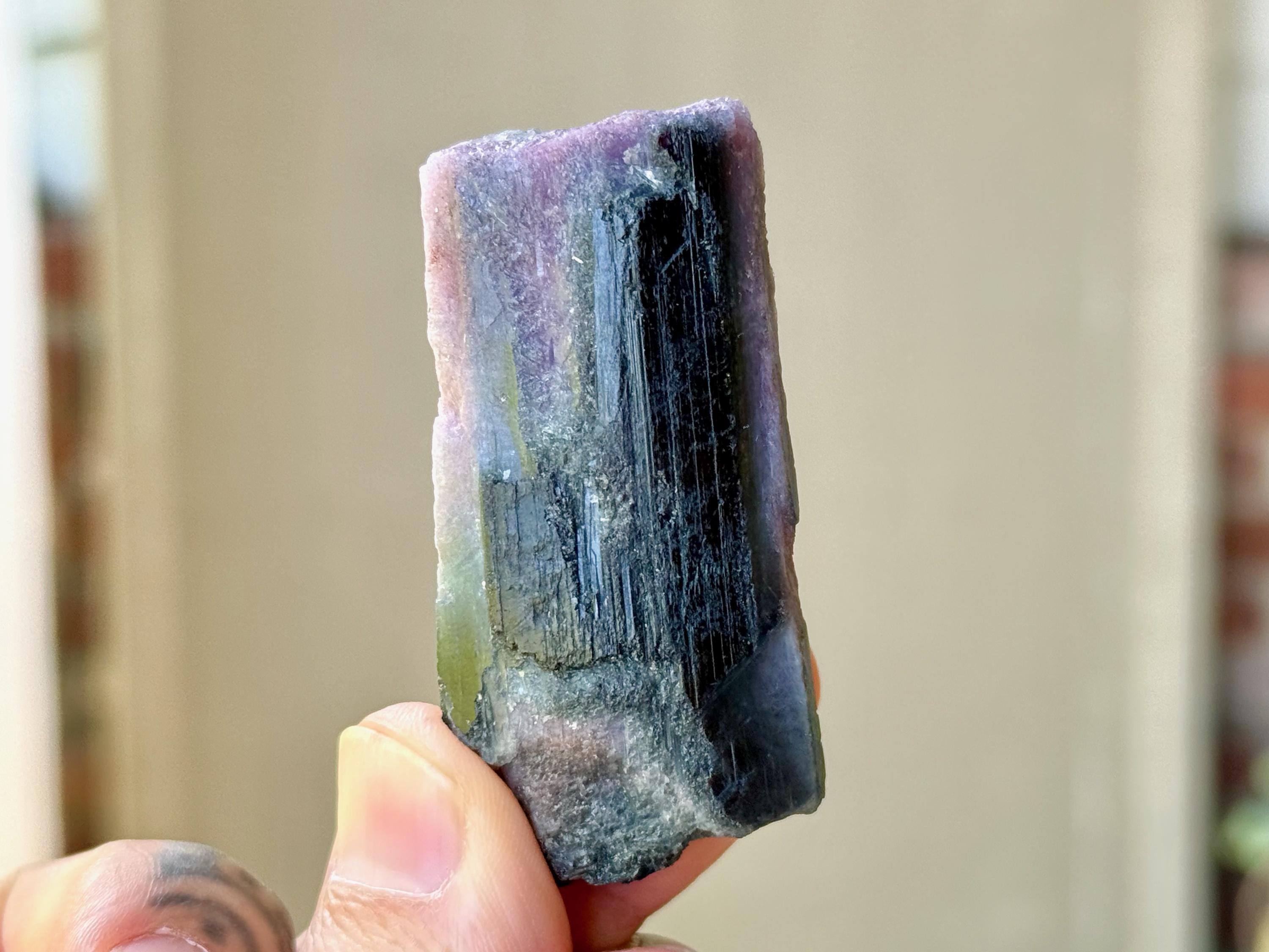 Vibrant colors to this beautiful Paraiba Tourmaline, with a dark pinkish-purple "core" and a portion of midnight blue "skin" on the exterior. This is the largest piece we have from this collection.