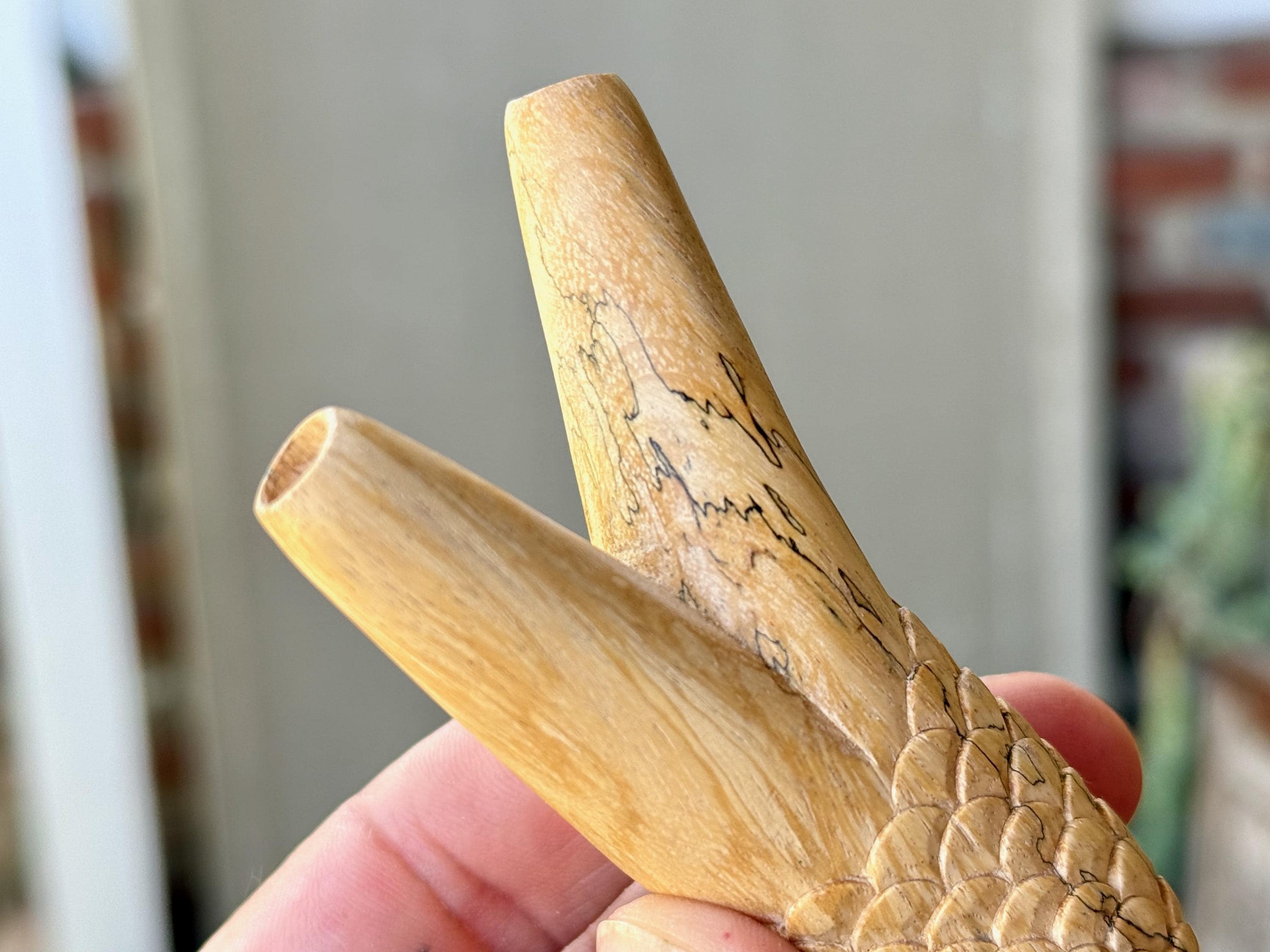 Single Block Kuripes such as this one are carved from a solid piece of wood and therefore possess no fitted/glued joints. Because of this, there is less likelihood of breakage and the airflow is incredibly efficient, powerful and precise.