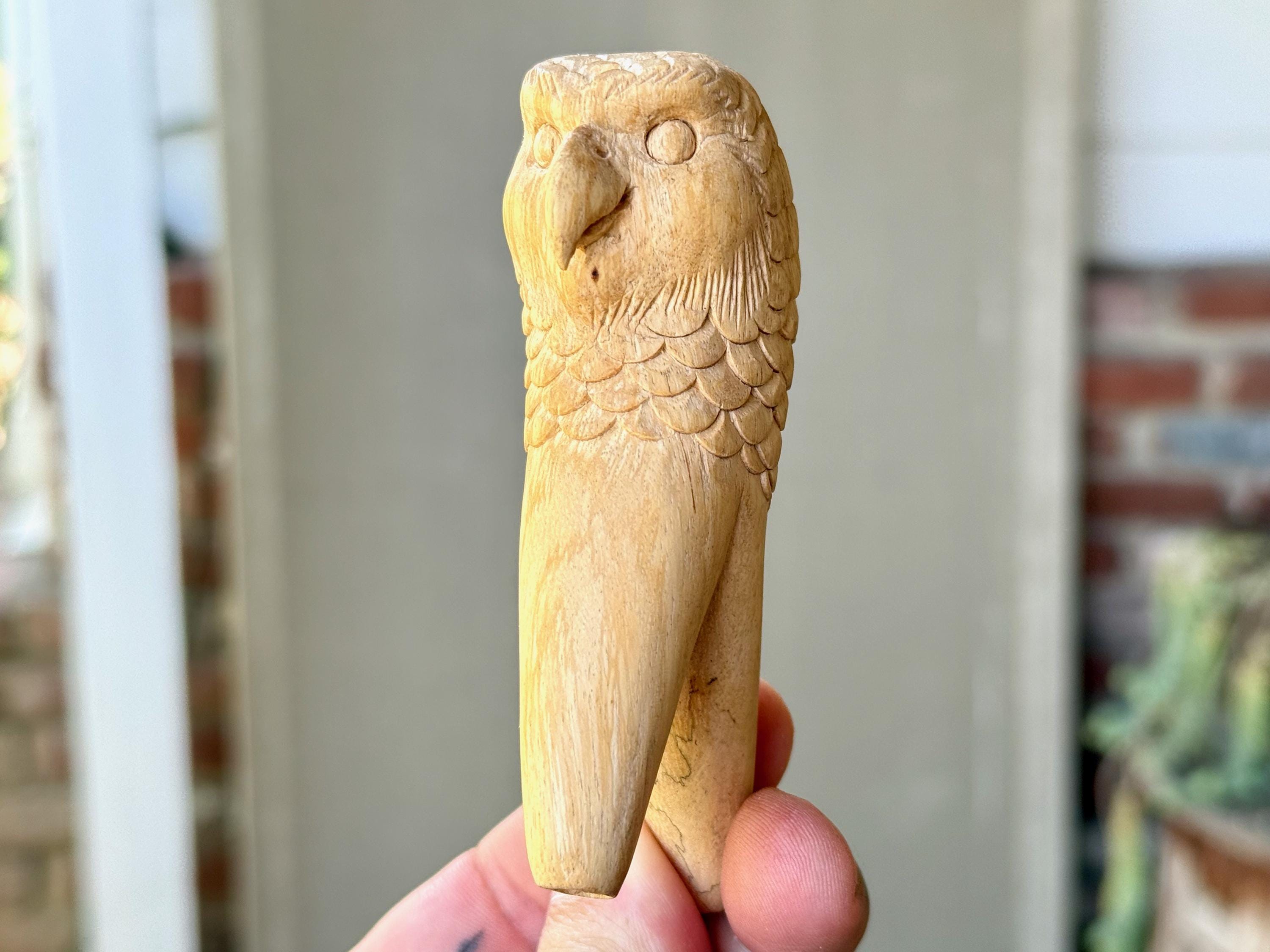 This Owl Kuripe — used for self-administering hapé — was hand carved from native tropical hardwood.