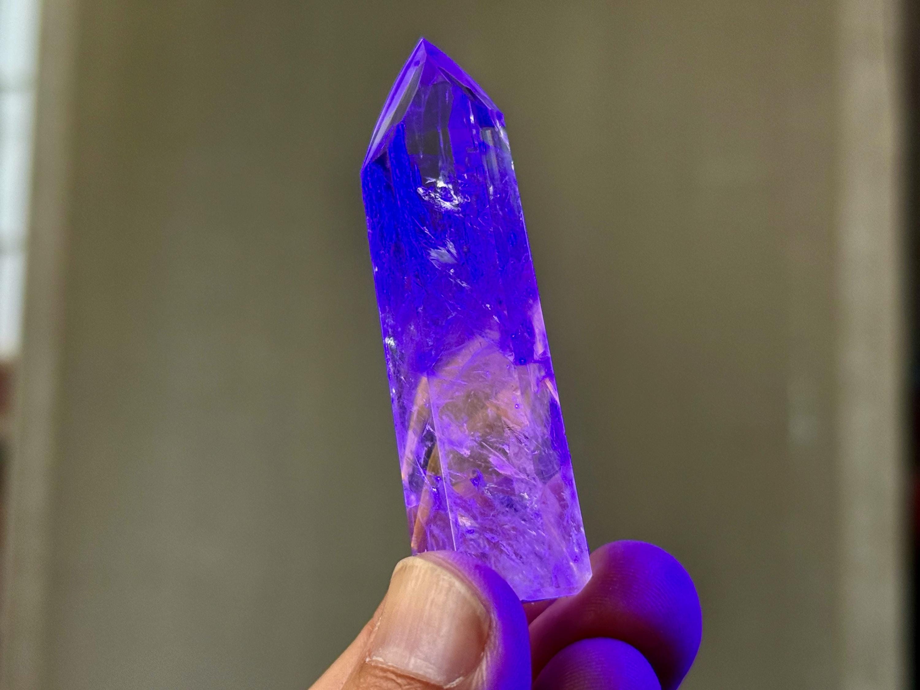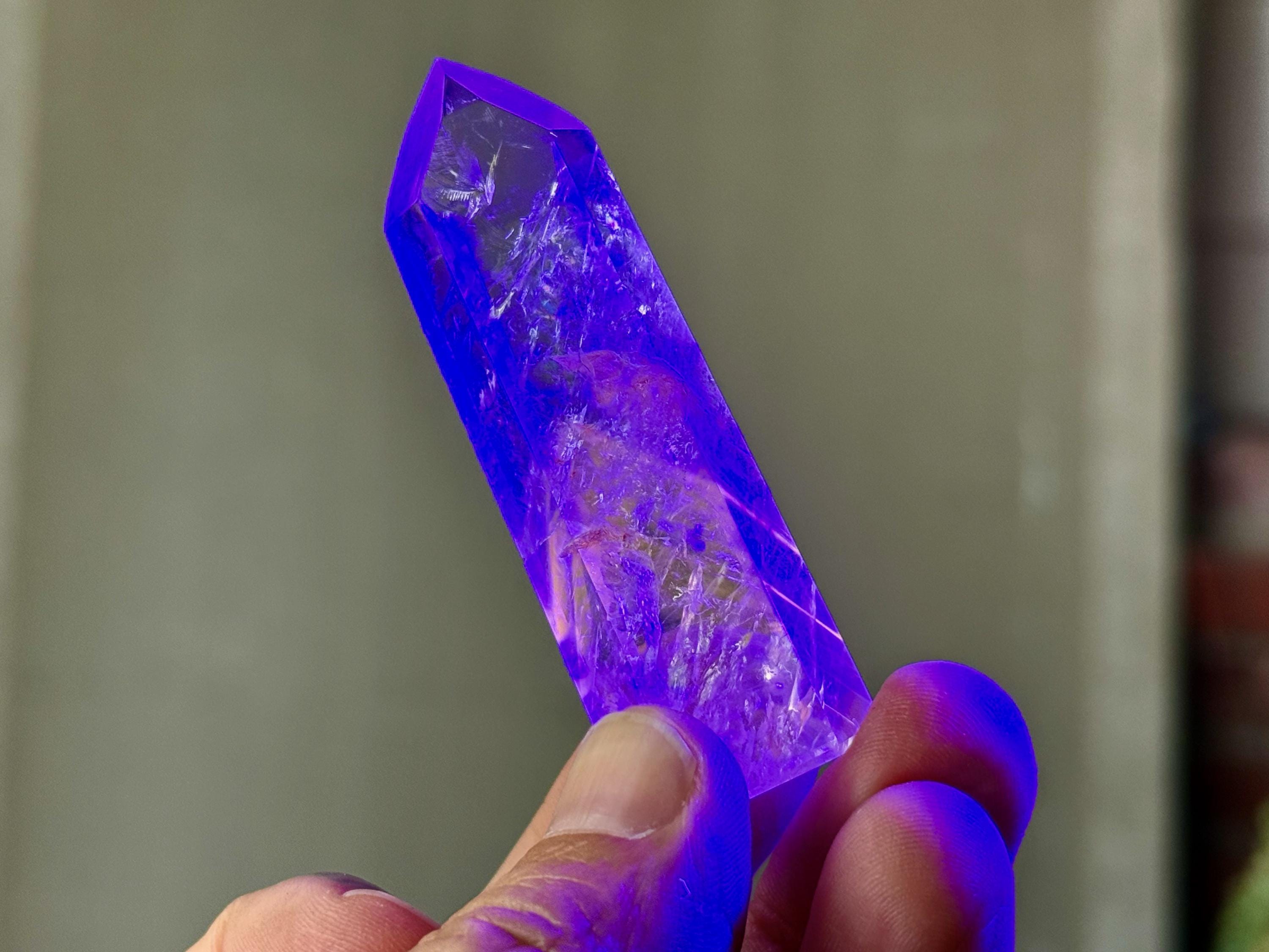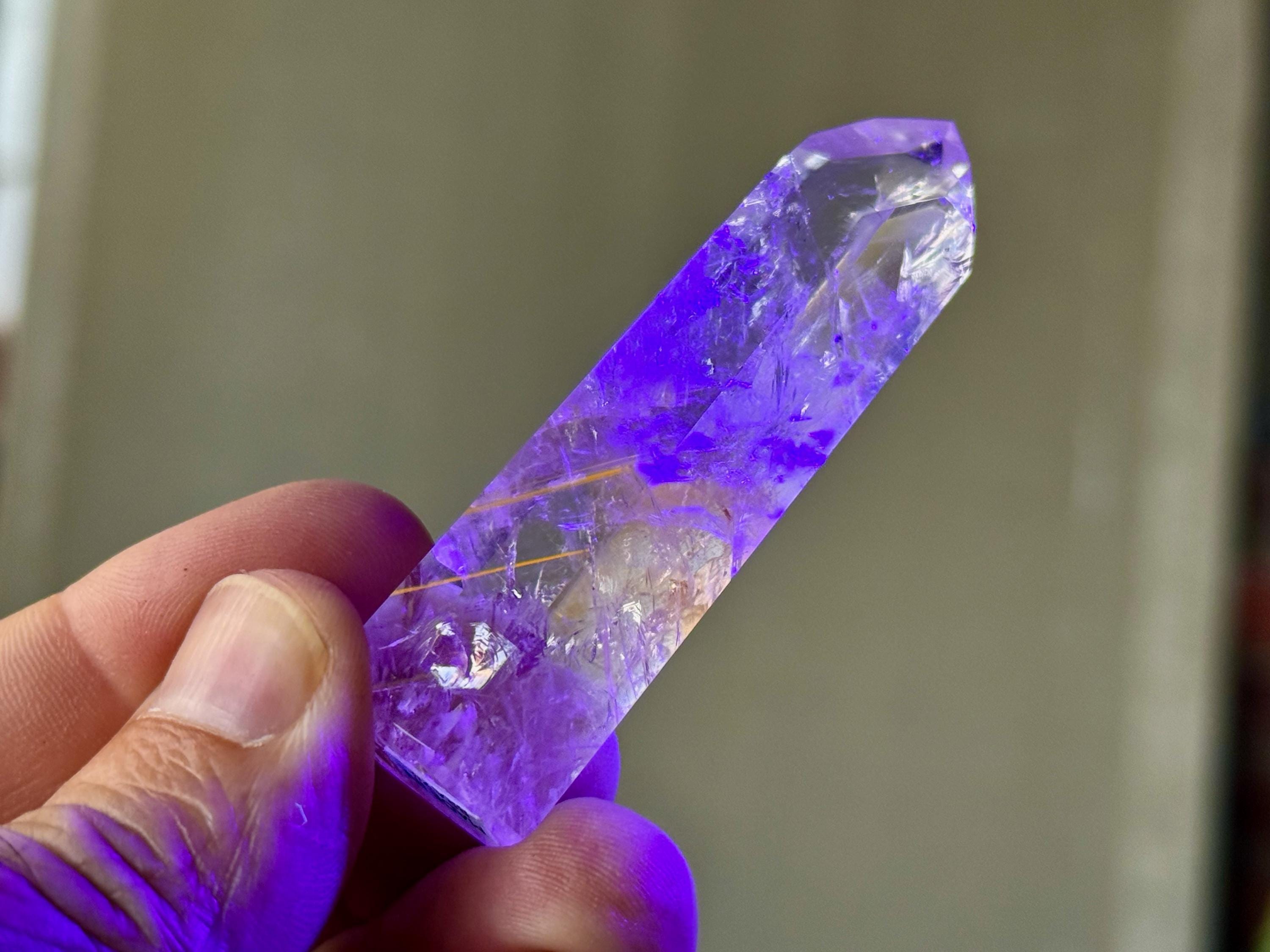 **Please note, the inclusions in this crystal are all natural/untreated, but the exterior is polished and the base is cut to allow for self-standing. A UV light is necessary to see the phantoms glow, and they can be found affordably at Amazon or any other online outlet. Also, please note that the dark purple hues in the UV-lit photos are a result of the UV light itself and not the color of the crystal. The natural color is shown in the natural-light photos included in this listing.