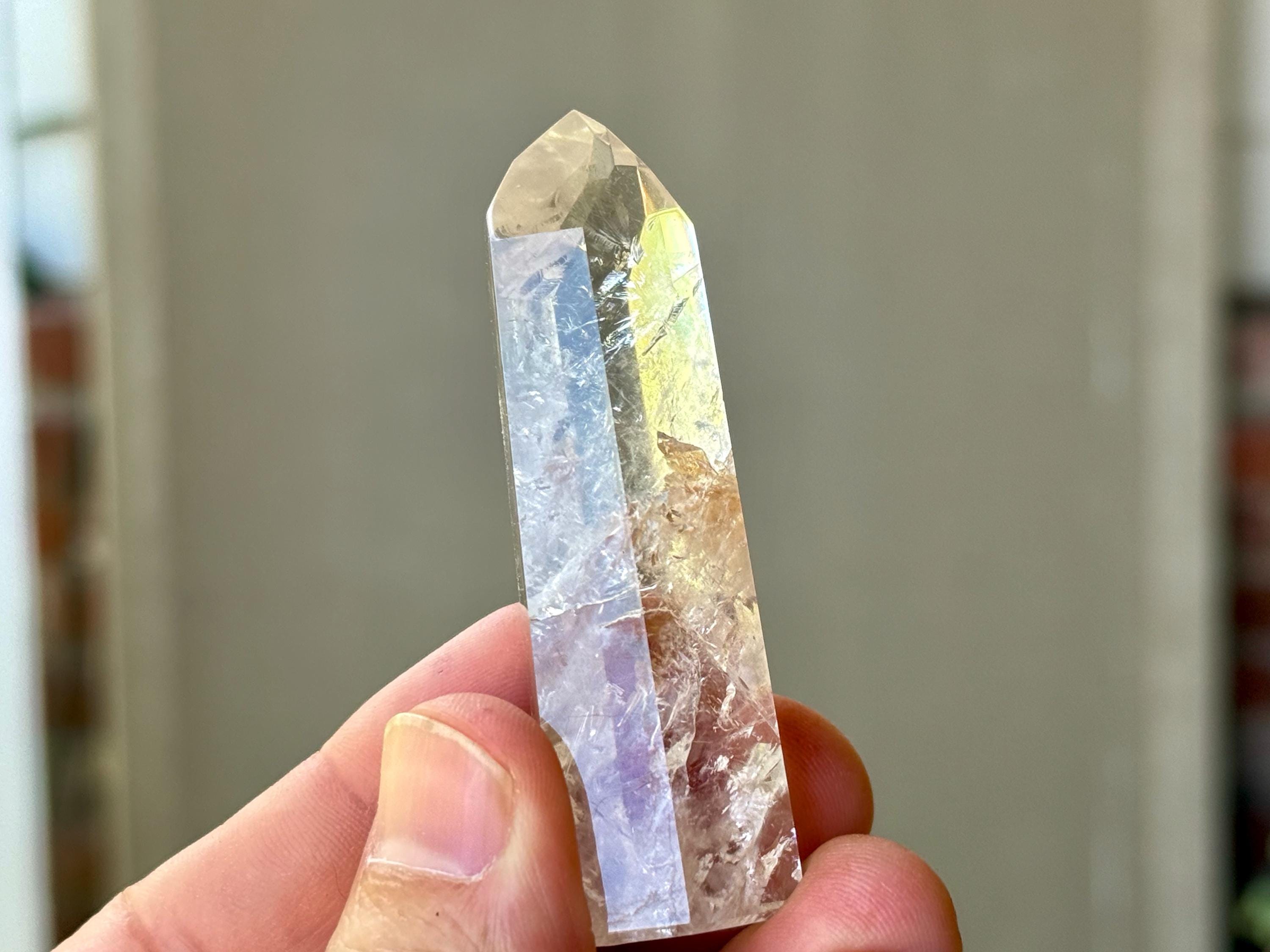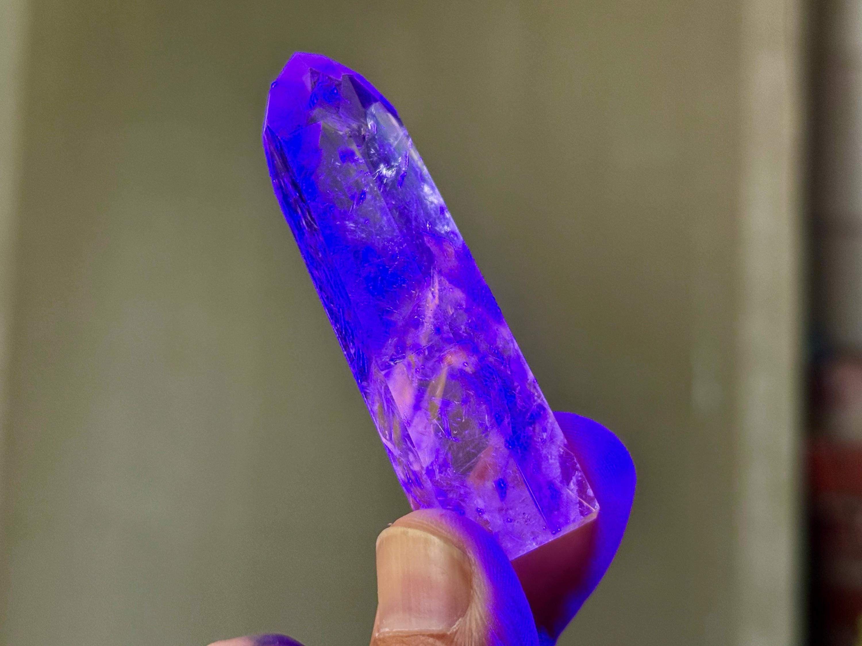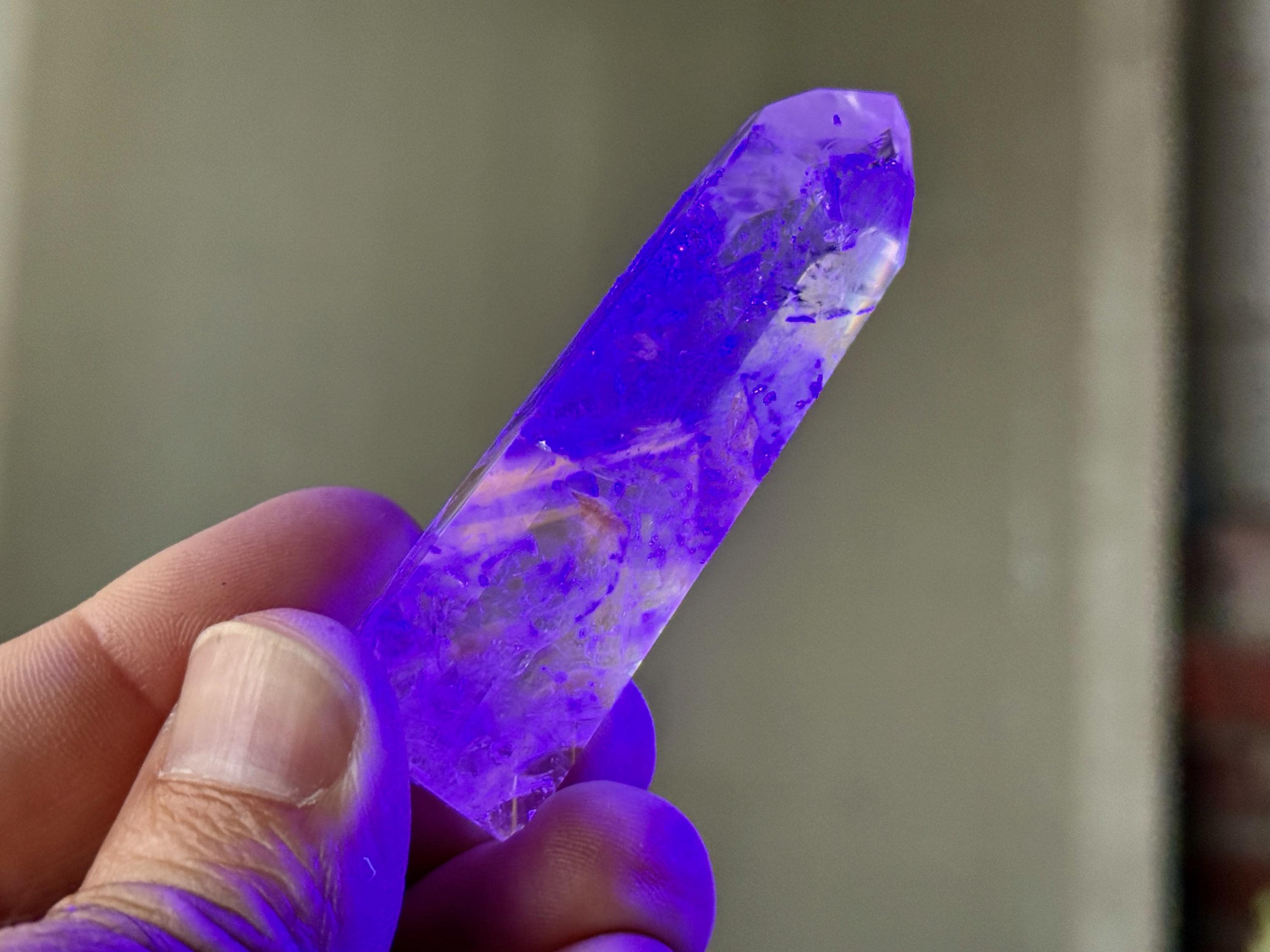 **Please note, the inclusions in this crystal are all natural/untreated, but the exterior is polished and the base is cut to allow for self-standing. A UV light is necessary to see the phantoms glow, and they can be found affordably at Amazon or any other online outlet. Also, please note that the dark purple hues in the UV-lit photos are a result of the UV light itself and not the color of the crystal. The natural color is shown in the natural-light photos included in this listing.