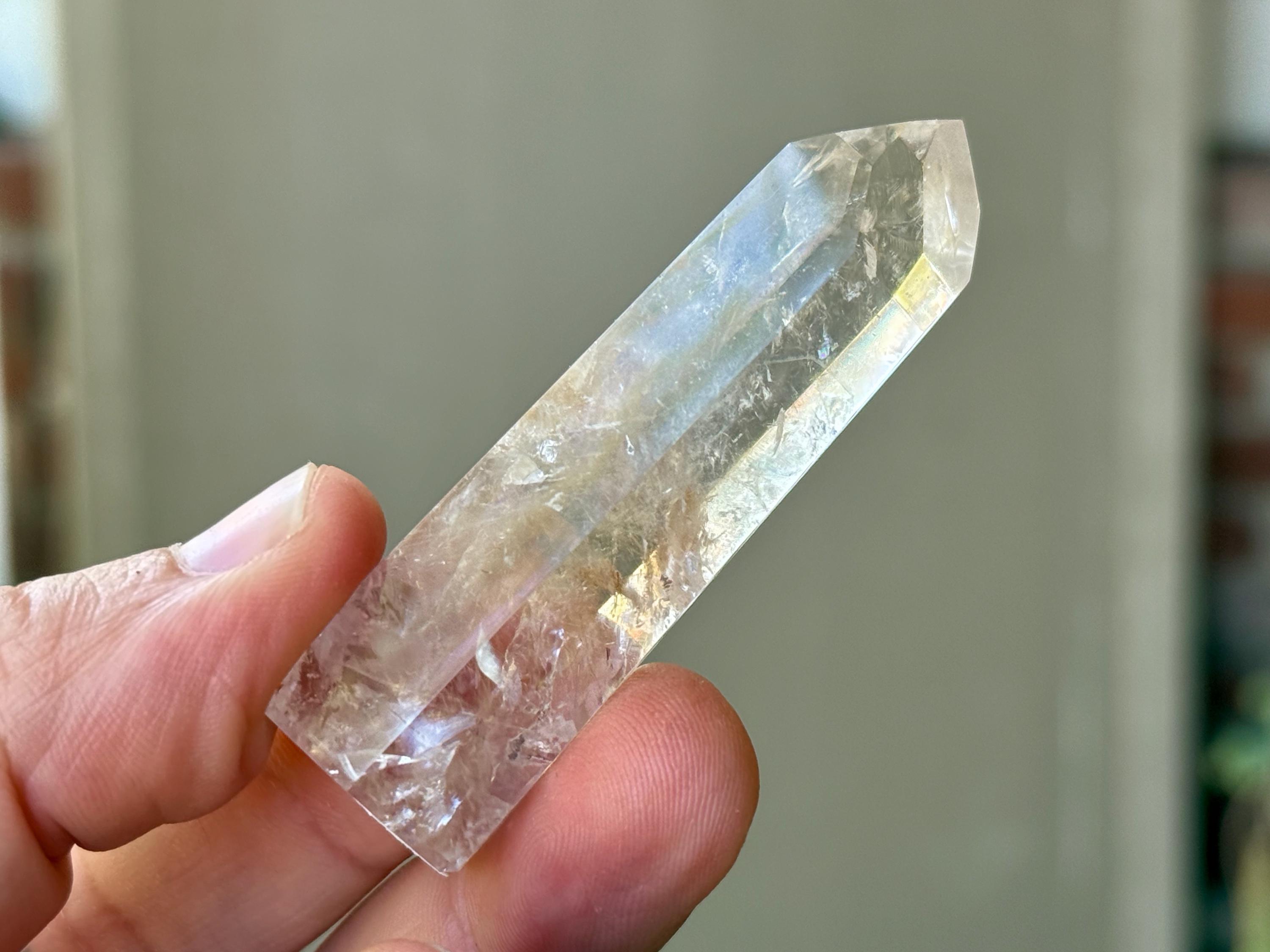 A Dow Crystal is one that has a termination with three perfect triangle facets, separated by three seven-sided facets. This special crystal manifests perfect geometry in the termination, alternating between triangles and seven-sided faces. It is a combination of the Channelling crystal and the Transmitter crystal, but serves an even greater purpose than the combined effects.