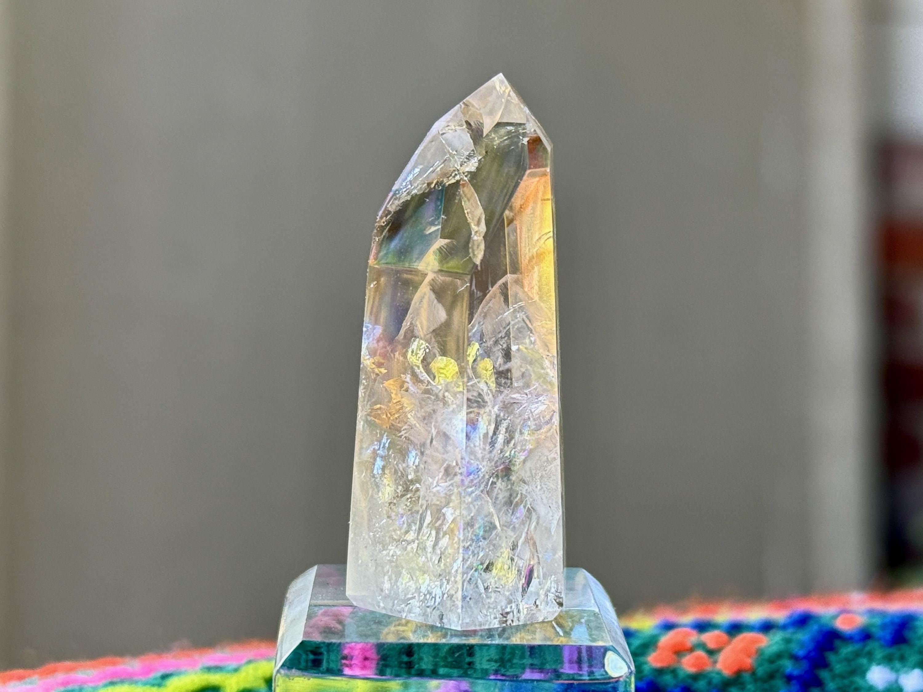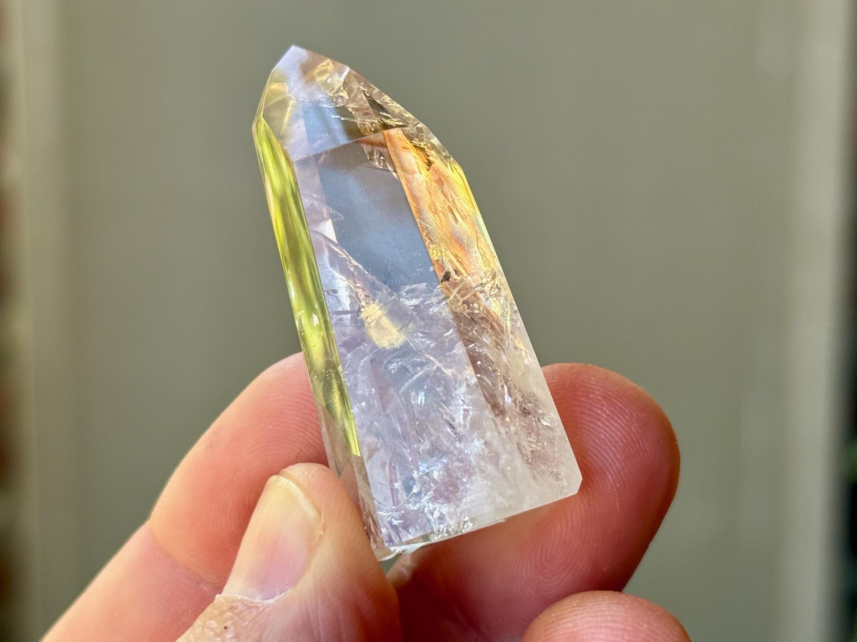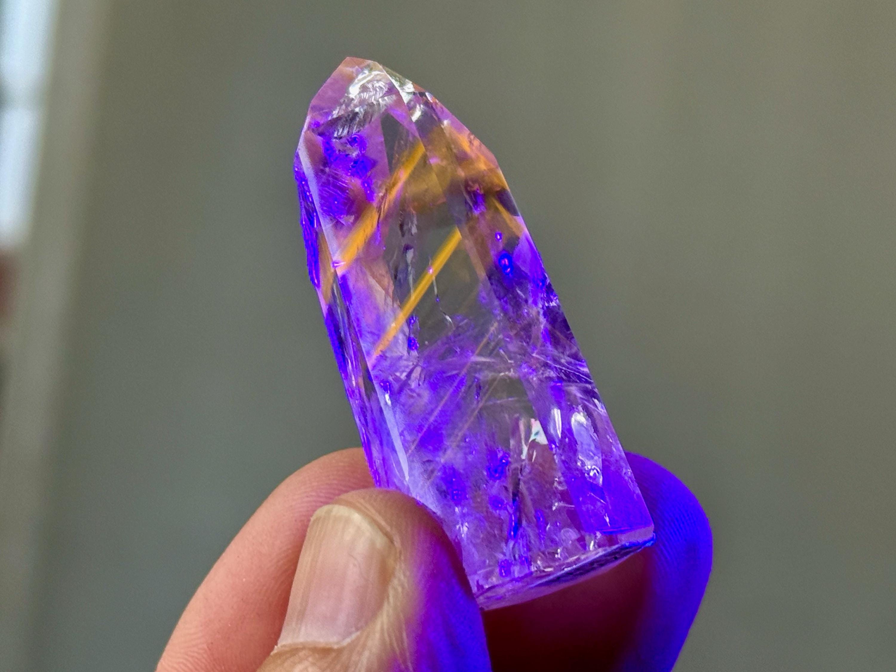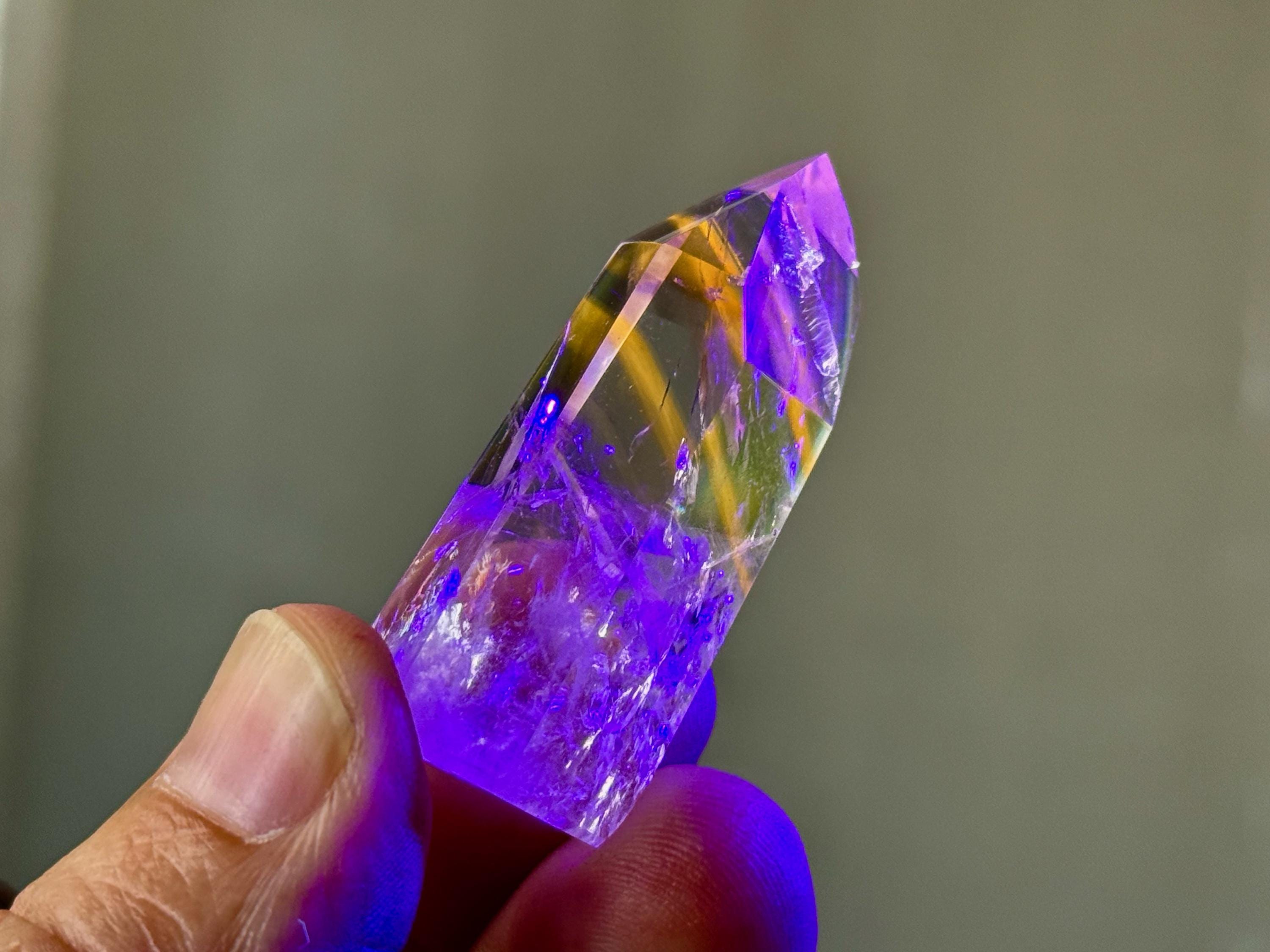 **Please note, the inclusions in this crystal are all natural/untreated, but the exterior is polished and the base is cut to allow for self-standing. A UV light is necessary to see the phantoms glow, and they can be found affordably at Amazon or any other online outlet. Also, please note that the dark purple hues in the UV-lit photos are a result of the UV light itself and not the color of the crystal. The natural color is shown in the natural-light photos included in this listing.