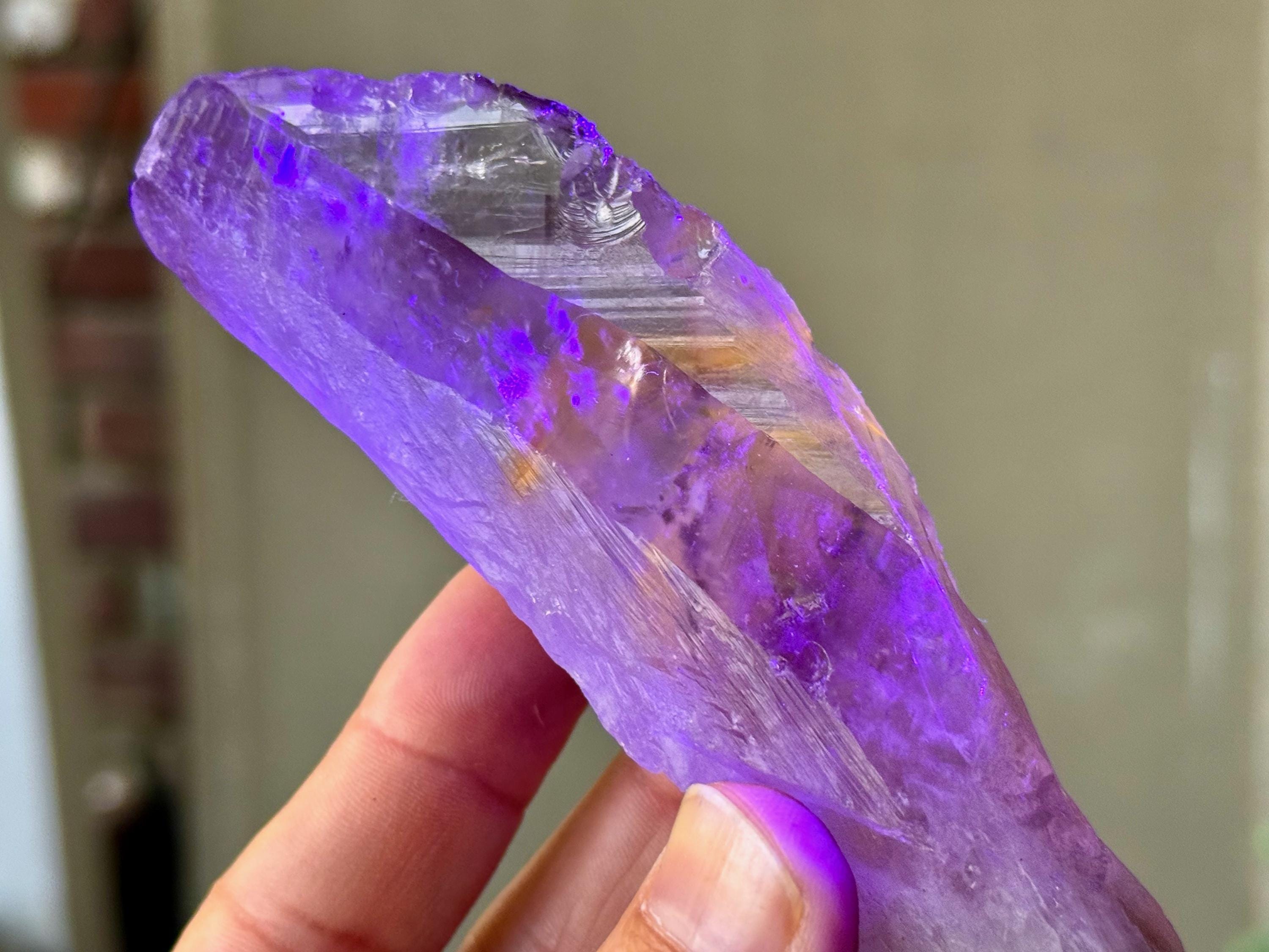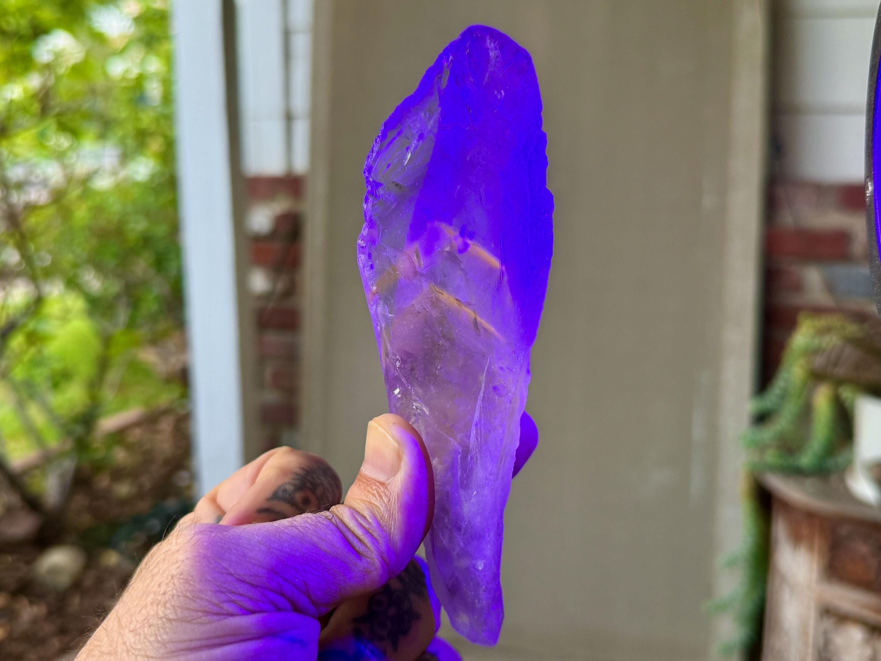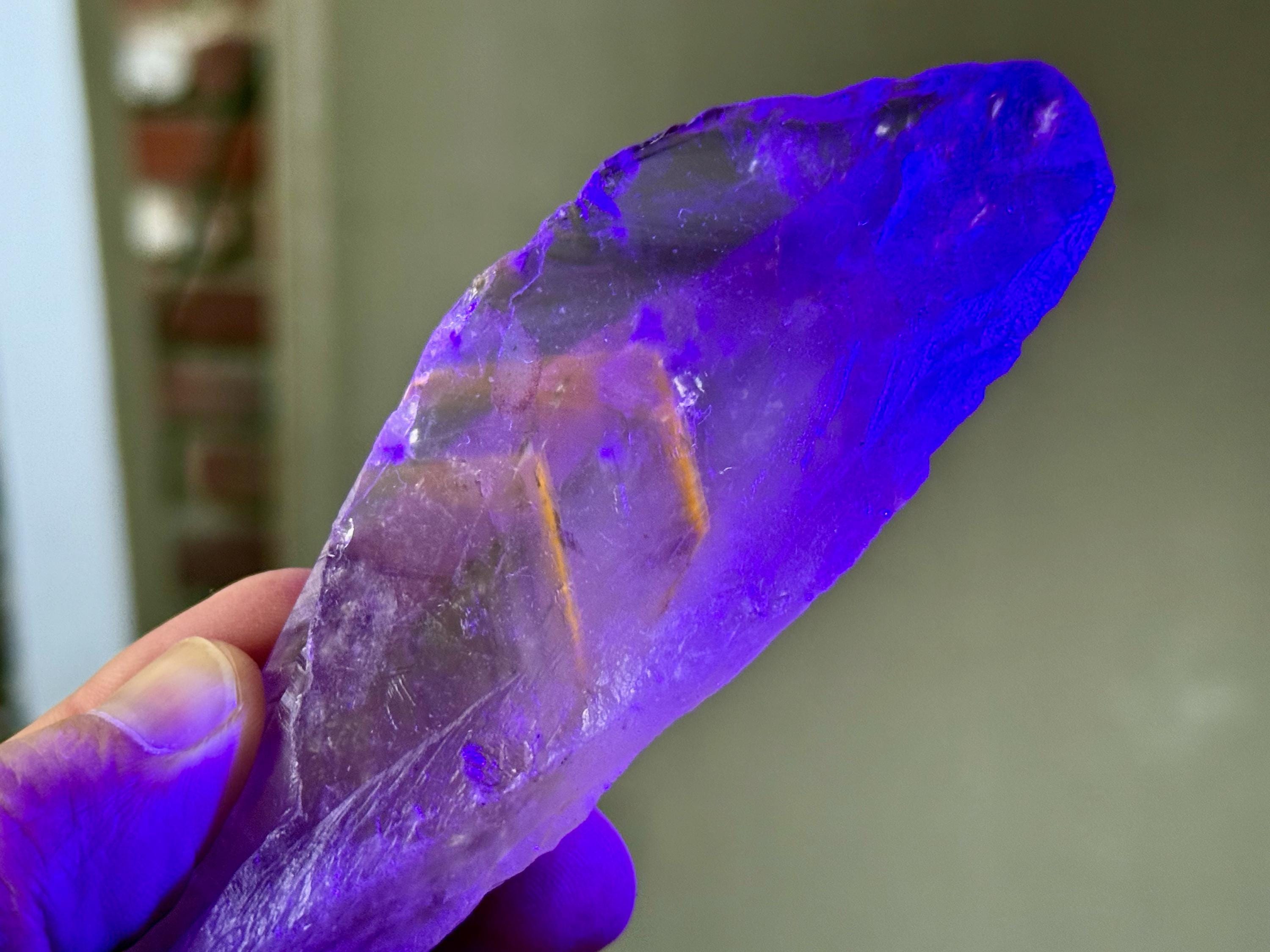 **Please note, the inclusions in this crystal are all natural/untreated. A UV light is necessary to see the phantoms glow, and they can be found affordably at Amazon or any other online outlet. Also, please note that the dark purple hues in the UV-lit photos are a result of the UV light itself and not the color of the crystal. The natural color is shown in the natural-light photos included in this listing.