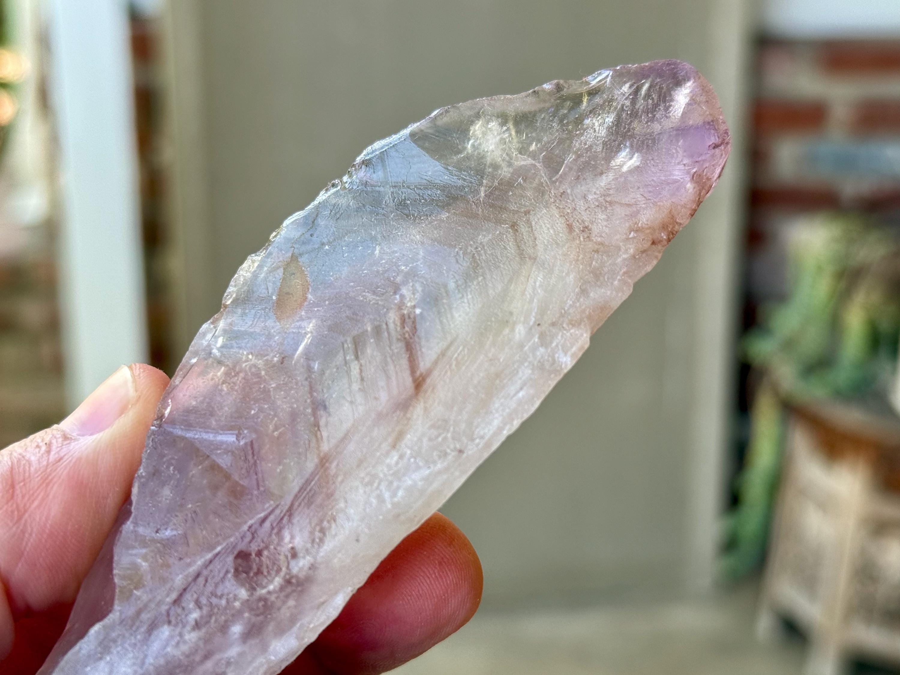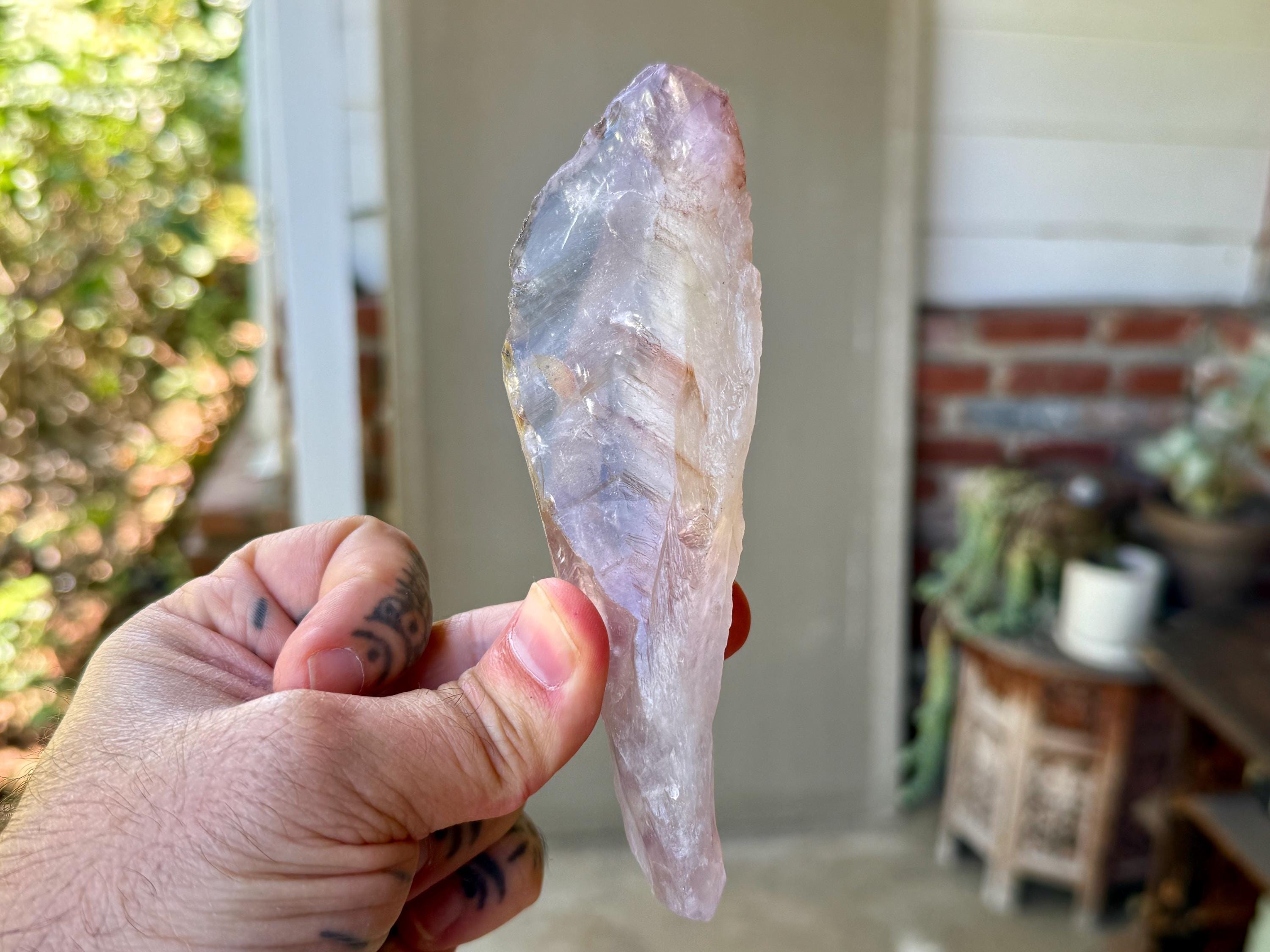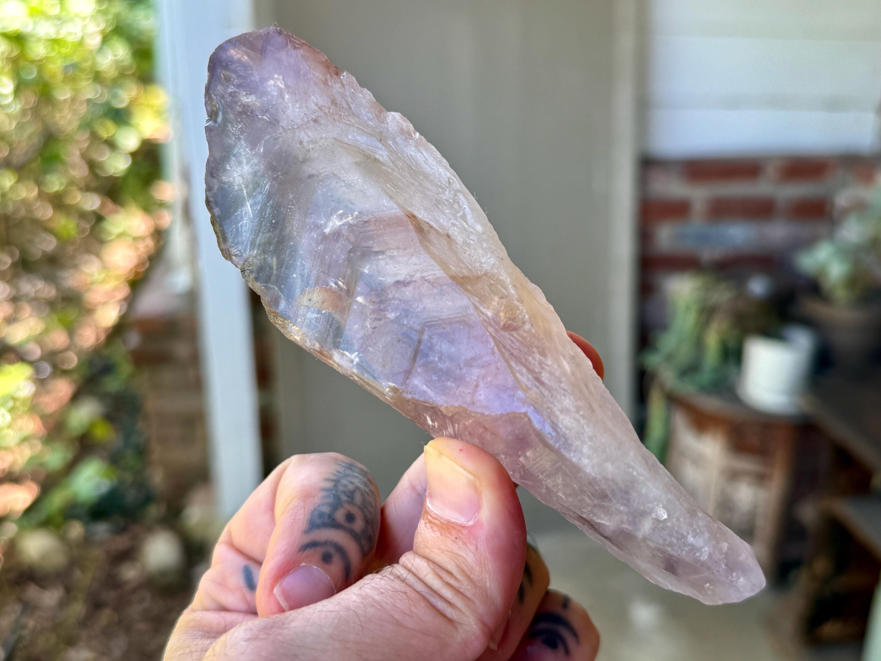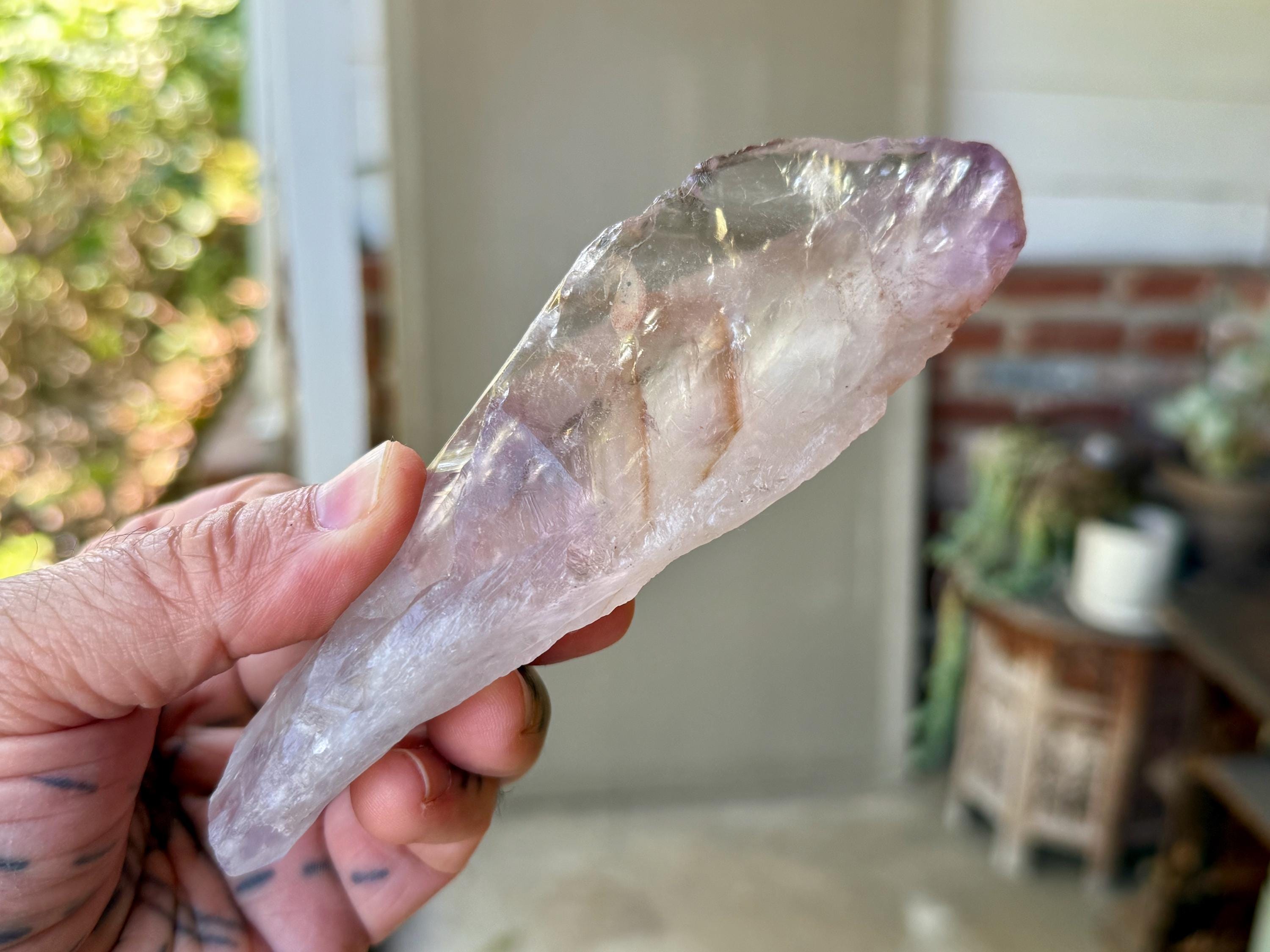 **Please note, the inclusions in this crystal are all natural/untreated. A UV light is necessary to see the phantoms glow, and they can be found affordably at Amazon or any other online outlet. Also, please note that the dark purple hues in the UV-lit photos are a result of the UV light itself and not the color of the crystal. The natural color is shown in the natural-light photos included in this listing.