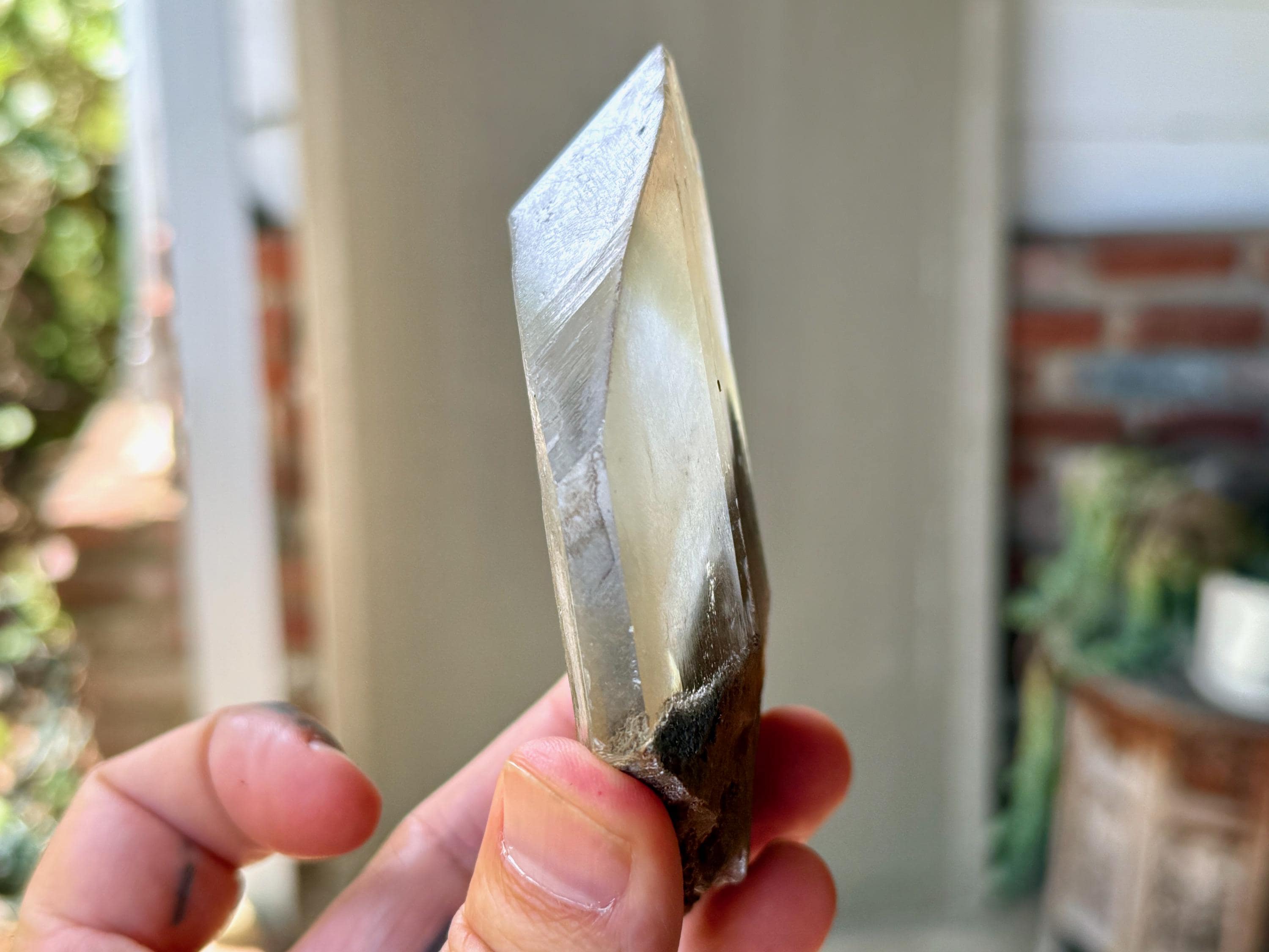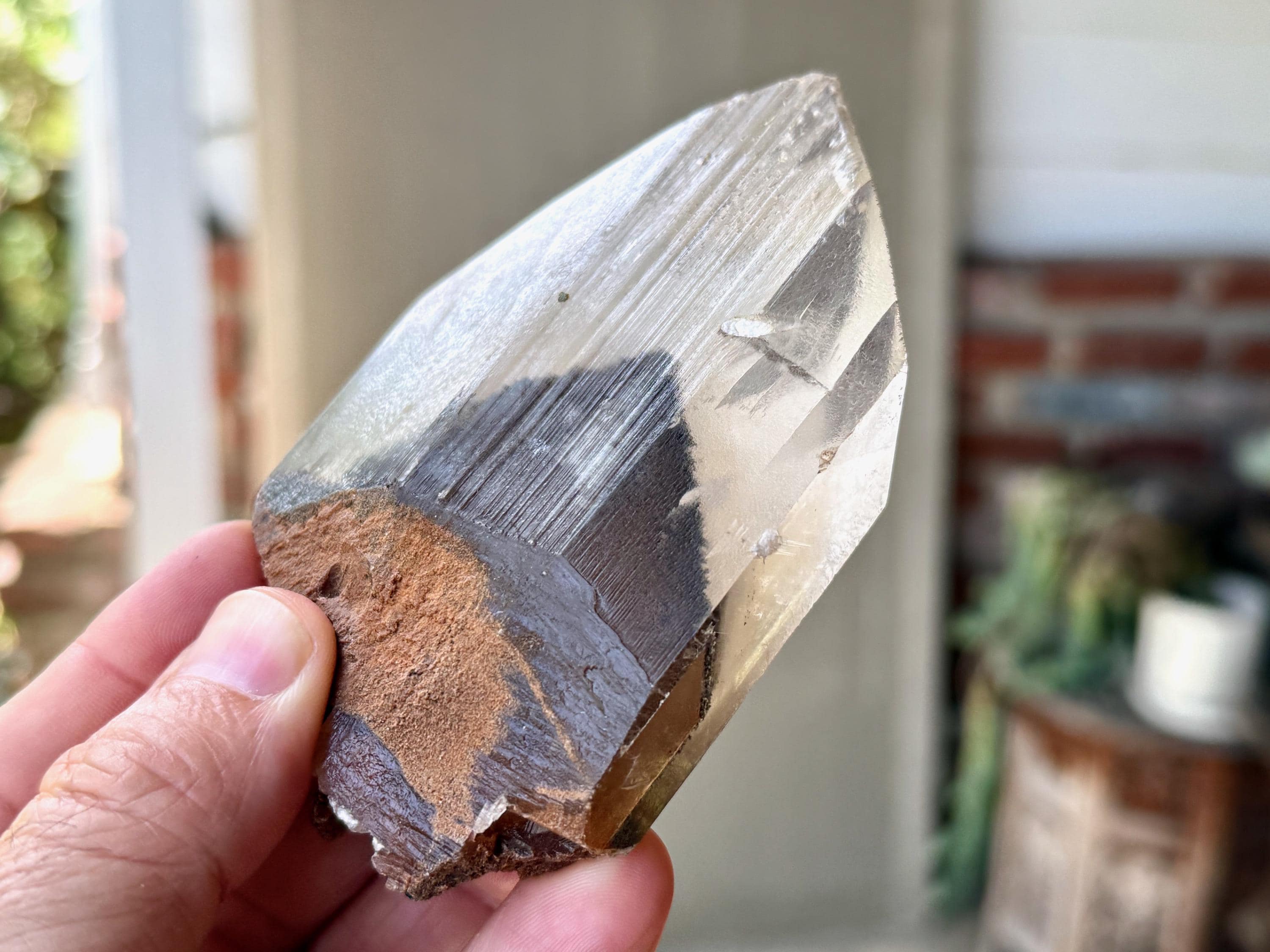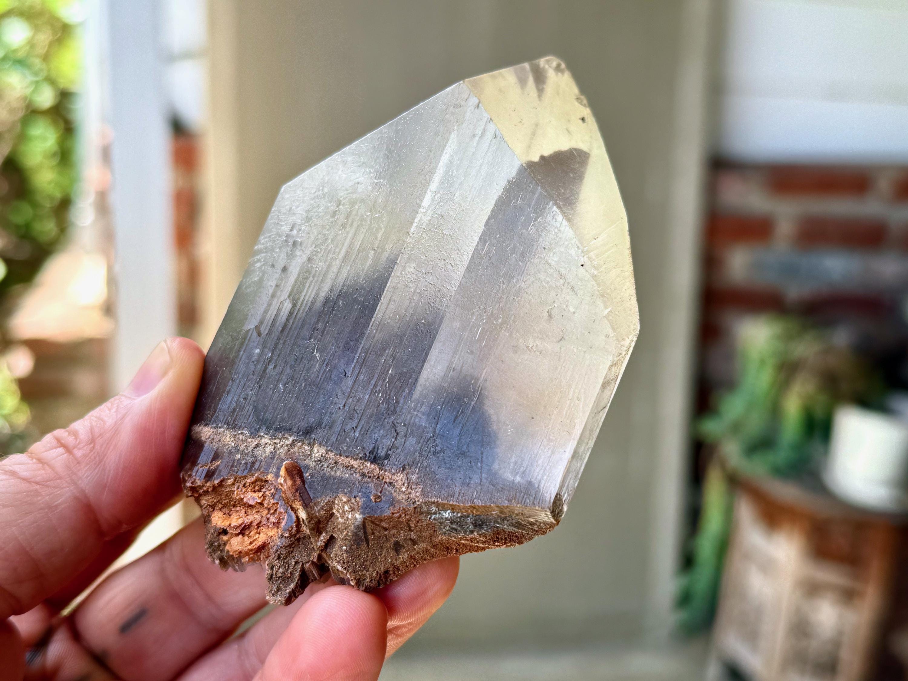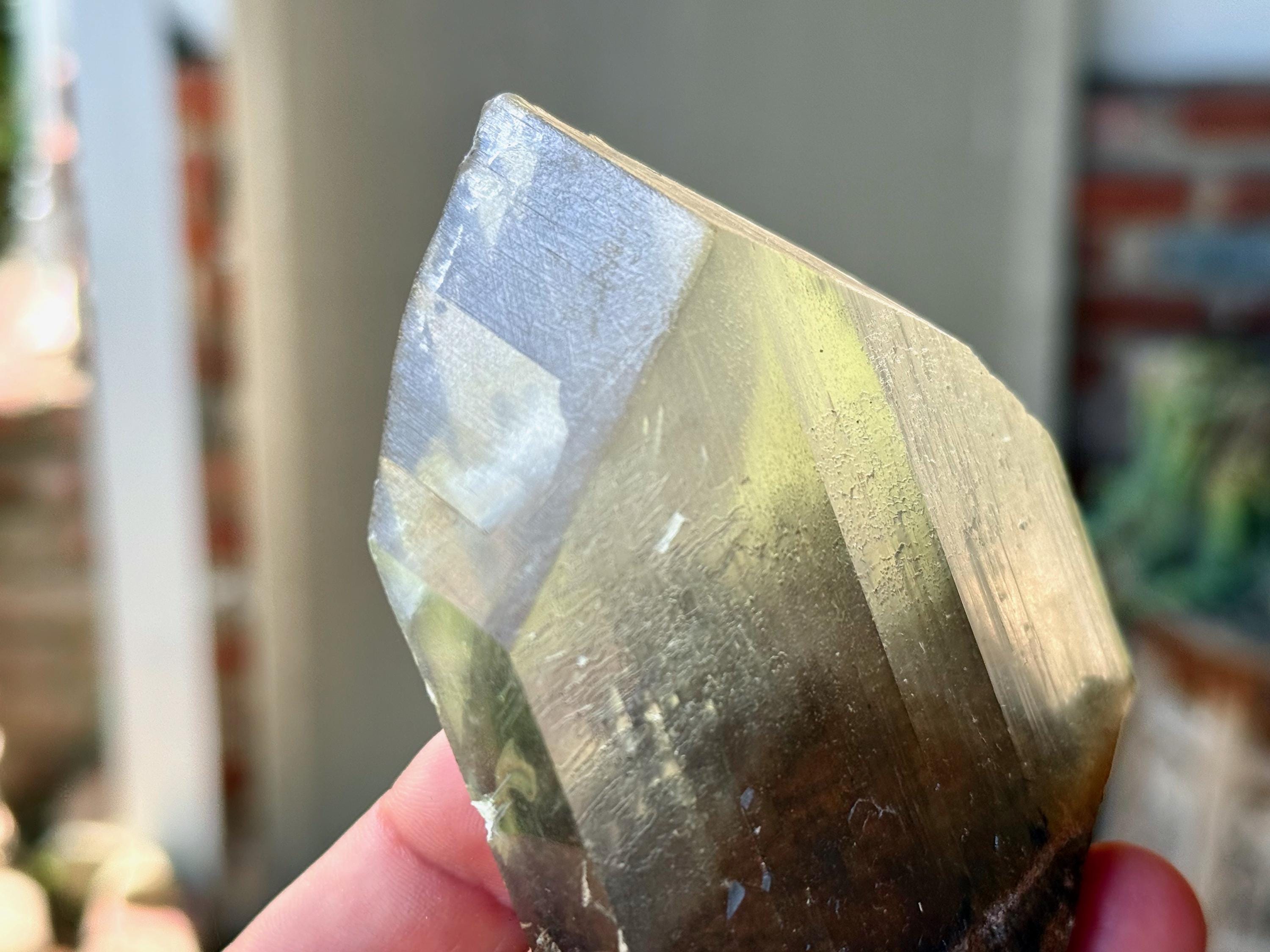 In the center, there is a large reddish-brown Goethite phantom inclusion. When backlit, as in Photos 4-5, the phantom lights up to a beautiful golden-brown color.