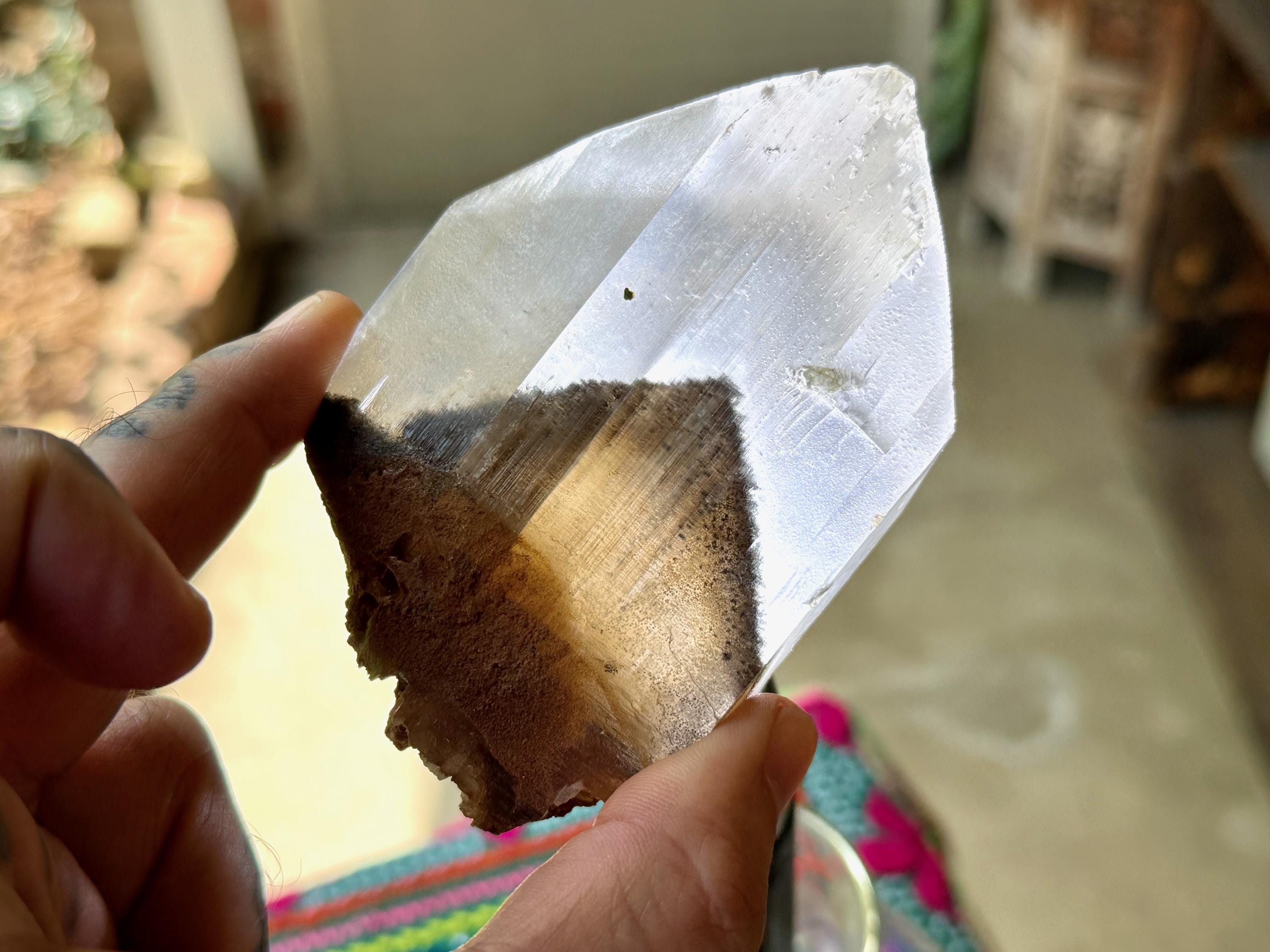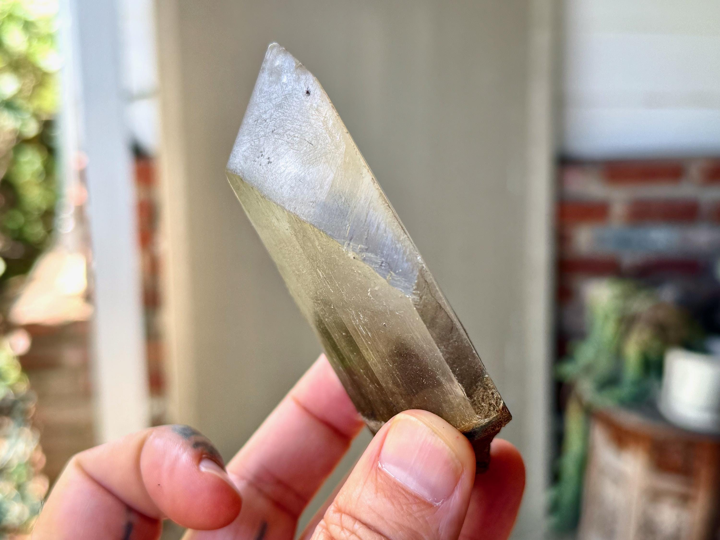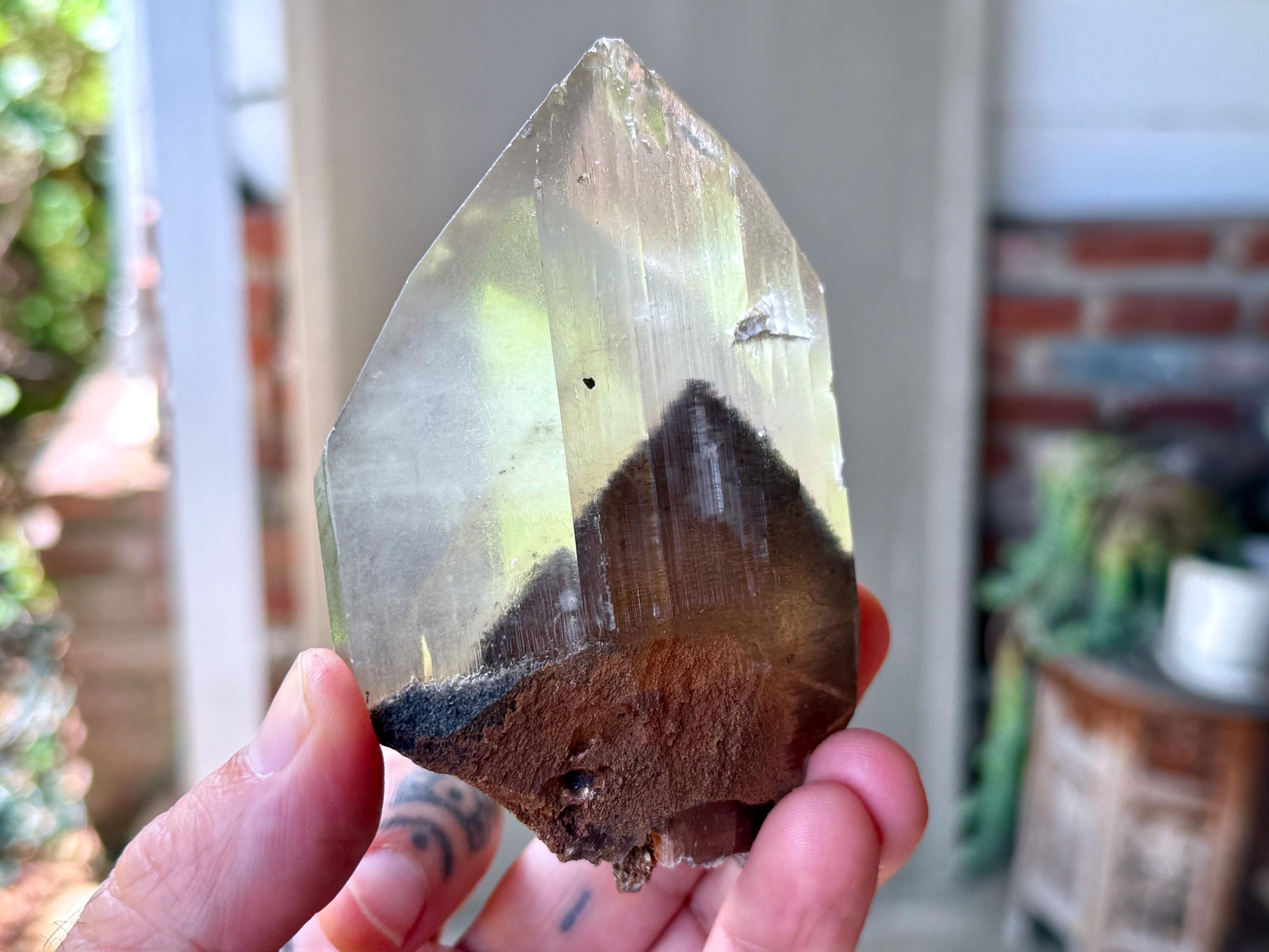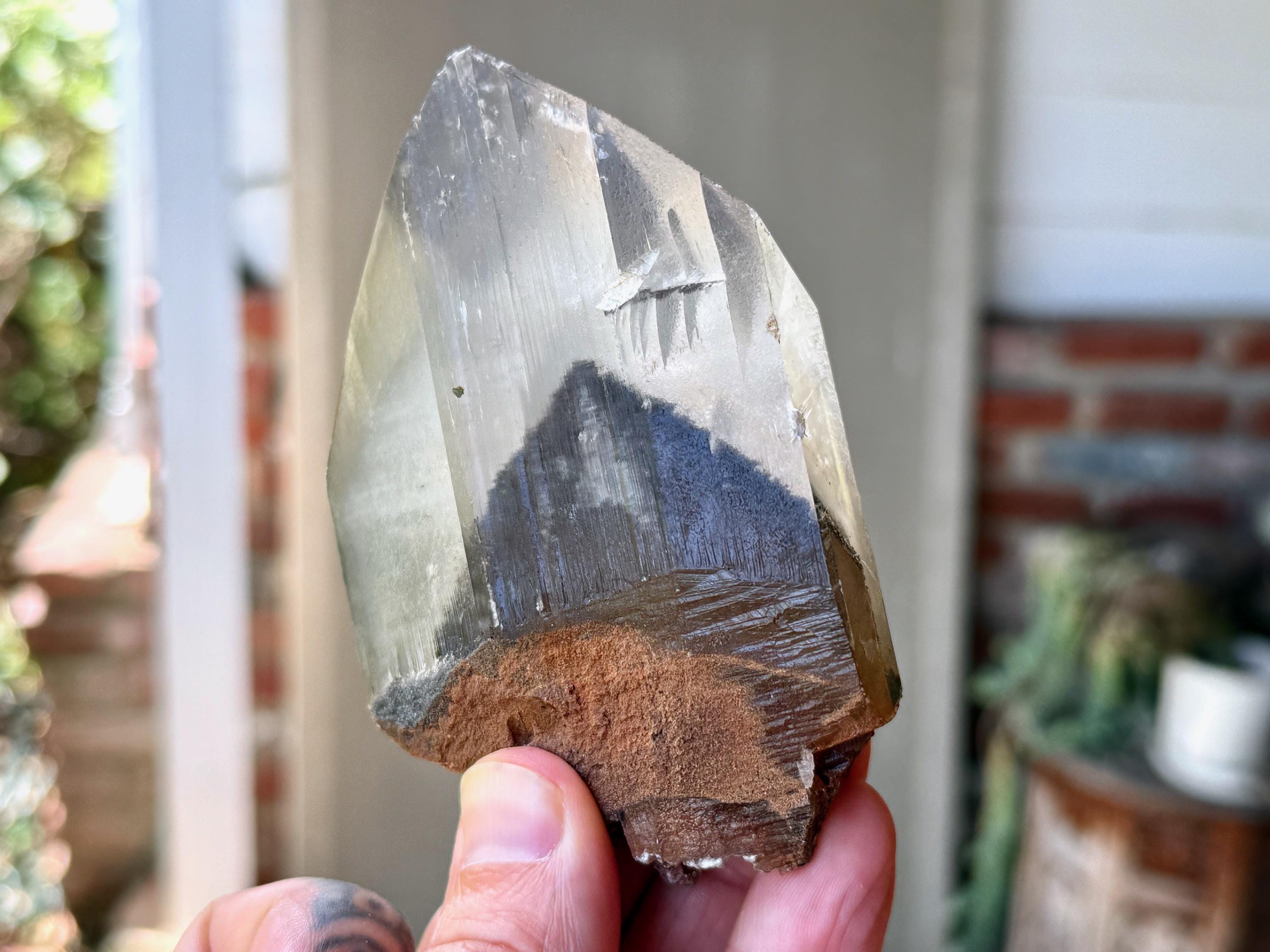 In the center, there is a large reddish-brown Goethite phantom inclusion. When backlit, as in Photos 4-5, the phantom lights up to a beautiful golden-brown color.