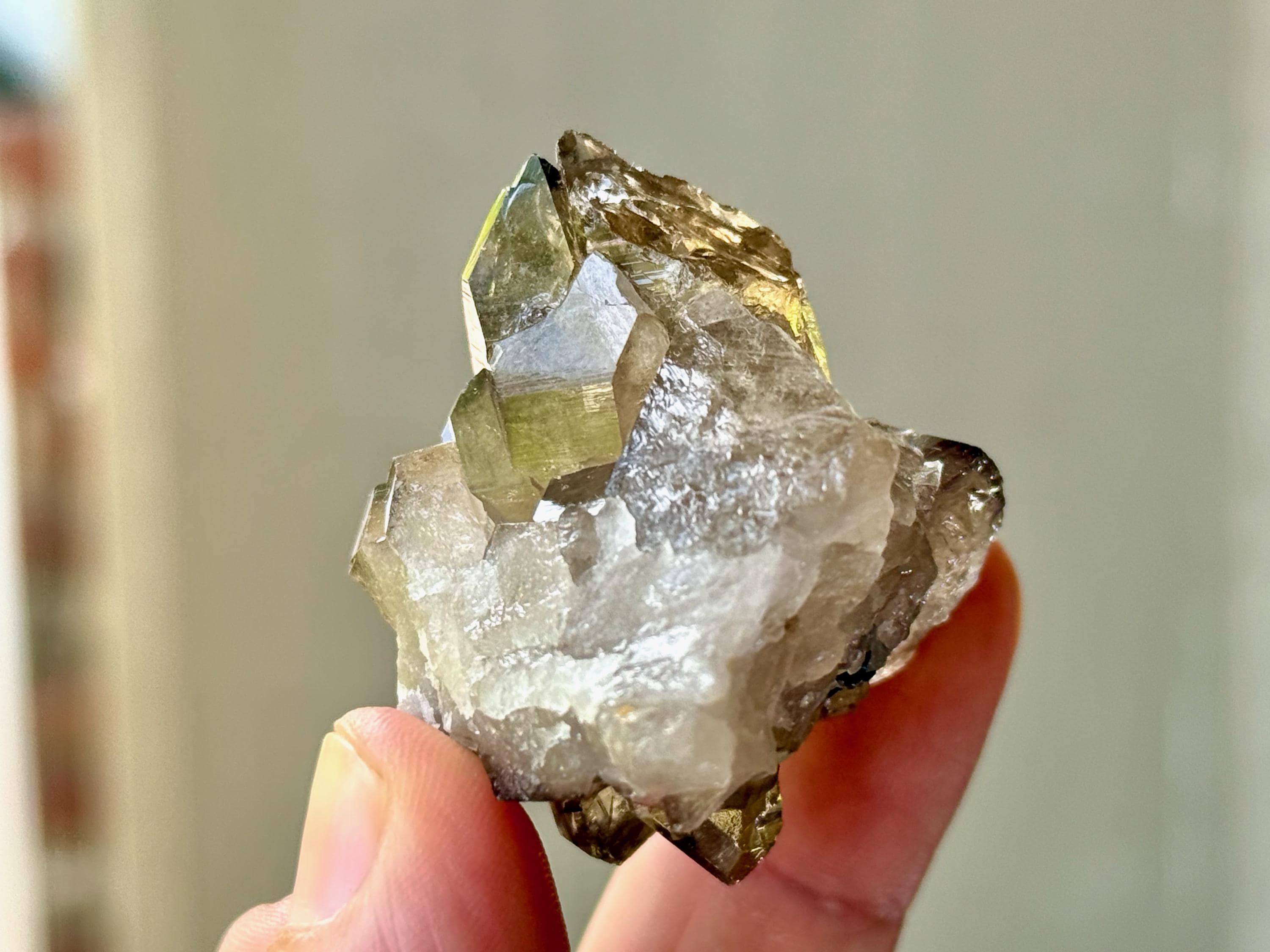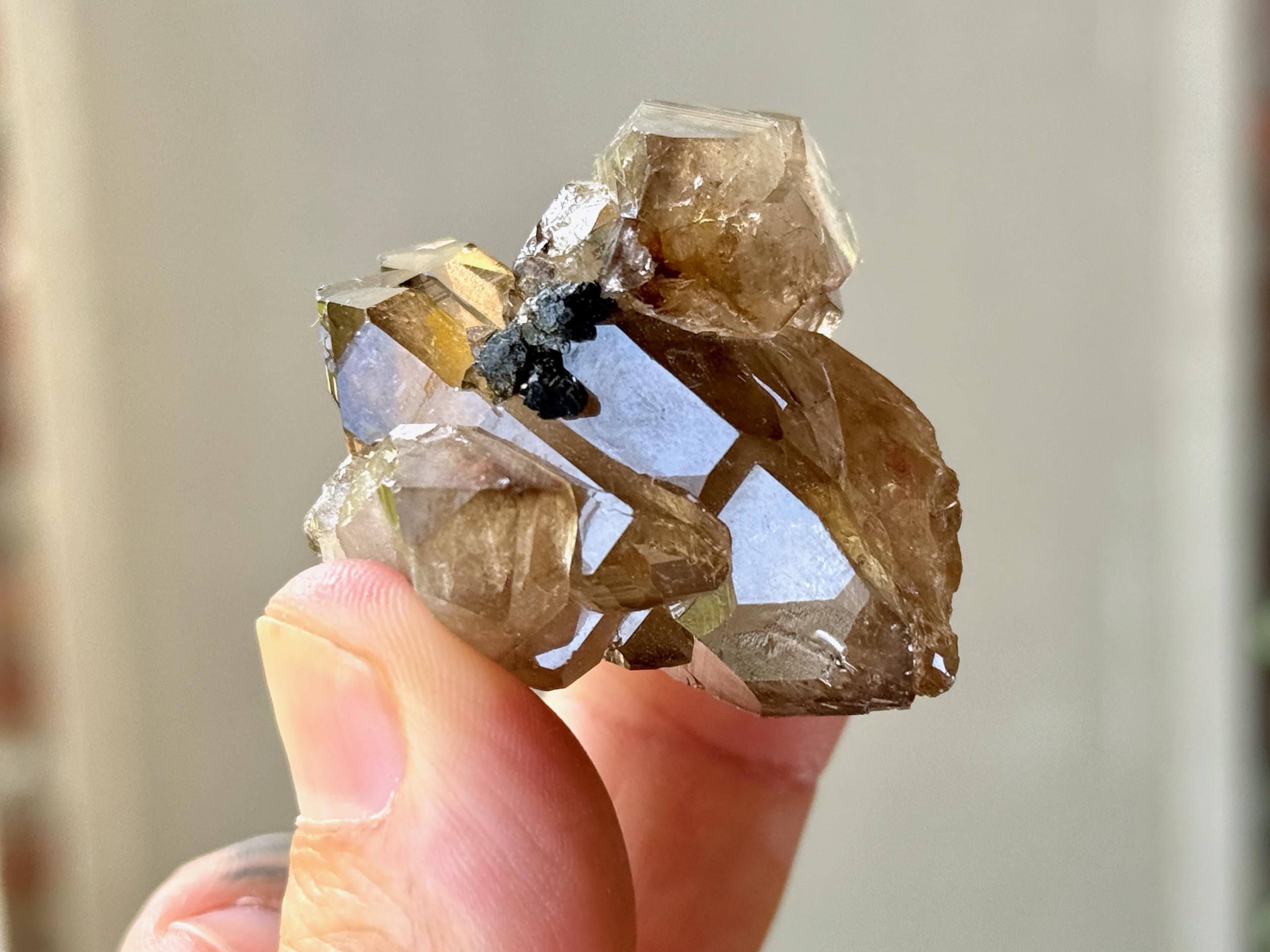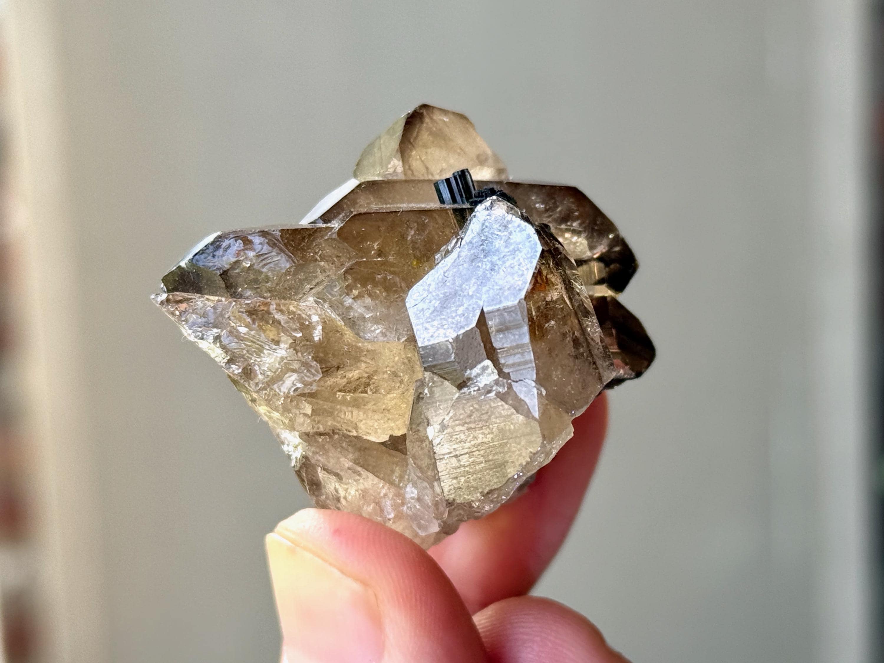 An absolute GEM of a natural Citrine! This crystal possesses a vibrant smoky-golden color, brilliant luster, outstanding clarity and a uniquely hued inclusion of Bicolor Tourmaline at the center.
