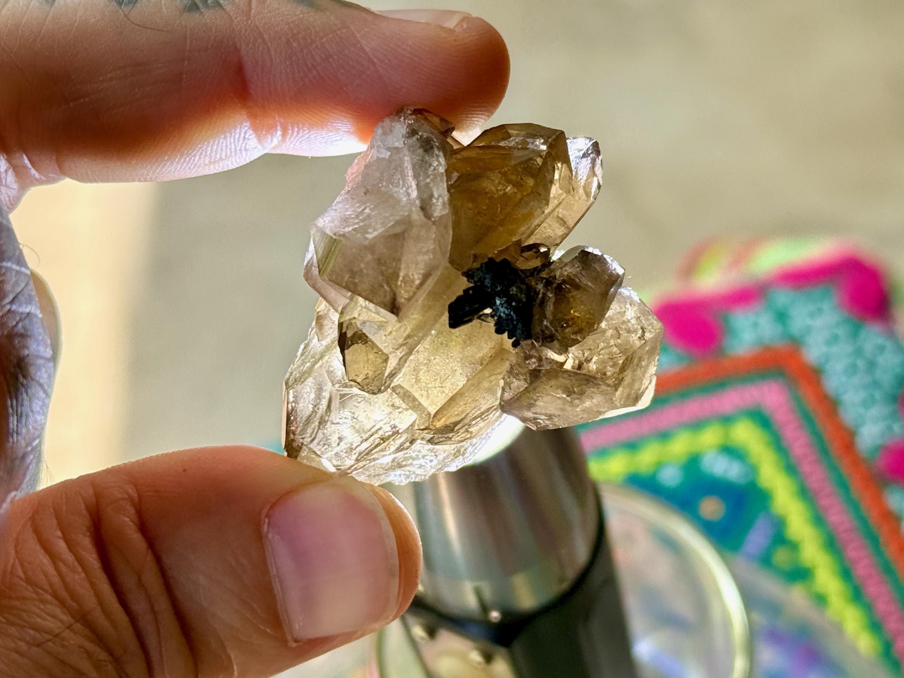 The crystal itself is a cluster formation, with the primary crystals being Double Terminated. There are some chips to the base main facets of these crystals that do abut the bottom termination. The primary termination is excellent.