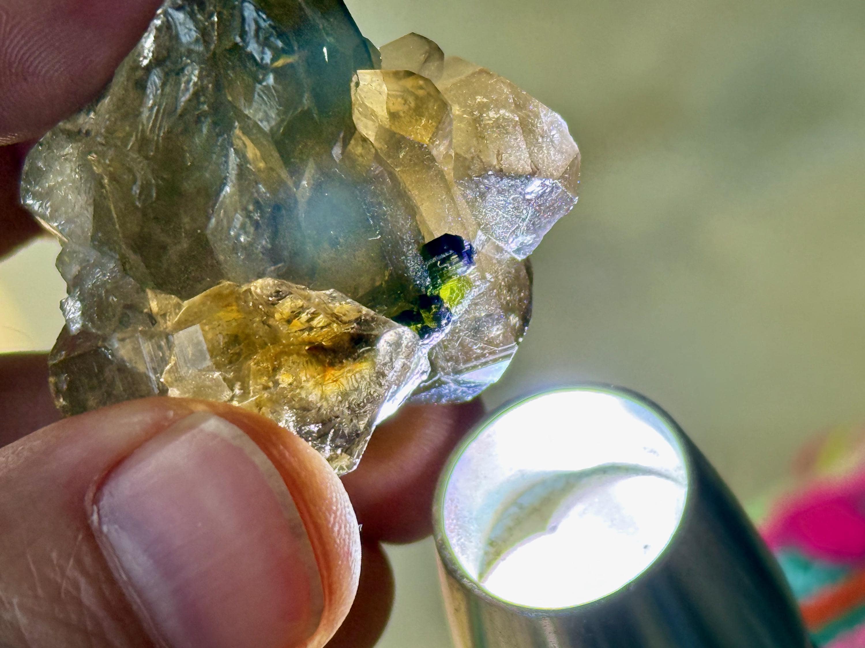 This natural Citrine with Bicolor Purple & Green Tourmaline comes from a recent find in the area of Coronel Murta, Minas Gerais, Brazil.