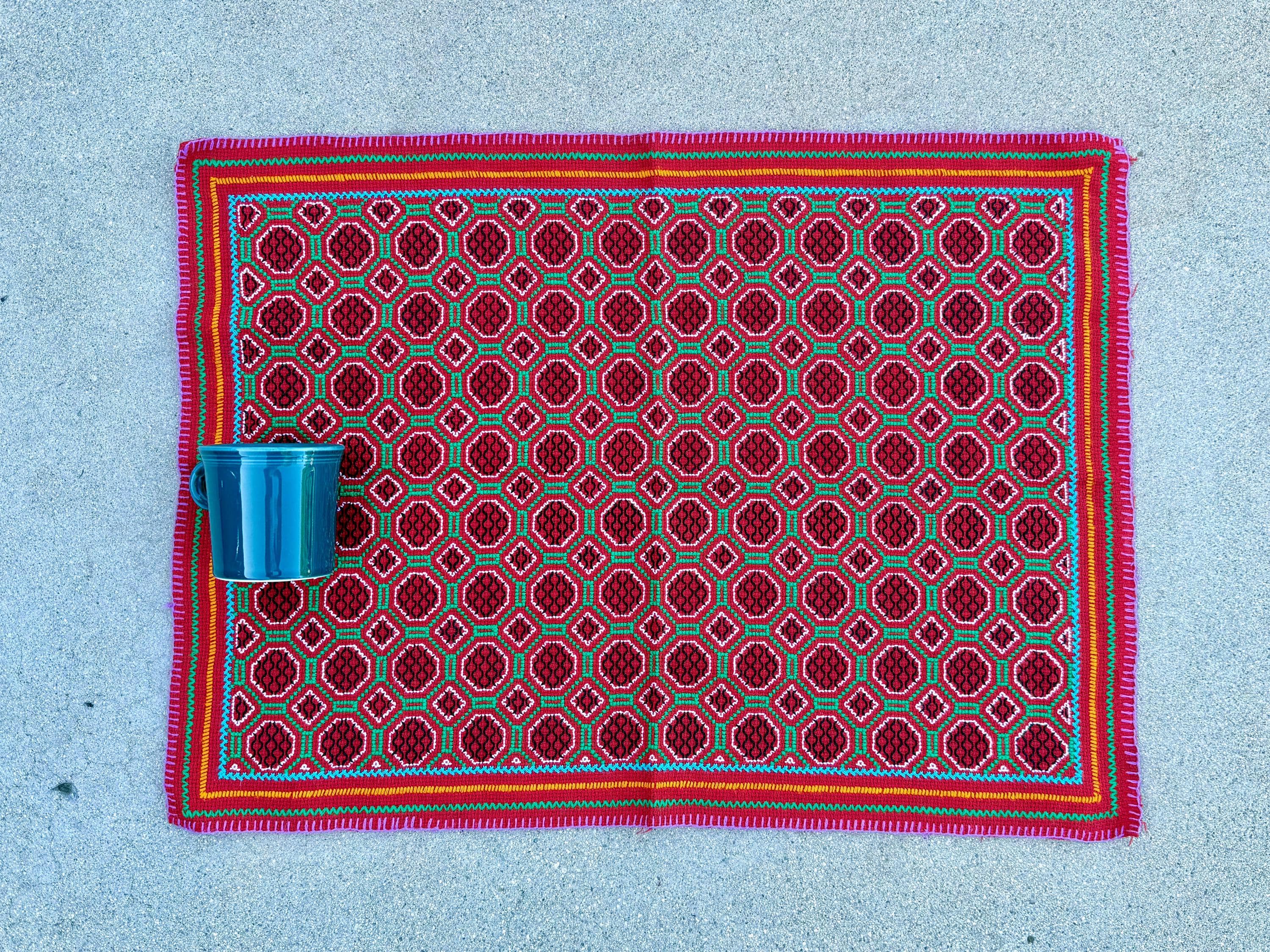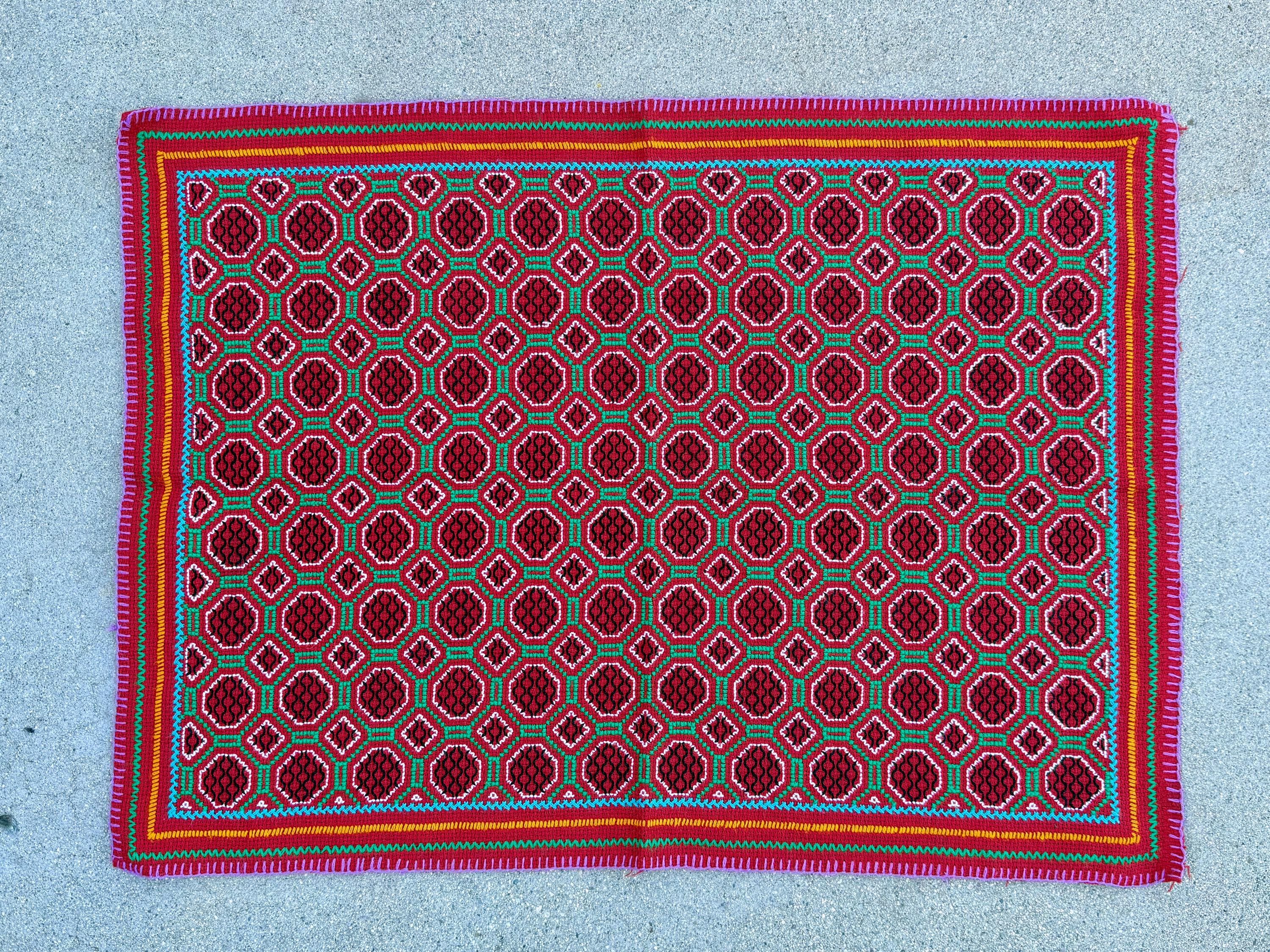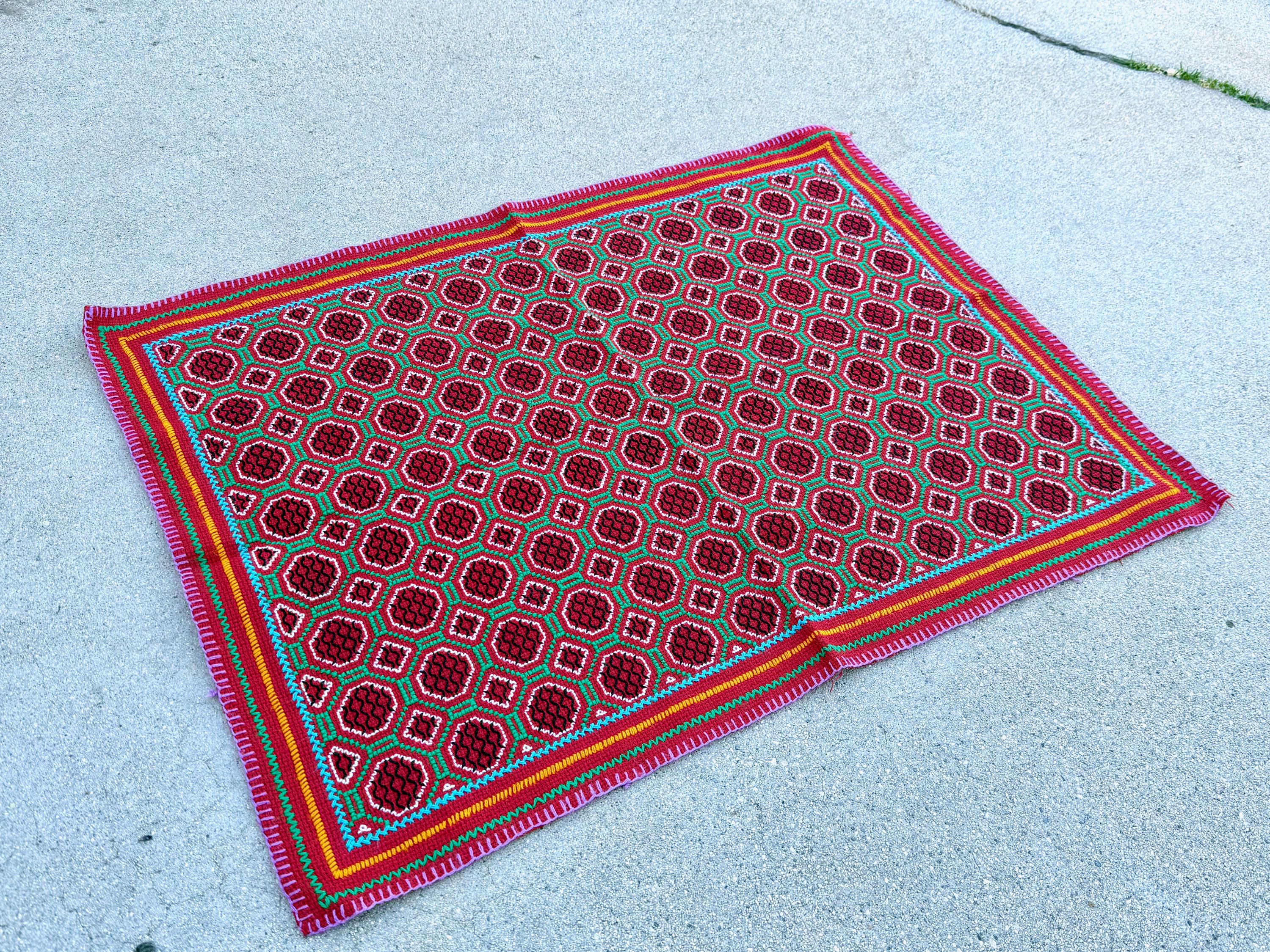 This vibrant Shipibo Manta Cloth was handmade by Maestra Mathilde Gomez Sanchez outside of Iquitos, Peru. It represents an icaro (medicine song) for the Jatoba plant.