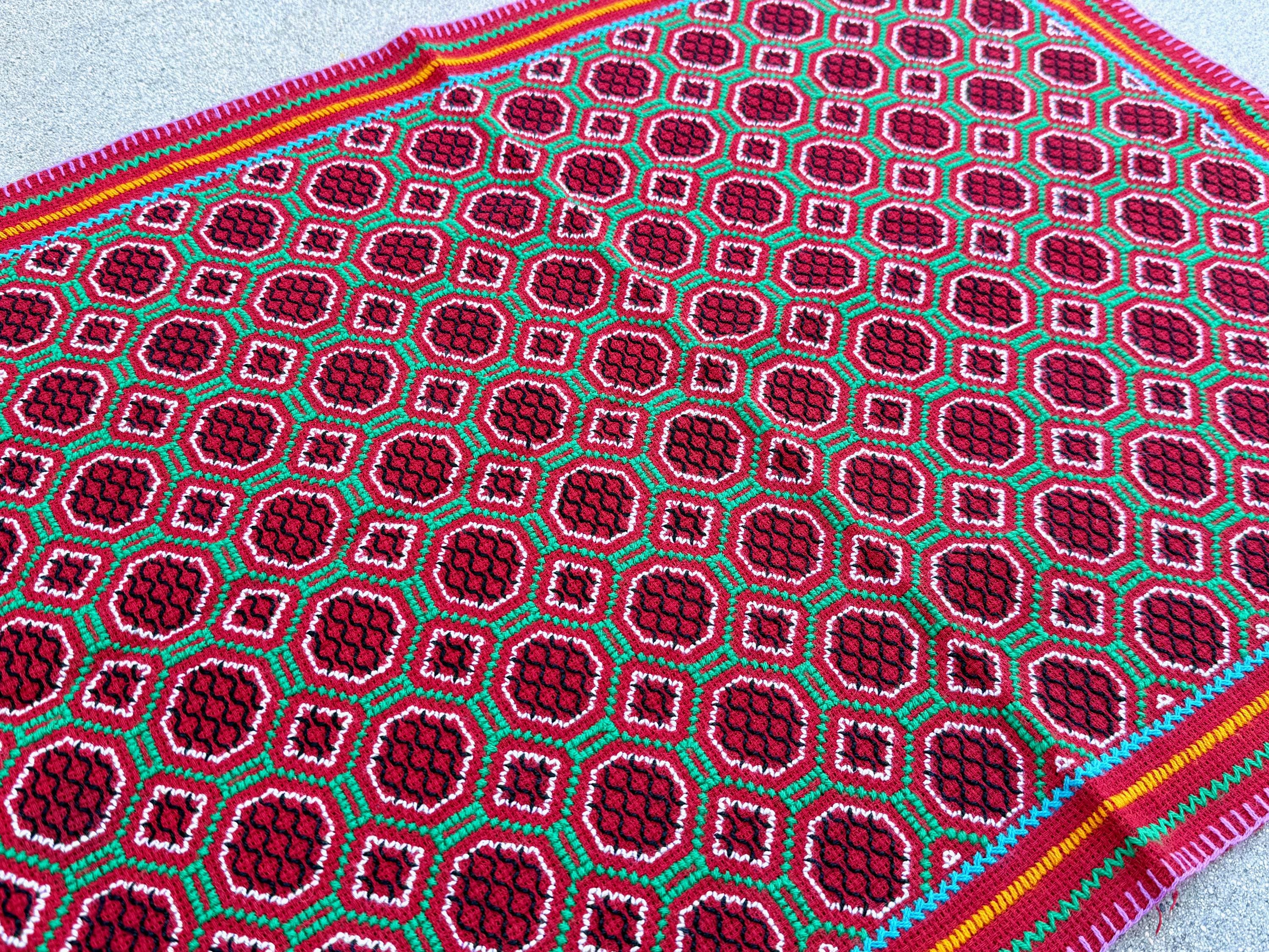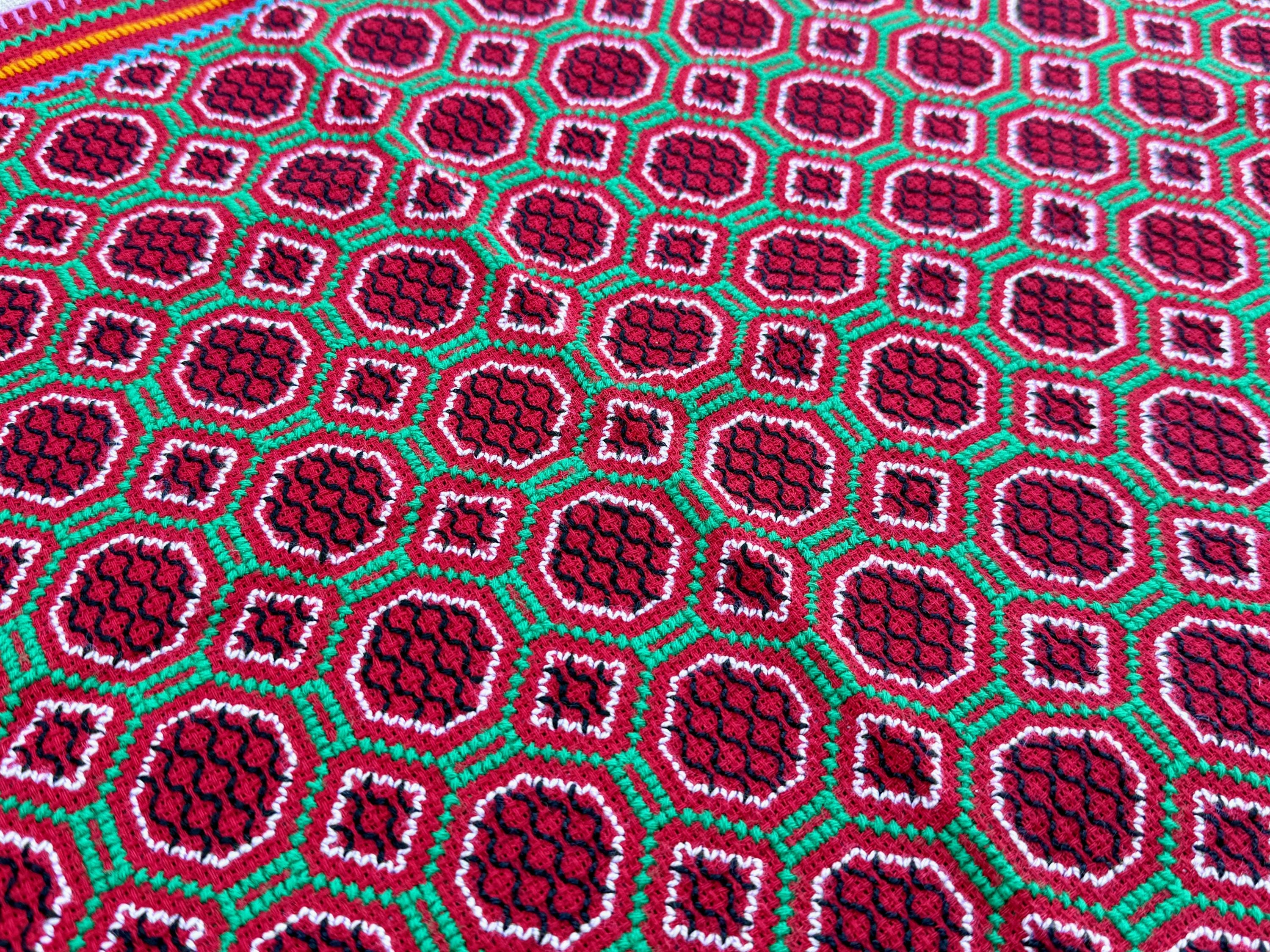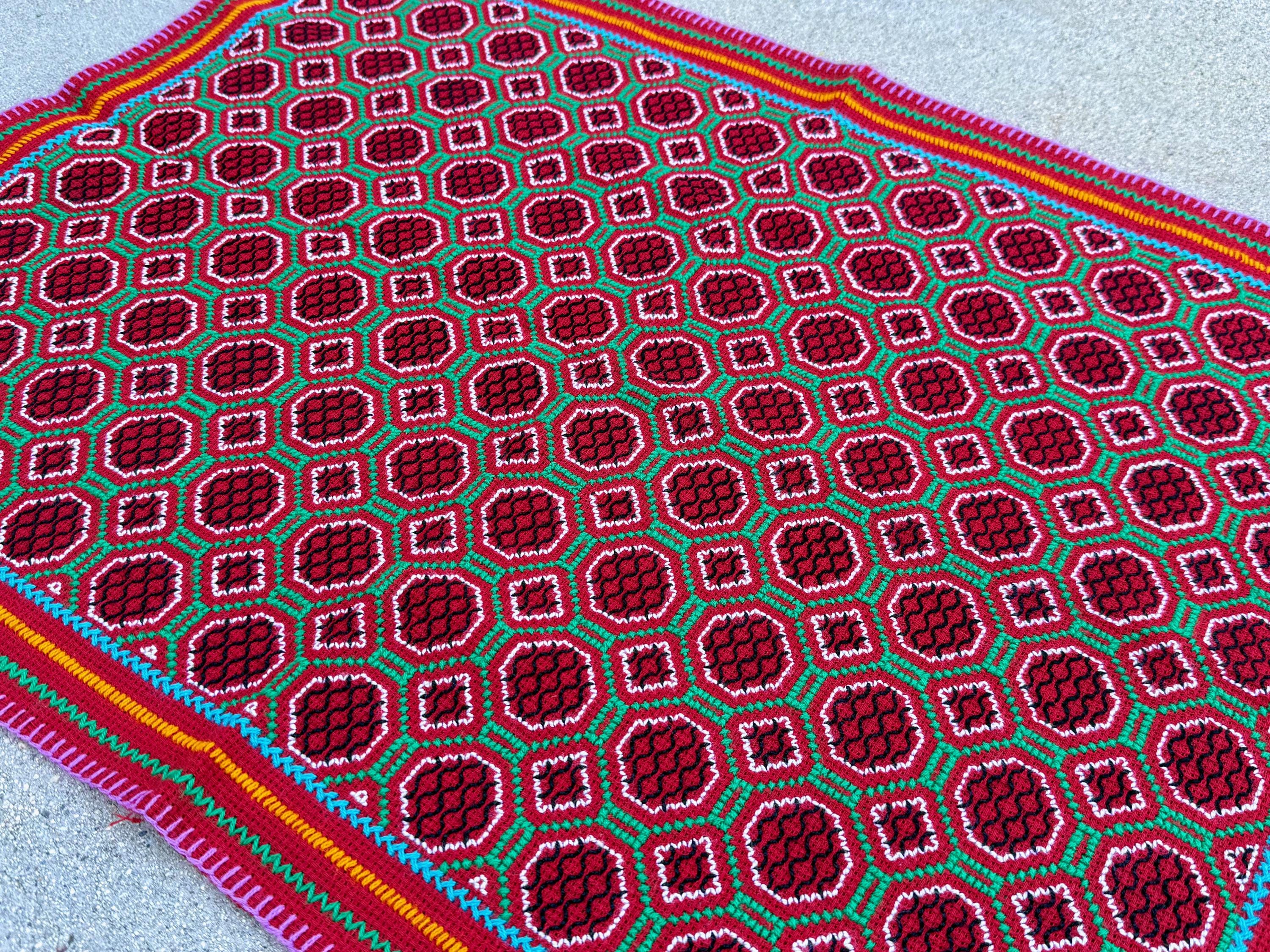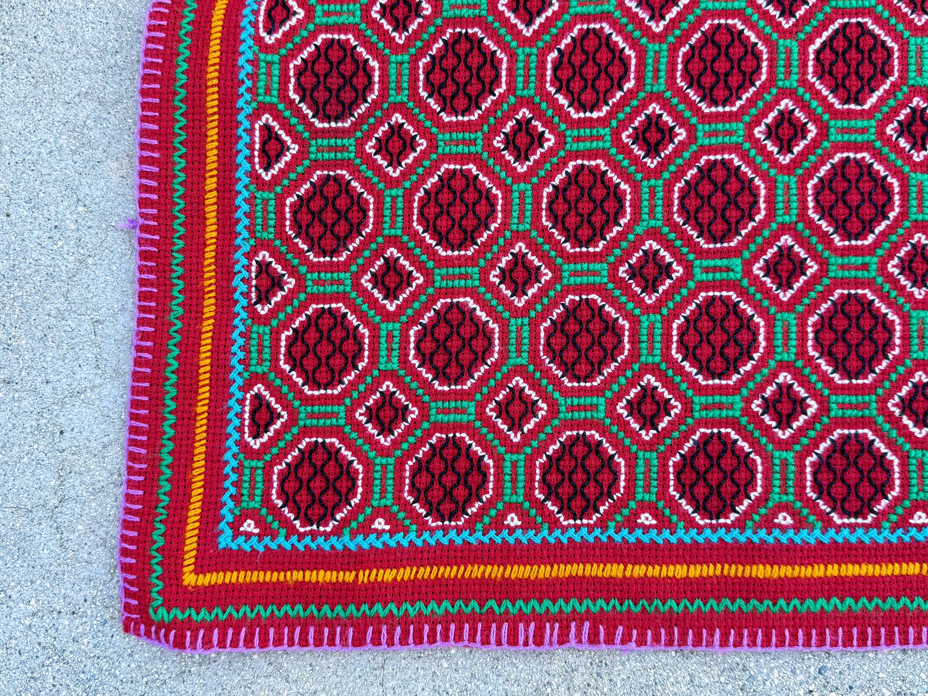 This vibrant Shipibo Manta Cloth was handmade by Maestra Mathilde Gomez Sanchez outside of Iquitos, Peru. It represents an icaro (medicine song) for the Jatoba plant.