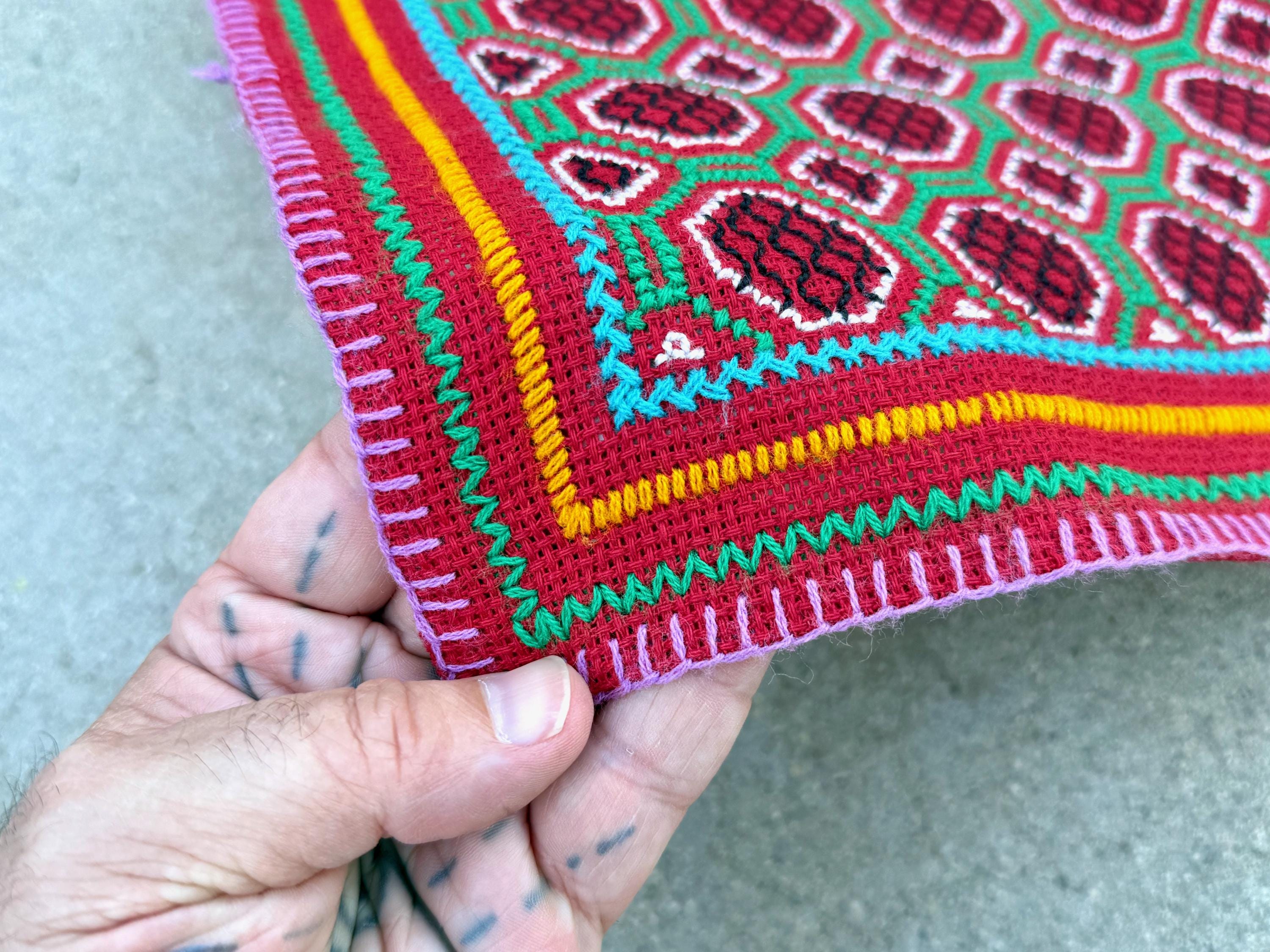Mathilde is a an ayahuasquera and vegetalista of the Shipibo tribe from the Contamana region, and is part of a long lineage of curanderas/curanderos. This manta was hand-embroidered by her and members of her family under her supervision.