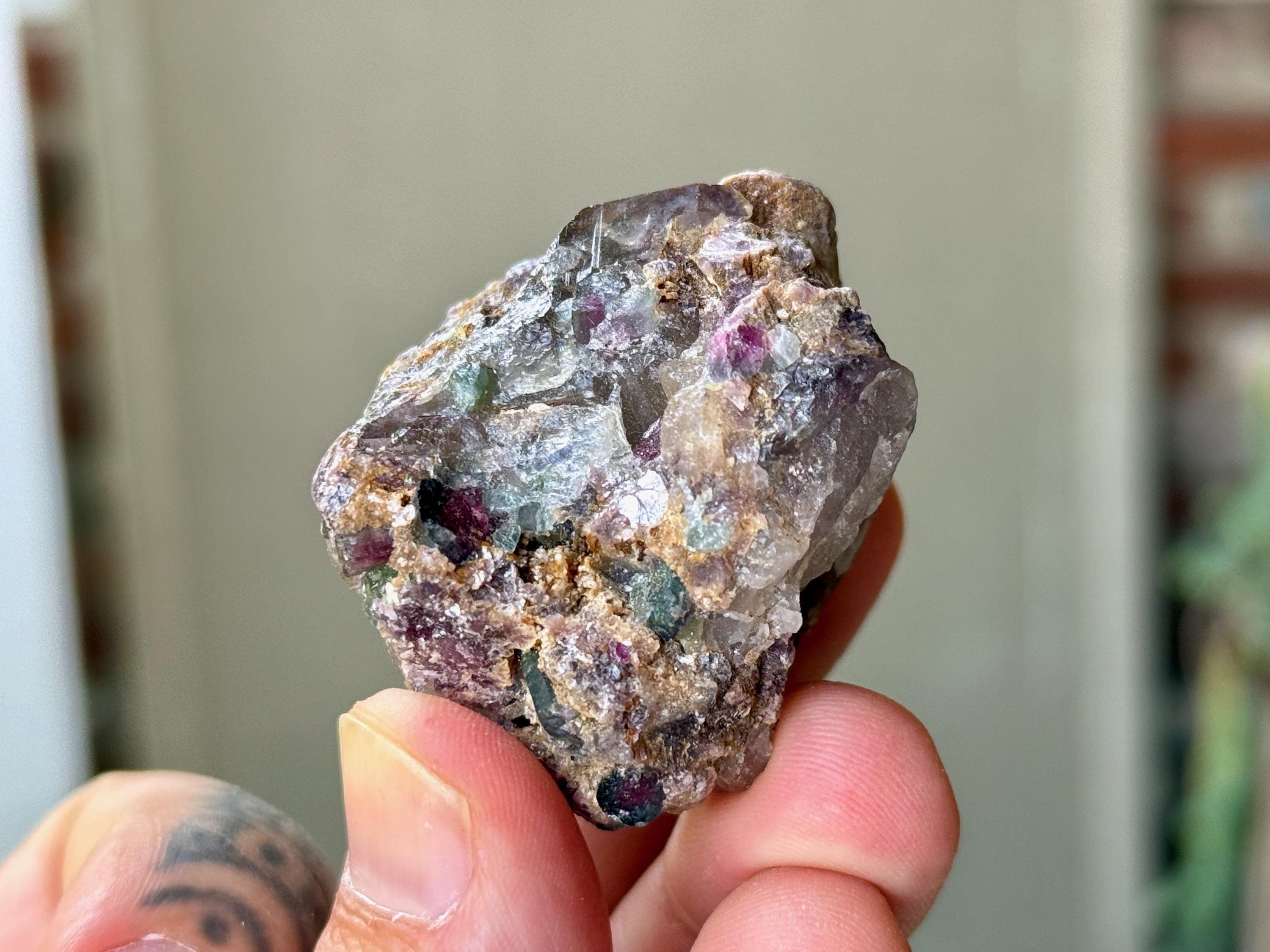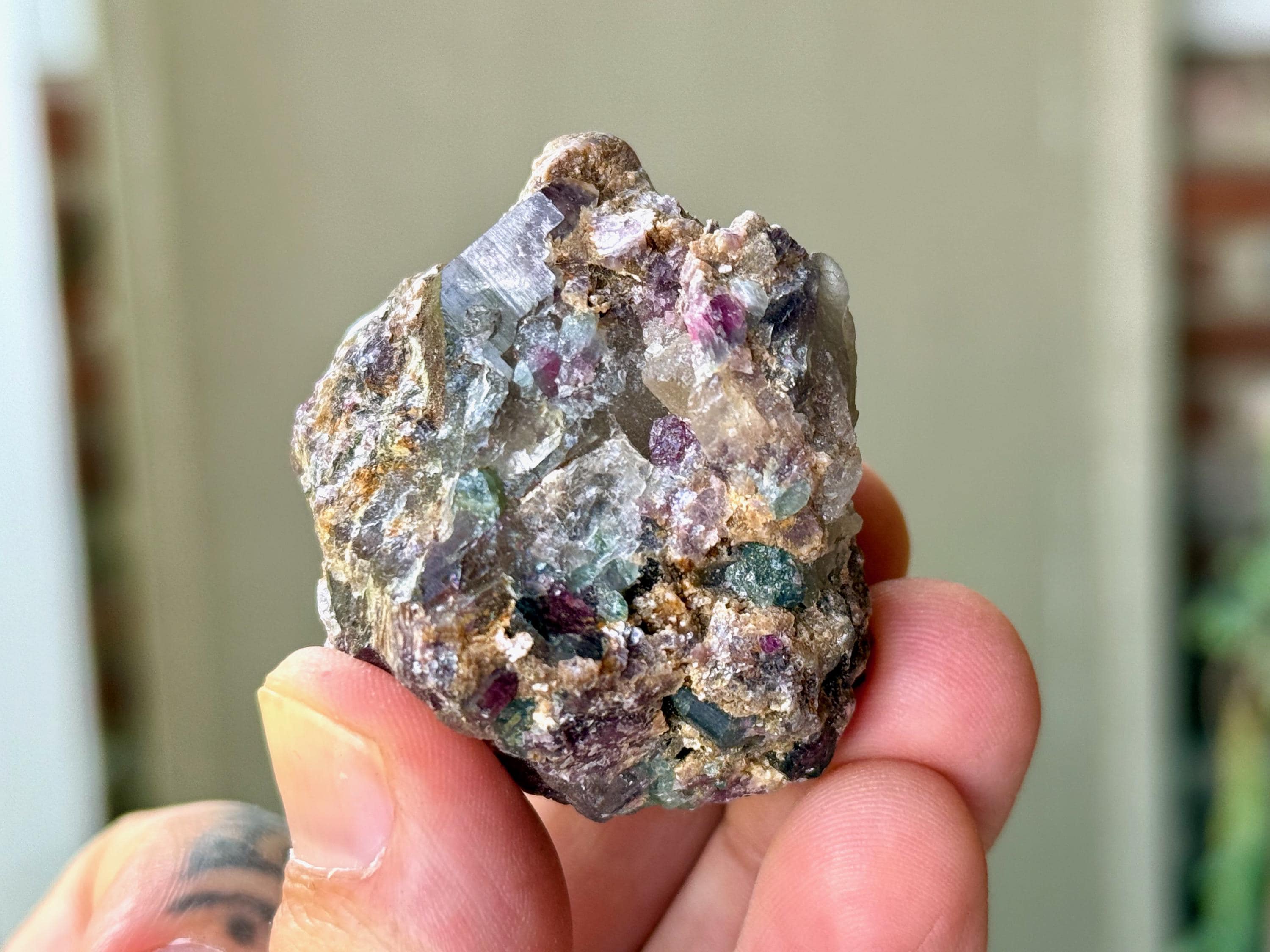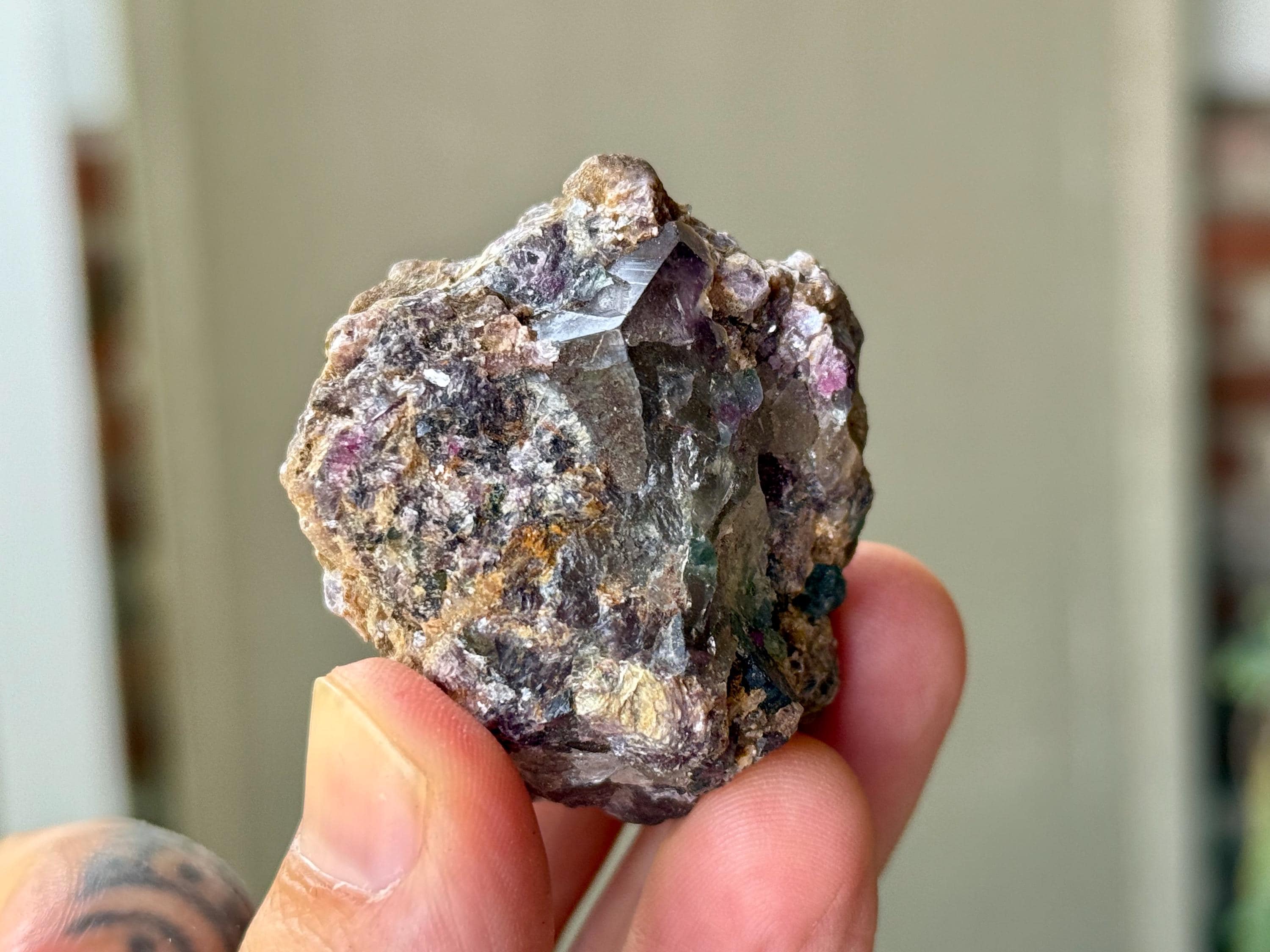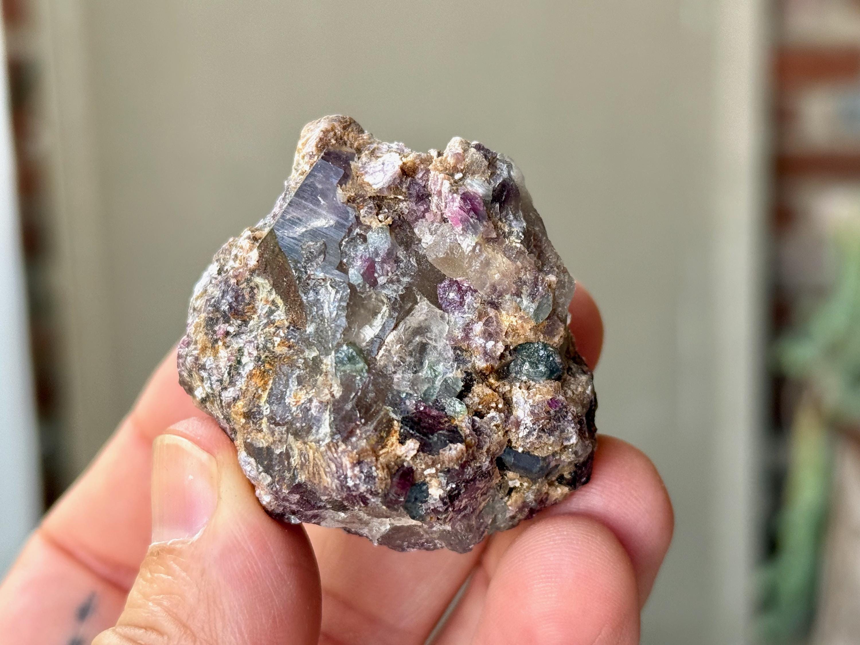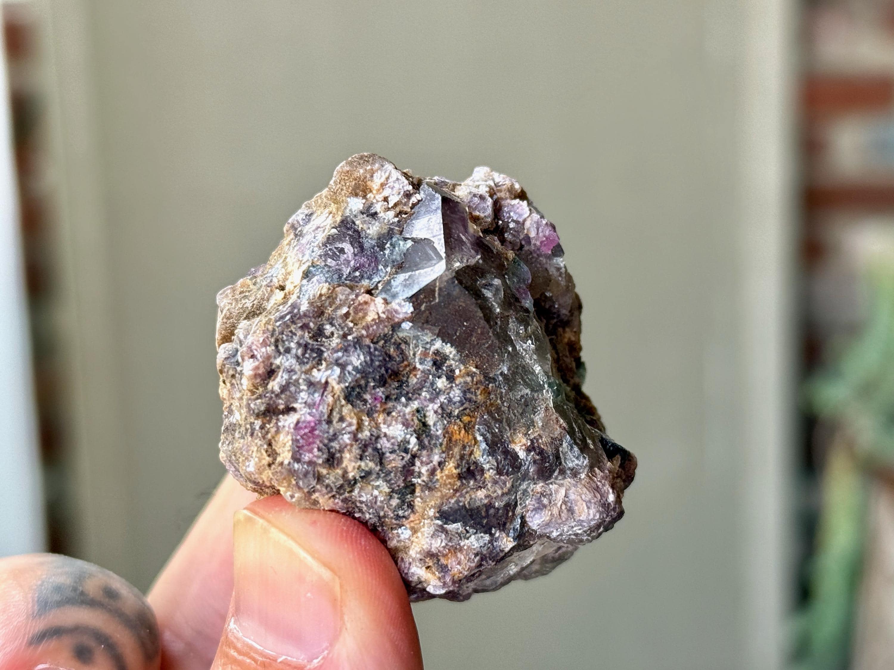 This Unicorn Stone with Smoky Quartz, Lepidolite and Green Tourmaline comes from a recent (2025) find in Coronel Murta, Minas Gerais, Brazil.