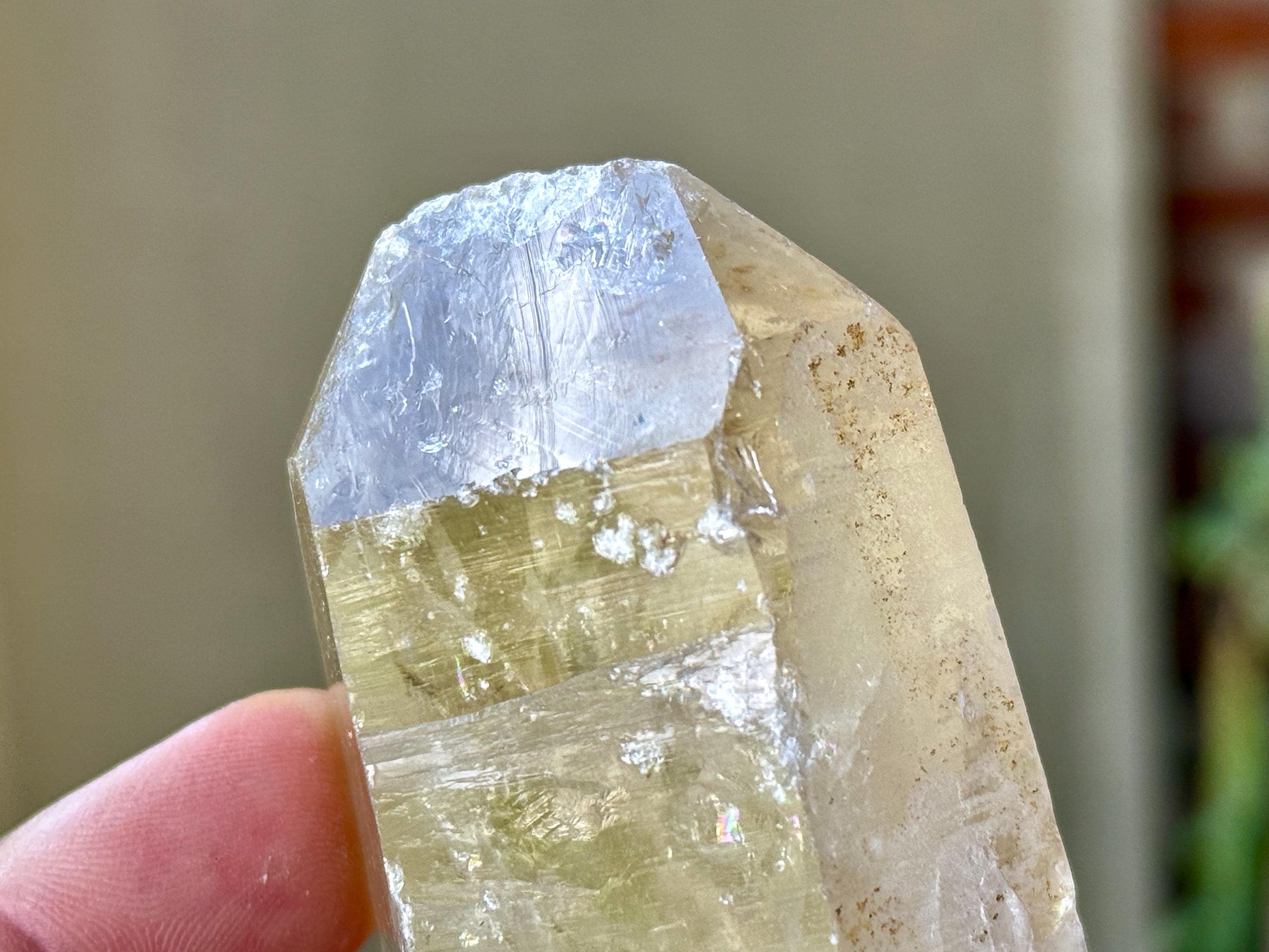 In terms of condition, this crystal is quite nice with only very minor issues. There are a few *very* minor dings on the vertical front edges. And there is a minor chip to the bottom main facet that just mildly abuts the base termination (Photo 9).