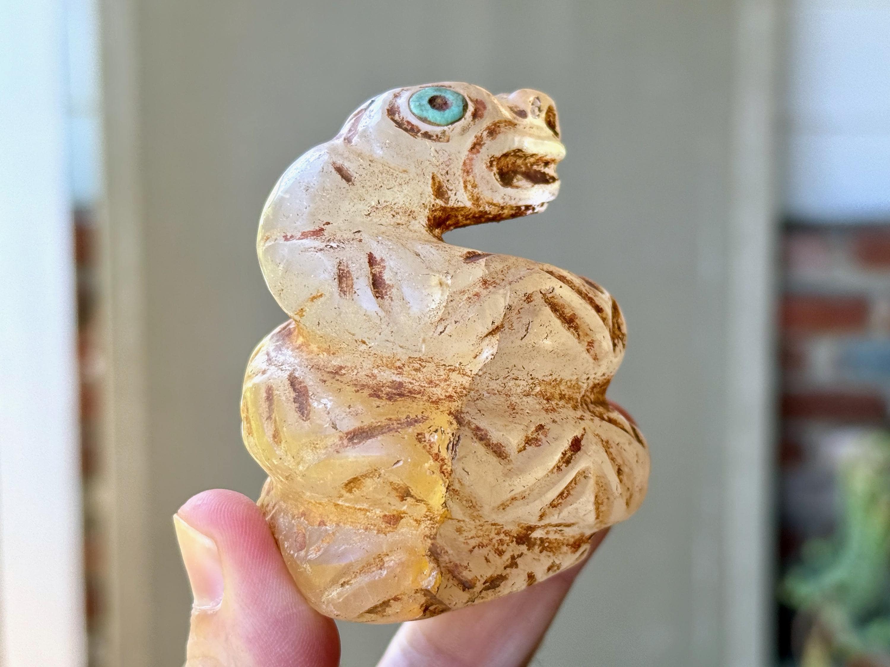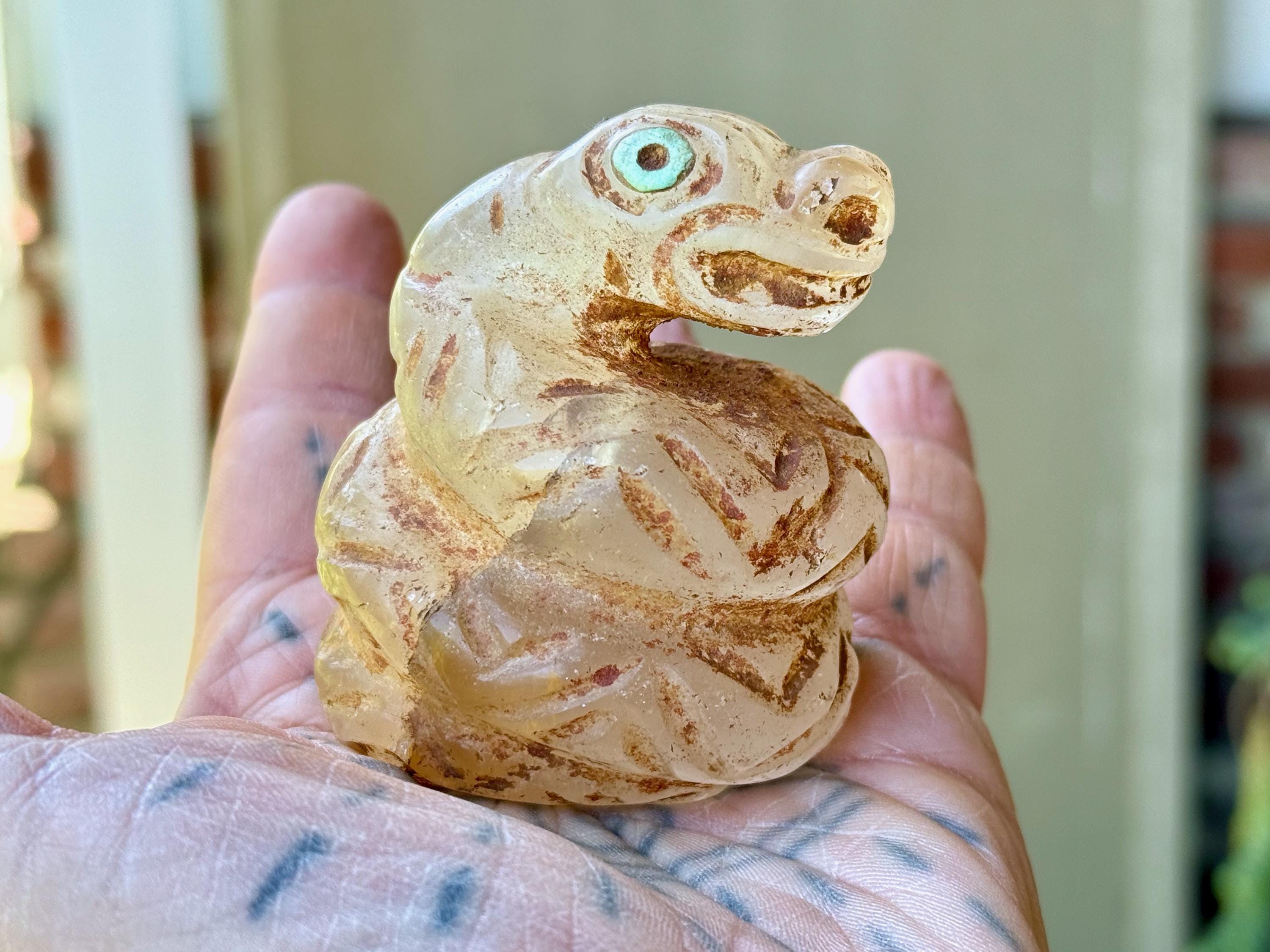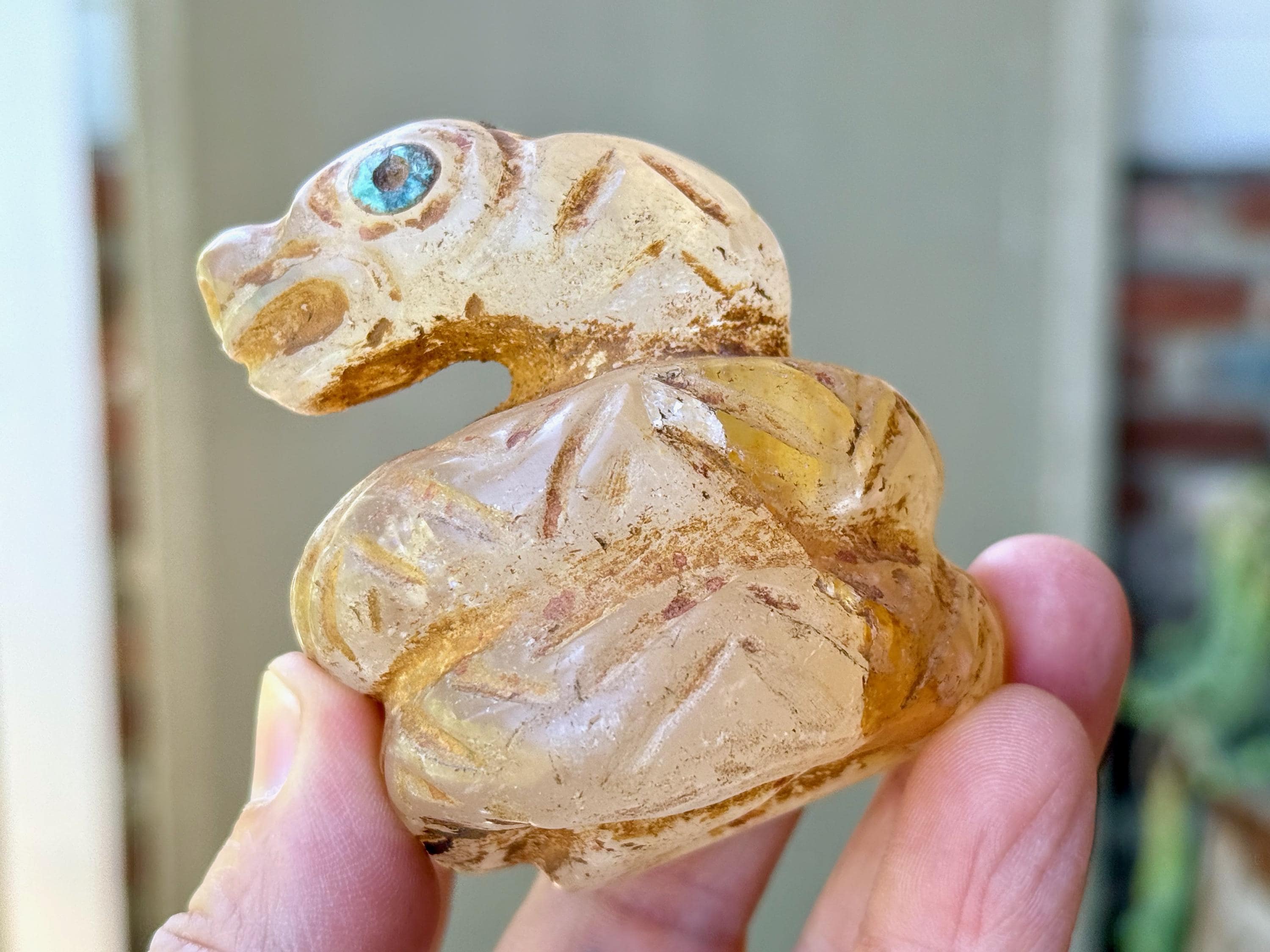 This Quartz Crystal Serpent was hand carved from native Peruvian Quartz by artist Ruben Layme in Peru's Sacred Valley.