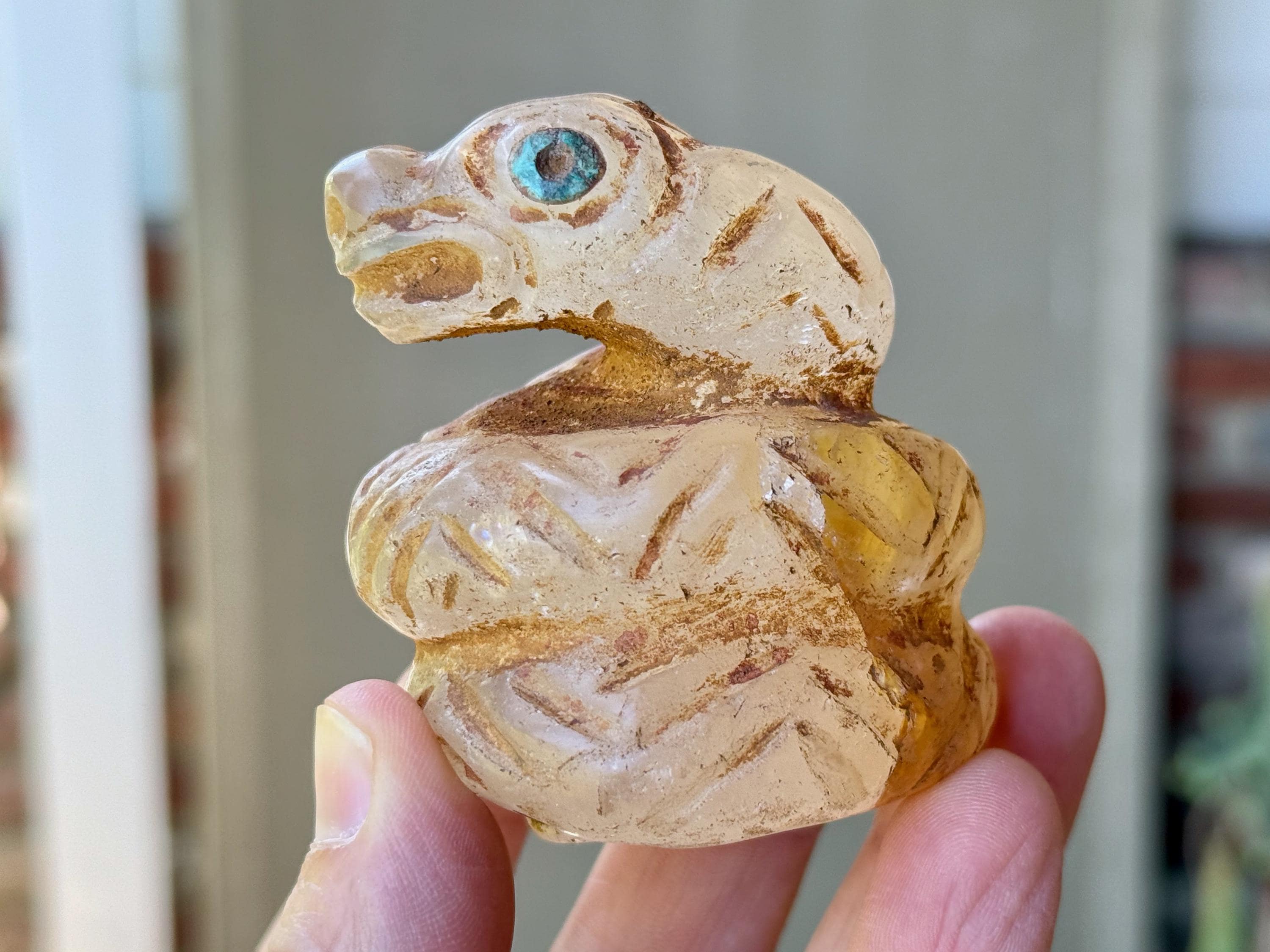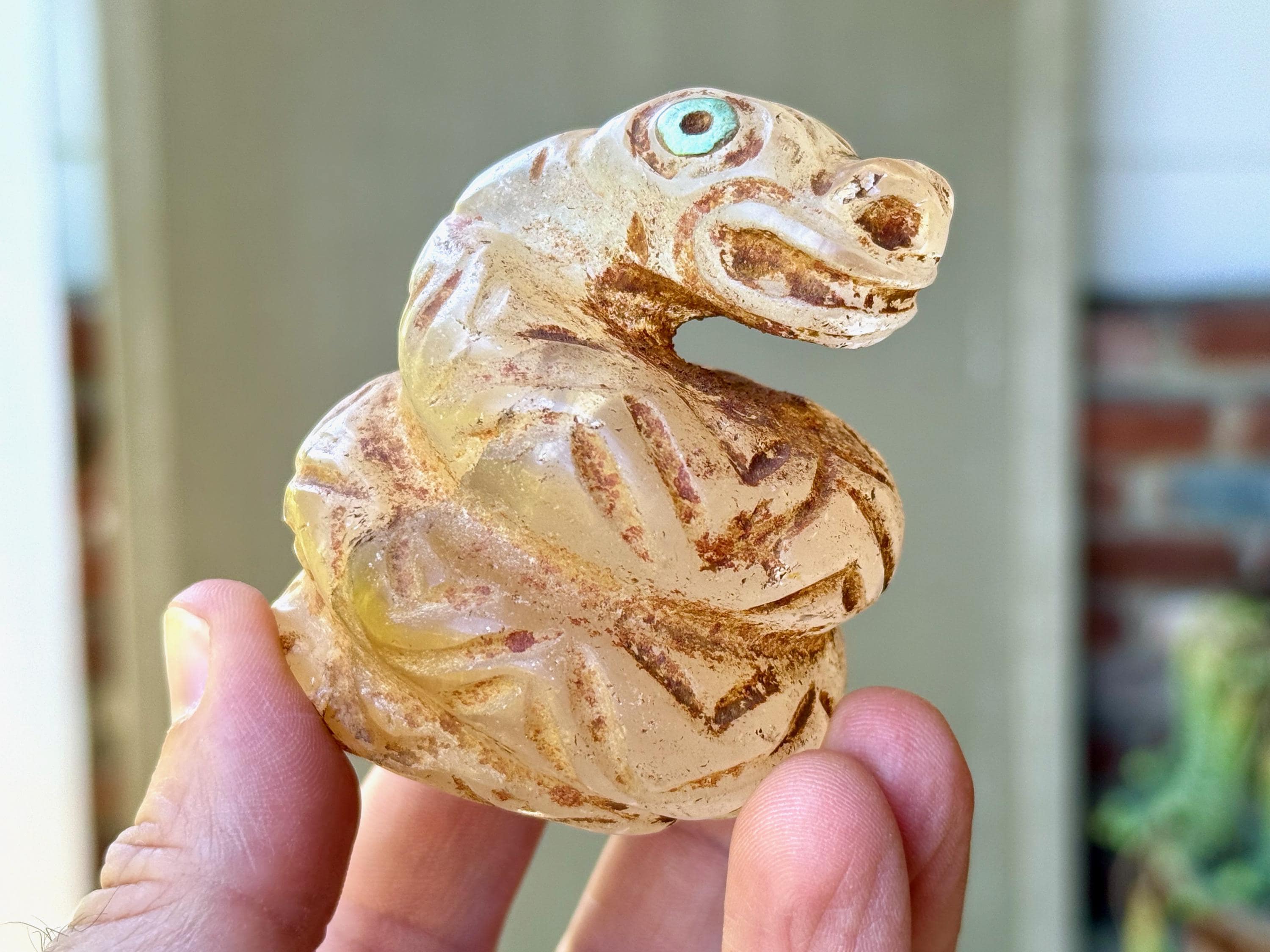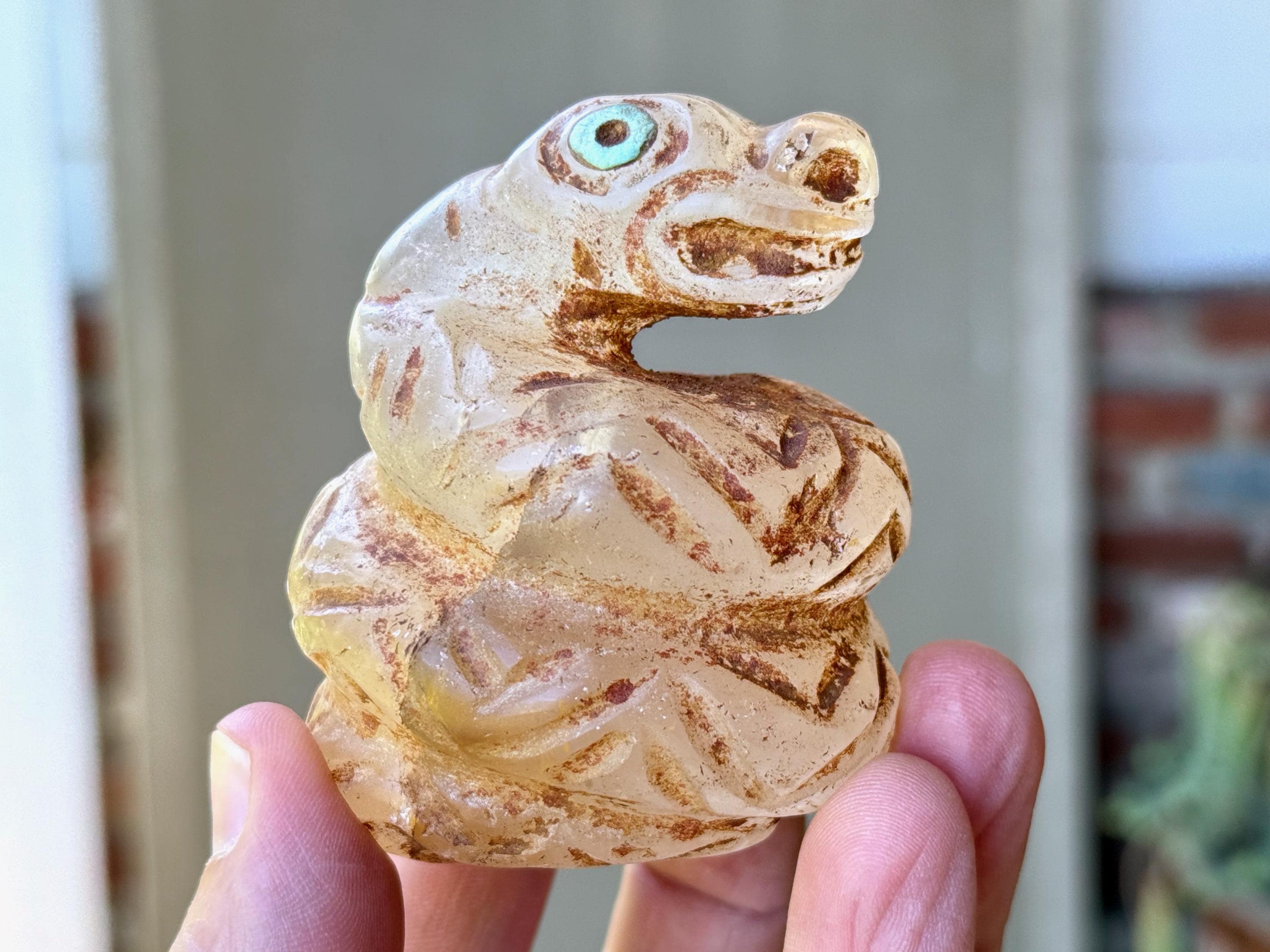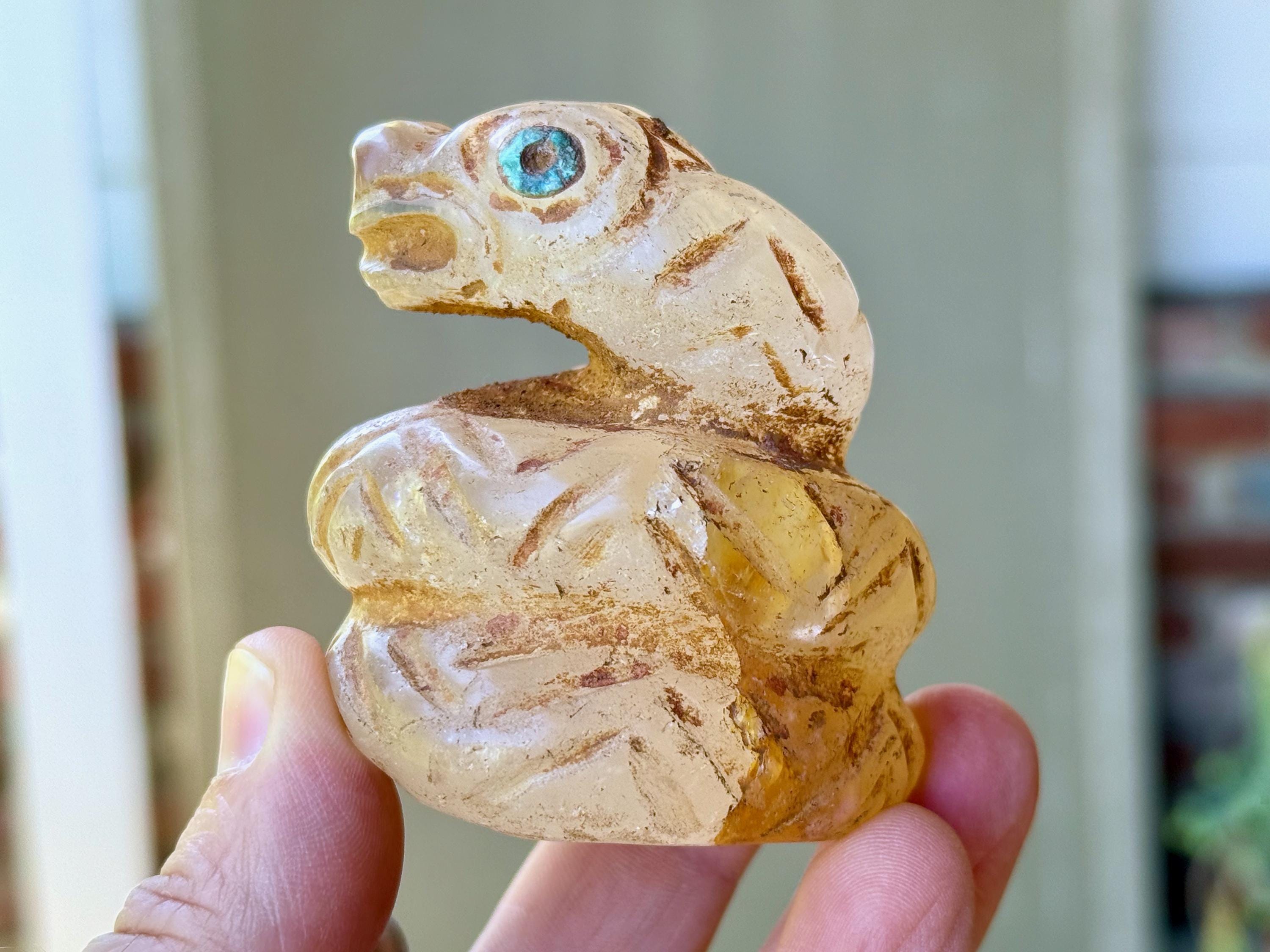 This Quartz Crystal Serpent was hand carved from native Peruvian Quartz by artist Ruben Layme in Peru's Sacred Valley.