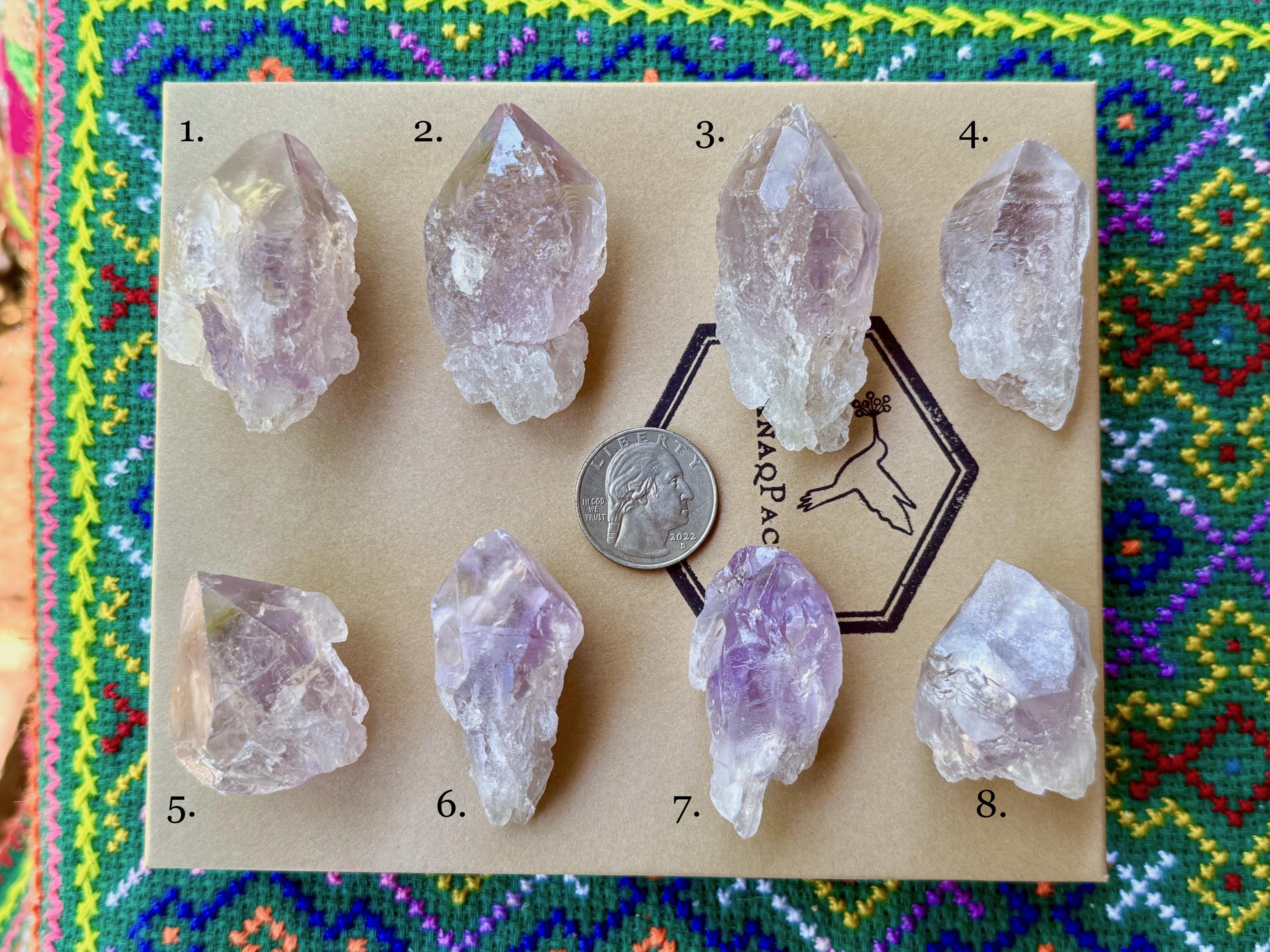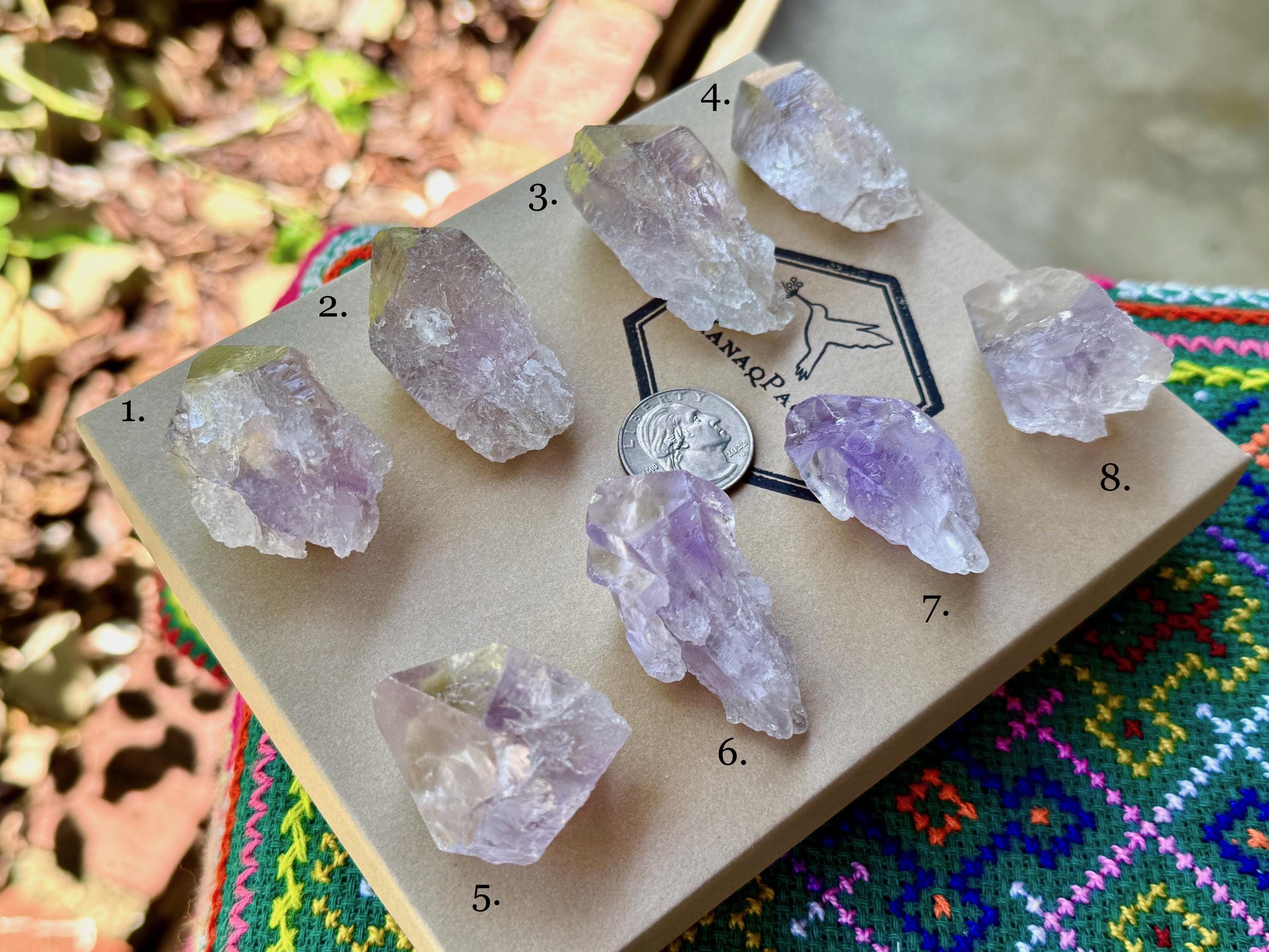 Simply select the crystal(s) of your preference from the dropdown menu (#1 - 8). The crystals are numbered in Photos 1-2, as well as in each subsequent photo. Each photo in the dropdown correlates to the actual crystal purchased.