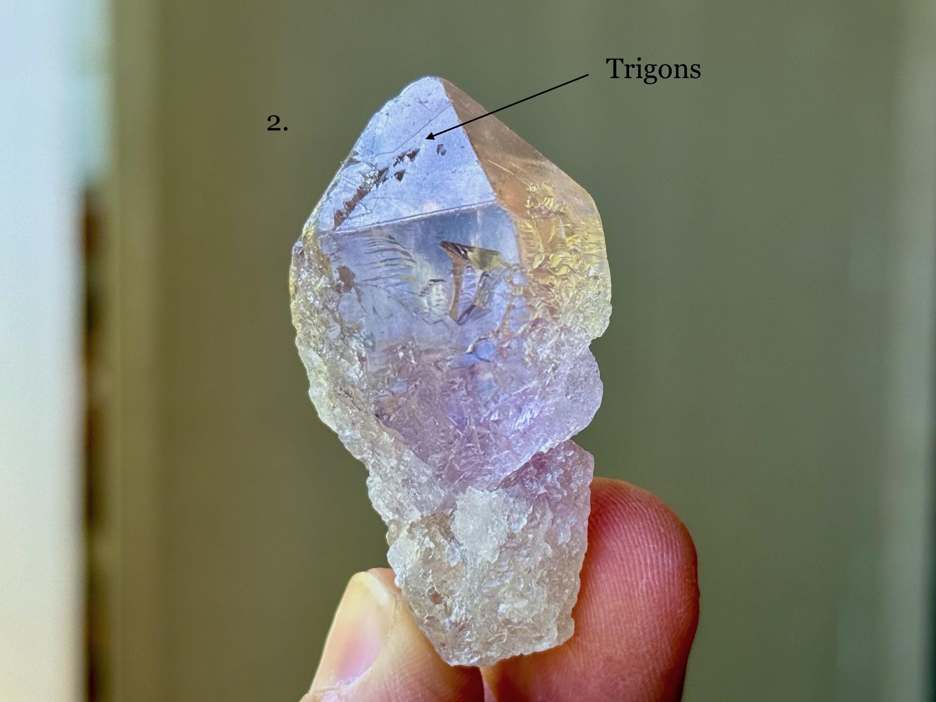 Gentle lilac hues and brilliant luster to these elegant Dissolution Amethyst crystals with hydrothermal textures throughout. A few even have tiny trigonic imprints!