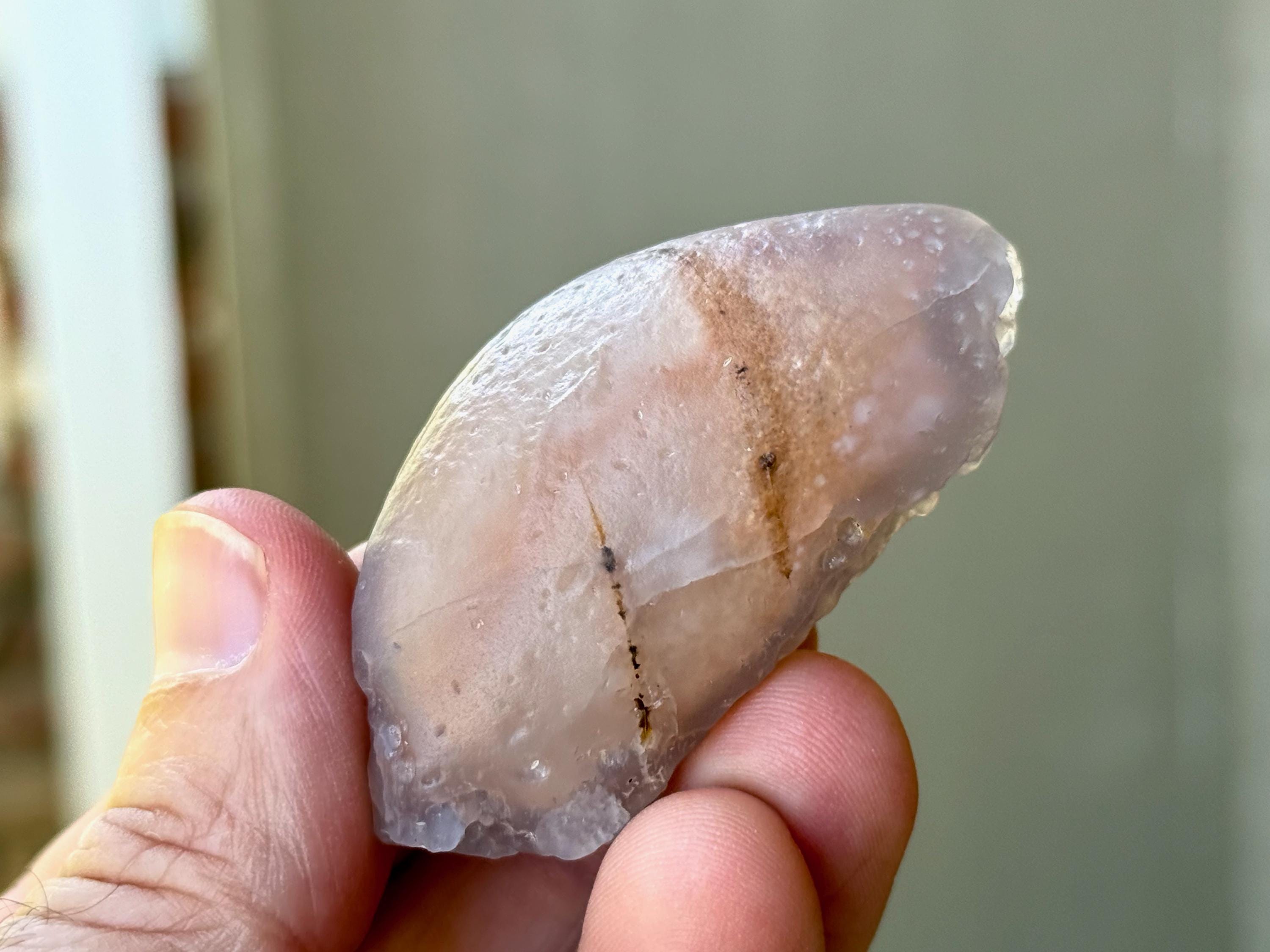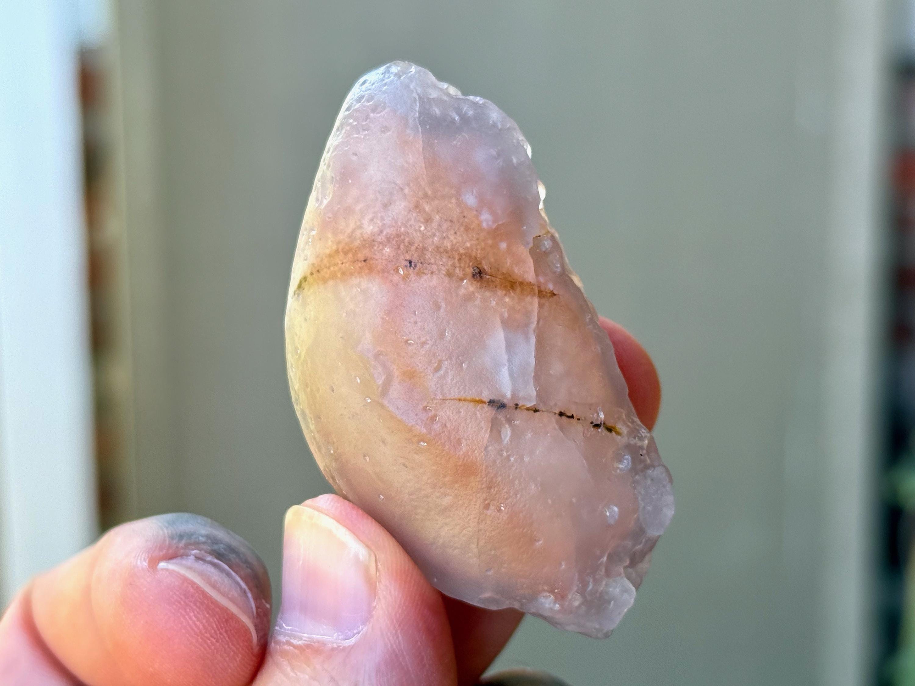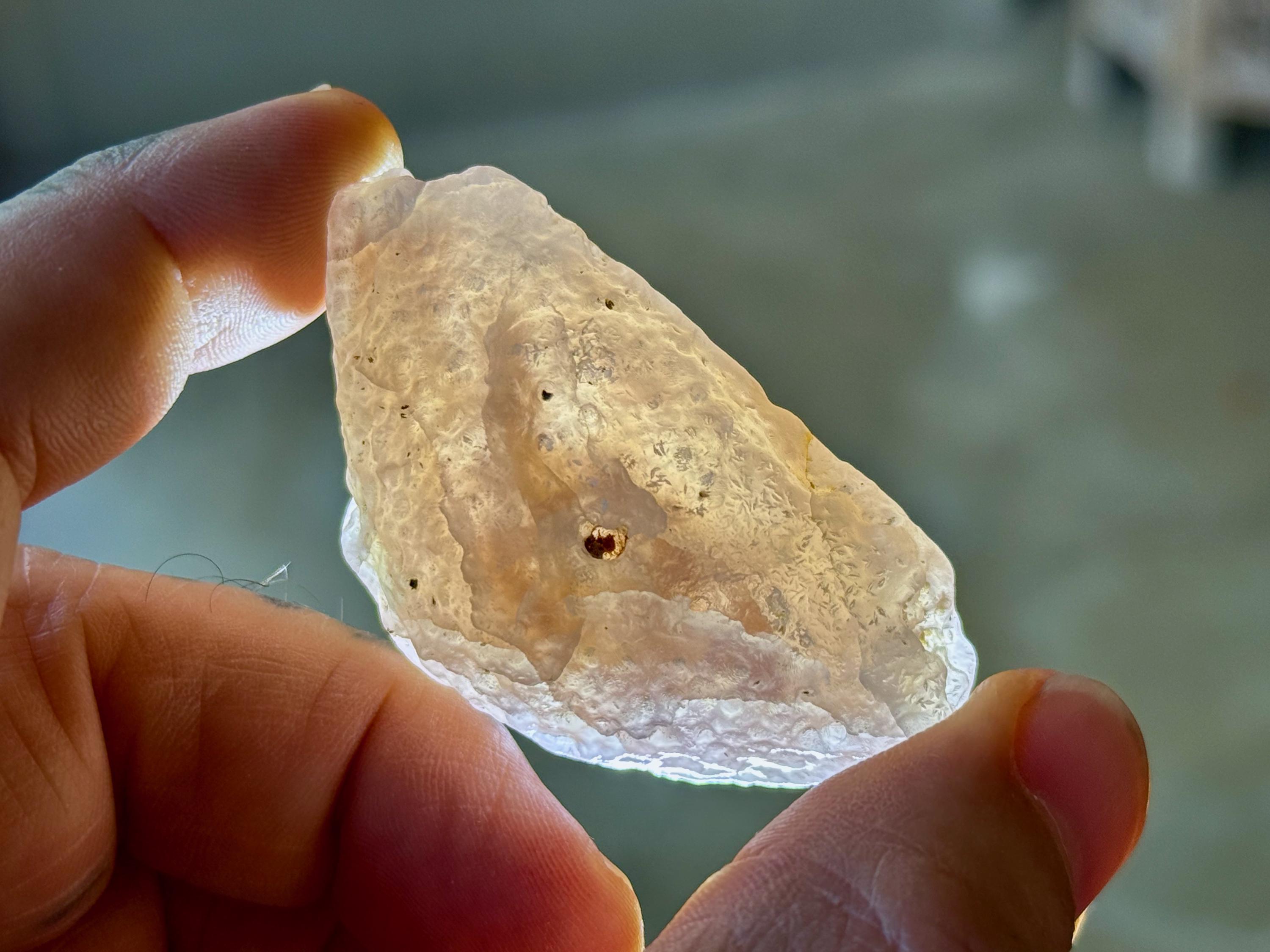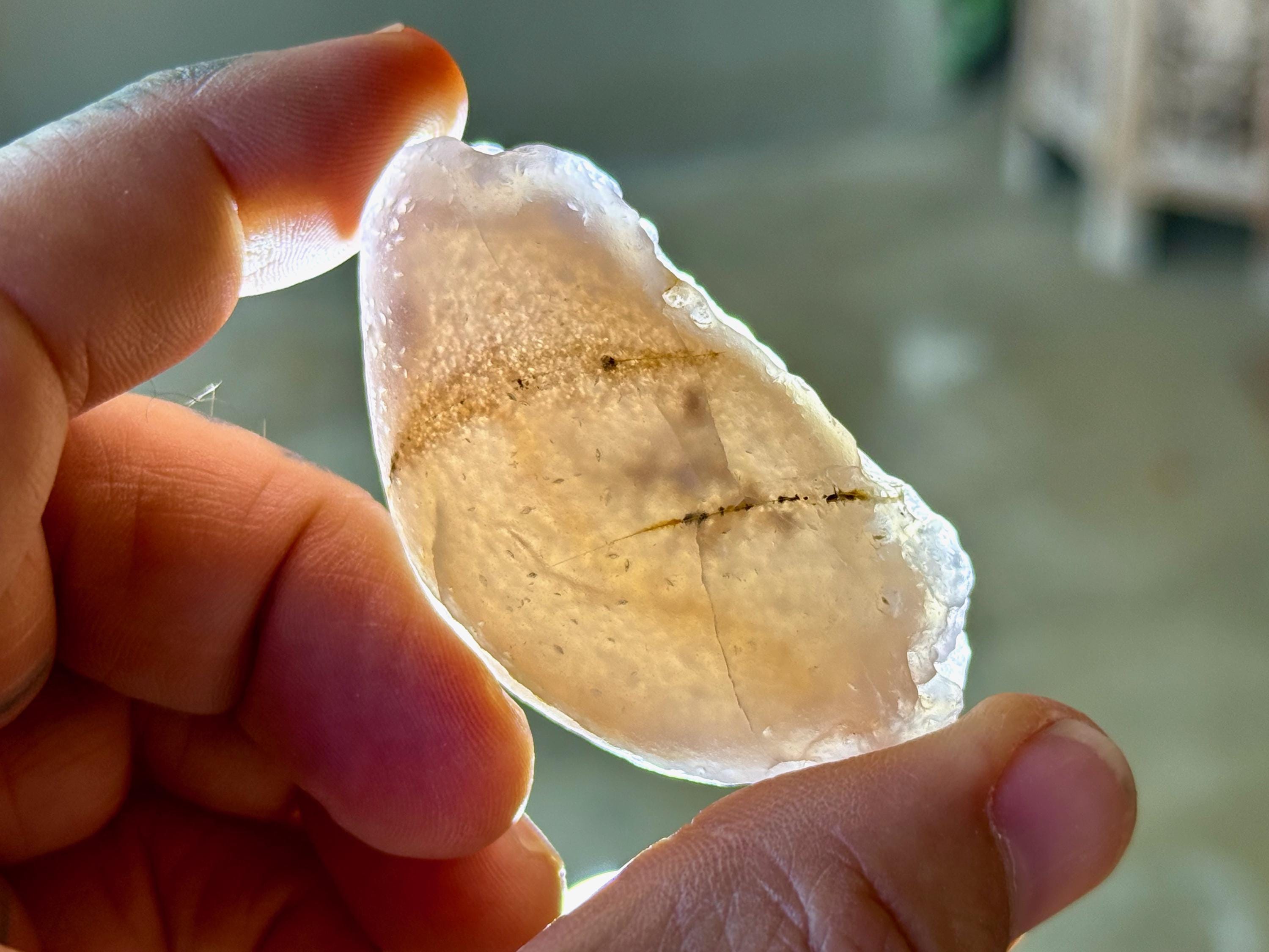This natural "Running Sand" Gobi Agate comes from the Gobi Desert in Southern Mongolia. What makes this stone so very special is that there is trapped sand inside, a rare phenomenon in these beautiful stones, which gives them the name "Running Sand" Agates.