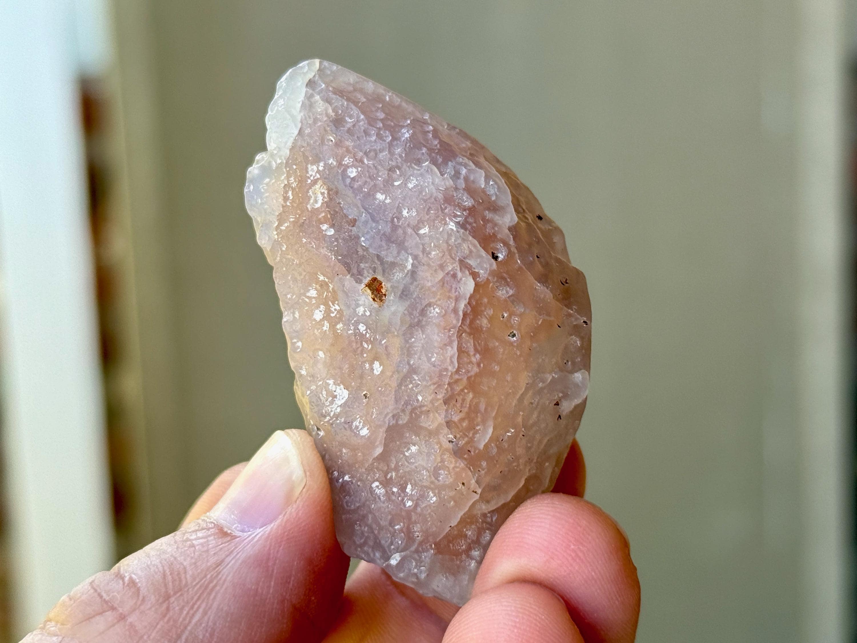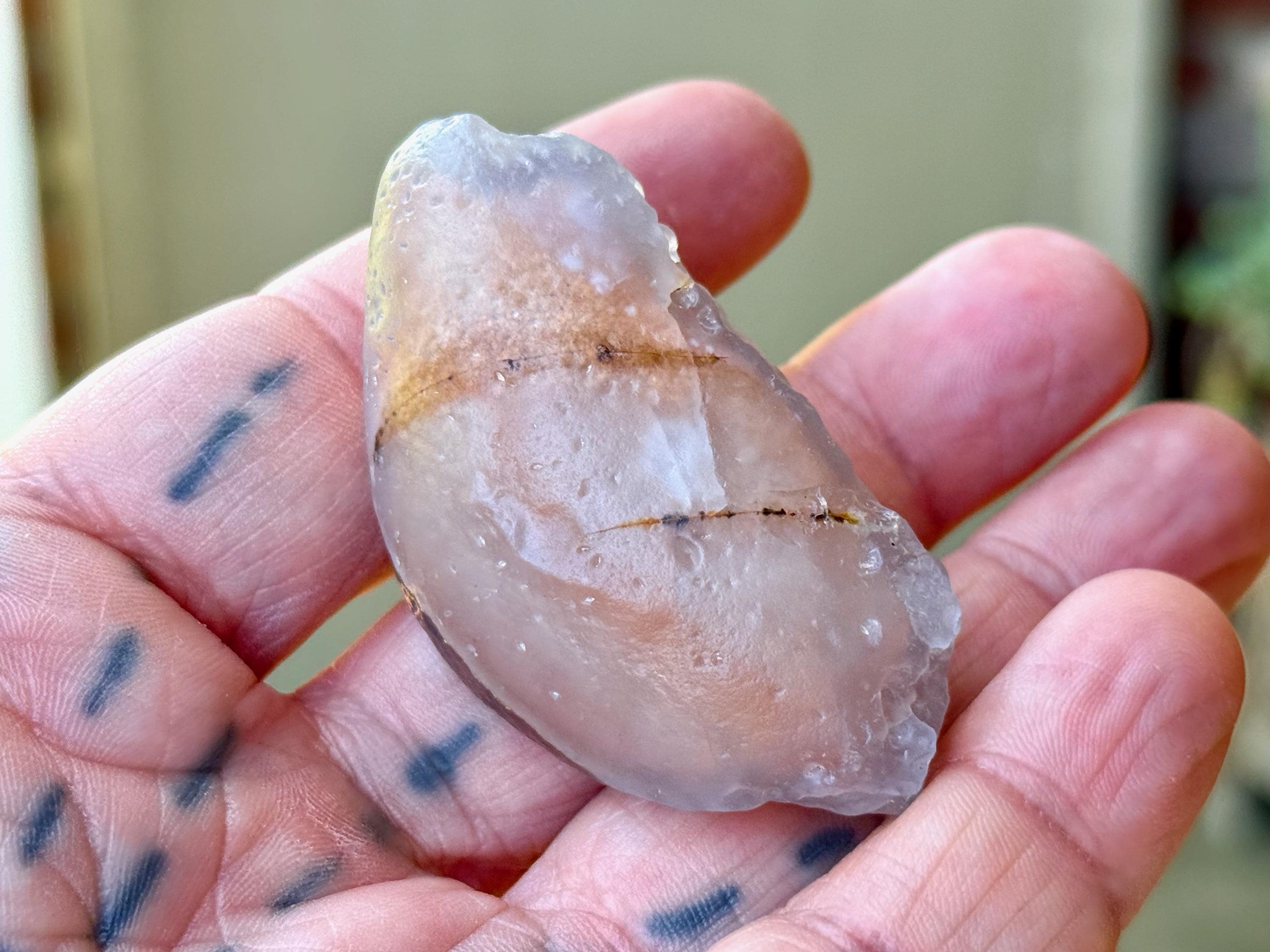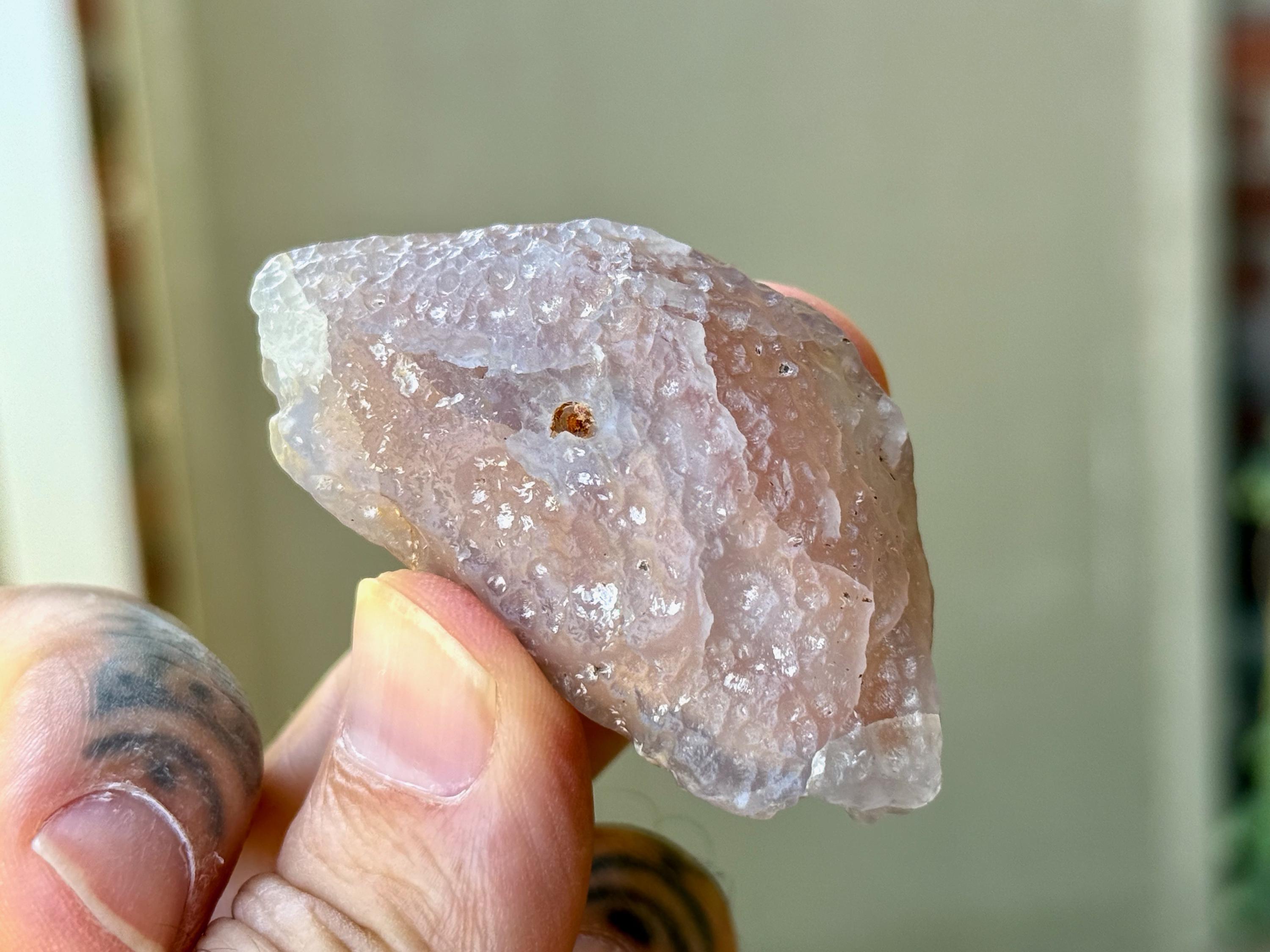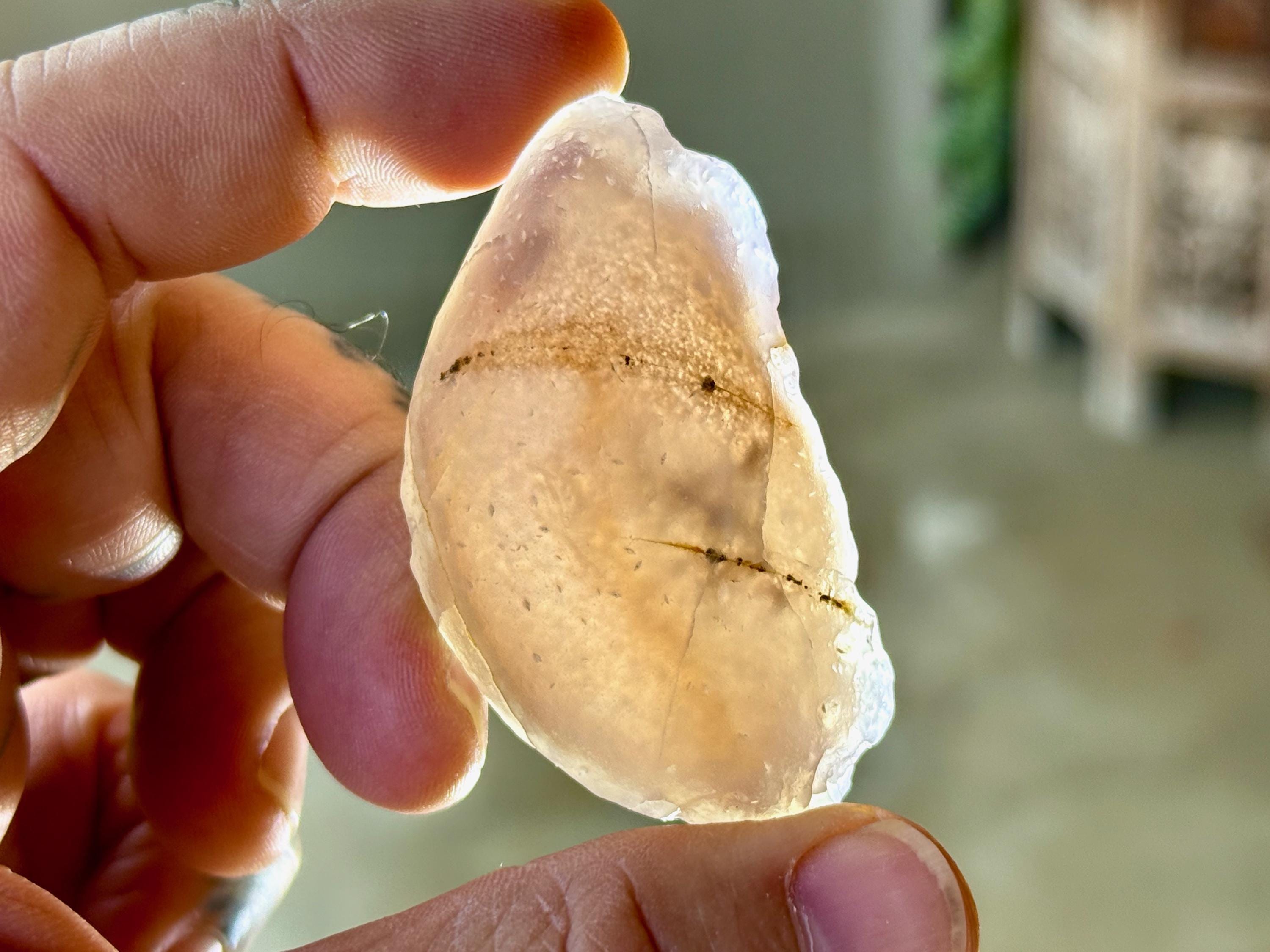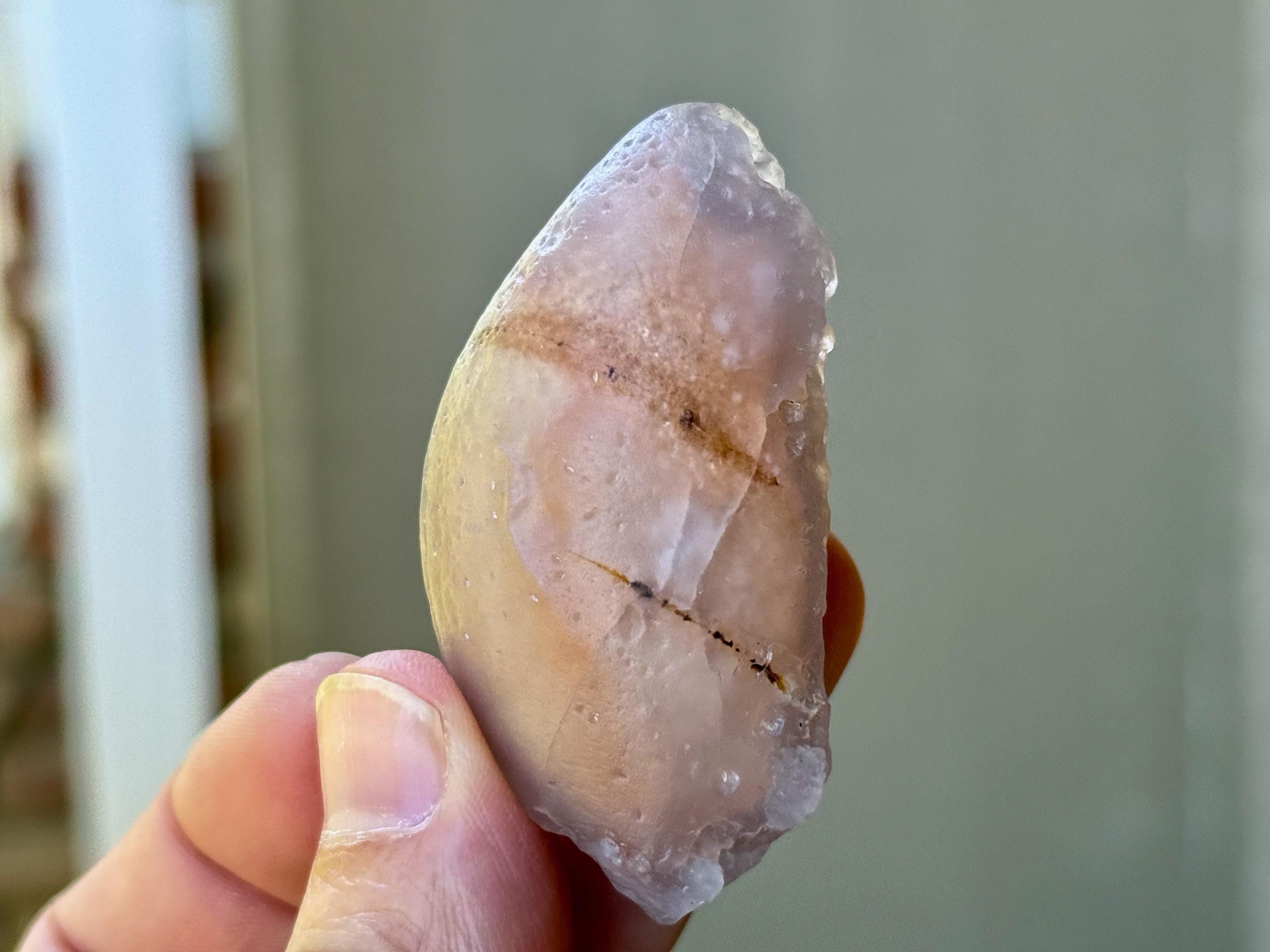 This natural "Running Sand" Gobi Agate comes from the Gobi Desert in Southern Mongolia. What makes this stone so very special is that there is trapped sand inside, a rare phenomenon in these beautiful stones, which gives them the name "Running Sand" Agates.