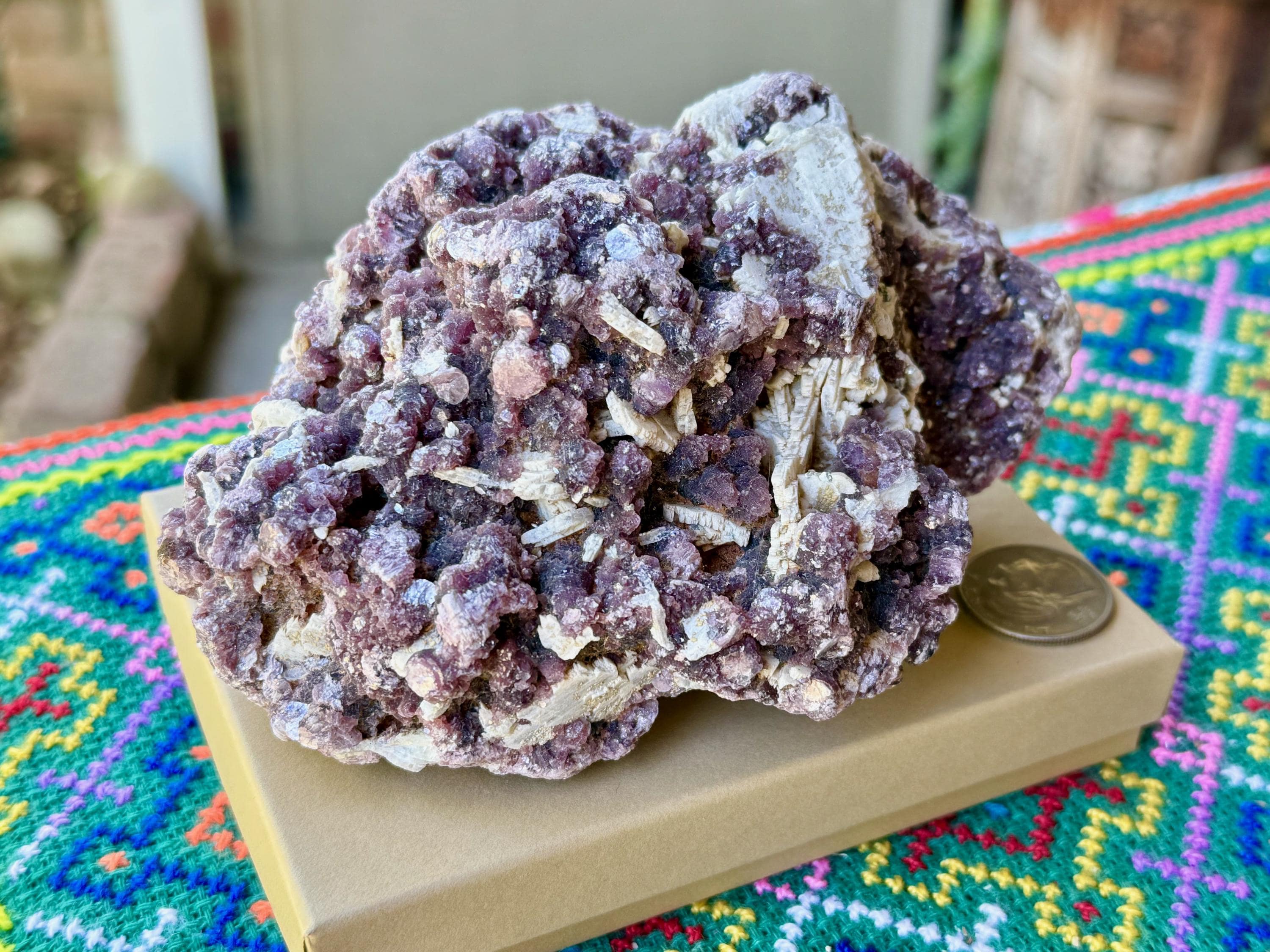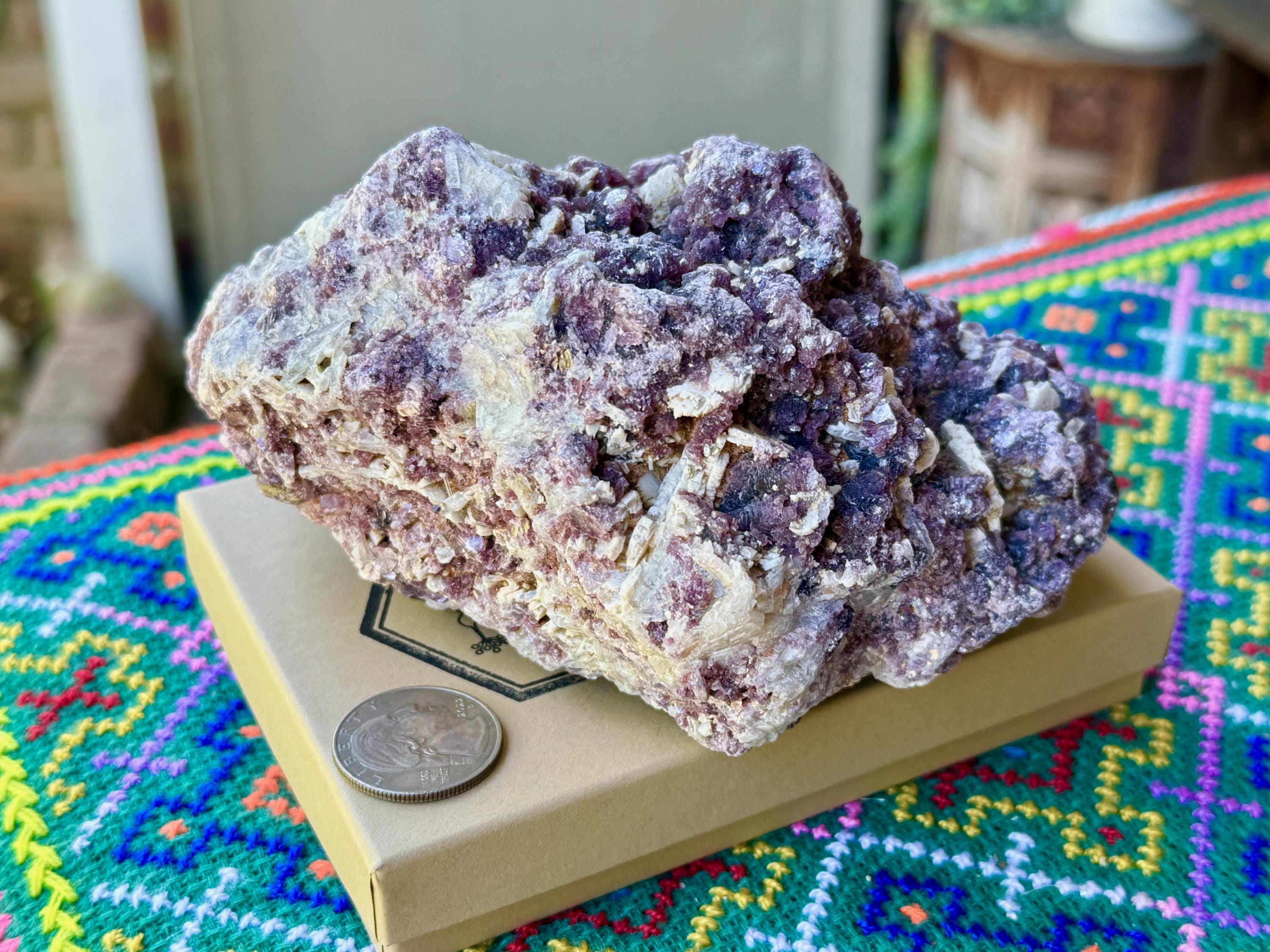 This is a wonderful healing crystal, combining the calming energies of Lepidolite with the trauma-healing energies of Orthoclase. This would be an ideal piece for bedside, or living room, as well as therapy office, meditation studio, etc.