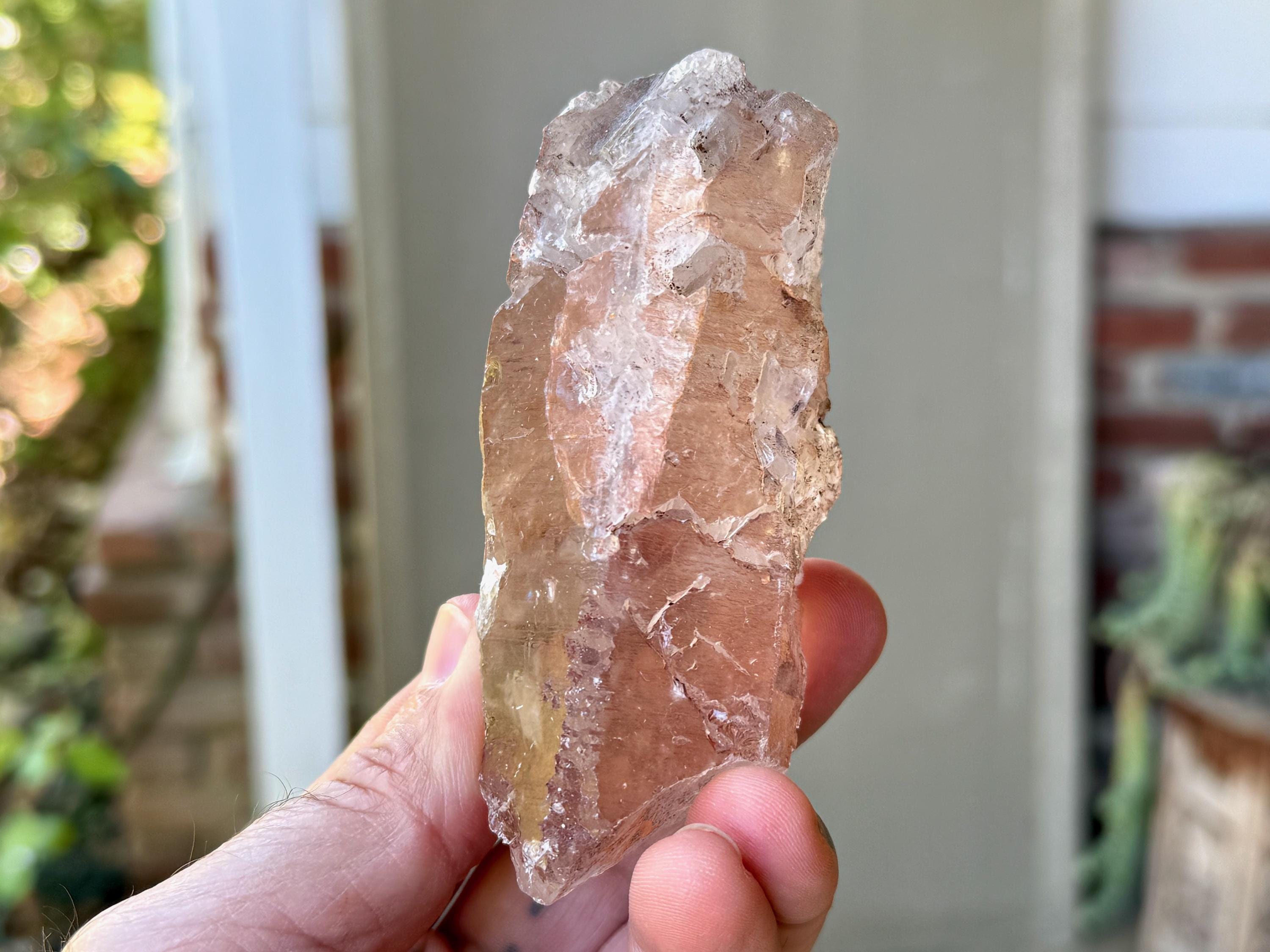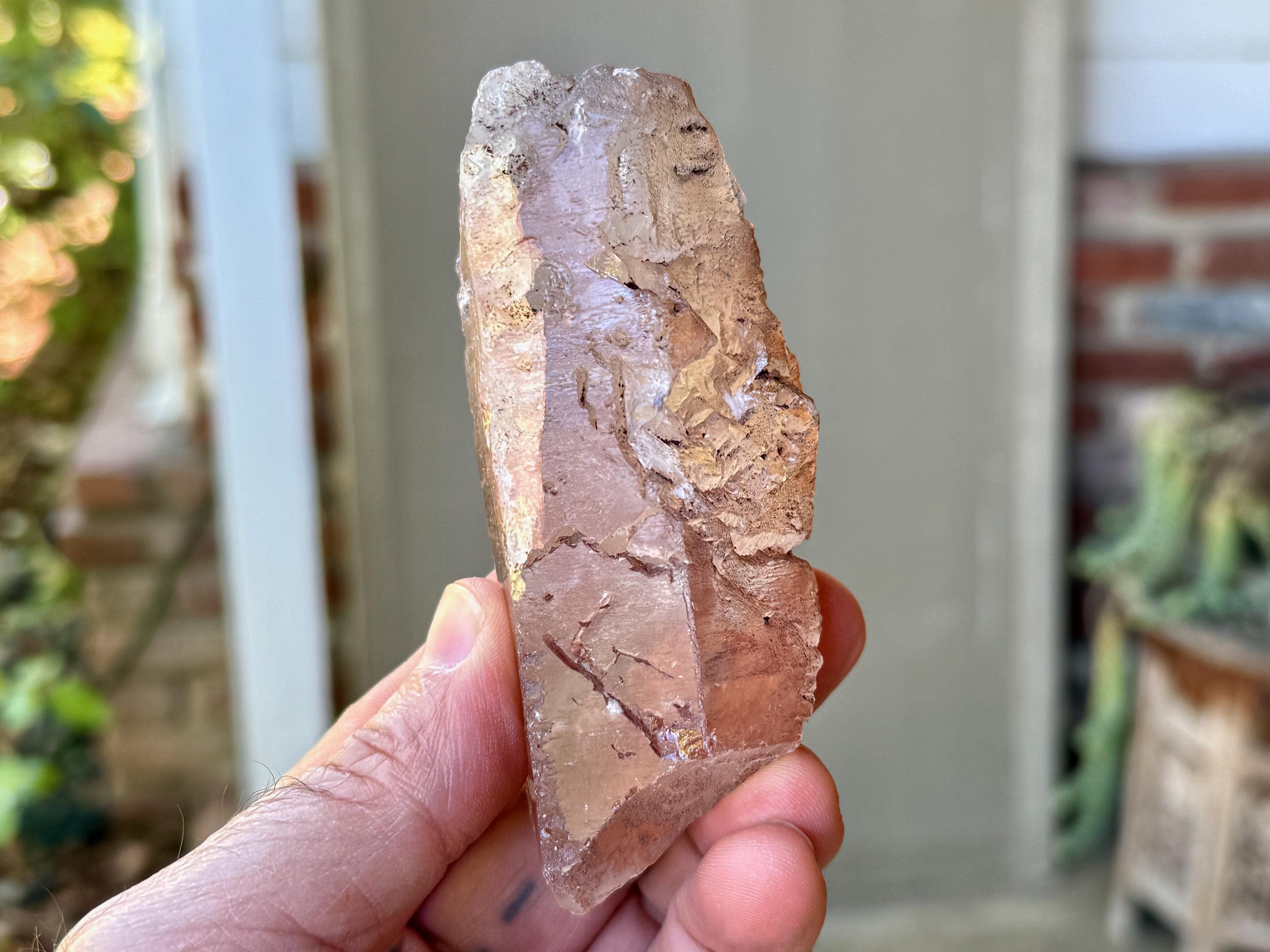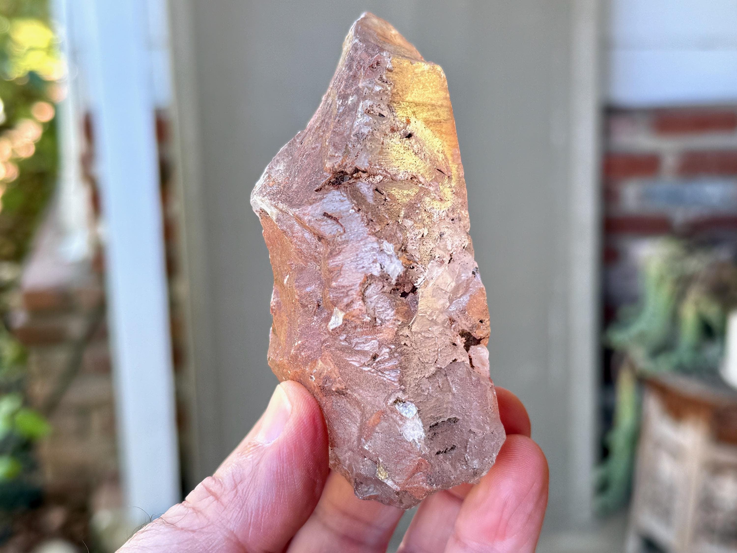 This natural Ancient Sage Tangerine Dissolution Quartz comes from an old 2018 find in Para State, Brazil. The pinkish-orange hue comes from Hematite inclusion.