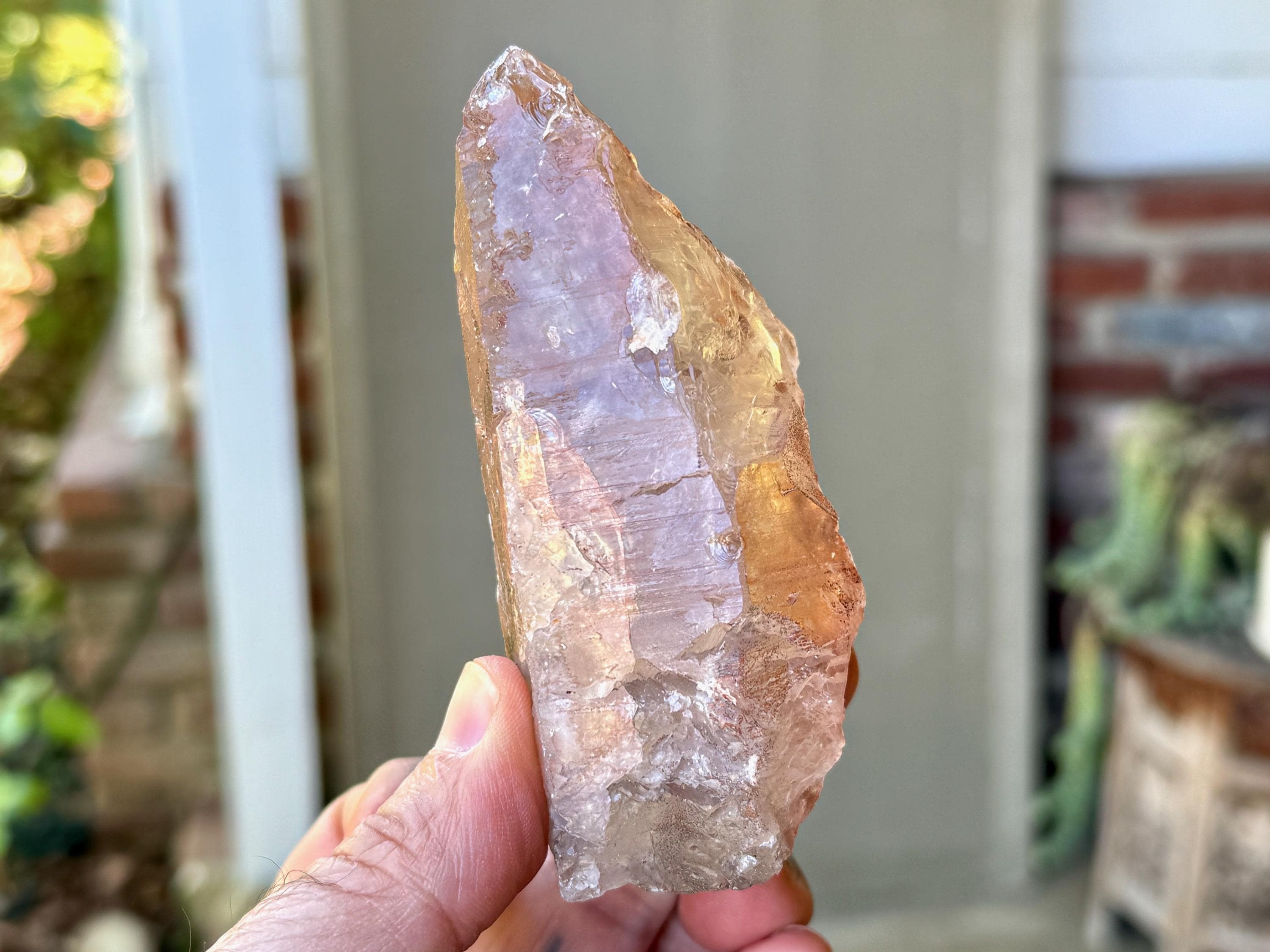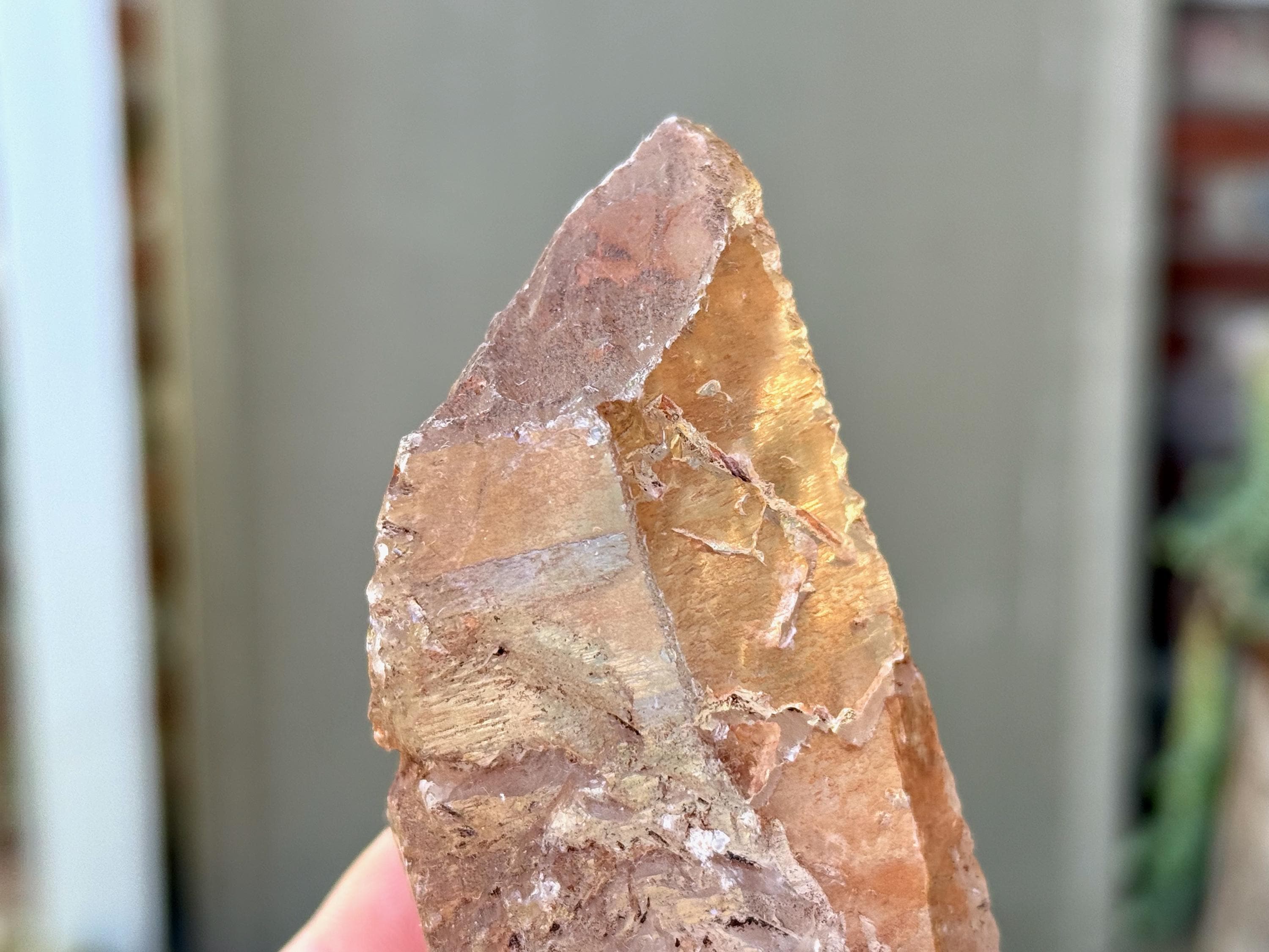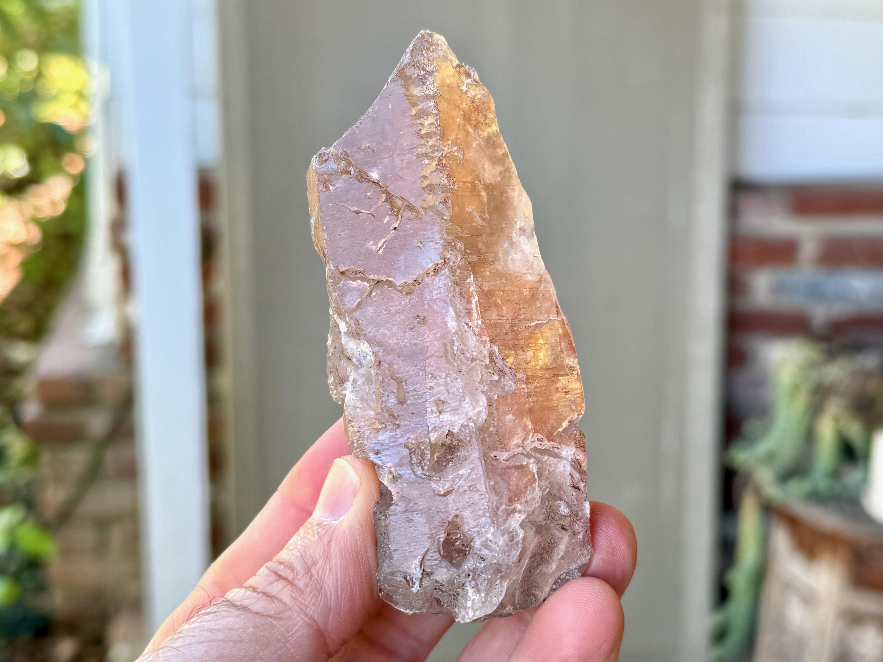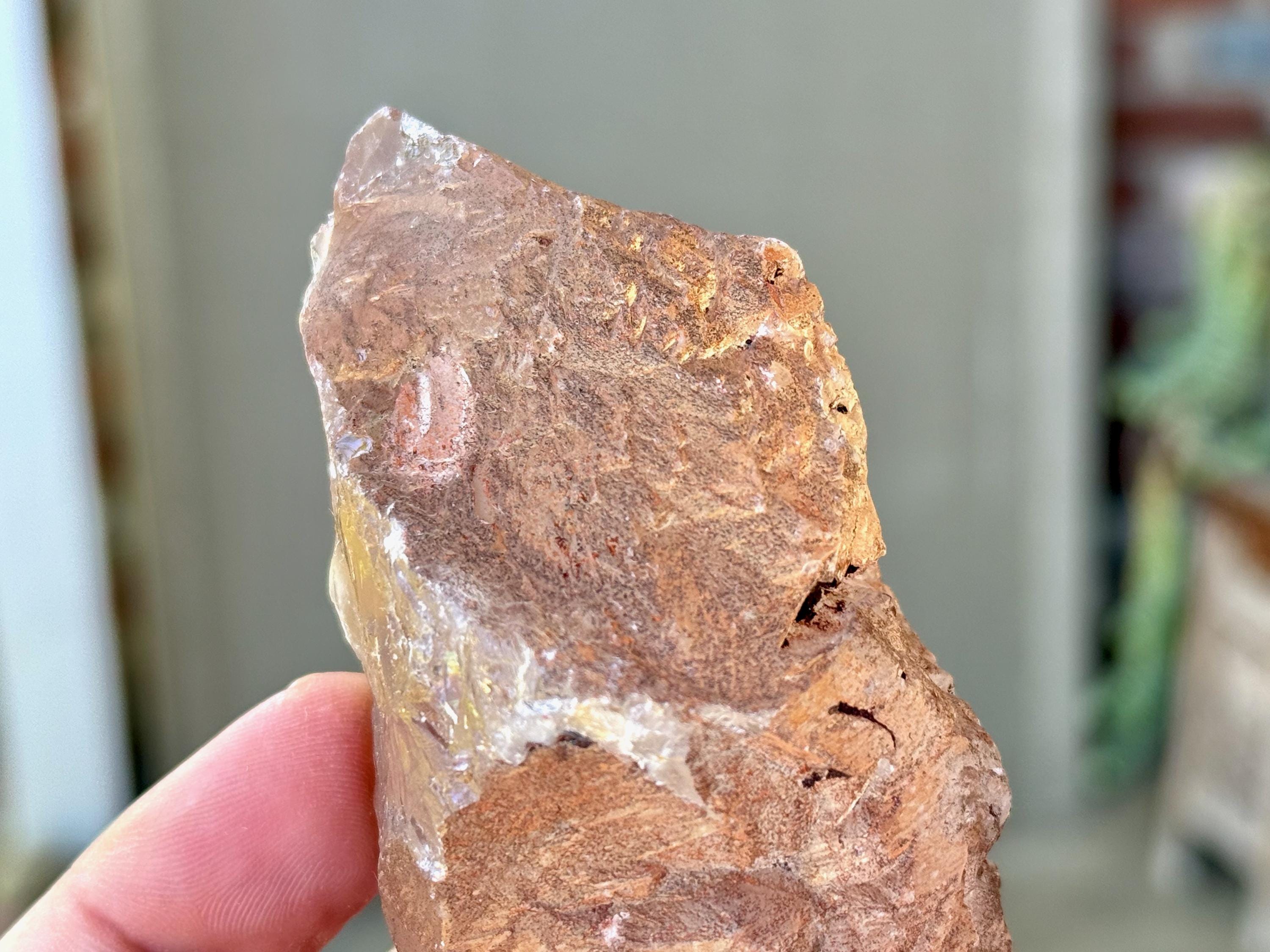 This natural Ancient Sage Tangerine Dissolution Quartz comes from an old 2018 find in Para State, Brazil. The pinkish-orange hue comes from Hematite inclusion.
