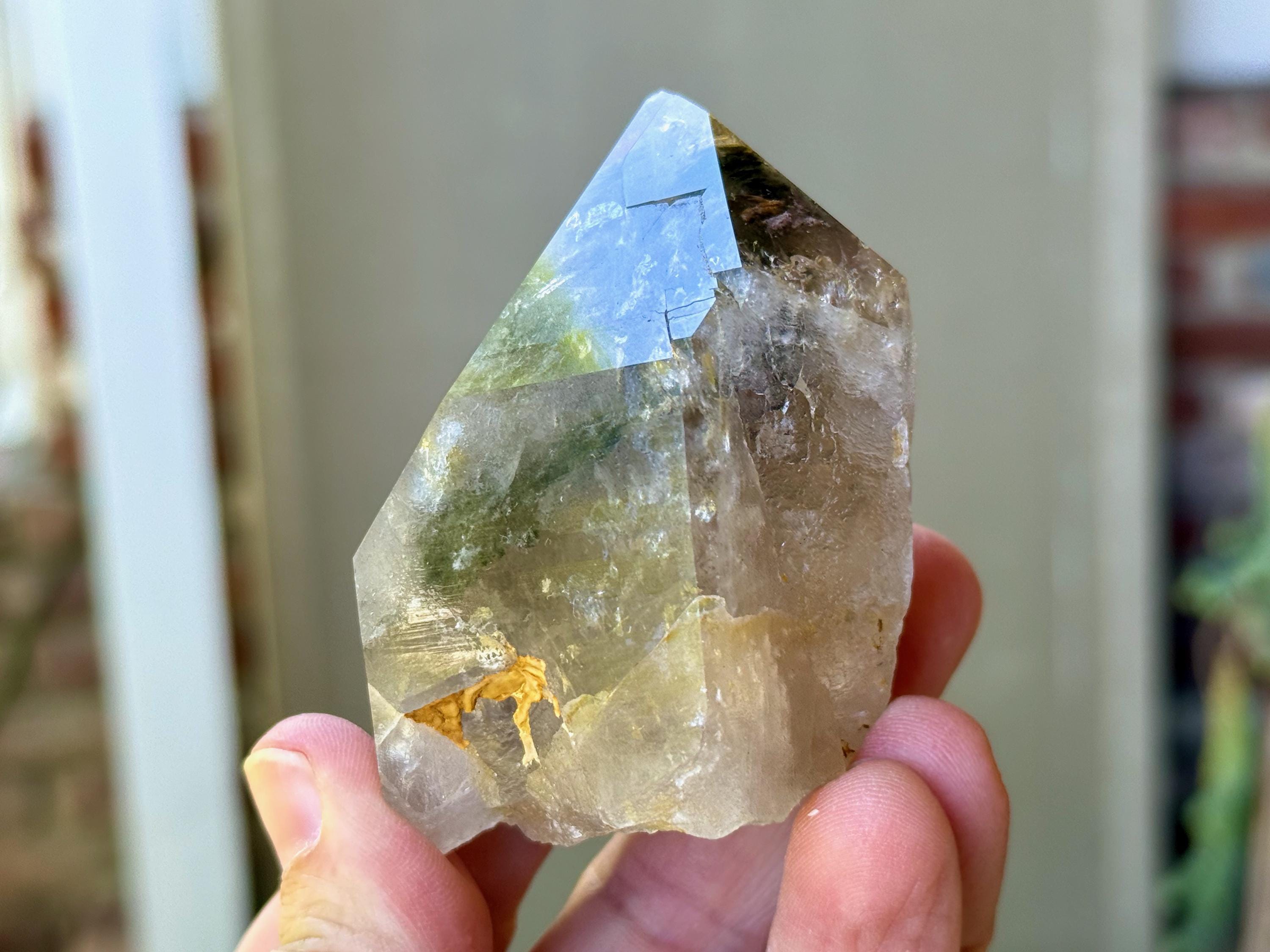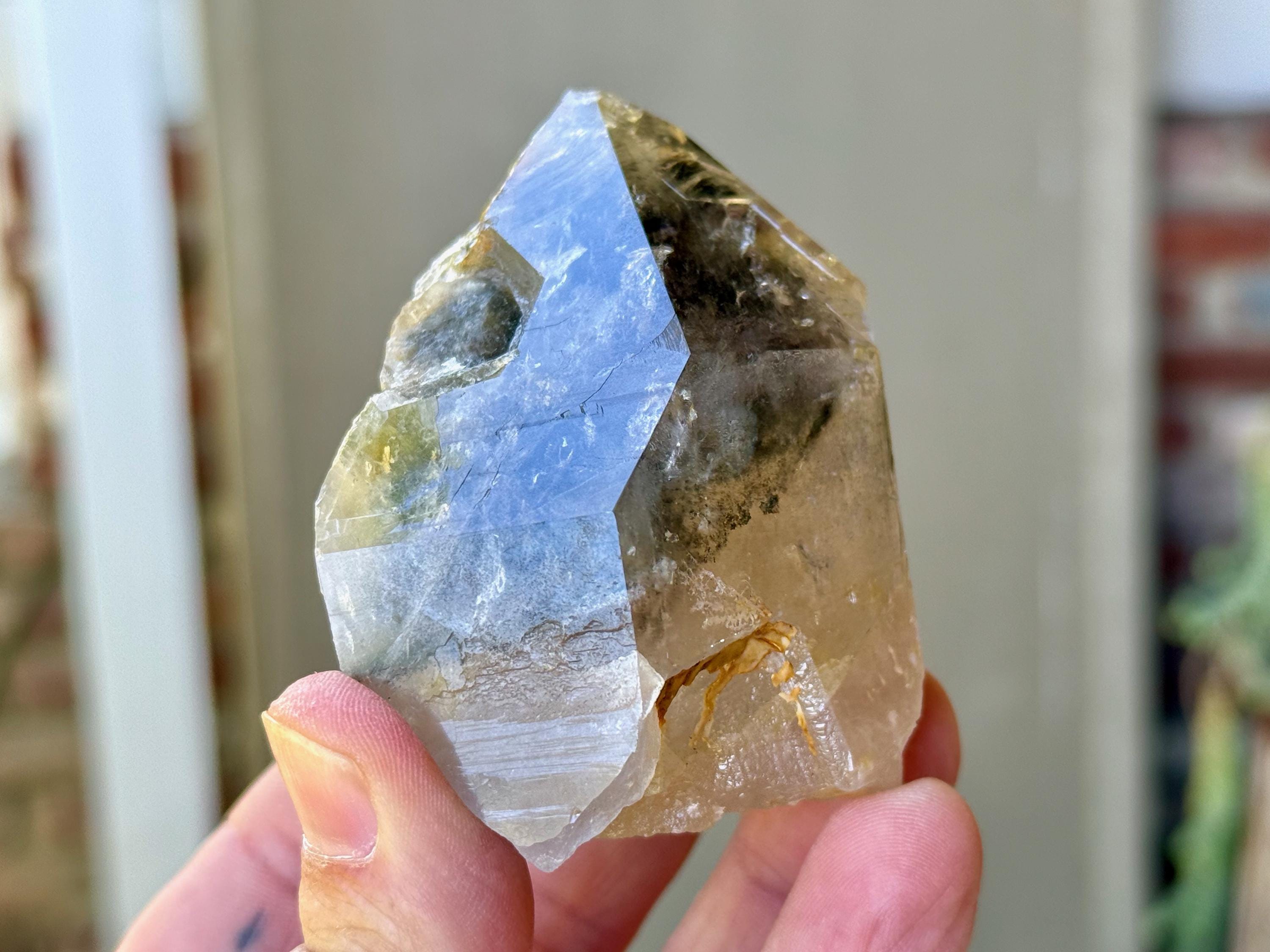 Lodolite Quartz, sometimes referred to as Garden Quartz for their beautiful inner landscapes, refers to crystals with colorful inclusions that may include Green Chlorite, Kaolinite, Hematite, Sulfite and other inclusions that all fall under the umbrella of "Lodolite." Each of these inclusions carries a particular energy of purification, grounding or healing, and the combination of these elements together, amplified by the Quartz surrounding them, creates a powerful healing energy. Aesthetically, they often have stunning inner landscapes that often look like mossy underwater gardens.