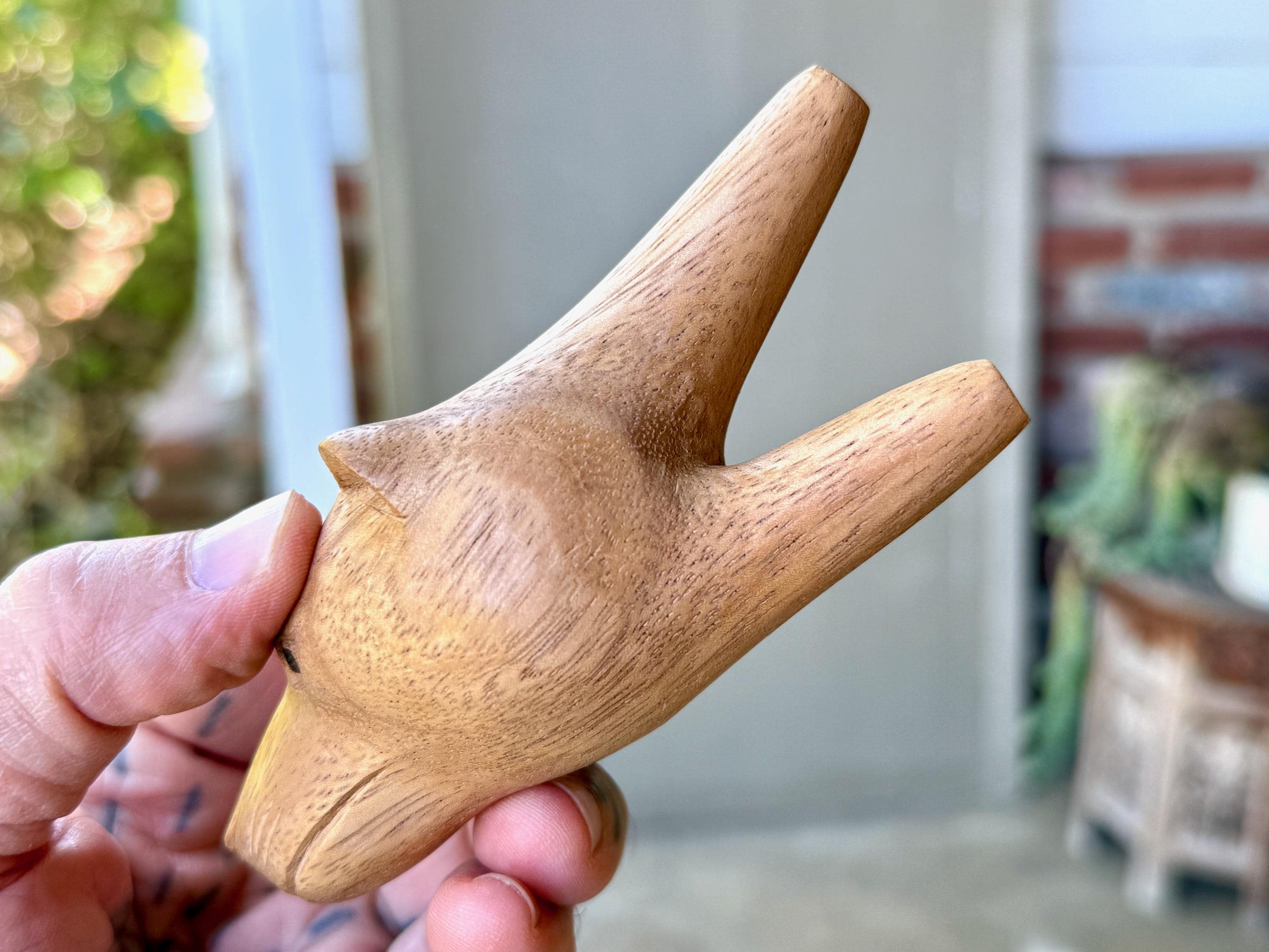 This handsome Bear Kuripe — for self-administering hapé — was hand-carved from solid, tropical hardwood.