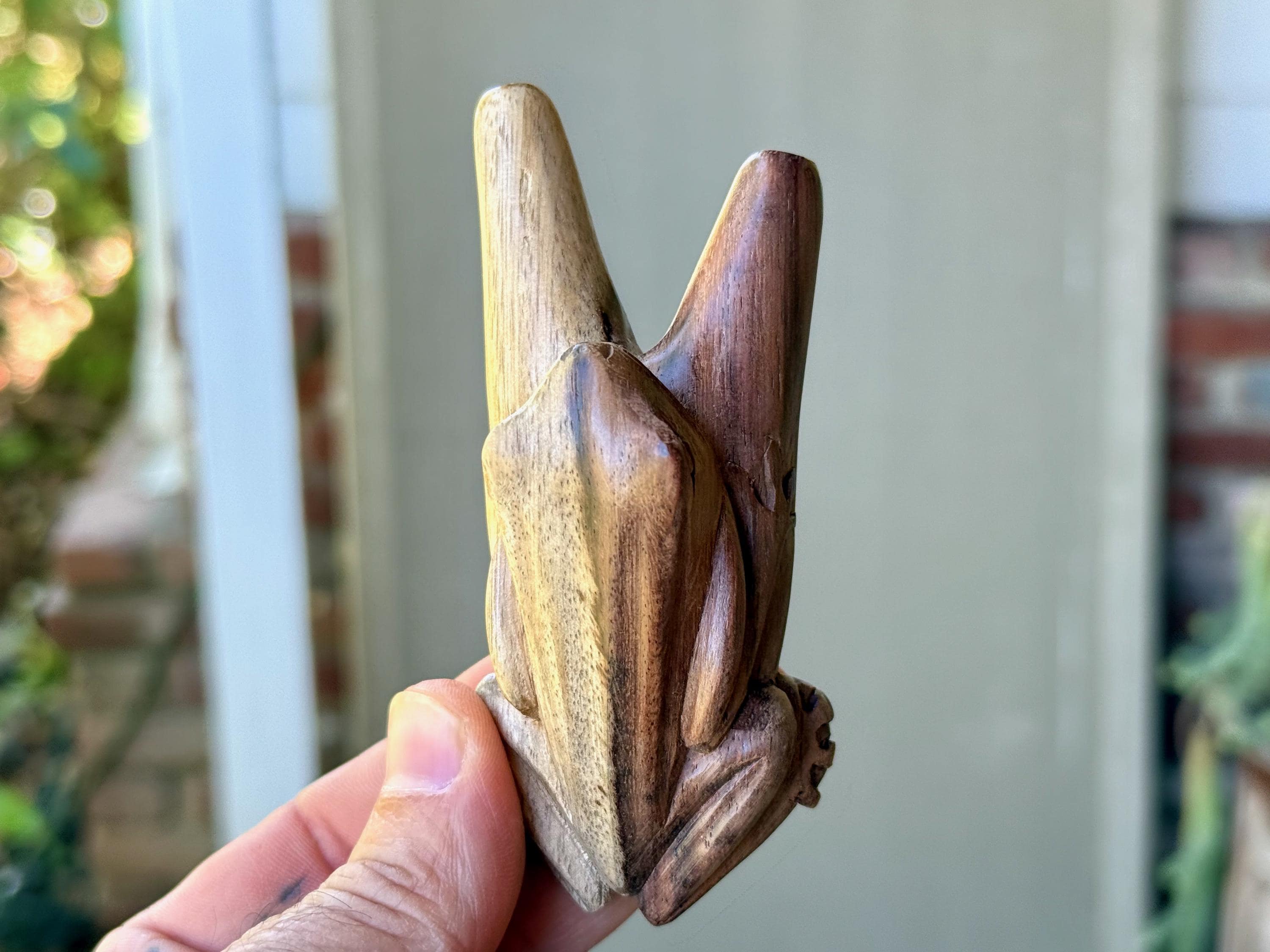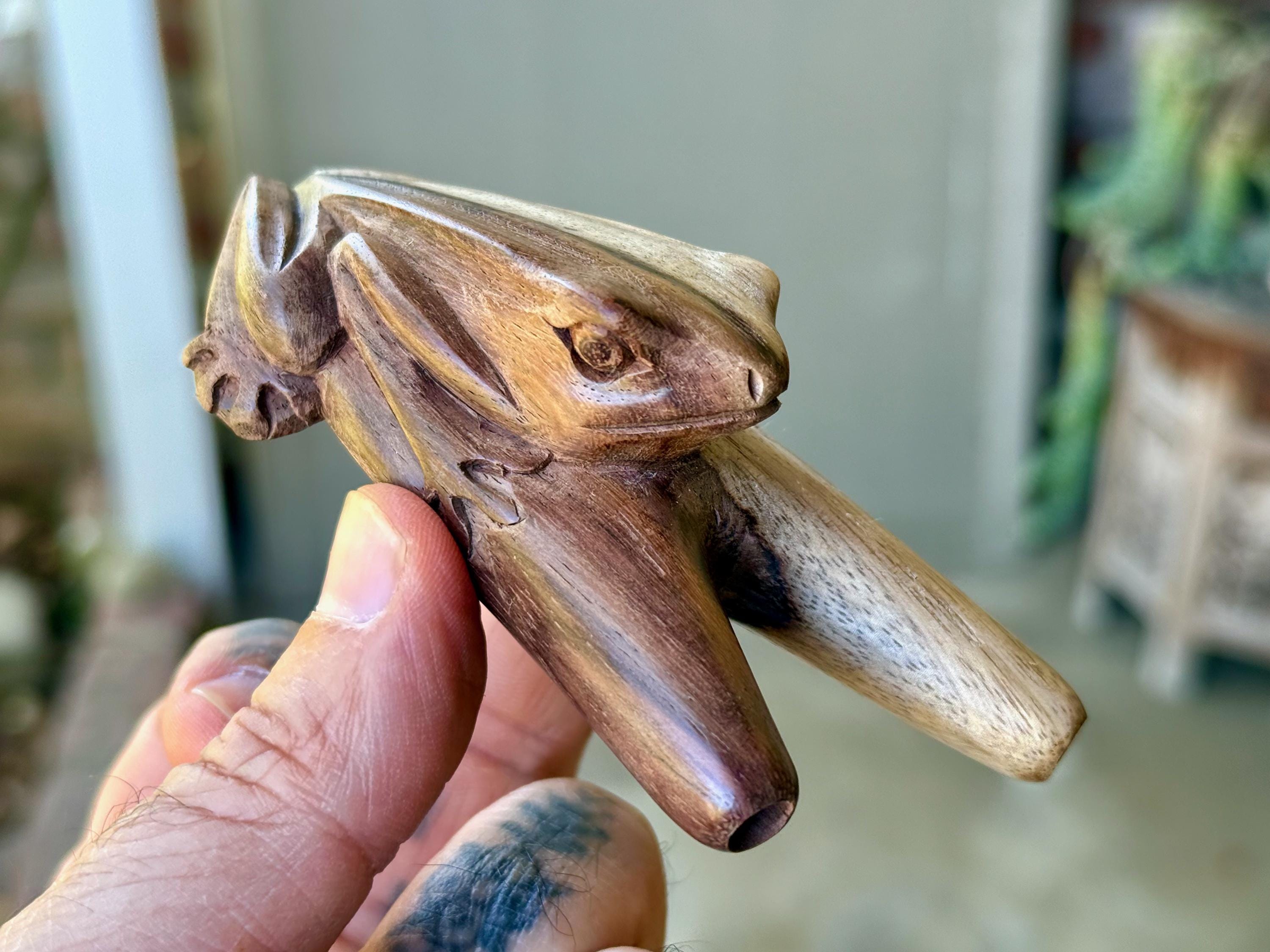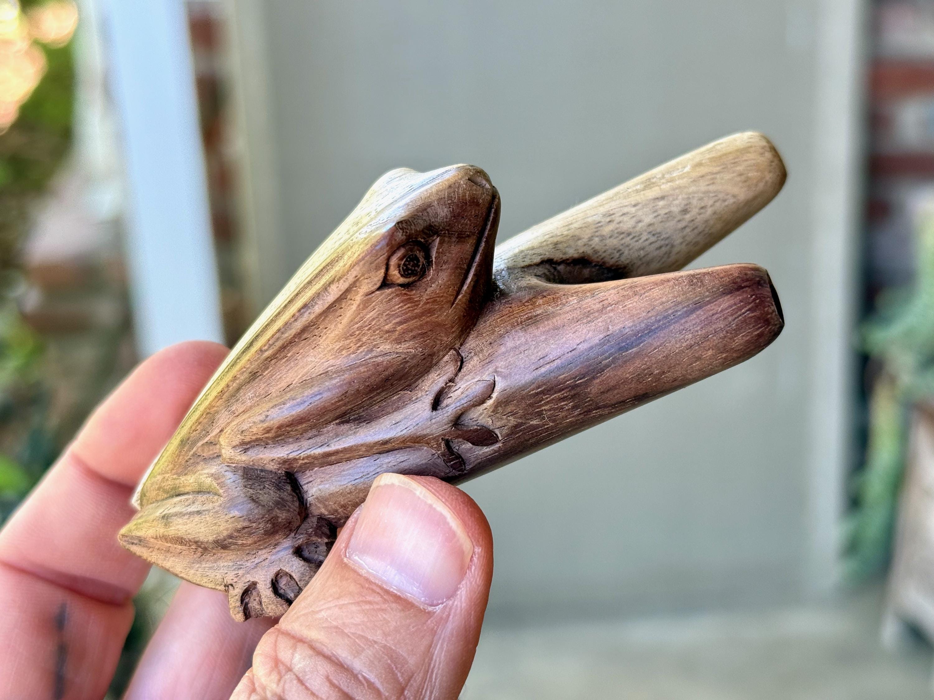 This Frog Kuripe — for self-administering hapé — was hand carved from native, tropical wood.